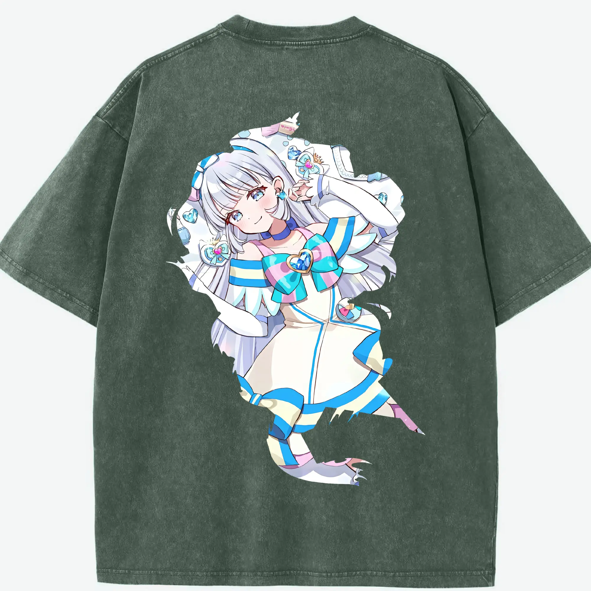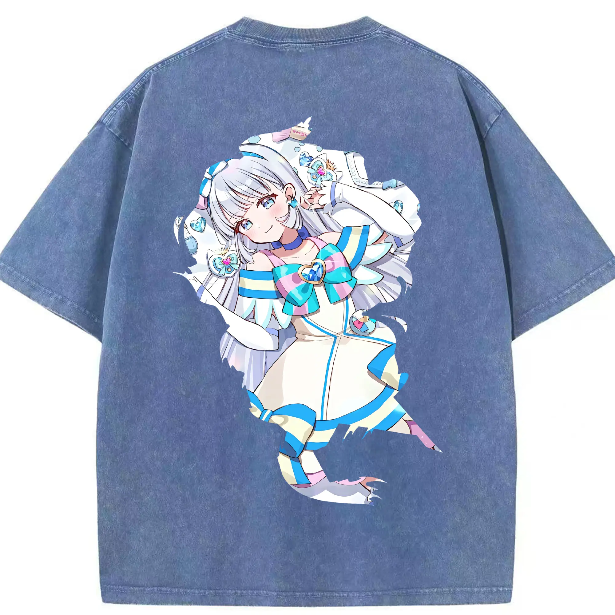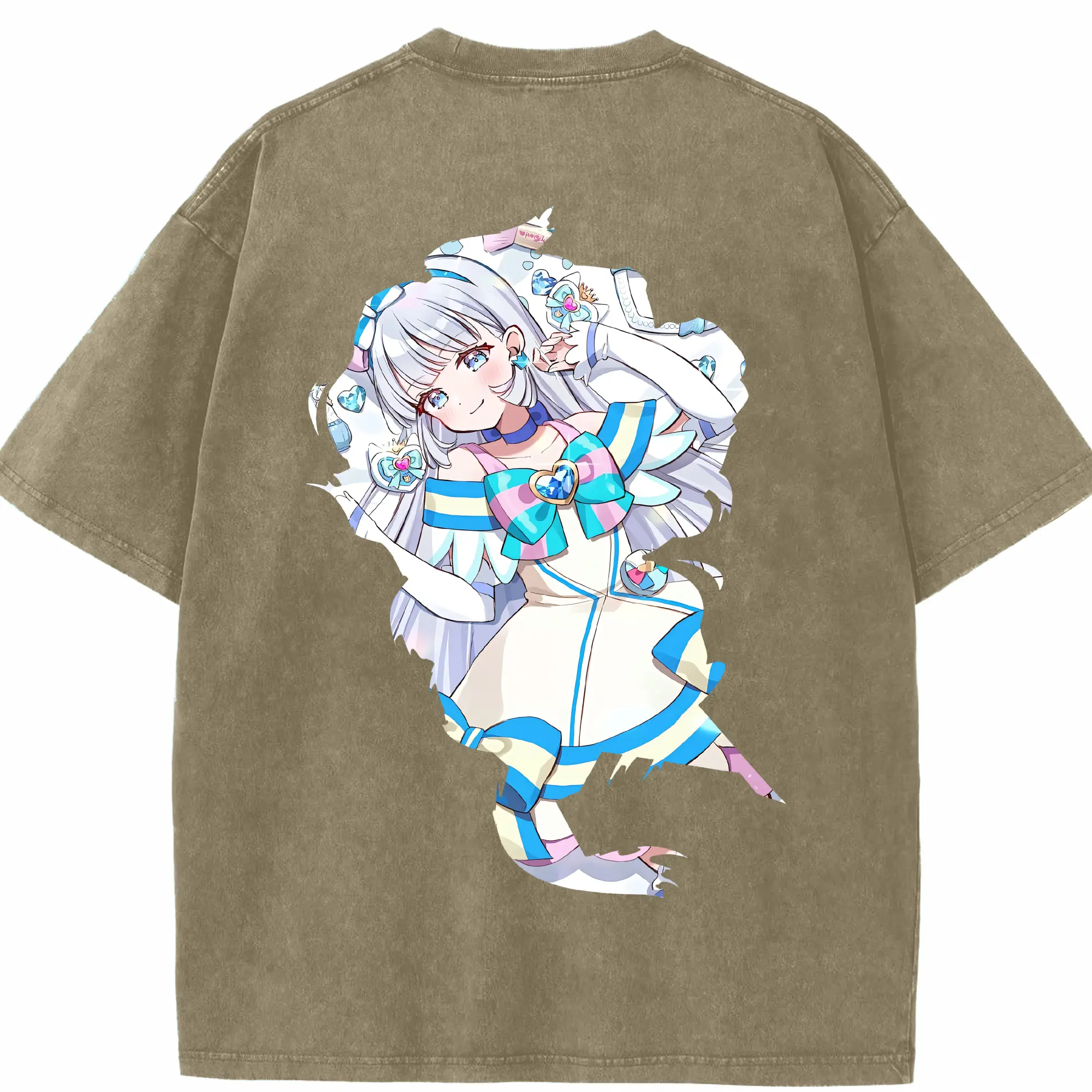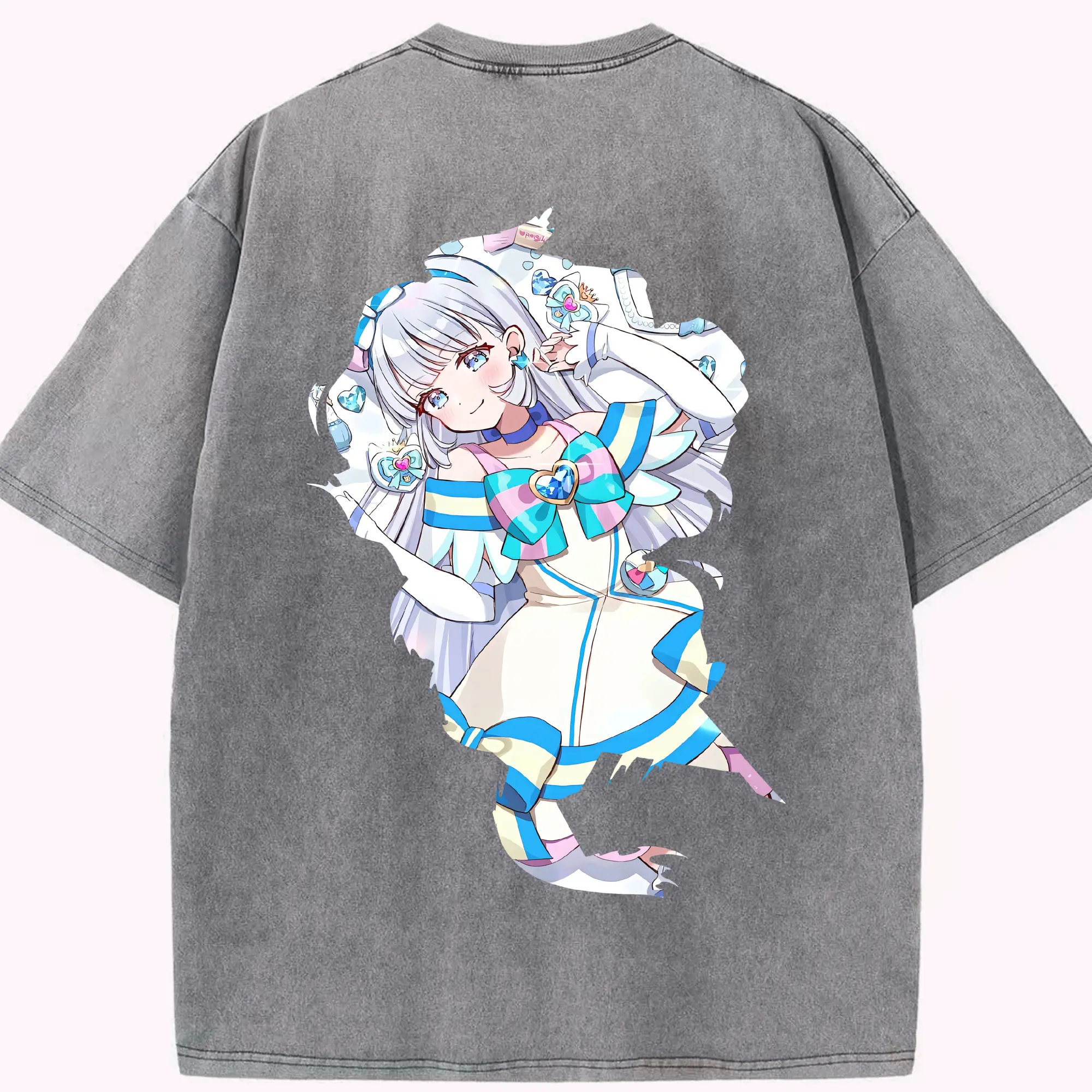 わんだふるぷりきゅあ グッズ 猫屋敷ユキ - 綿100% ヴィンテージ風 半袖Tシャツ ・ フロントプリント ・ 柔らか肌触り ・ 通気性 快適 ・ スポーツ カジュアル 外出用