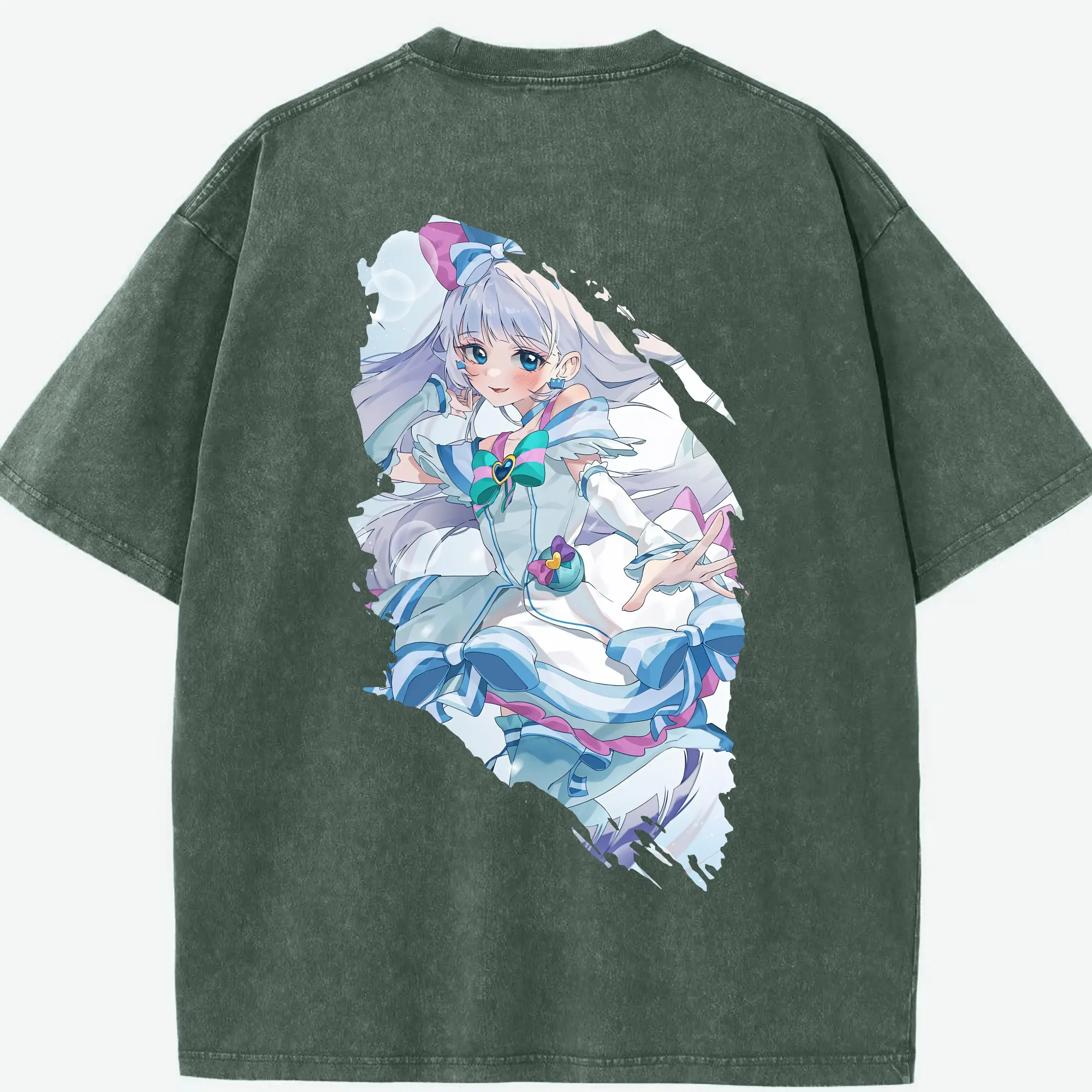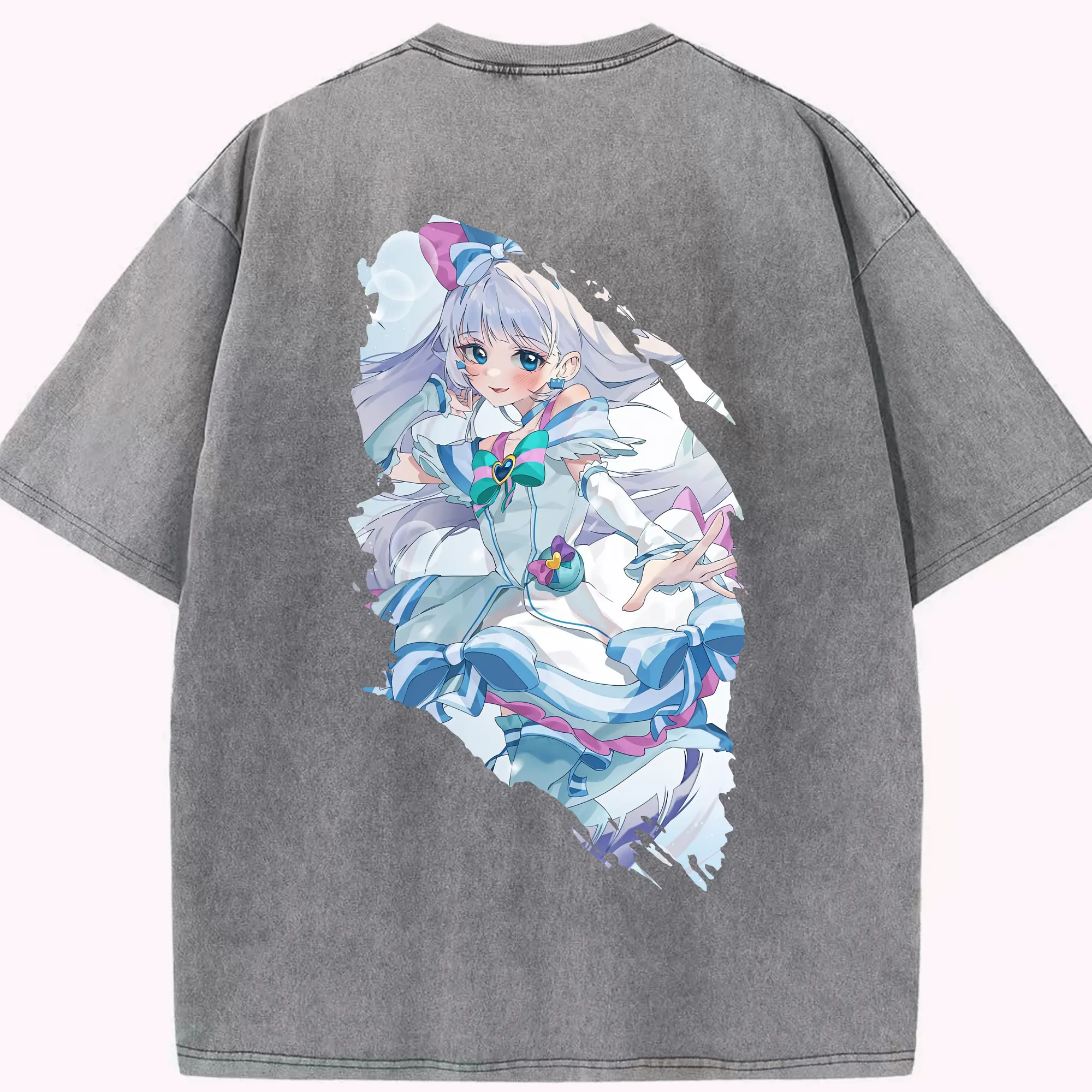 わんだふるぷりきゅあ グッズ 猫屋敷ユキ - 綿100% ヴィンテージ風 半袖Tシャツ ・ フロントプリント ・ 柔らか肌触り ・ 通気性 快適 ・ スポーツ カジュアル 外出用