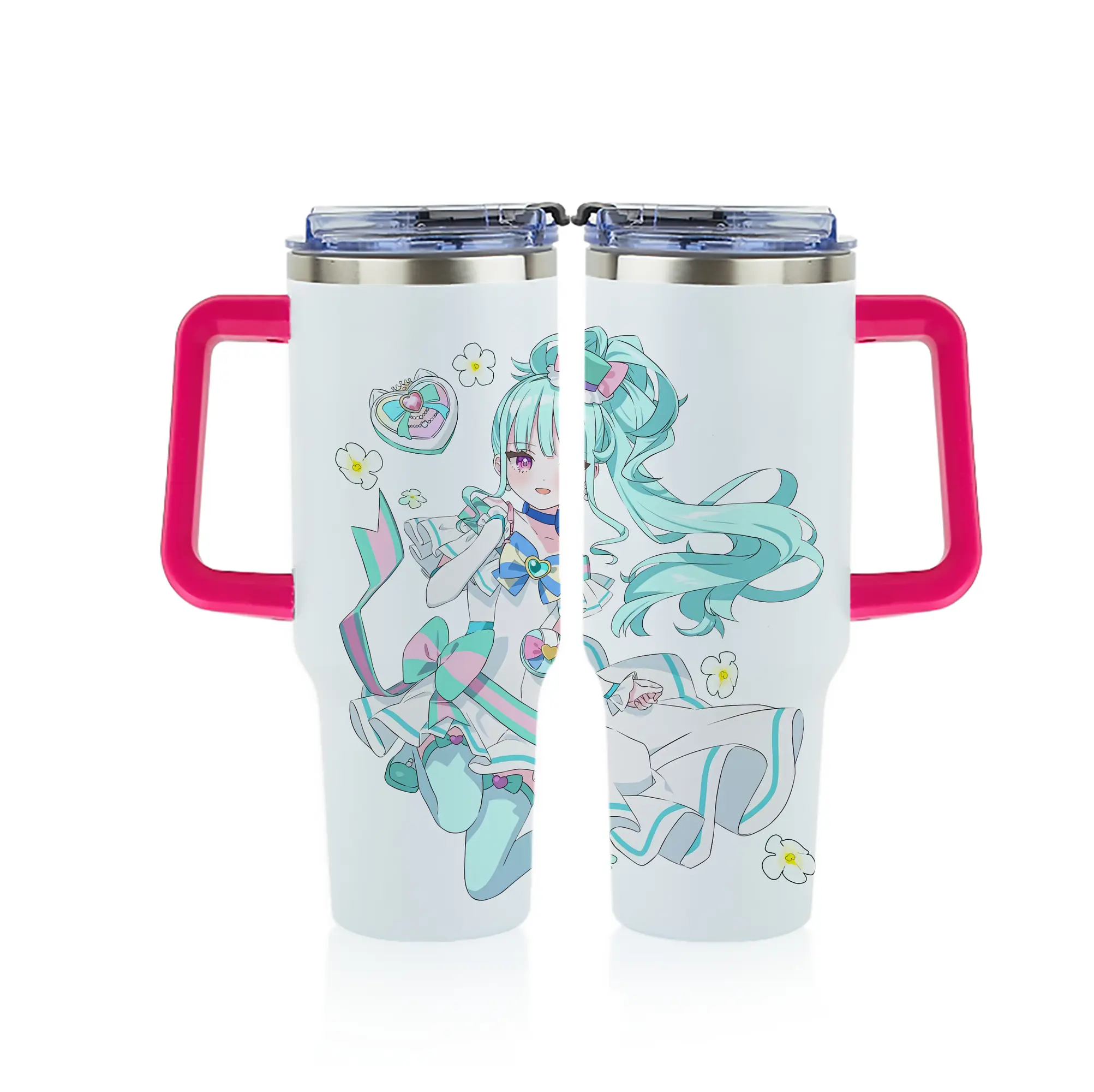 わんだふるぷりきゅあ グッズ 猫屋敷まゆ - 1200mL フルプリント車用タンブラー ・ 304ステンレス 内側 ・ 201ステンレス 外側 ・ 保温 保冷 ・ 通勤 ドライブ アウトドア用