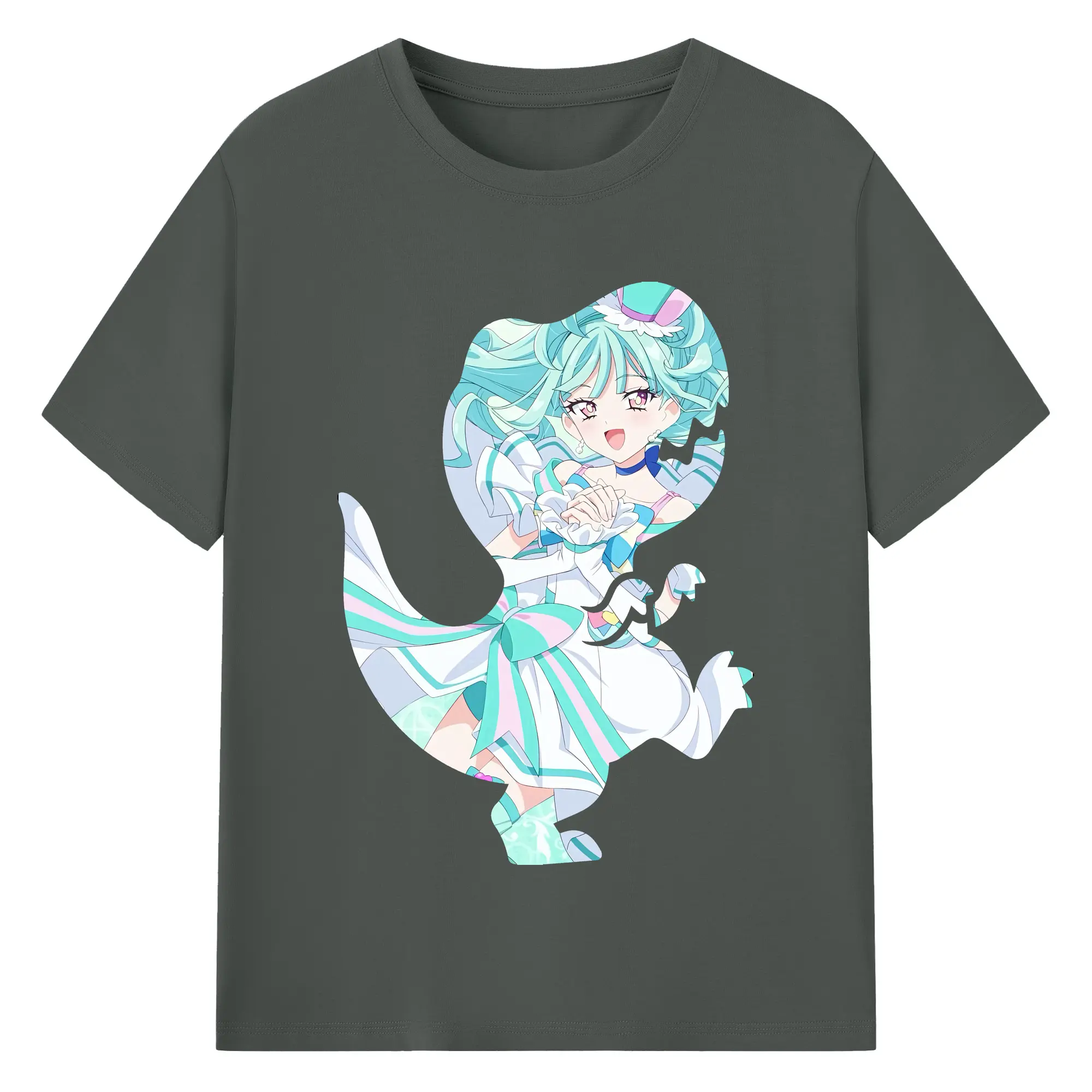 わんだふるぷりきゅあ グッズ 猫屋敷まゆ - 綿100% ヴィンテージ風 半袖Tシャツ ・ 背面プリント ・ 柔らか肌触り ・ 通気性 快適 ・ スポーツ カジュアル 外出用