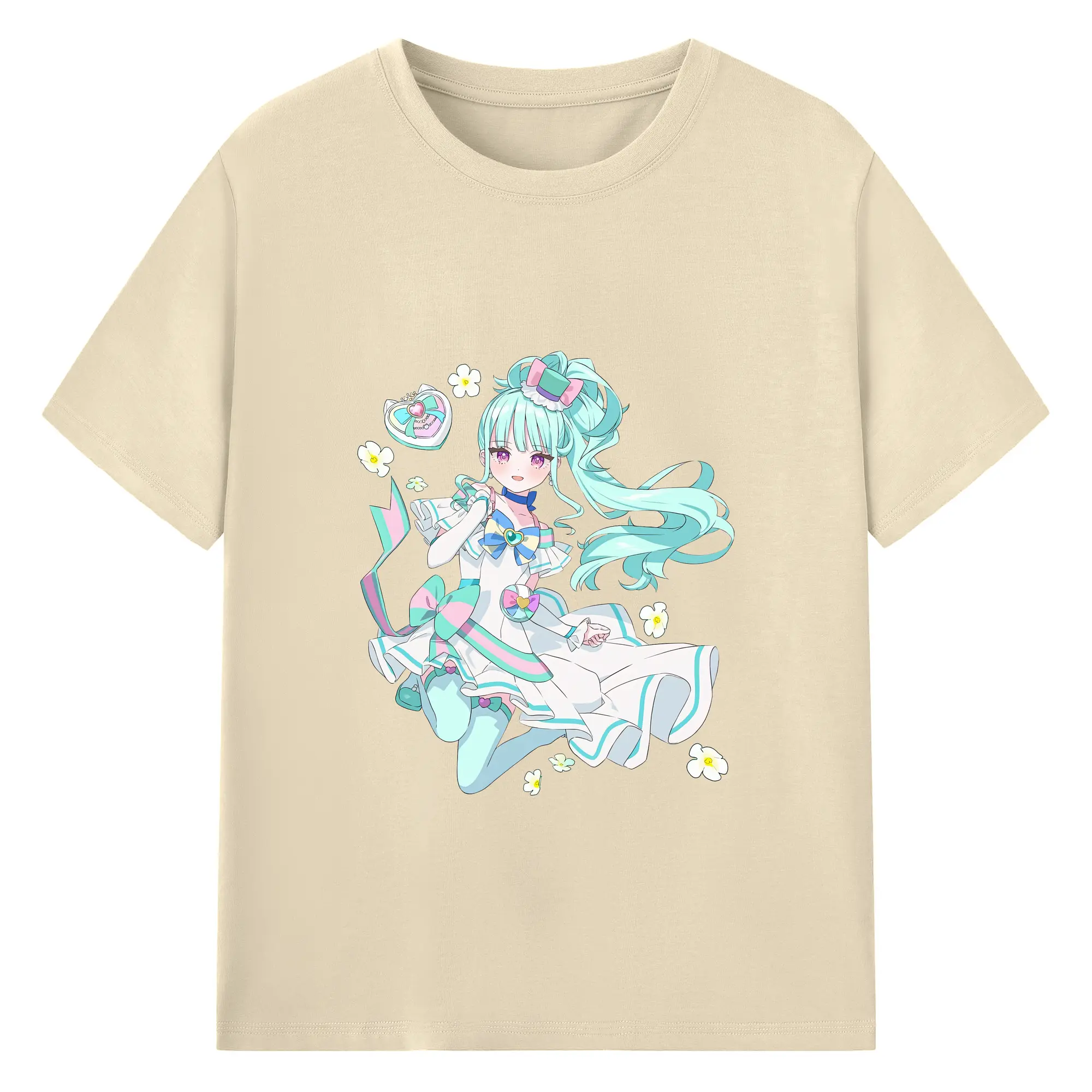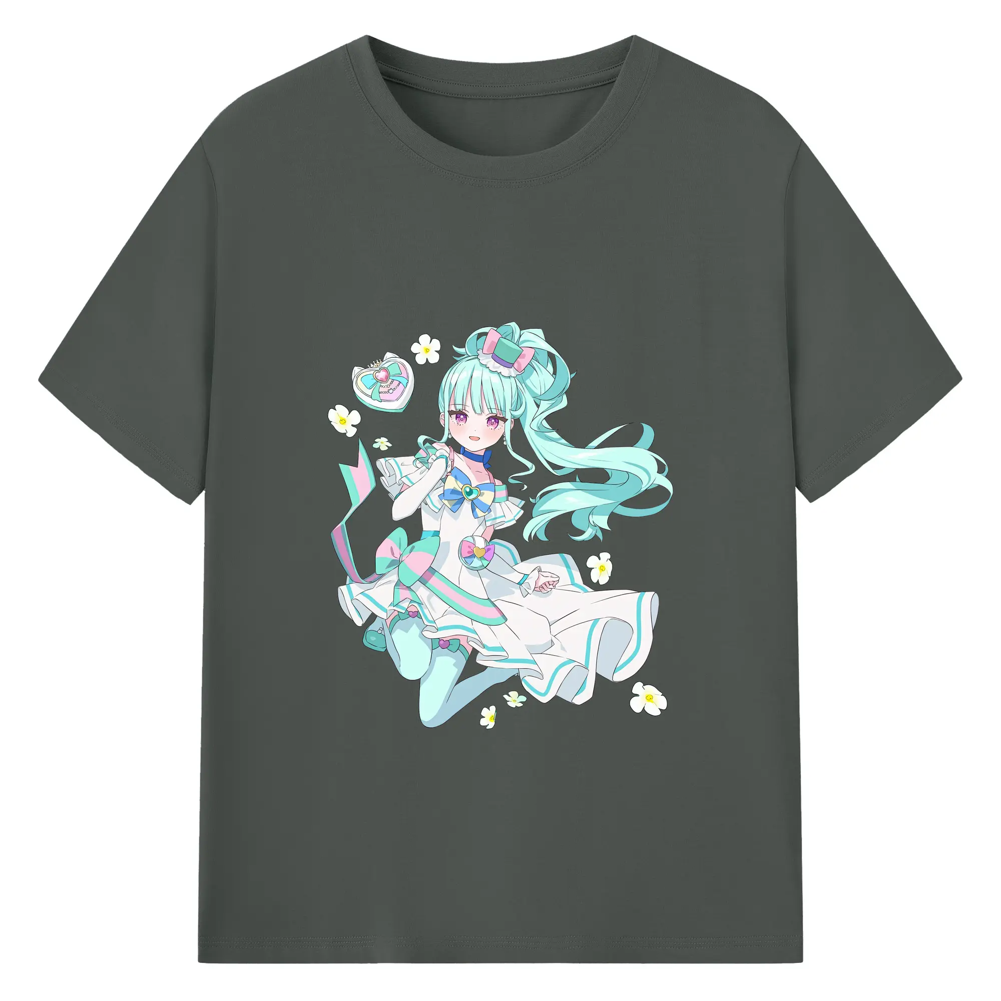 わんだふるぷりきゅあ グッズ 猫屋敷まゆ - 綿100% ヴィンテージ風 半袖Tシャツ ・ フロントプリント ・ 柔らか肌触り ・ 通気性 快適 ・ スポーツ カジュアル 外出用