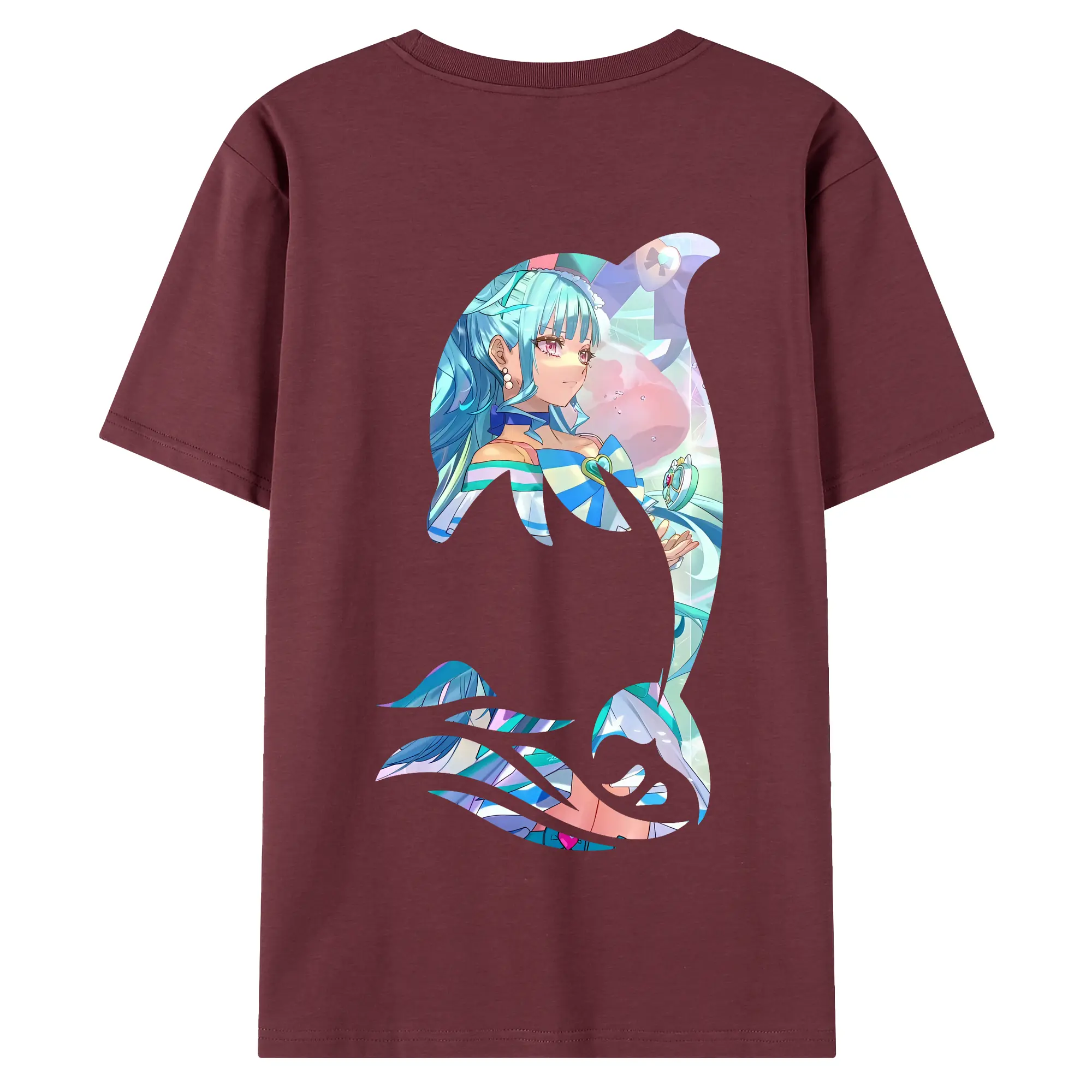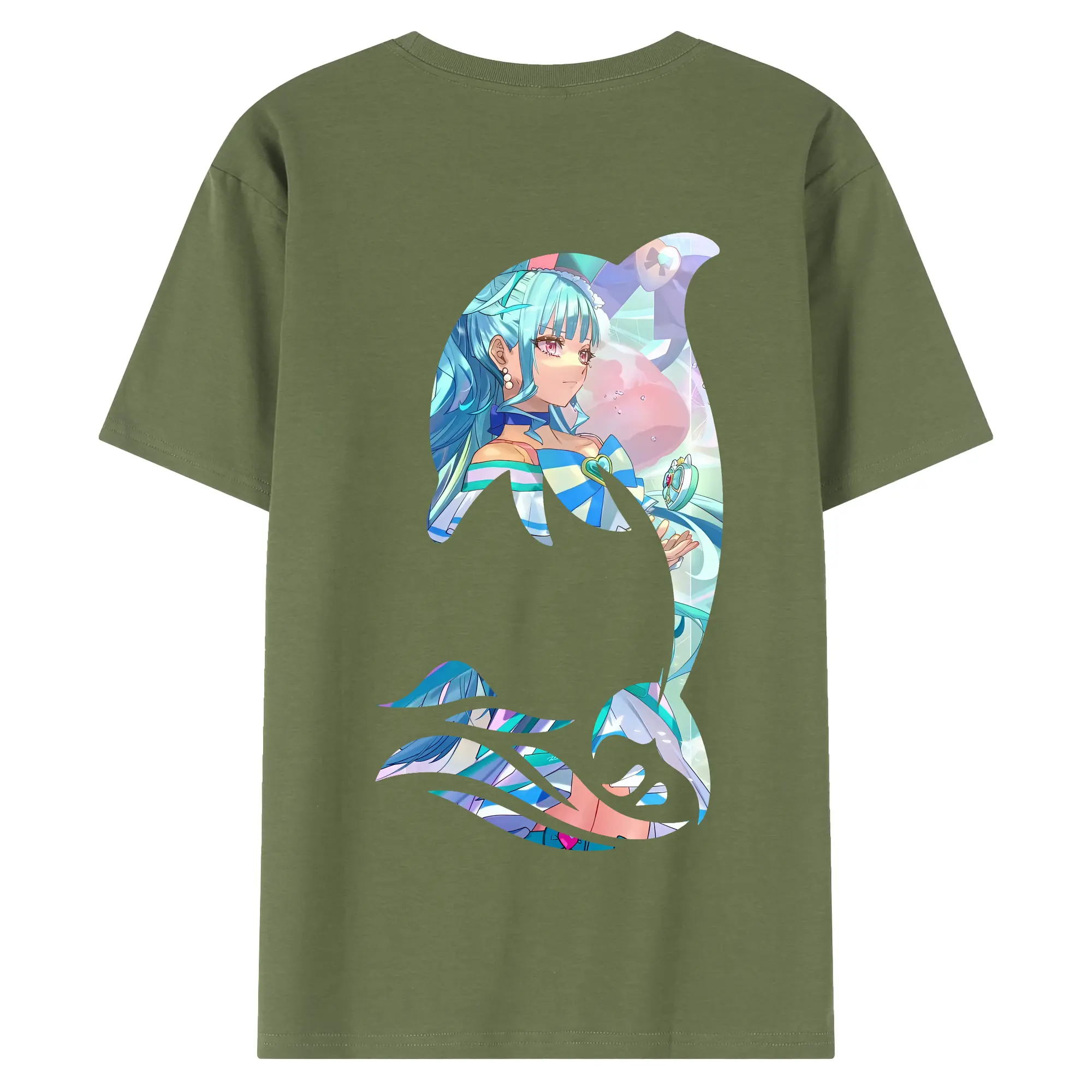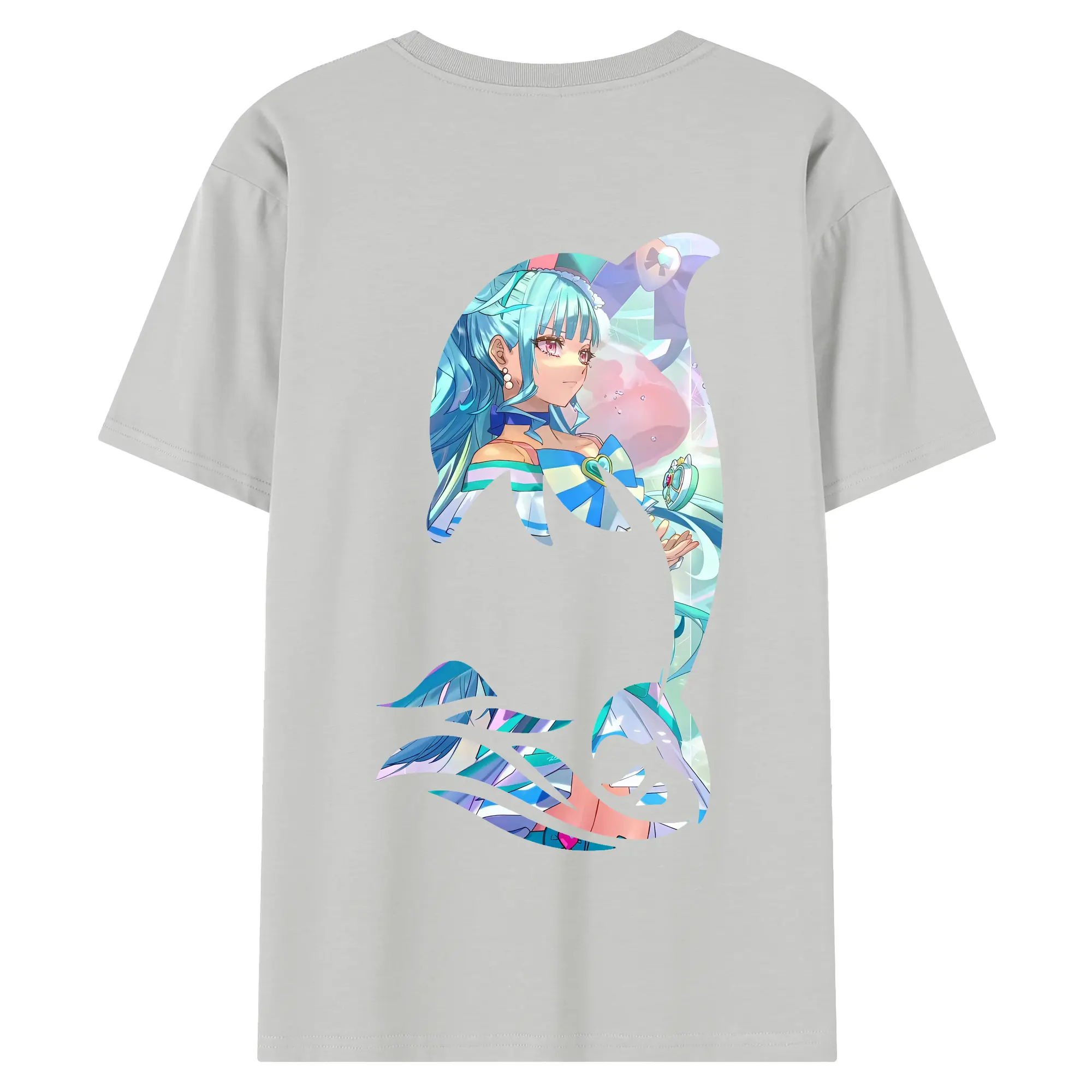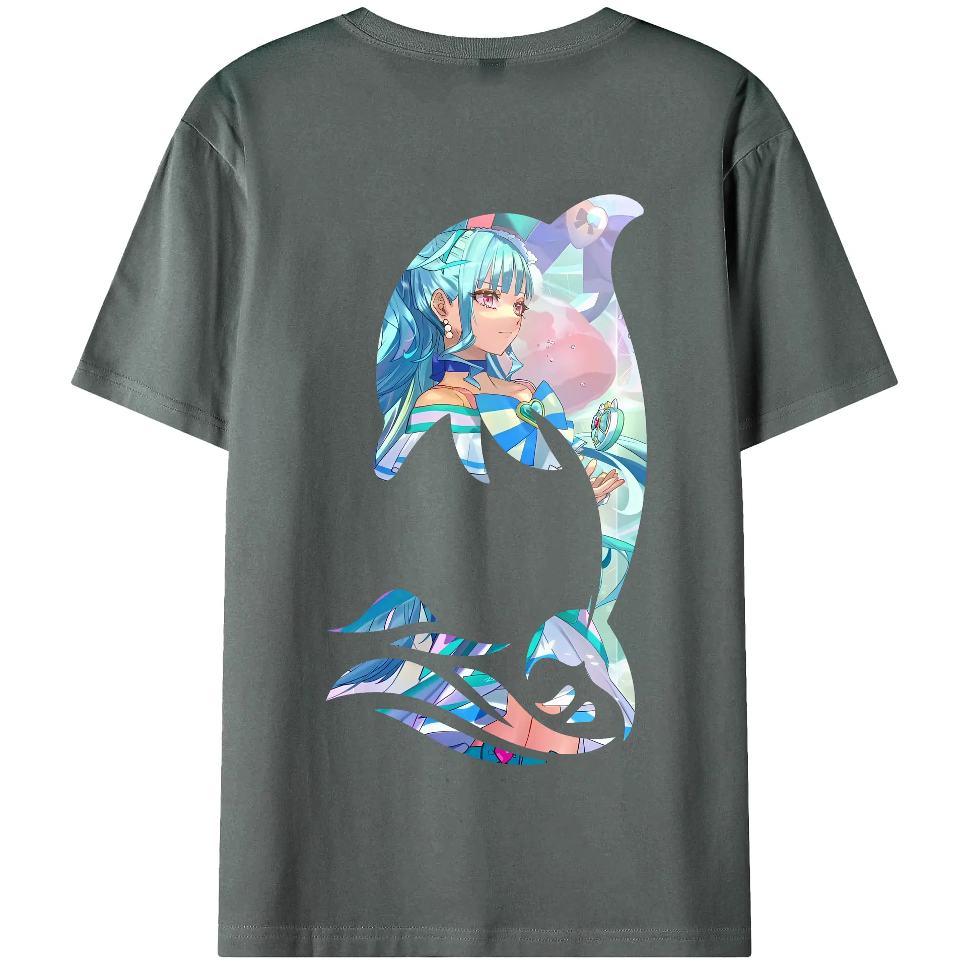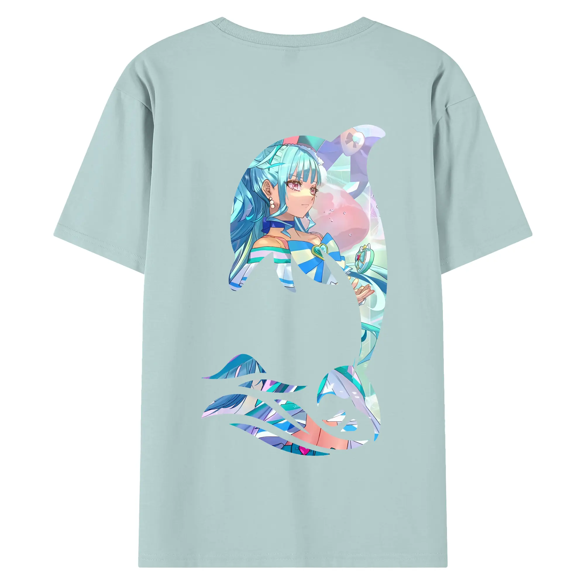 わんだふるぷりきゅあ グッズ 猫屋敷まゆ - 綿100% ヴィンテージ風 半袖Tシャツ ・ 背面プリント ・ 柔らか肌触り ・ 通気性 快適 ・ スポーツ カジュアル 外出用