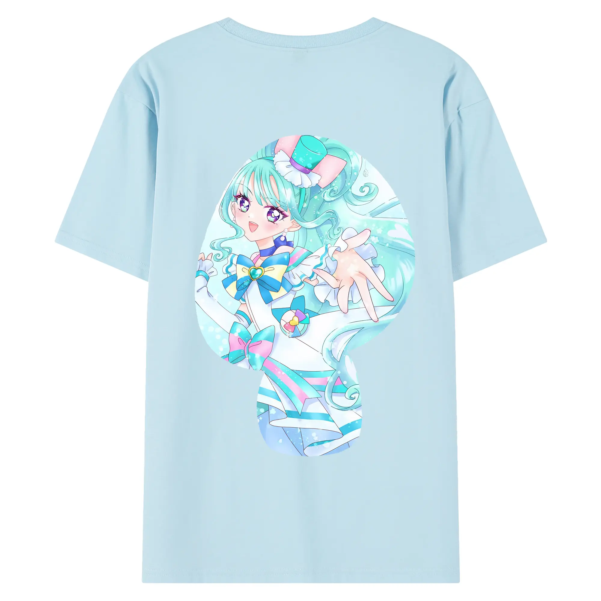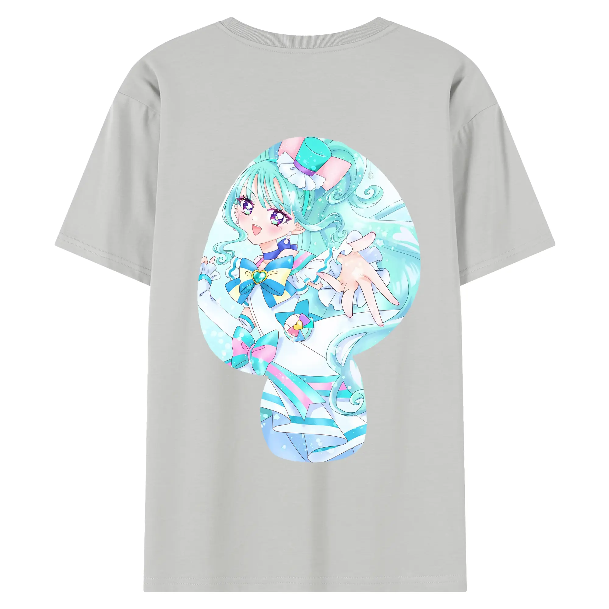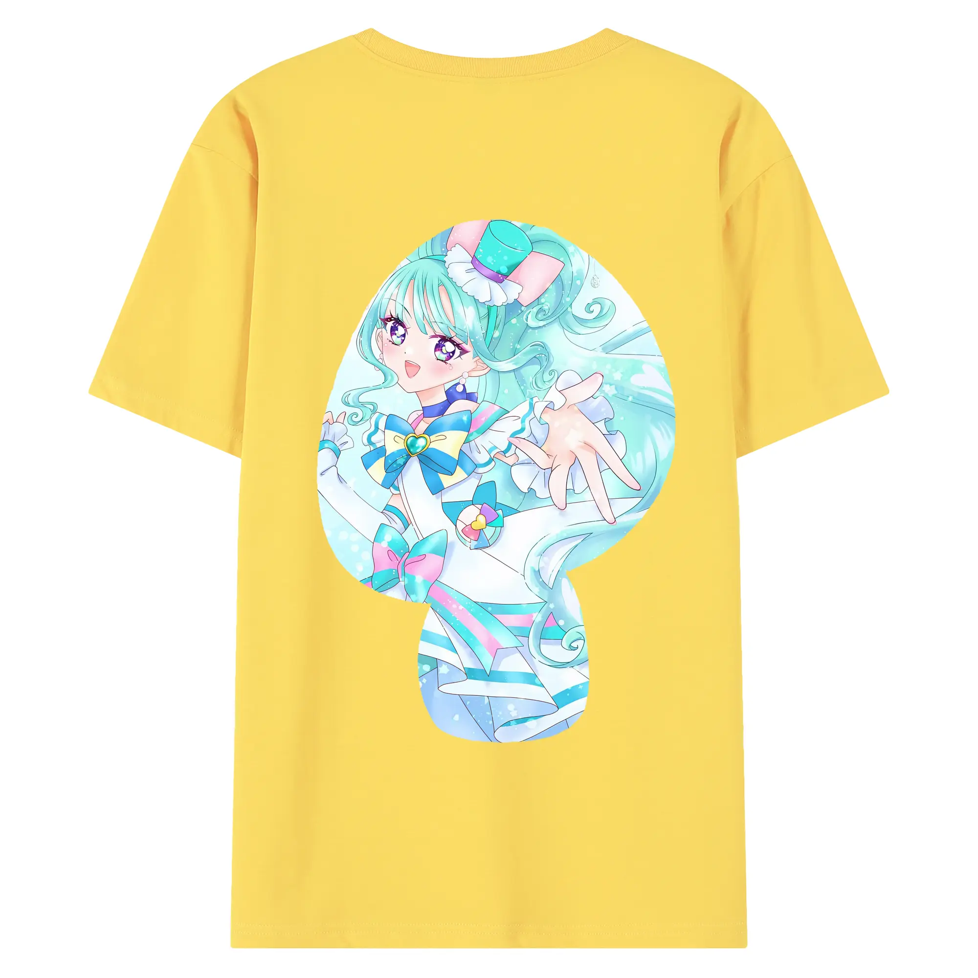 わんだふるぷりきゅあ グッズ 猫屋敷まゆ - 綿100% ヴィンテージ風 半袖Tシャツ ・ 背面プリント ・ 柔らか肌触り ・ 通気性 快適 ・ スポーツ カジュアル 外出用