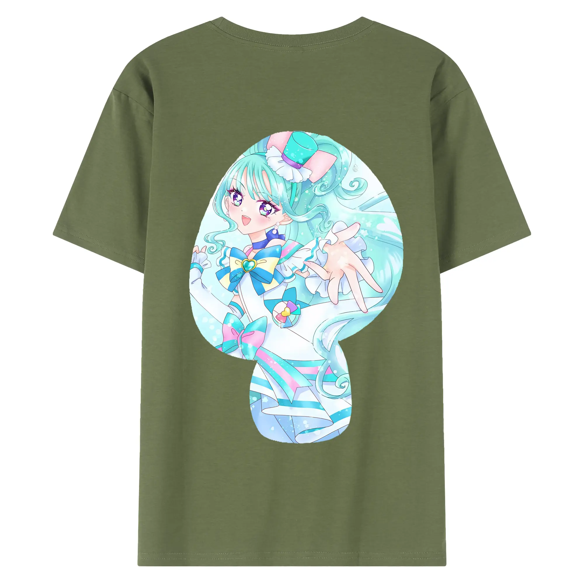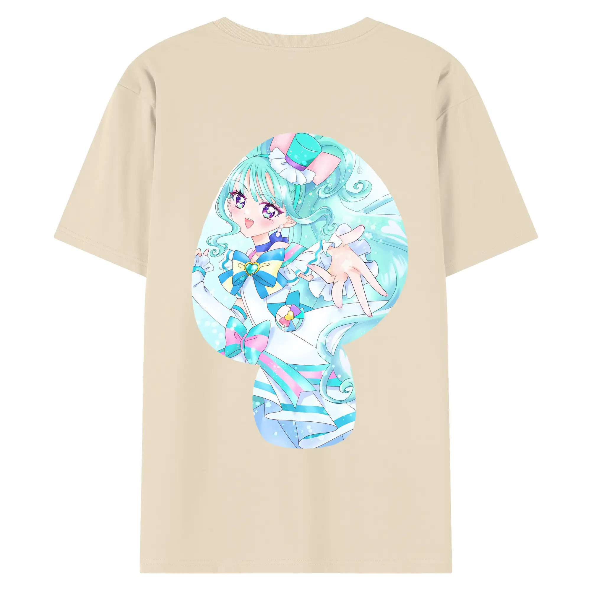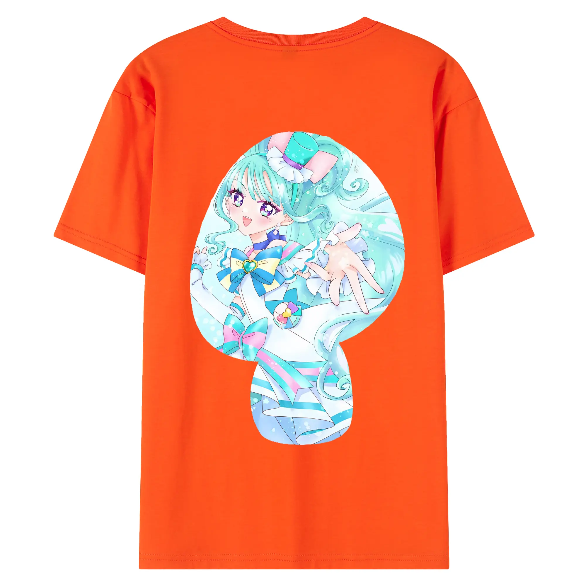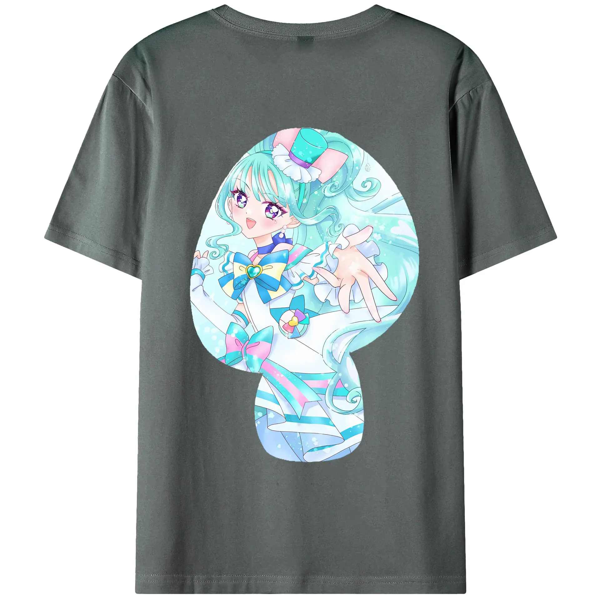 わんだふるぷりきゅあ グッズ 猫屋敷まゆ - 綿100% ヴィンテージ風 半袖Tシャツ ・ 背面プリント ・ 柔らか肌触り ・ 通気性 快適 ・ スポーツ カジュアル 外出用