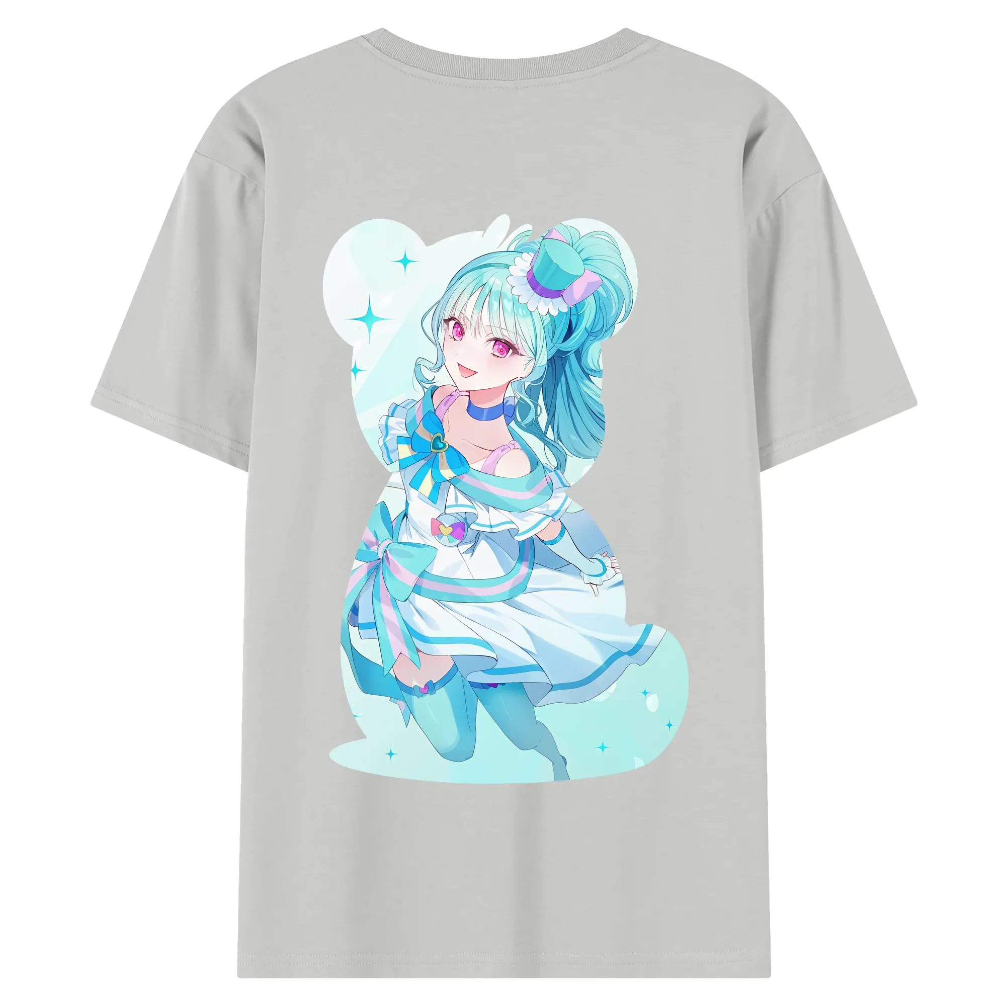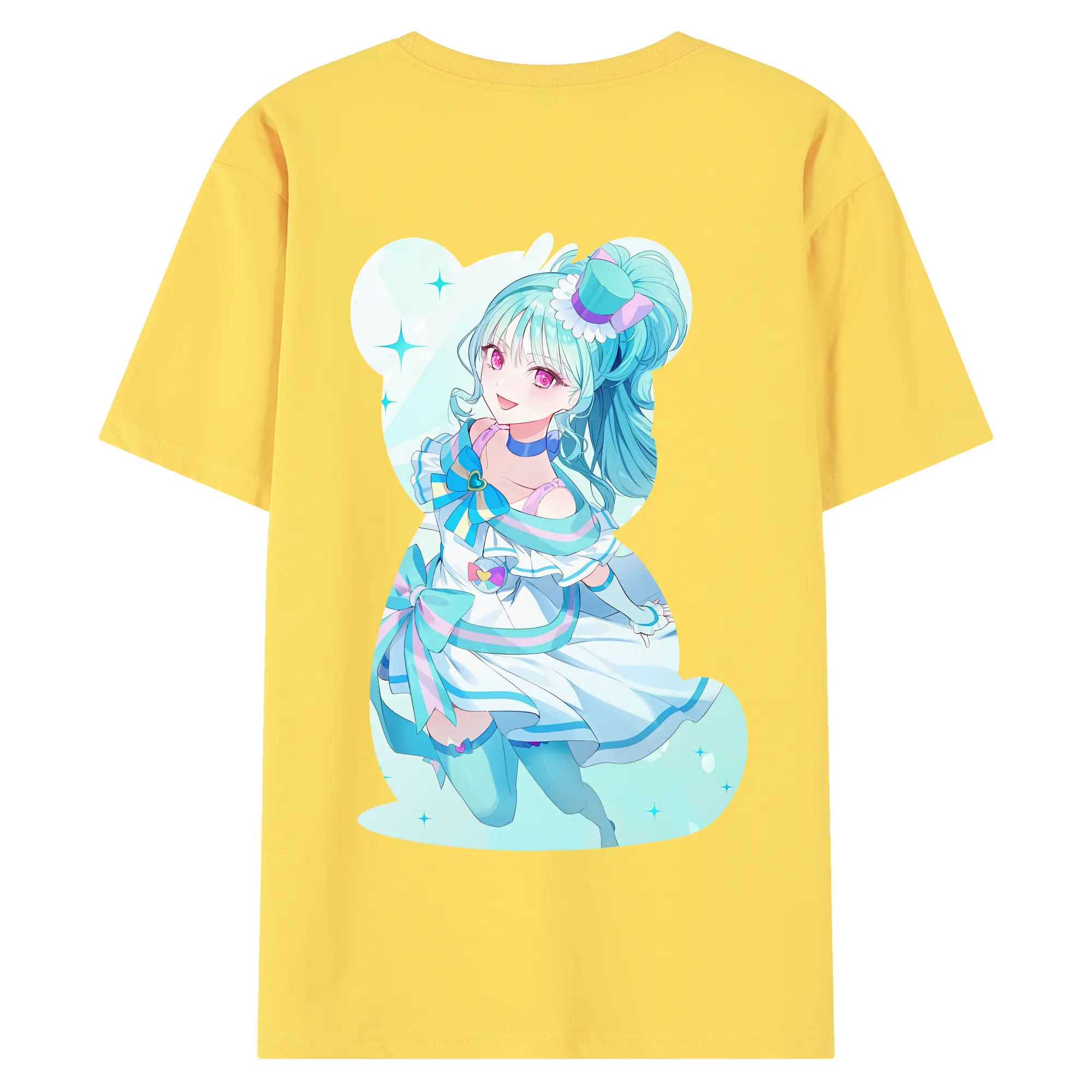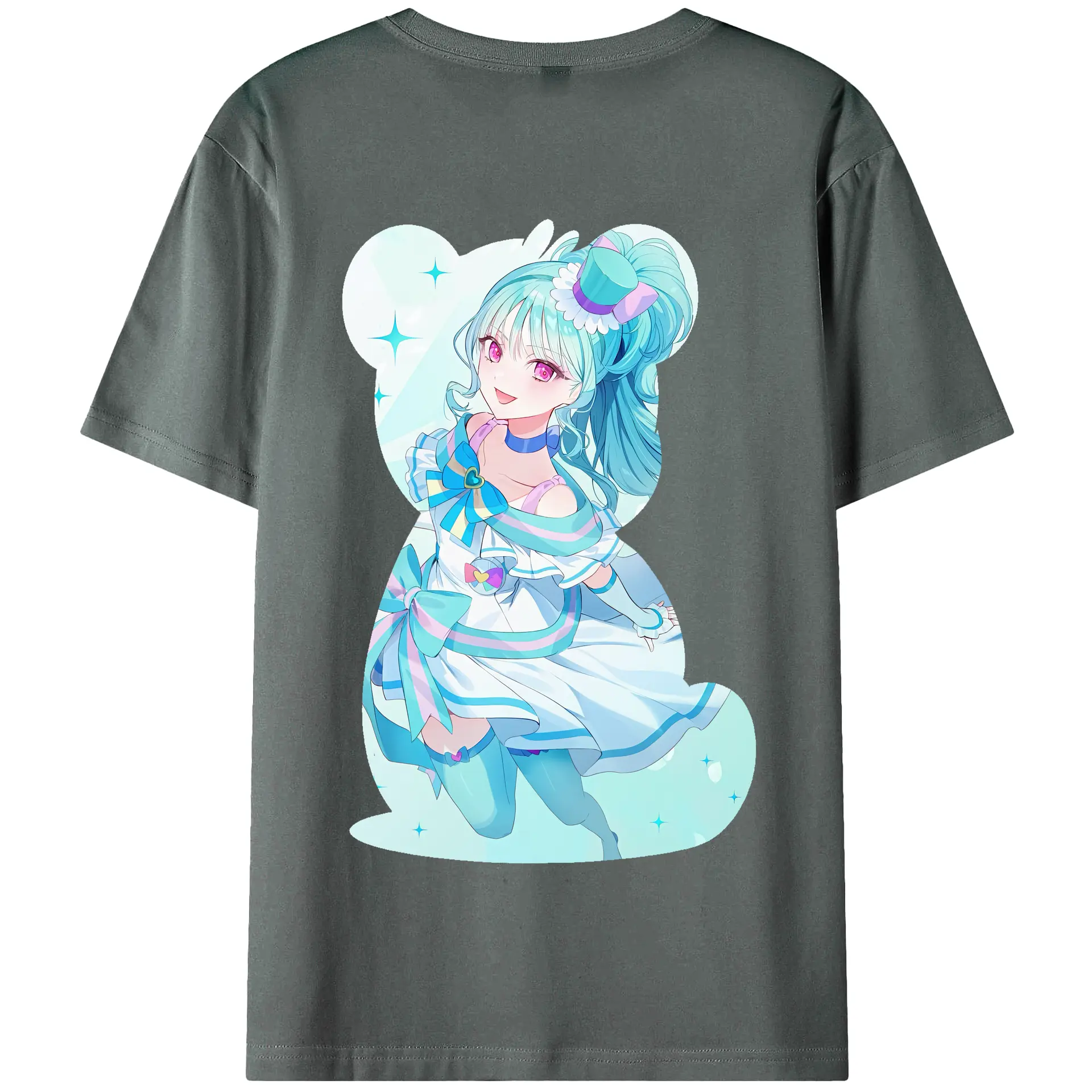 わんだふるぷりきゅあ グッズ 猫屋敷まゆ - 綿100% ヴィンテージ風 半袖Tシャツ ・ 背面プリント ・ 柔らか肌触り ・ 通気性 快適 ・ スポーツ カジュアル 外出用