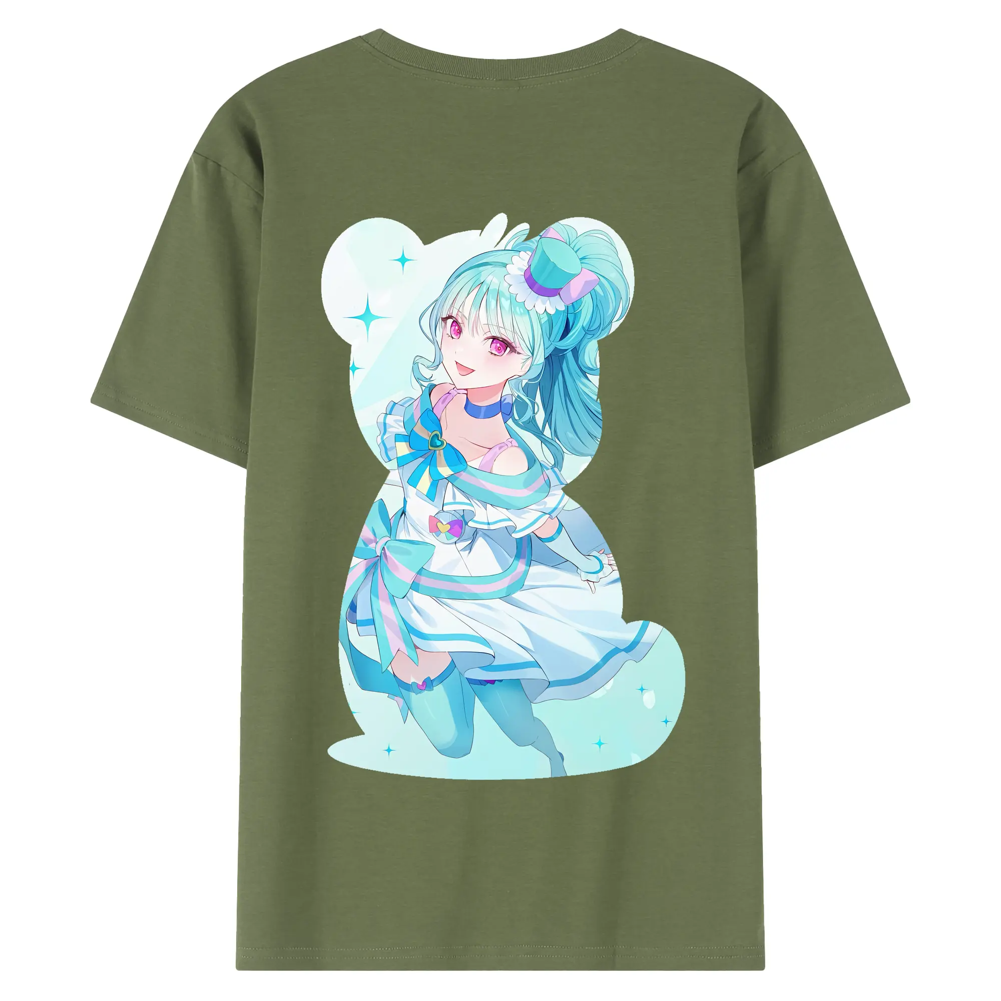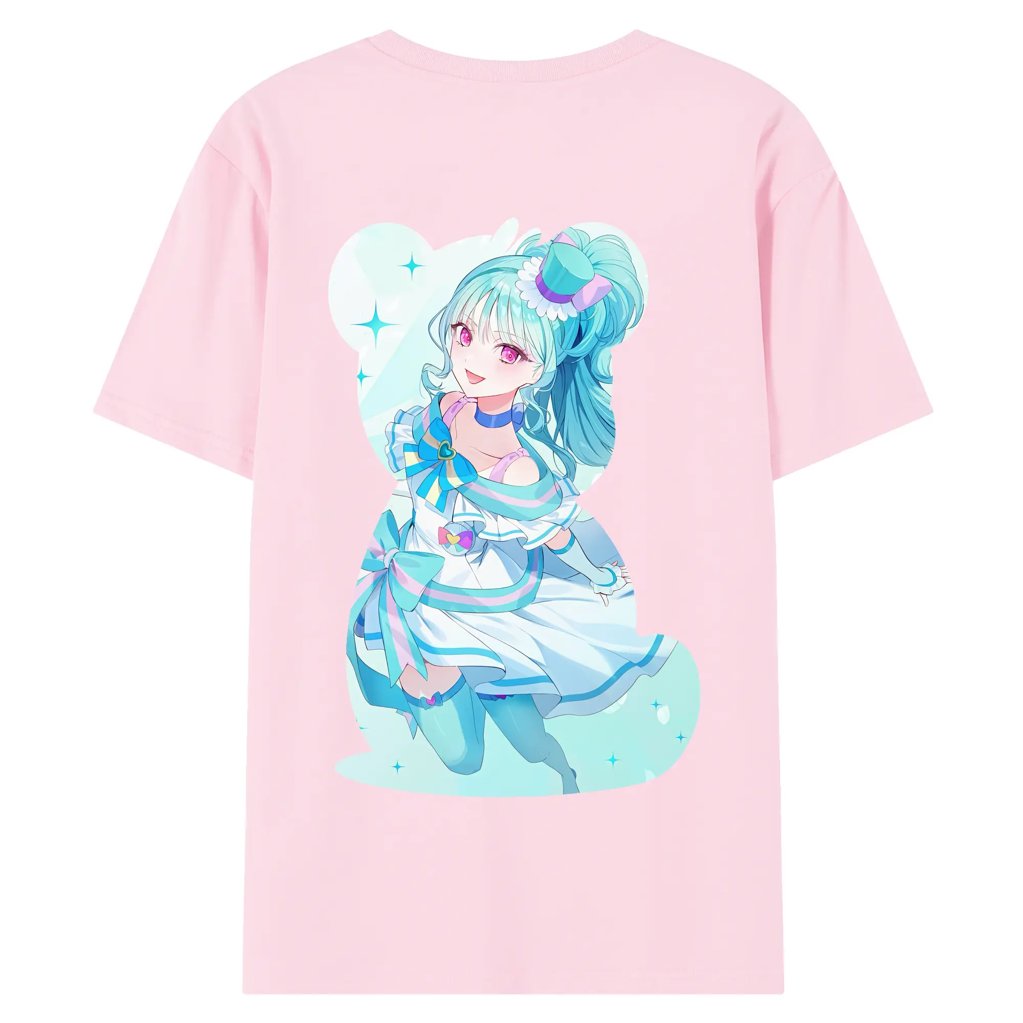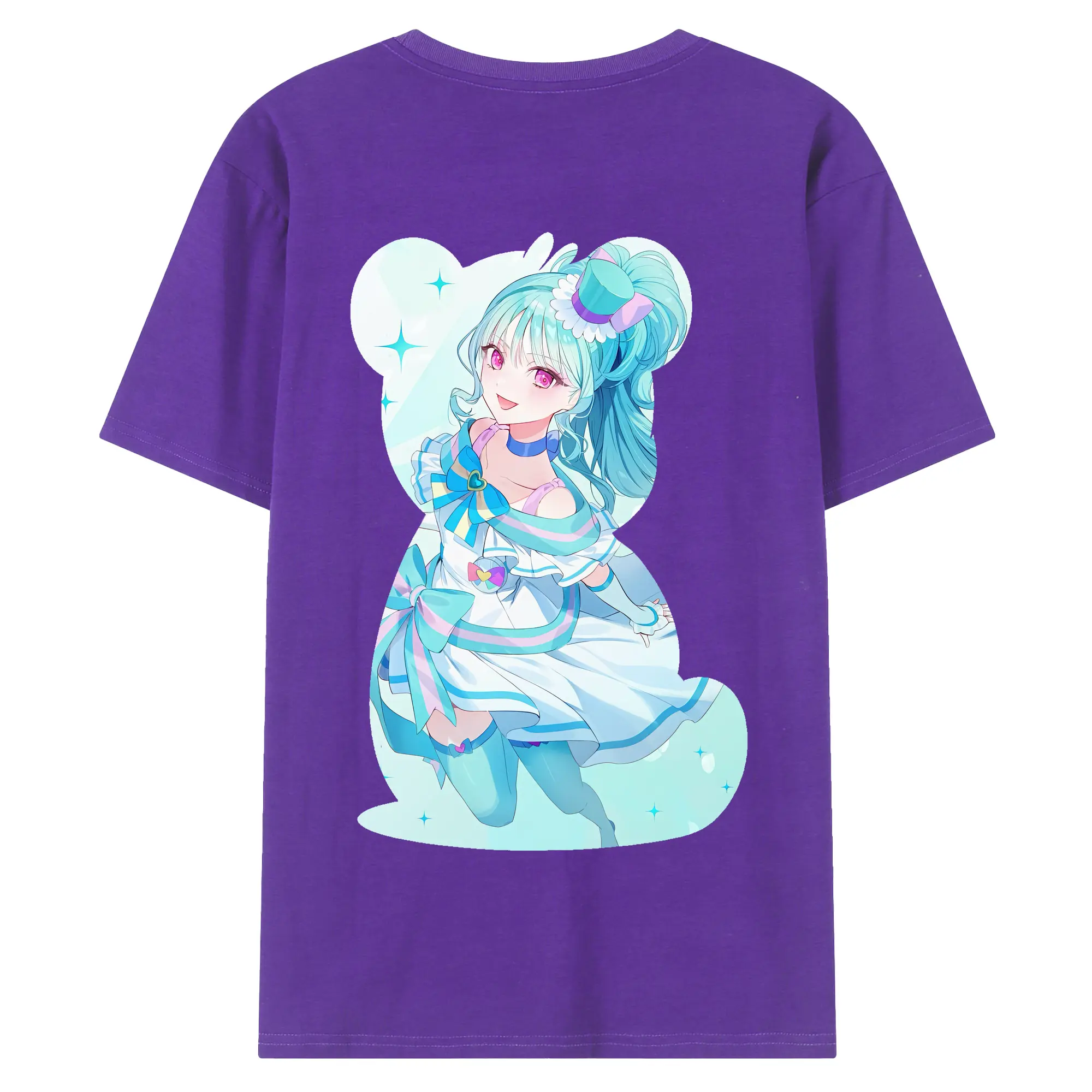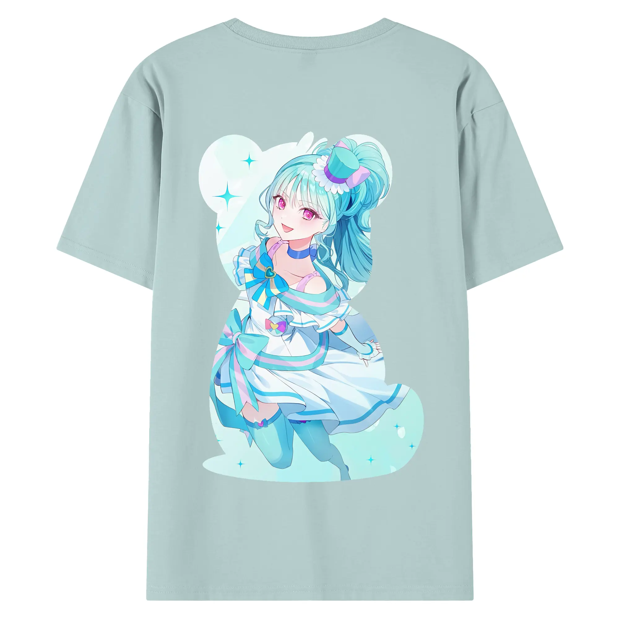 わんだふるぷりきゅあ グッズ 猫屋敷まゆ - 綿100% ヴィンテージ風 半袖Tシャツ ・ 背面プリント ・ 柔らか肌触り ・ 通気性 快適 ・ スポーツ カジュアル 外出用