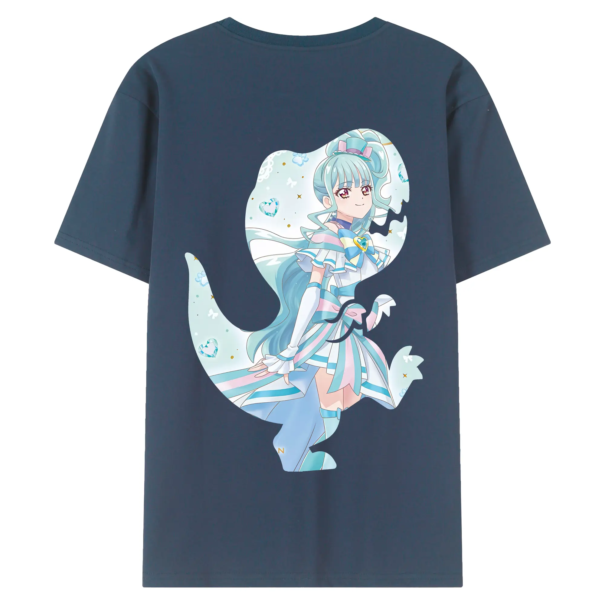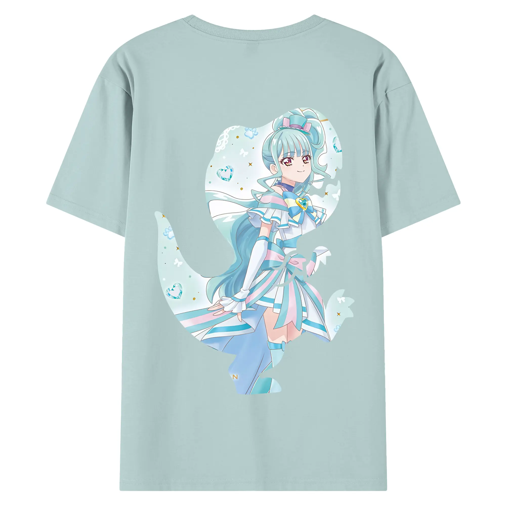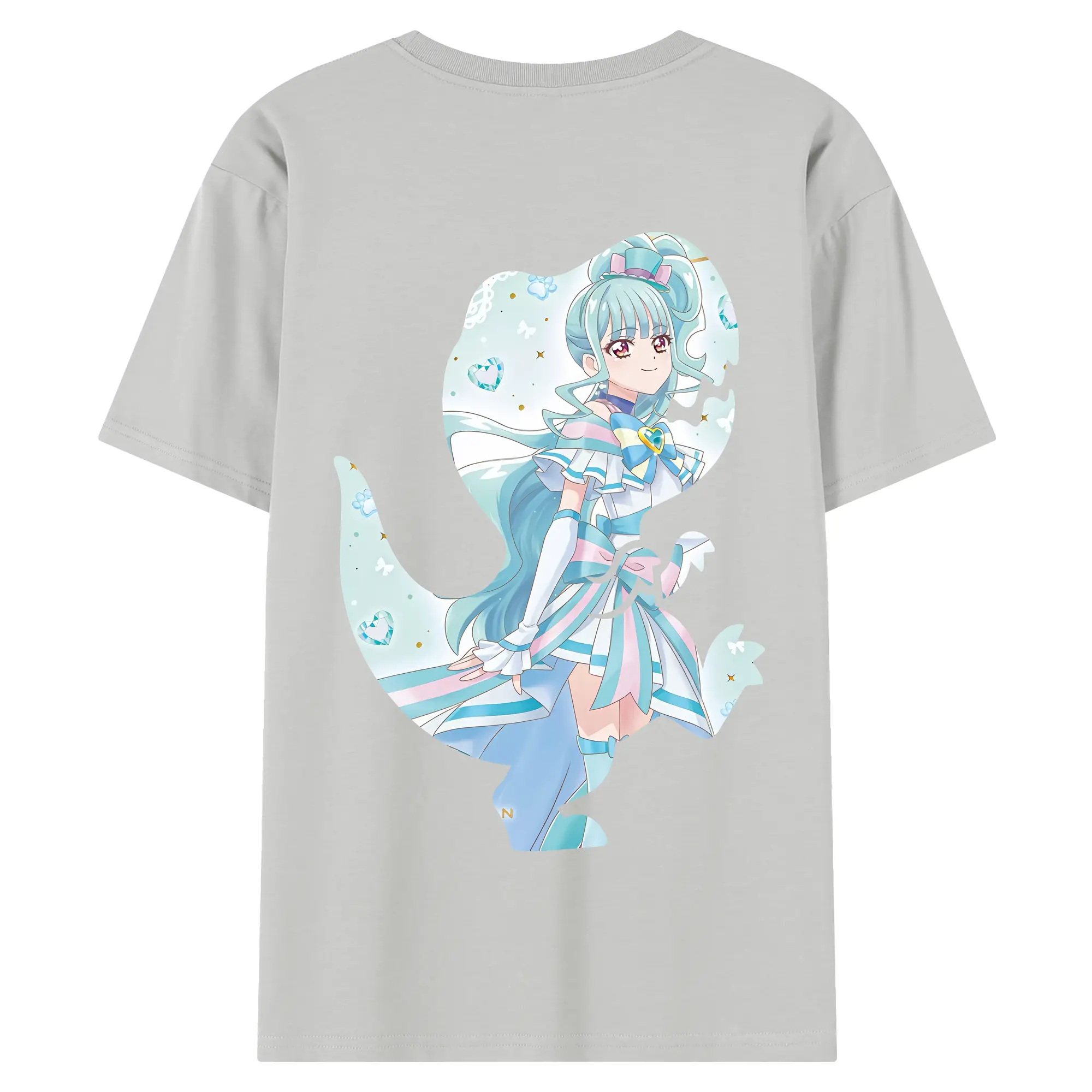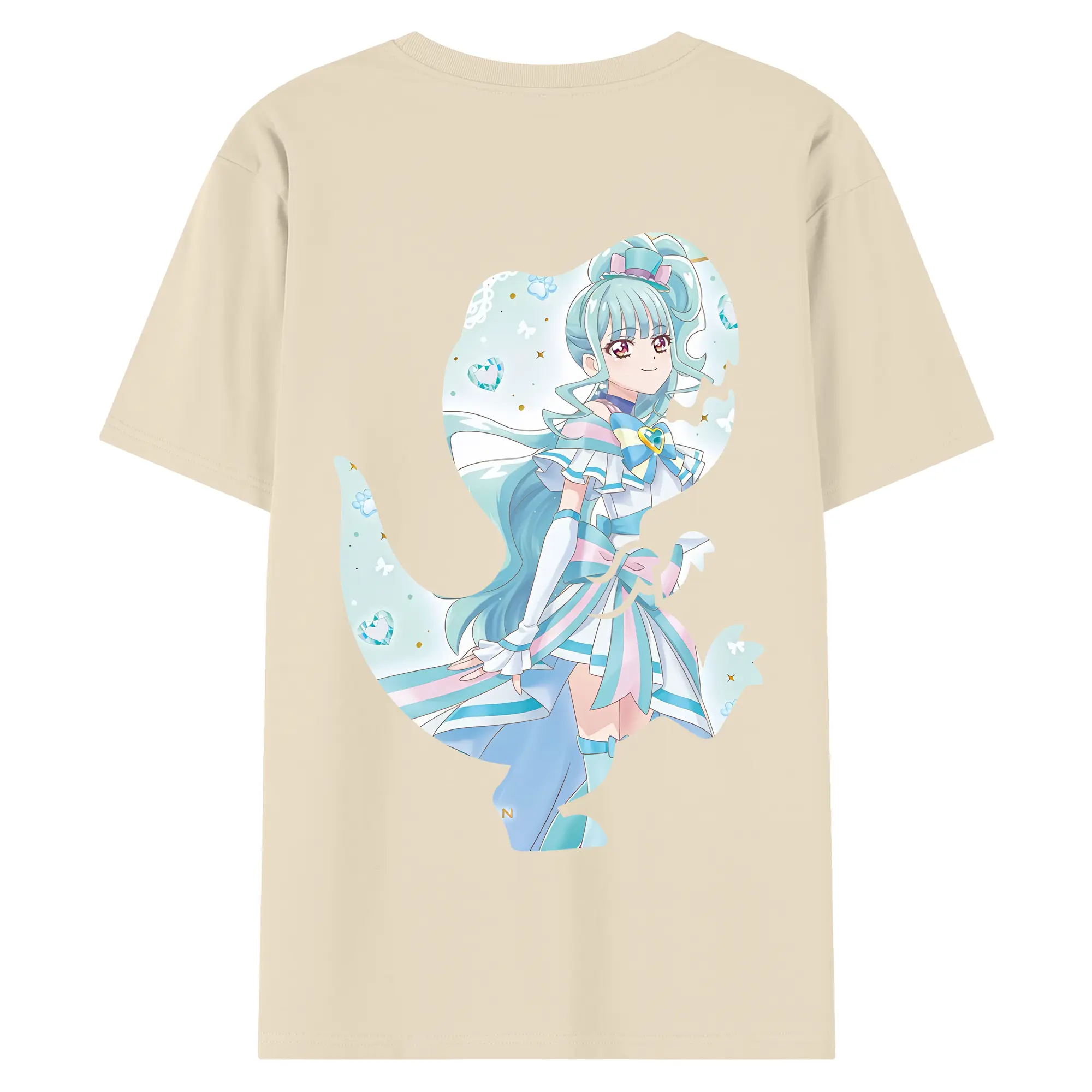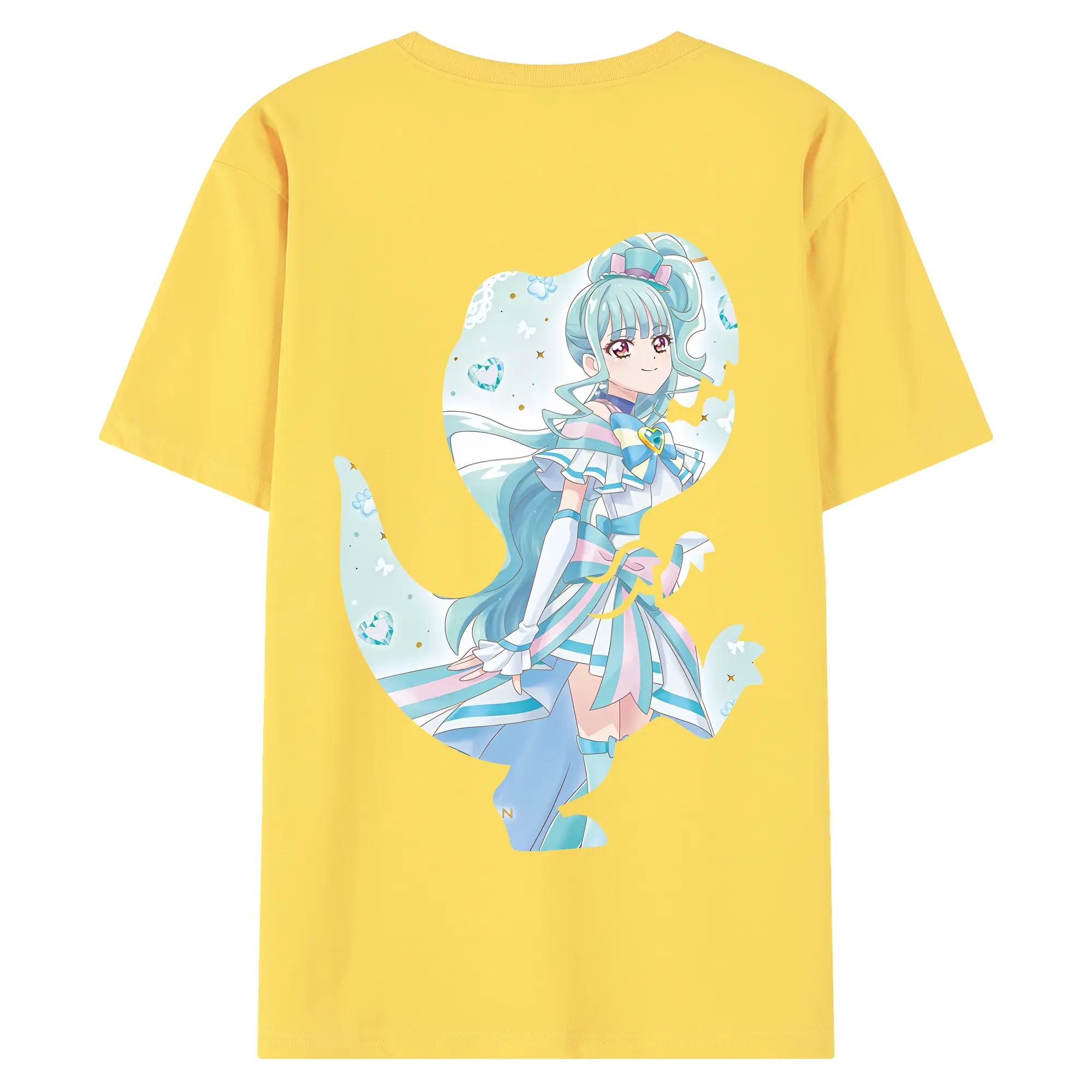 わんだふるぷりきゅあ グッズ 猫屋敷まゆ - 綿100% ヴィンテージ風 半袖Tシャツ ・ 背面プリント ・ 柔らか肌触り ・ 通気性 快適 ・ スポーツ カジュアル 外出用