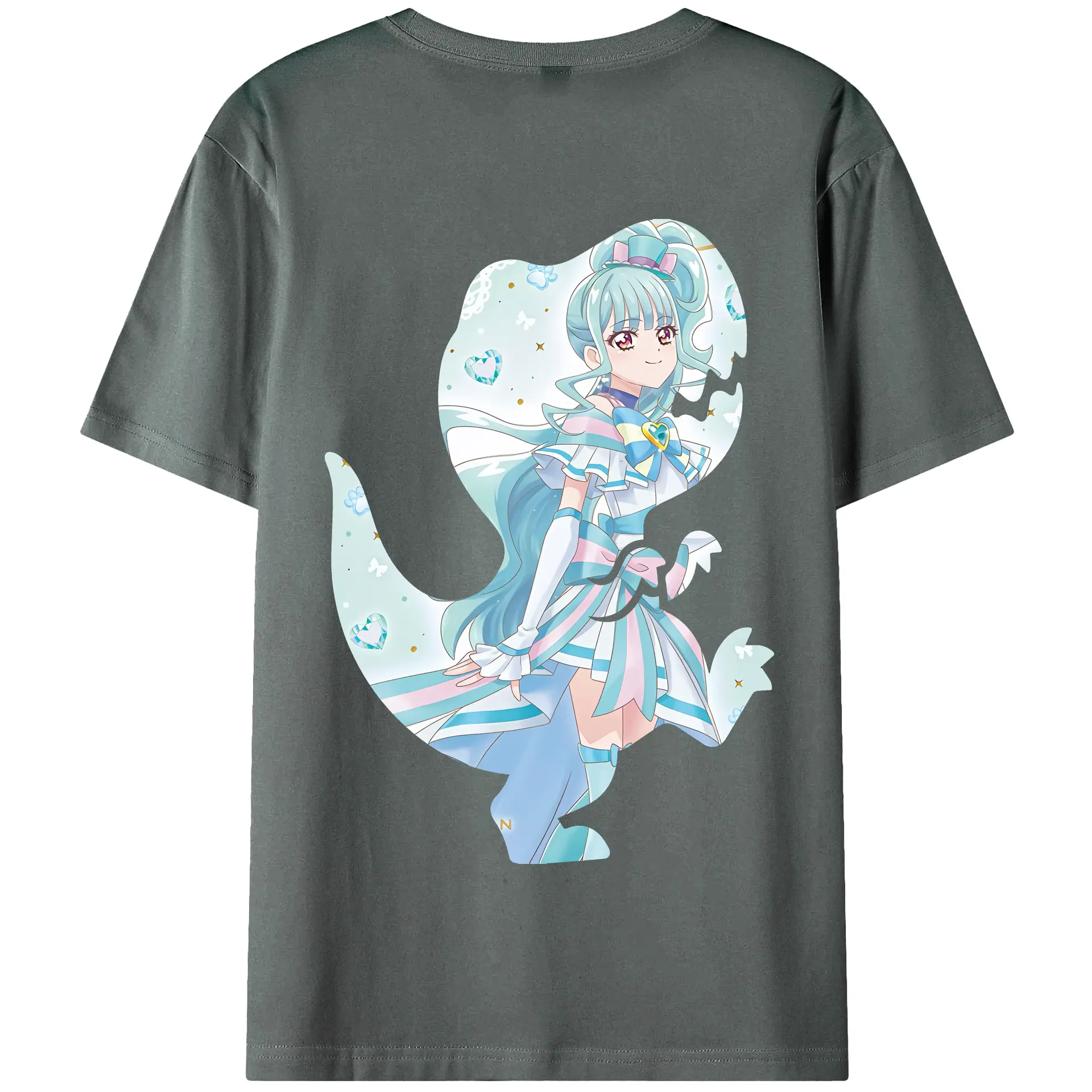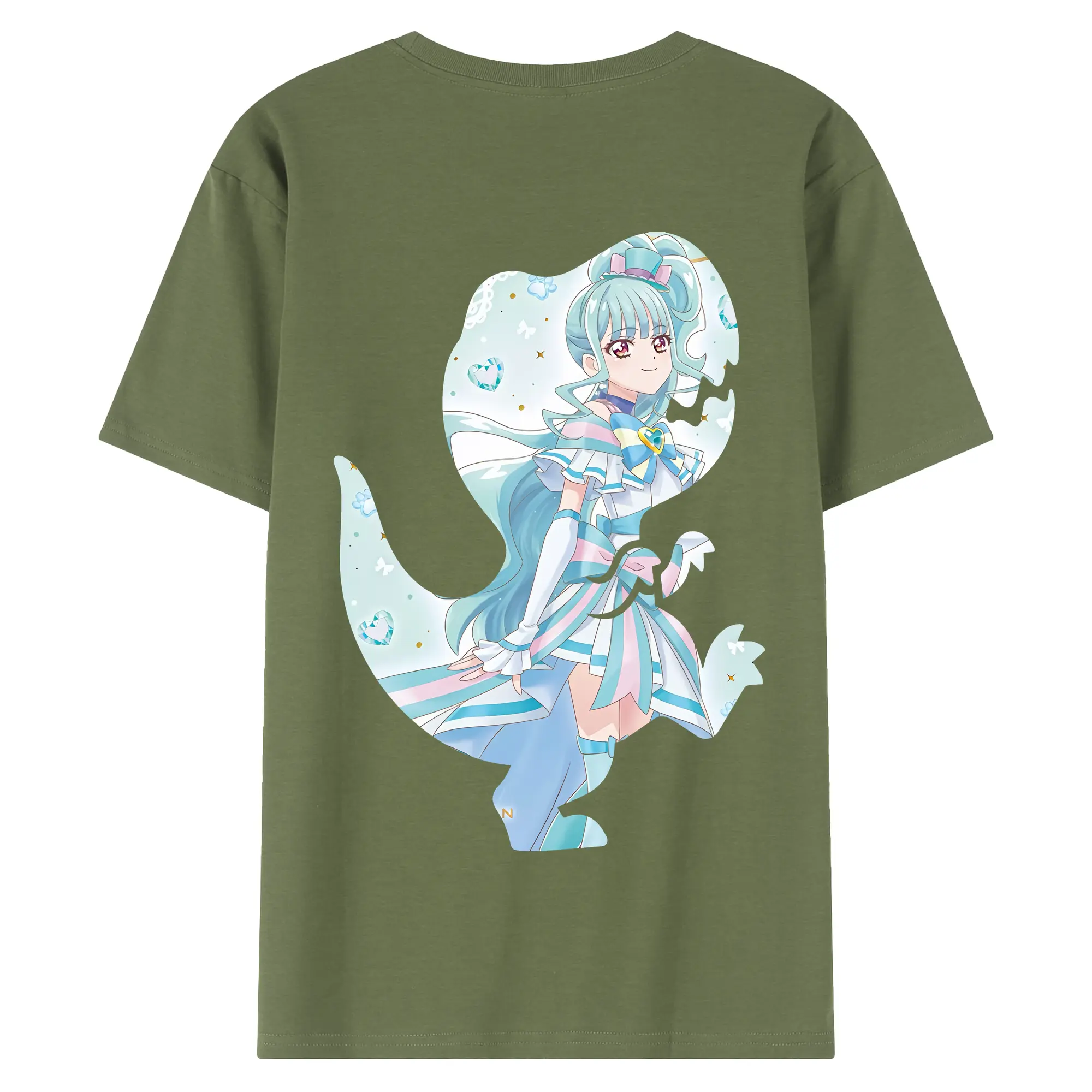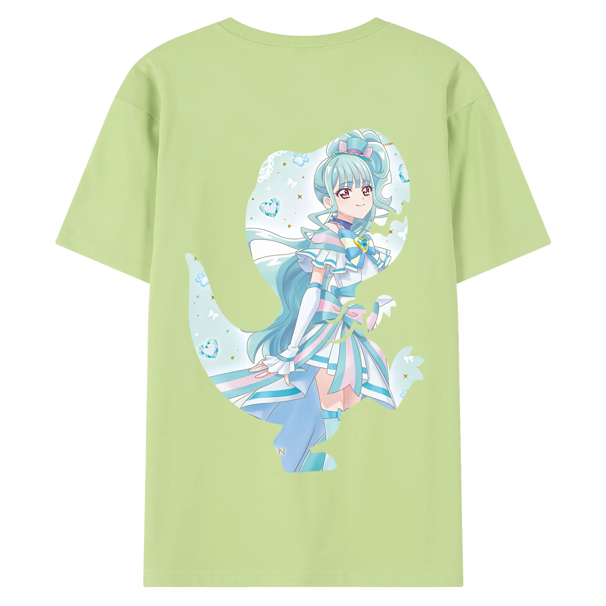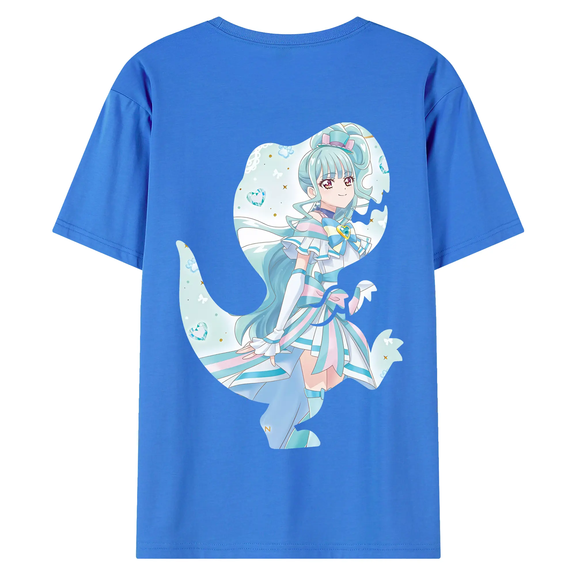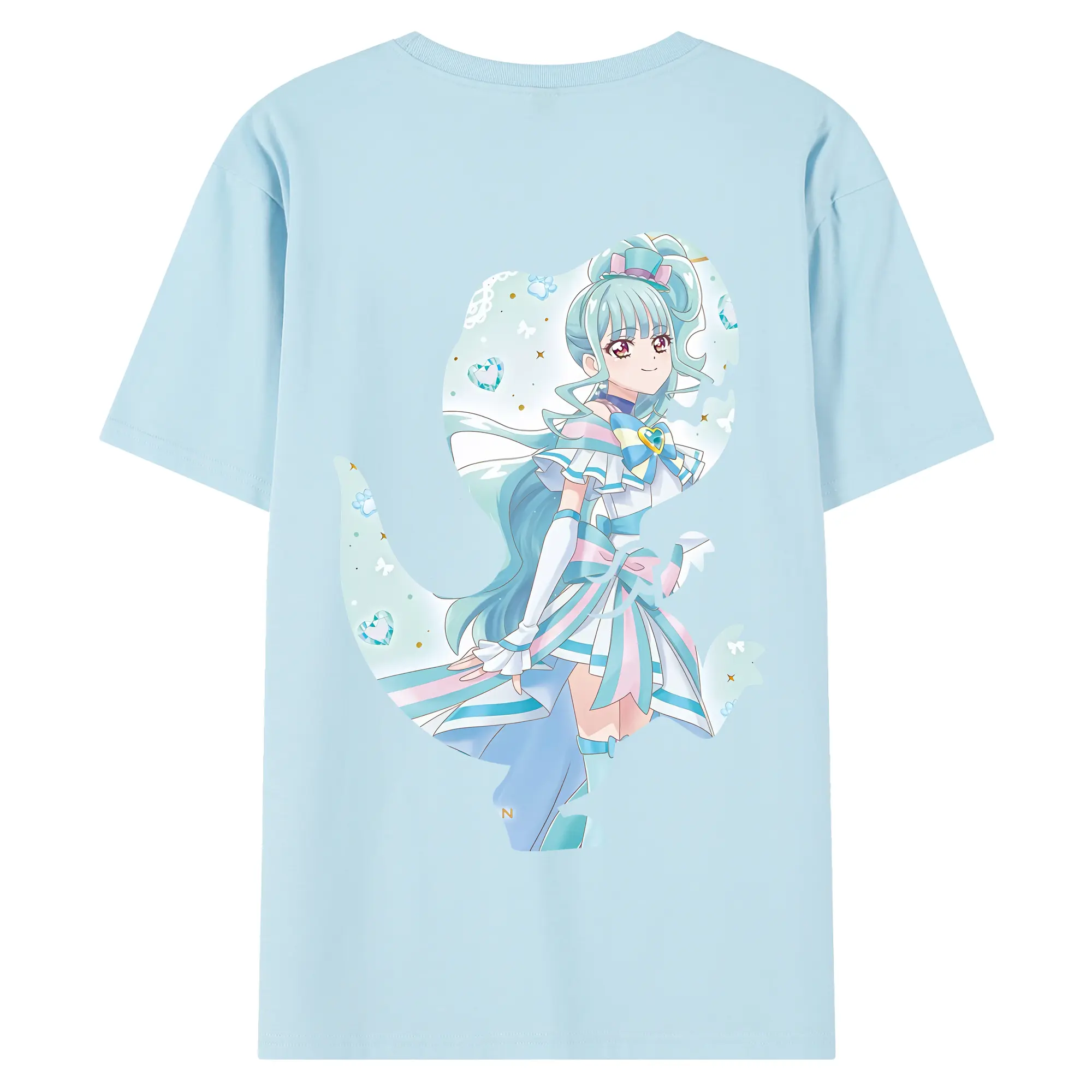わんだふるぷりきゅあ グッズ 猫屋敷まゆ - 綿100% ヴィンテージ風 半袖Tシャツ ・ 背面プリント ・ 柔らか肌触り ・ 通気性 快適 ・ スポーツ カジュアル 外出用
