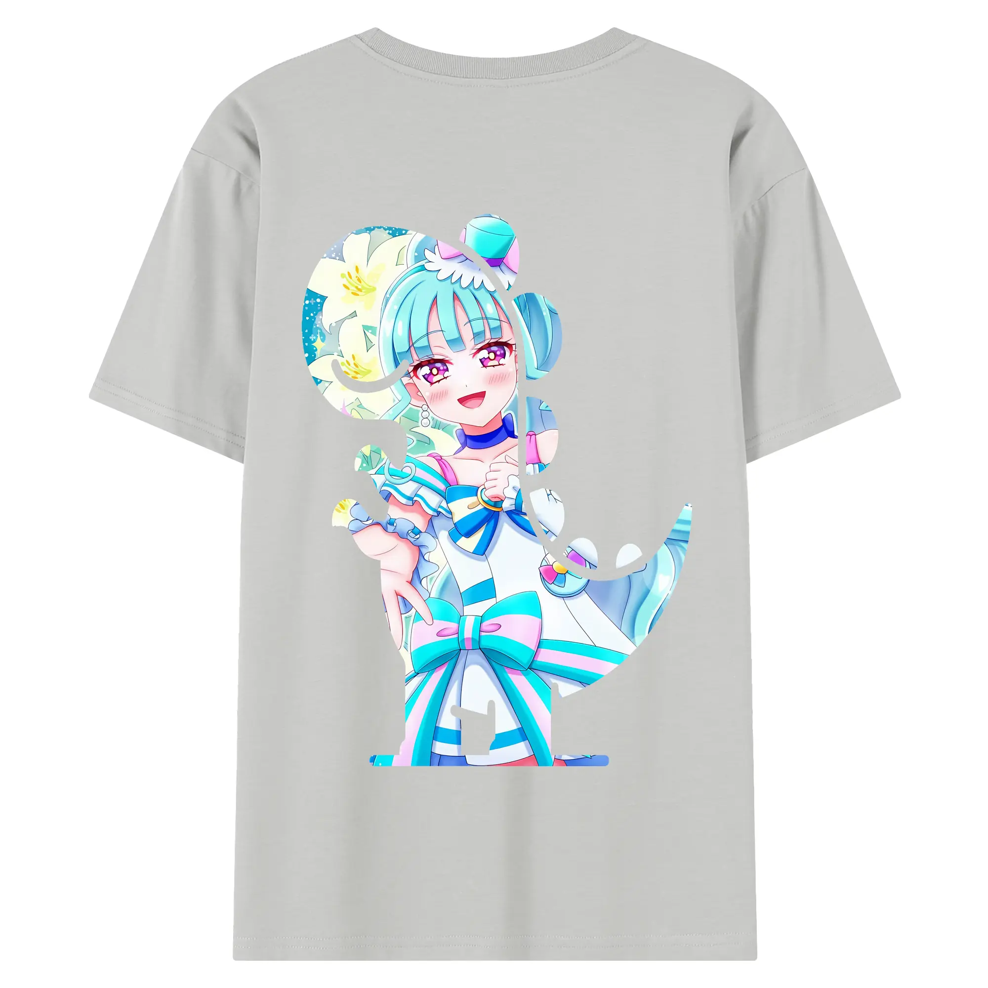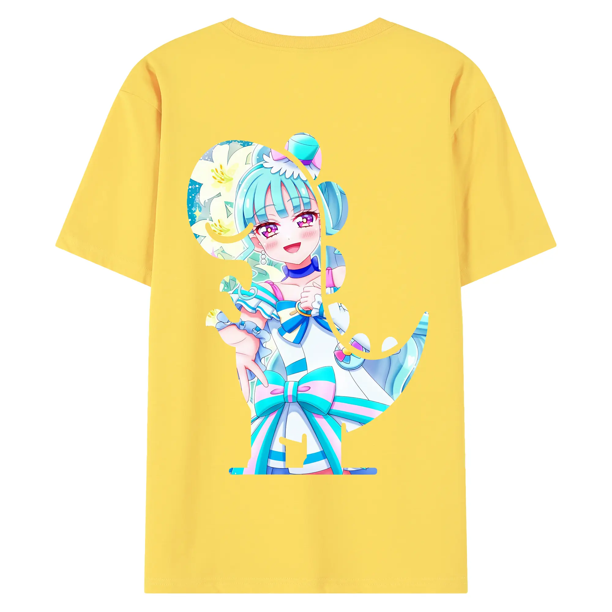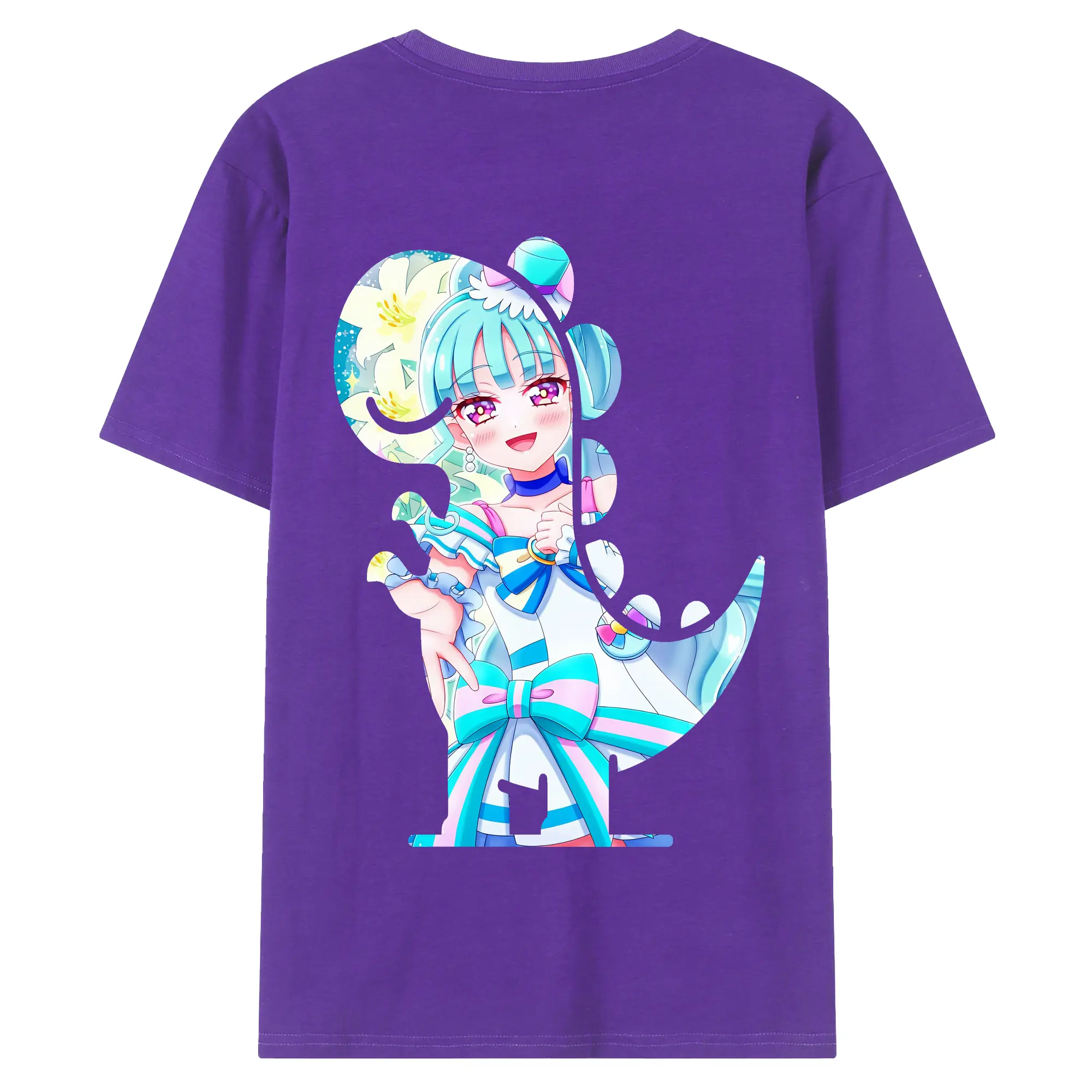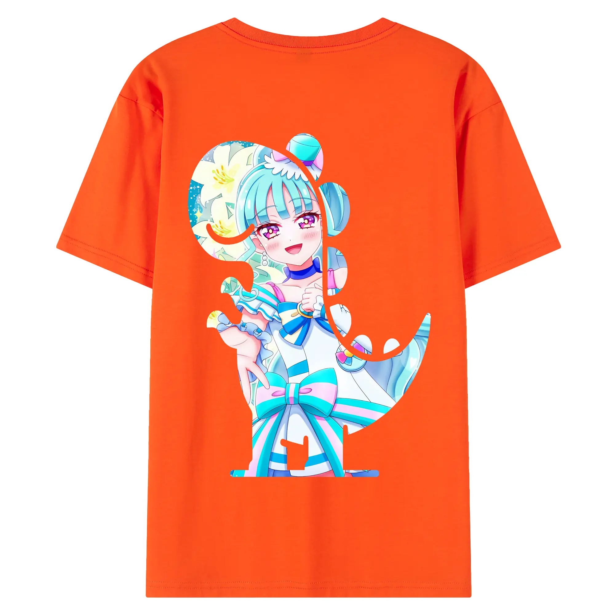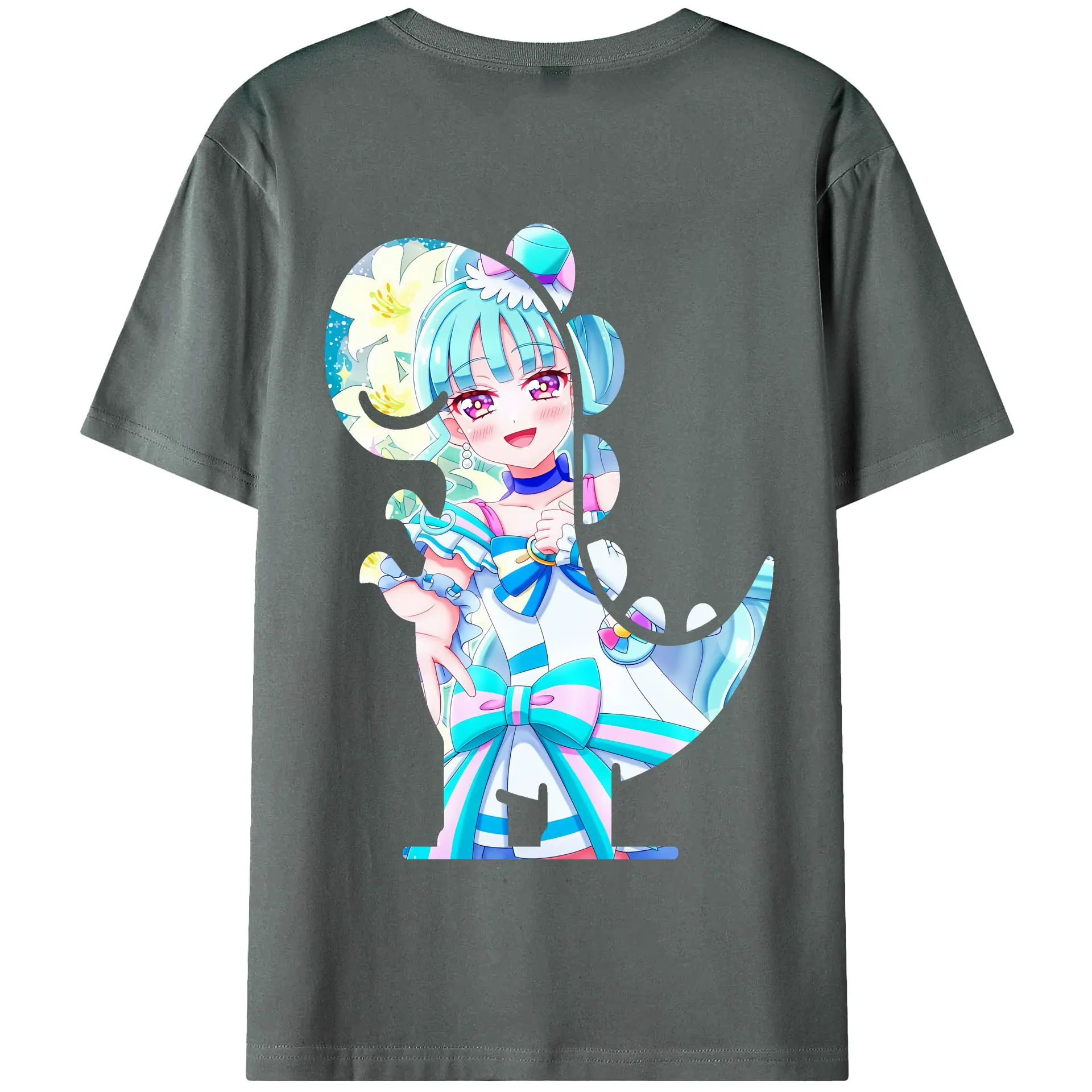 わんだふるぷりきゅあ グッズ 猫屋敷まゆ - 綿100% ヴィンテージ風 半袖Tシャツ ・ 背面プリント ・ 柔らか肌触り ・ 通気性 快適 ・ スポーツ カジュアル 外出用