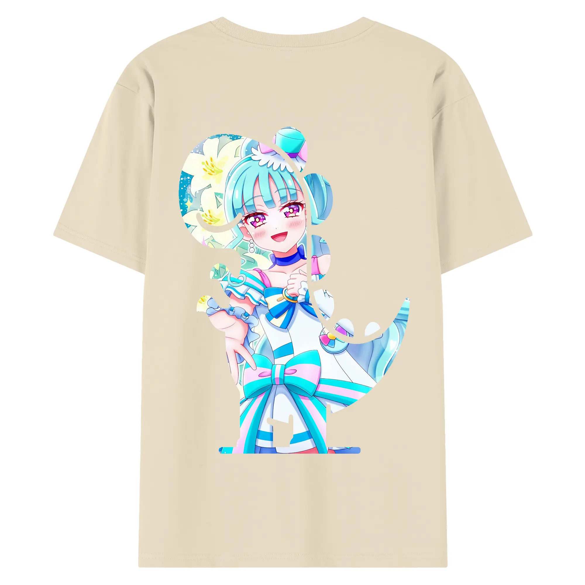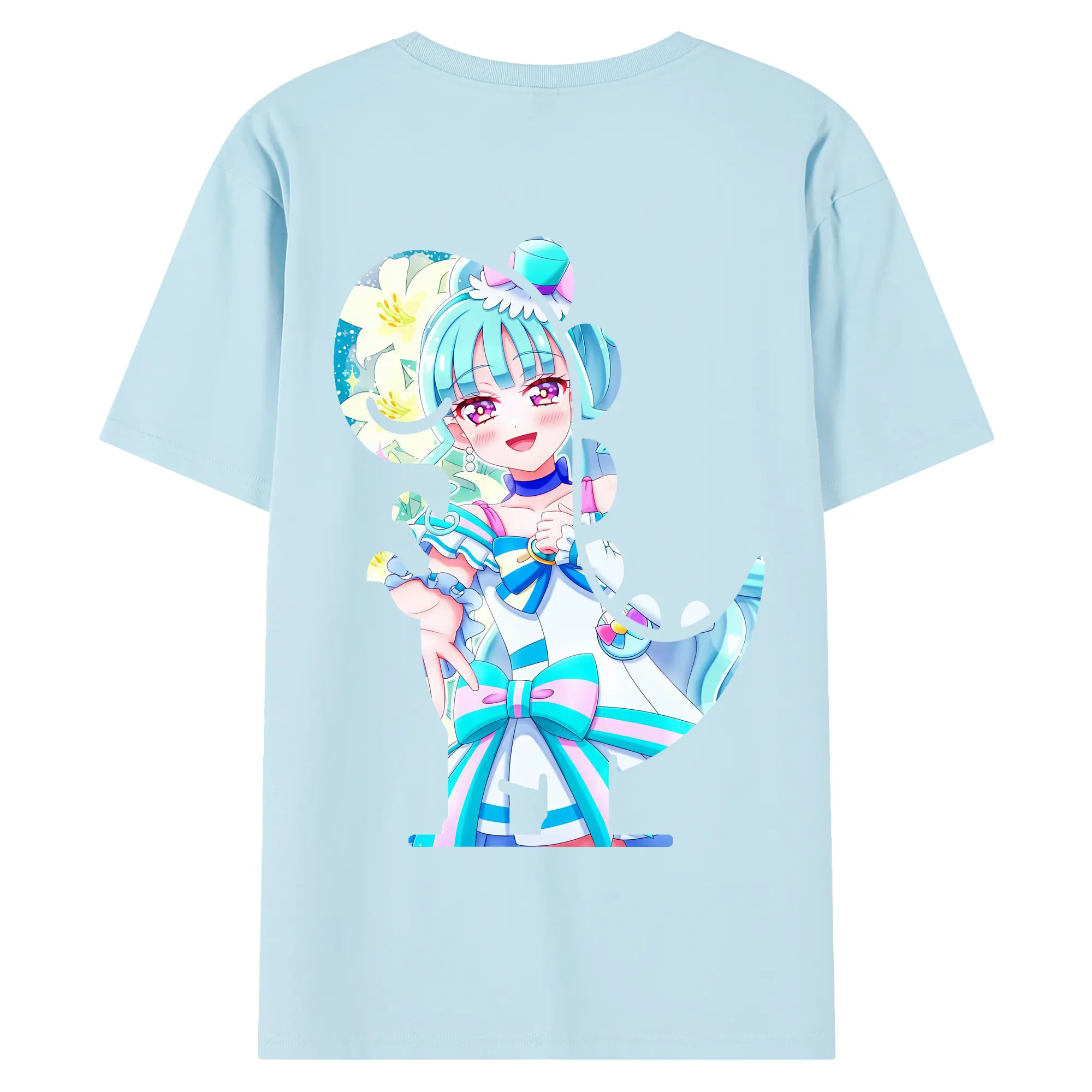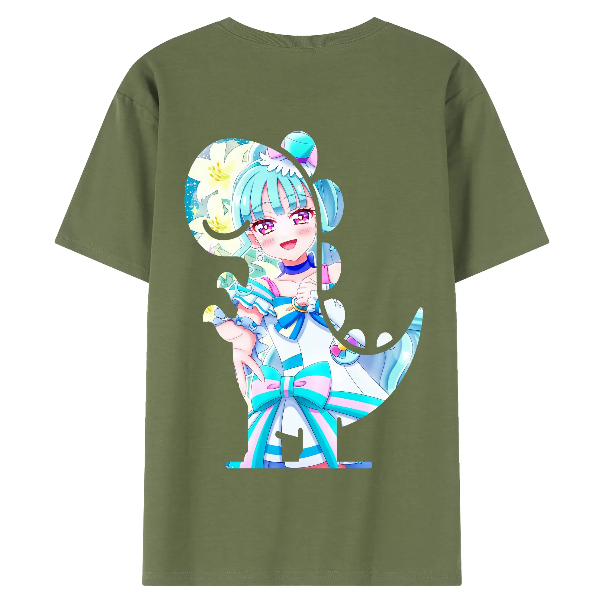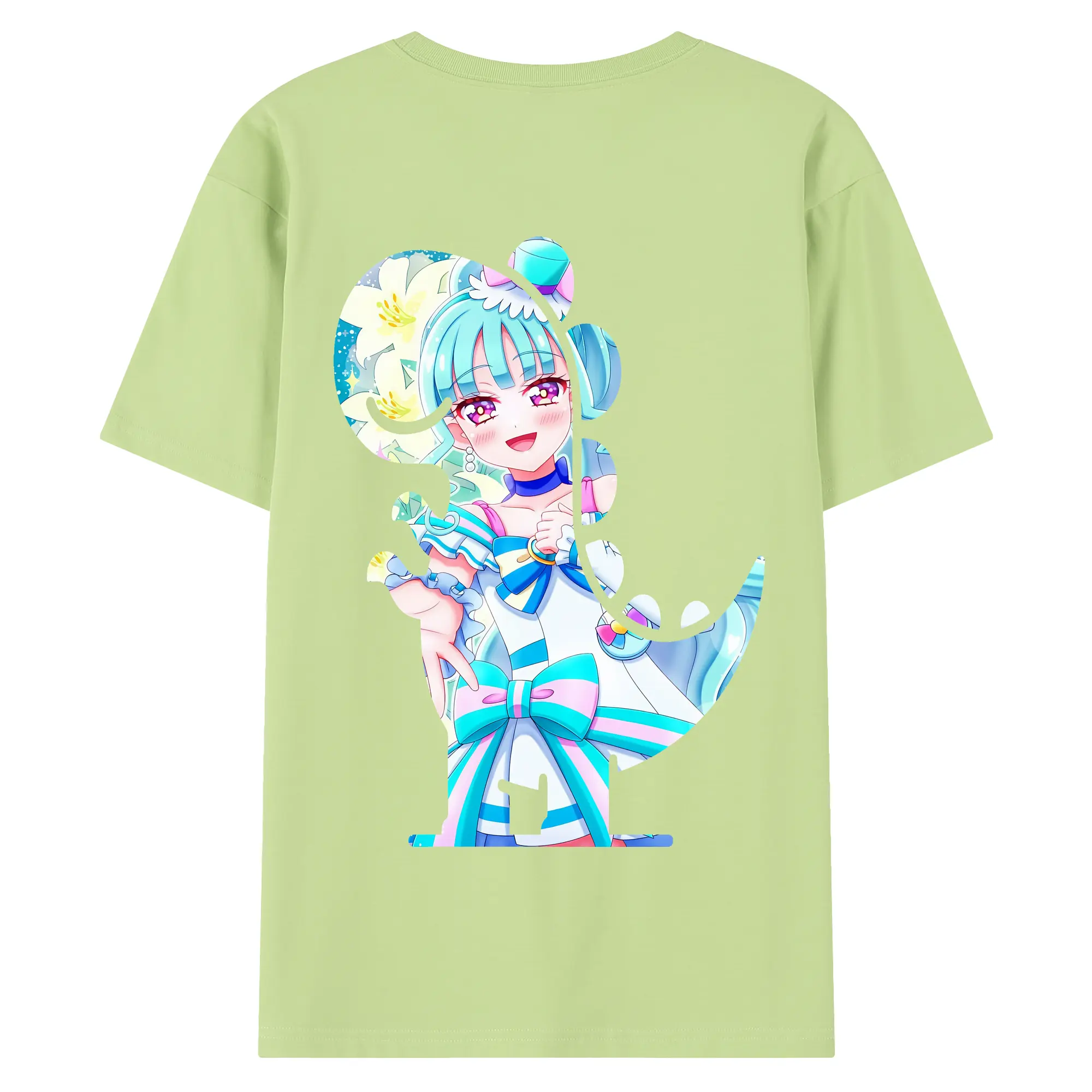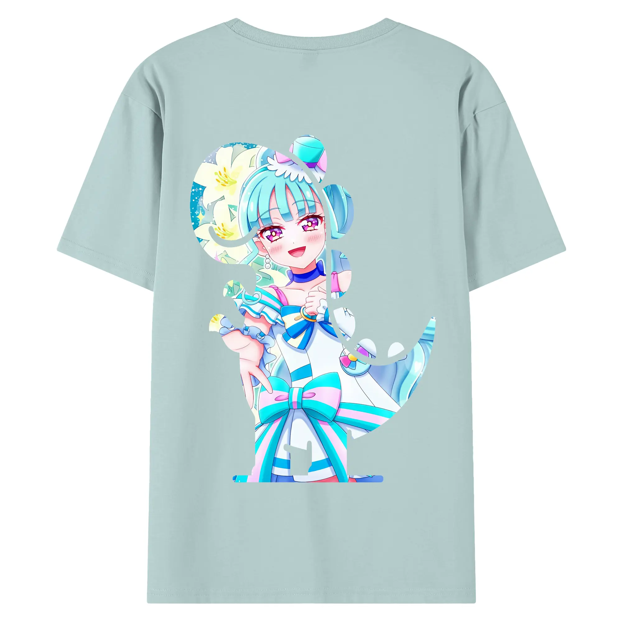 わんだふるぷりきゅあ グッズ 猫屋敷まゆ - 綿100% ヴィンテージ風 半袖Tシャツ ・ 背面プリント ・ 柔らか肌触り ・ 通気性 快適 ・ スポーツ カジュアル 外出用