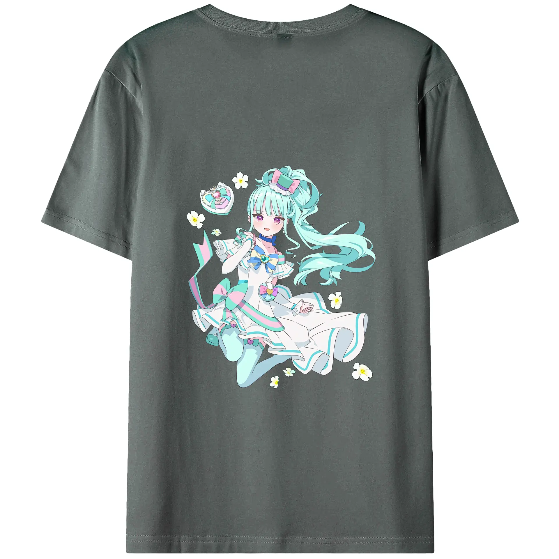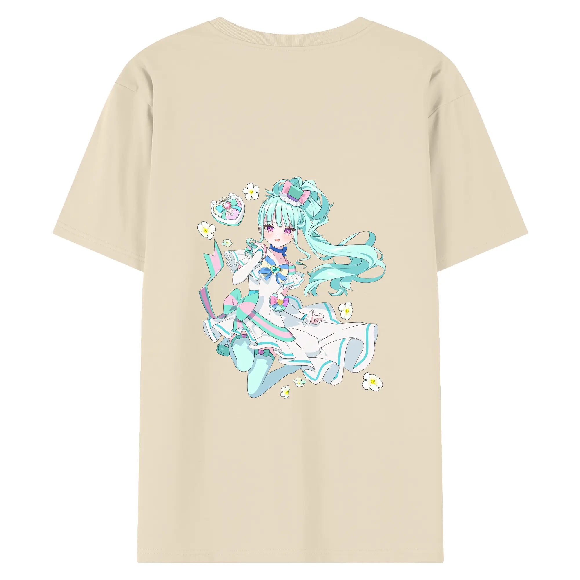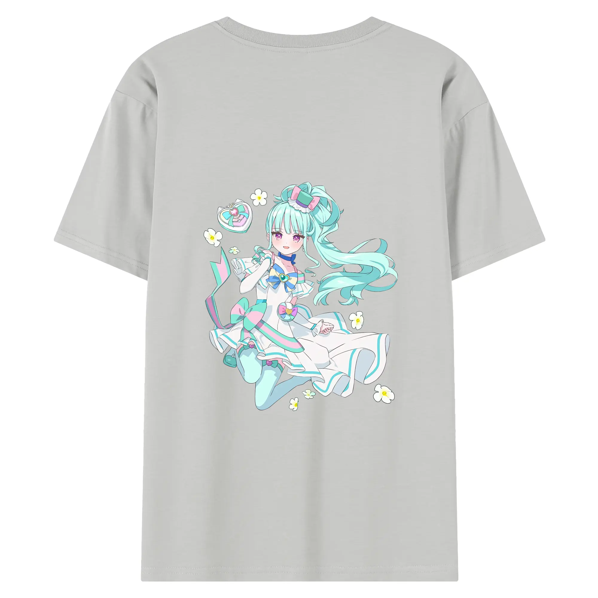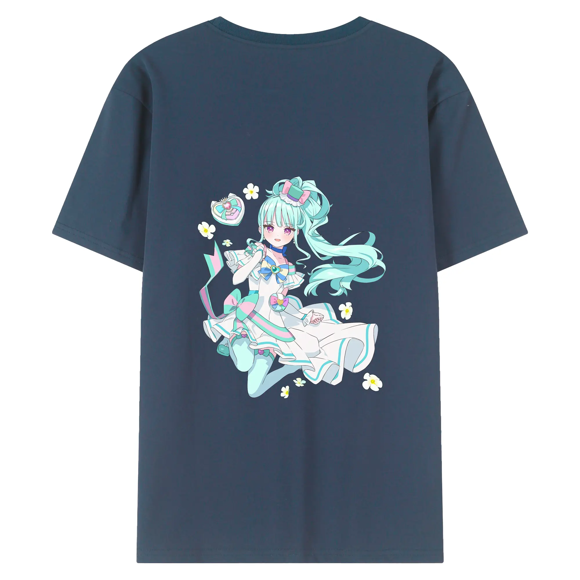 わんだふるぷりきゅあ グッズ 猫屋敷まゆ - 綿100% ヴィンテージ風 半袖Tシャツ ・ 背面プリント ・ 柔らか肌触り ・ 通気性 快適 ・ スポーツ カジュアル 外出用