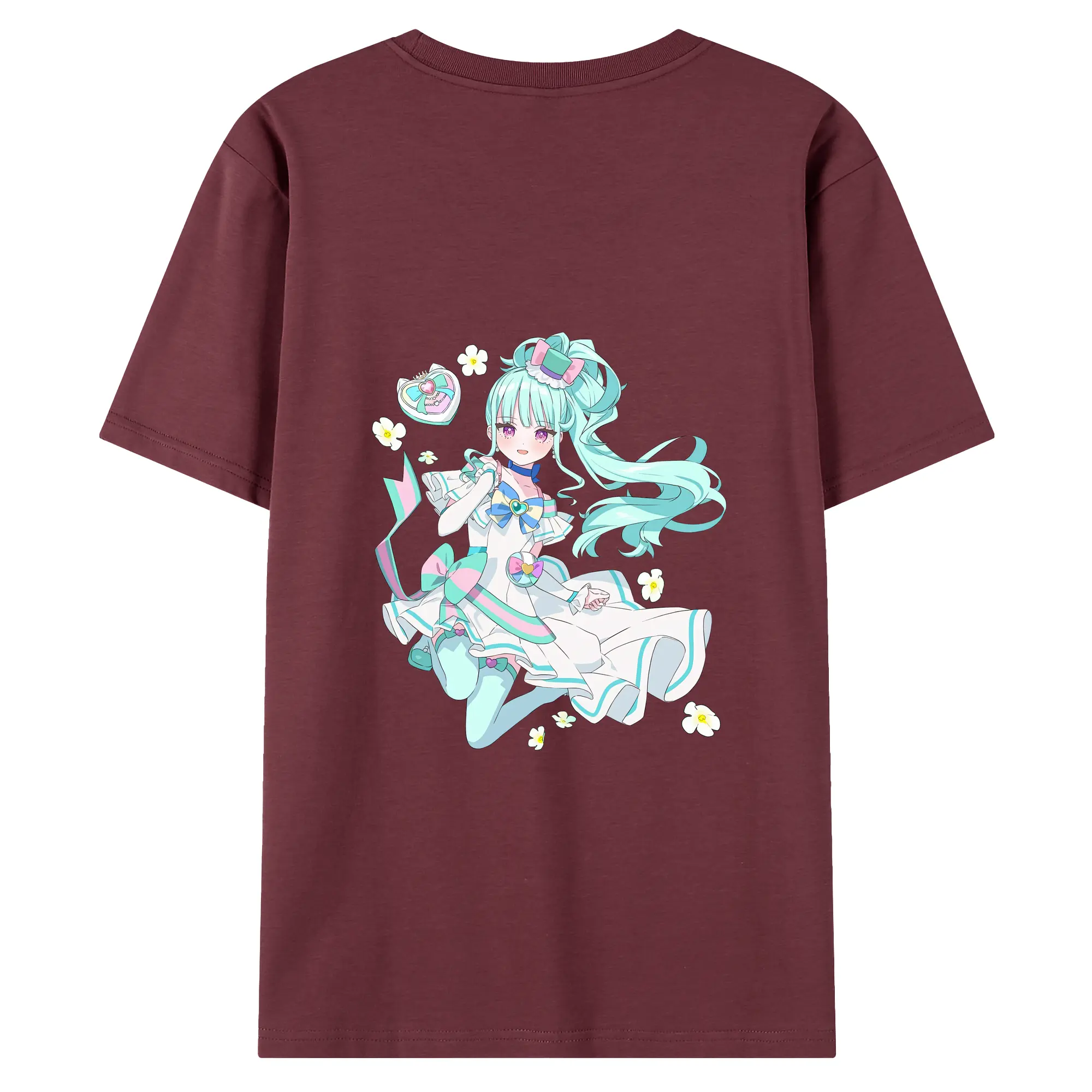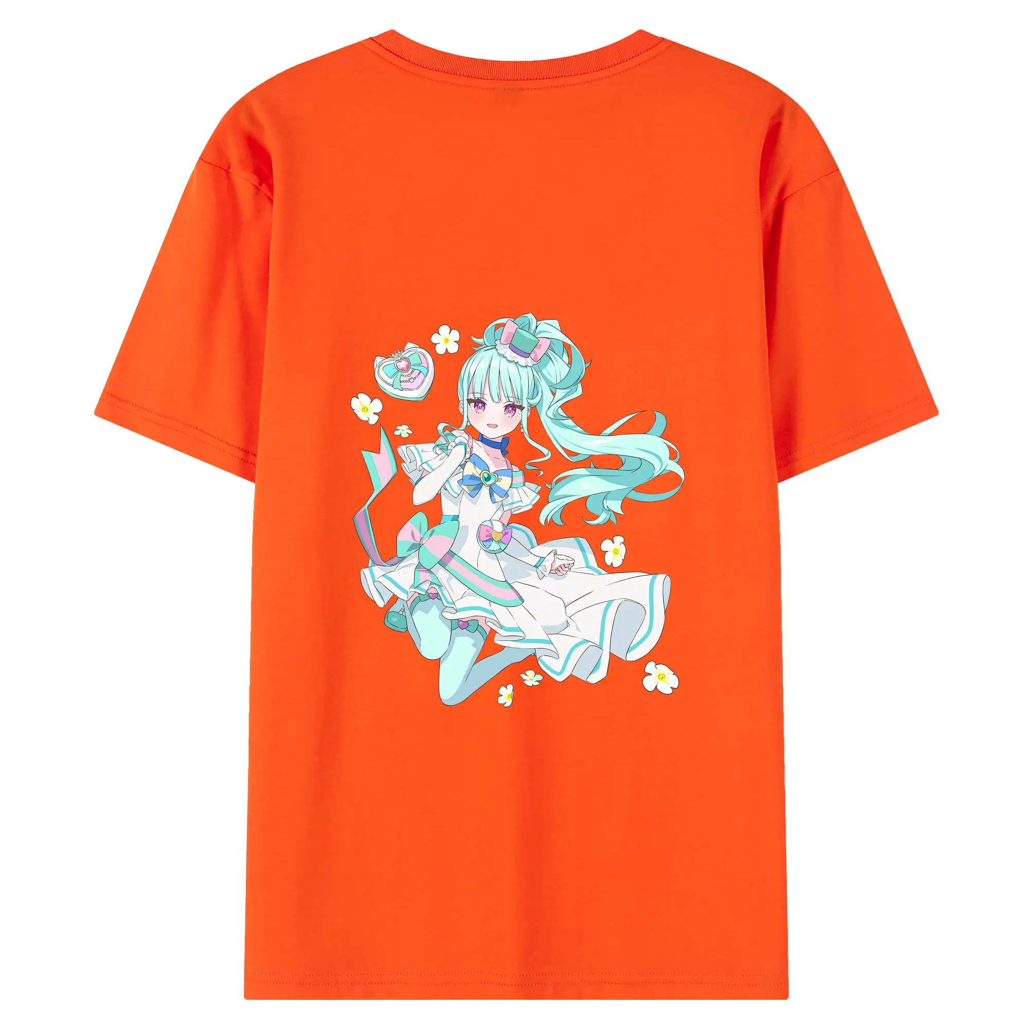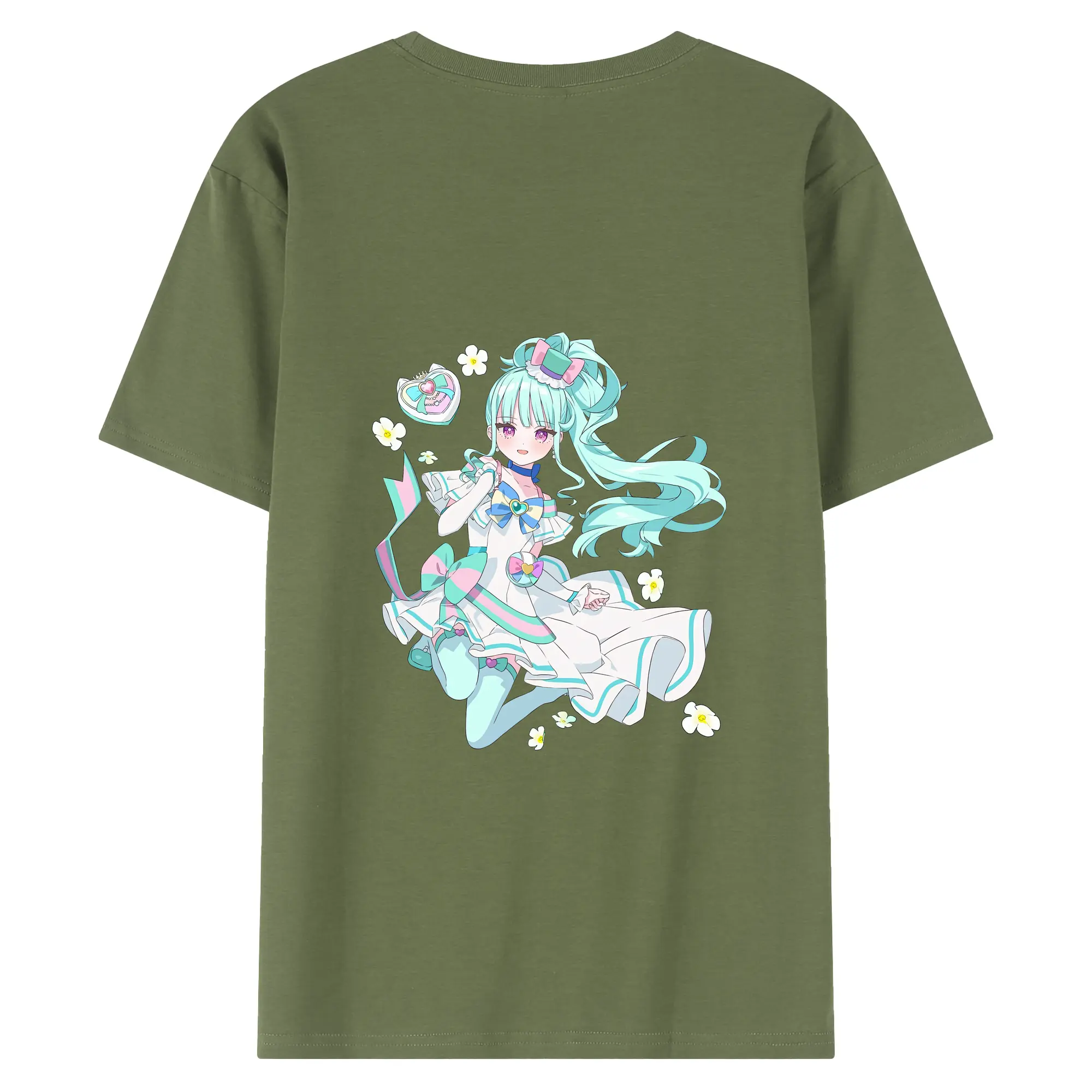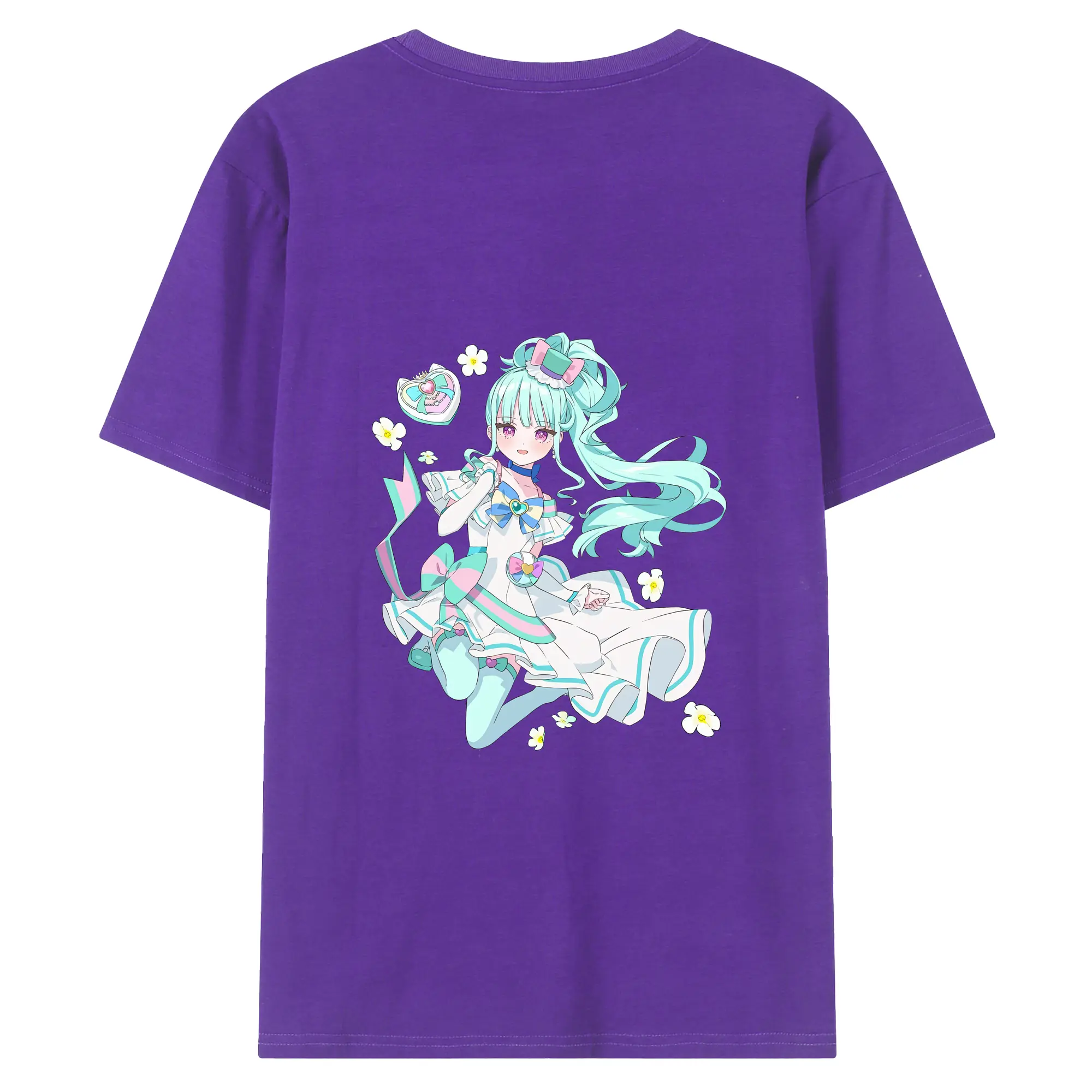 わんだふるぷりきゅあ グッズ 猫屋敷まゆ - 綿100% ヴィンテージ風 半袖Tシャツ ・ 背面プリント ・ 柔らか肌触り ・ 通気性 快適 ・ スポーツ カジュアル 外出用