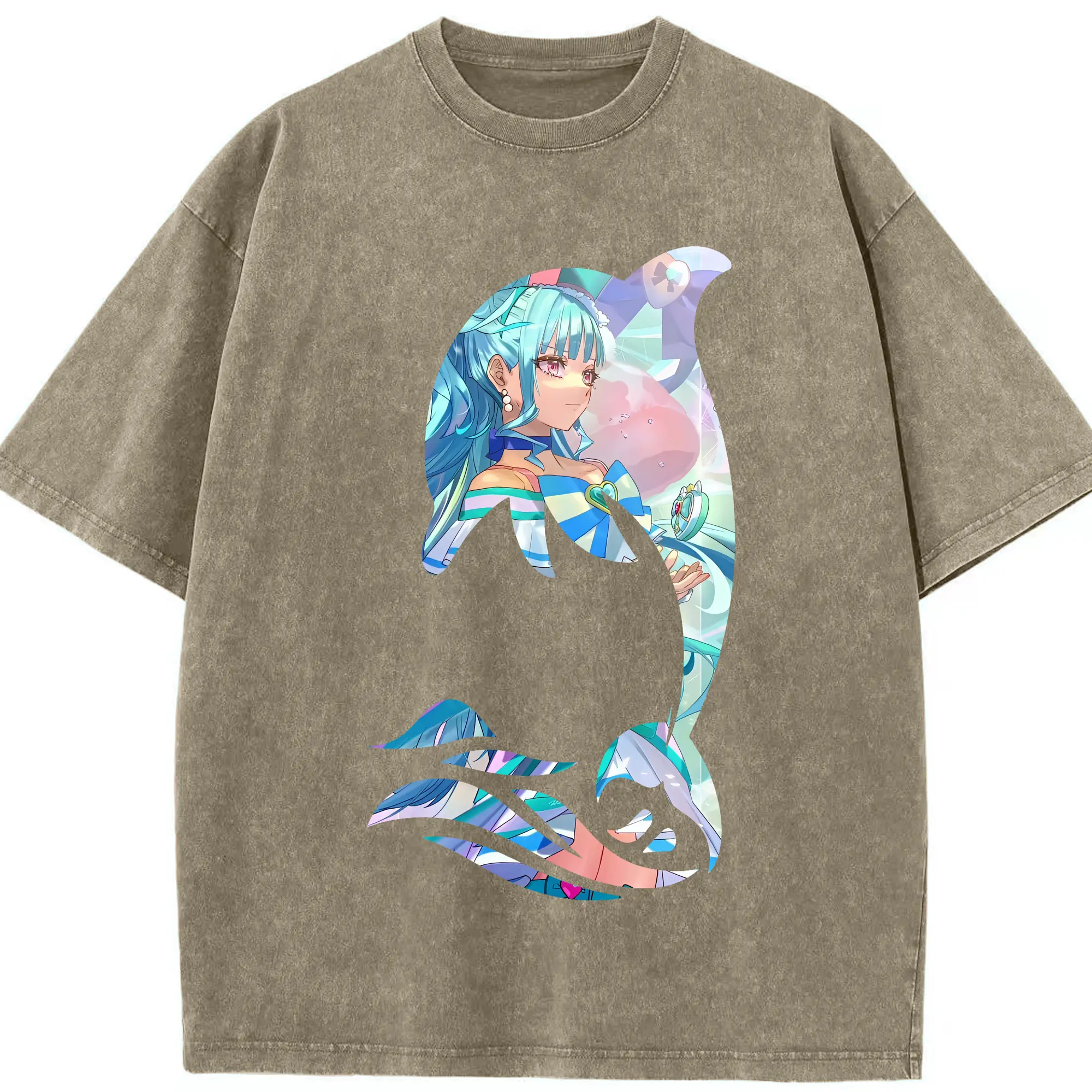 わんだふるぷりきゅあ グッズ 猫屋敷まゆ - 綿100% ヴィンテージ風 半袖Tシャツ ・ 背面プリント ・ 柔らか肌触り ・ 通気性 快適 ・ スポーツ カジュアル 外出用