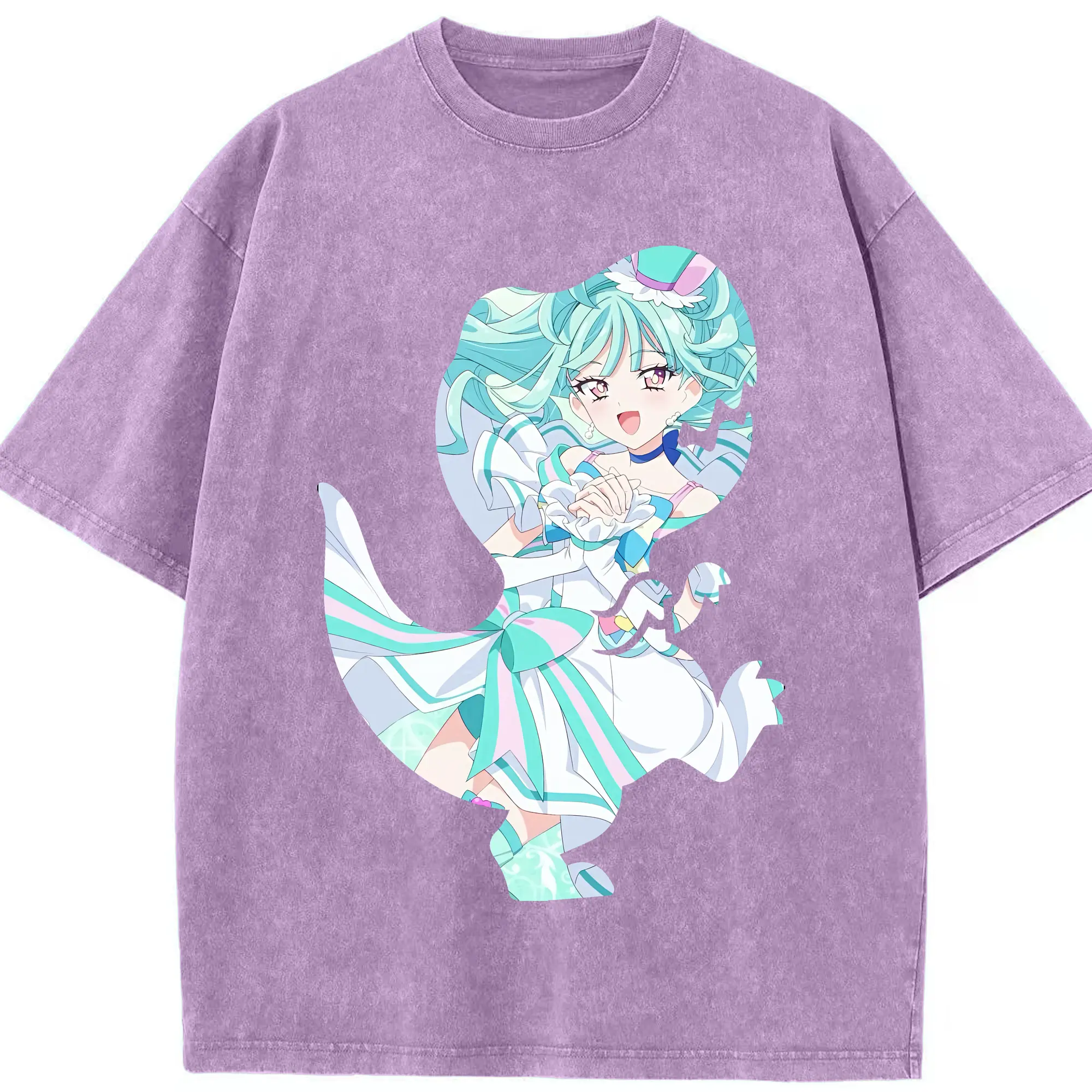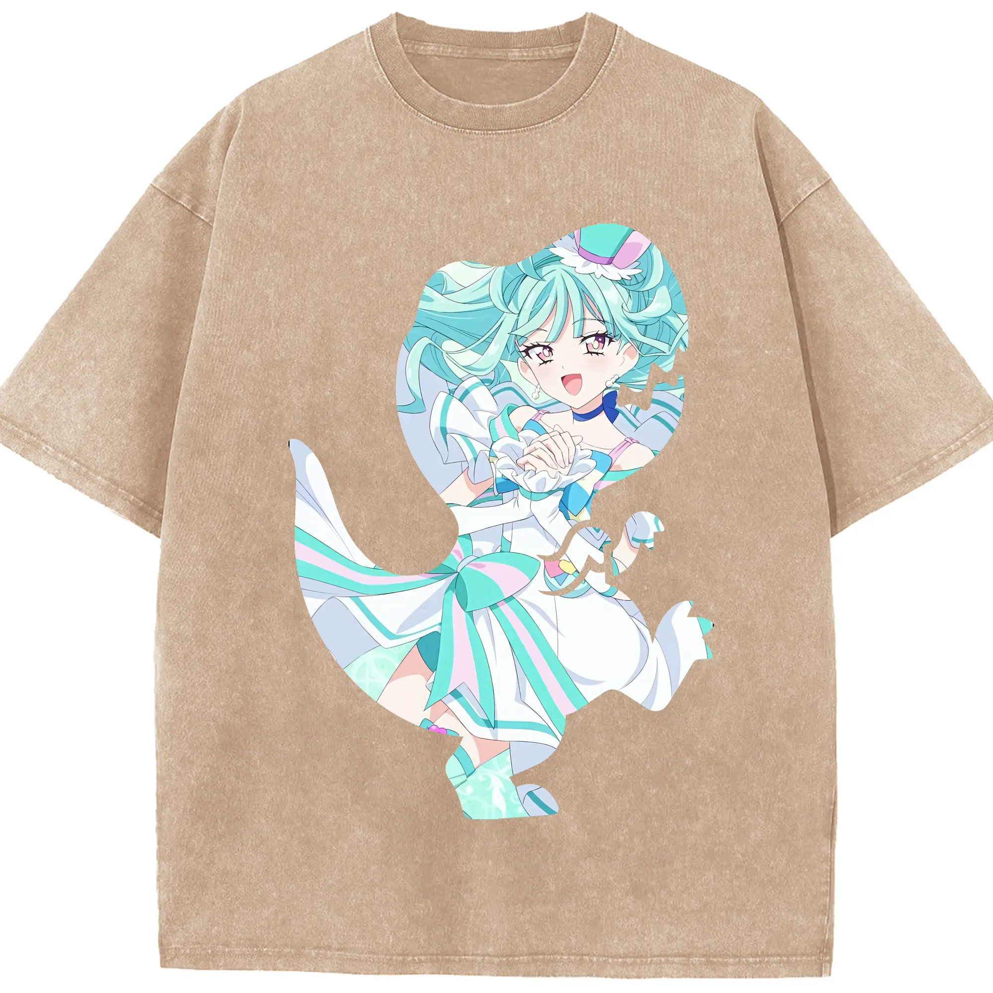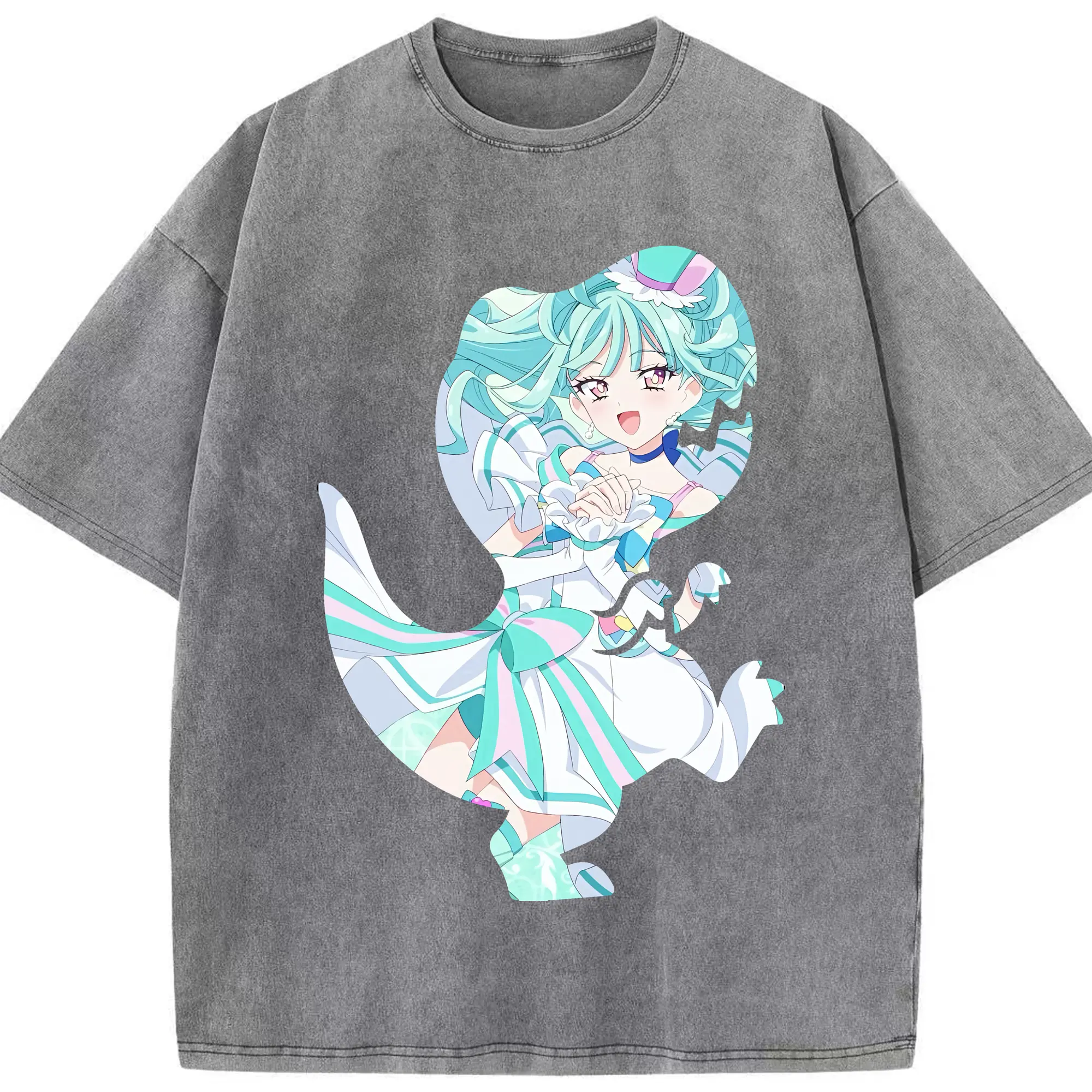 わんだふるぷりきゅあ グッズ 猫屋敷まゆ - 綿100% ヴィンテージ風 半袖Tシャツ ・ 背面プリント ・ 柔らか肌触り ・ 通気性 快適 ・ スポーツ カジュアル 外出用