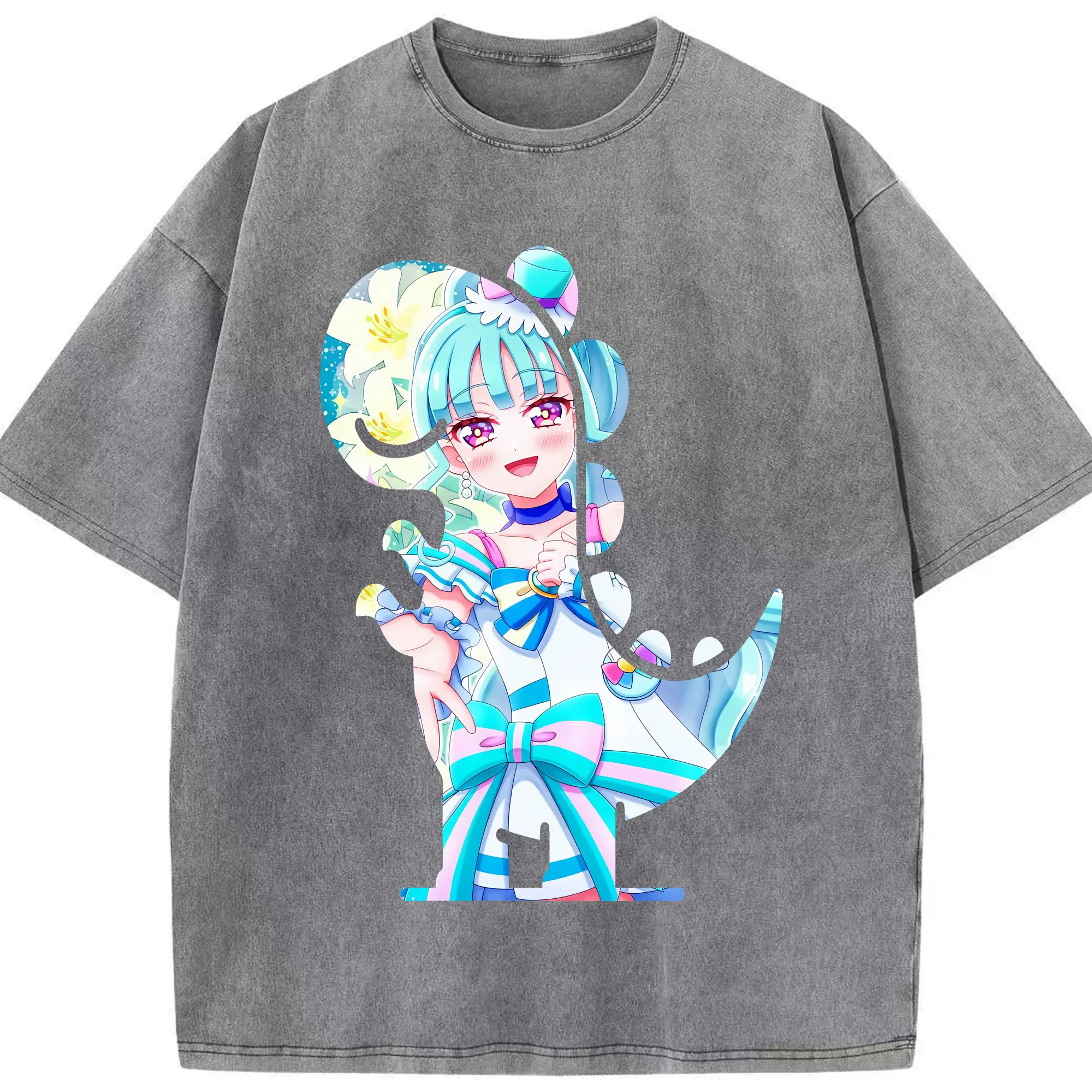 わんだふるぷりきゅあ グッズ 猫屋敷まゆ - 綿100% ヴィンテージ風 半袖Tシャツ ・ 背面プリント ・ 柔らか肌触り ・ 通気性 快適 ・ スポーツ カジュアル 外出用