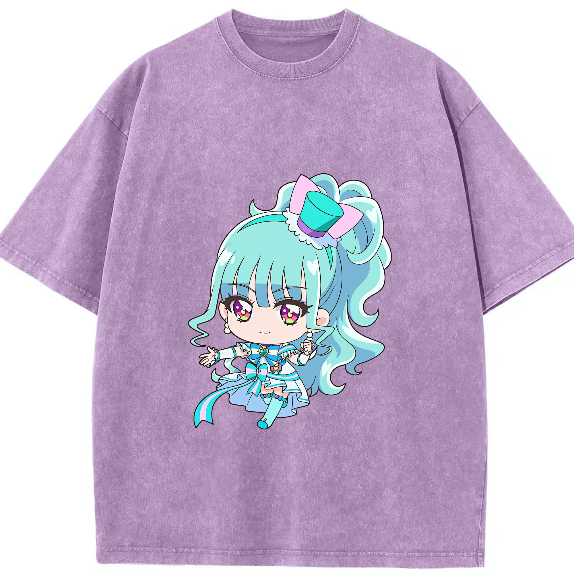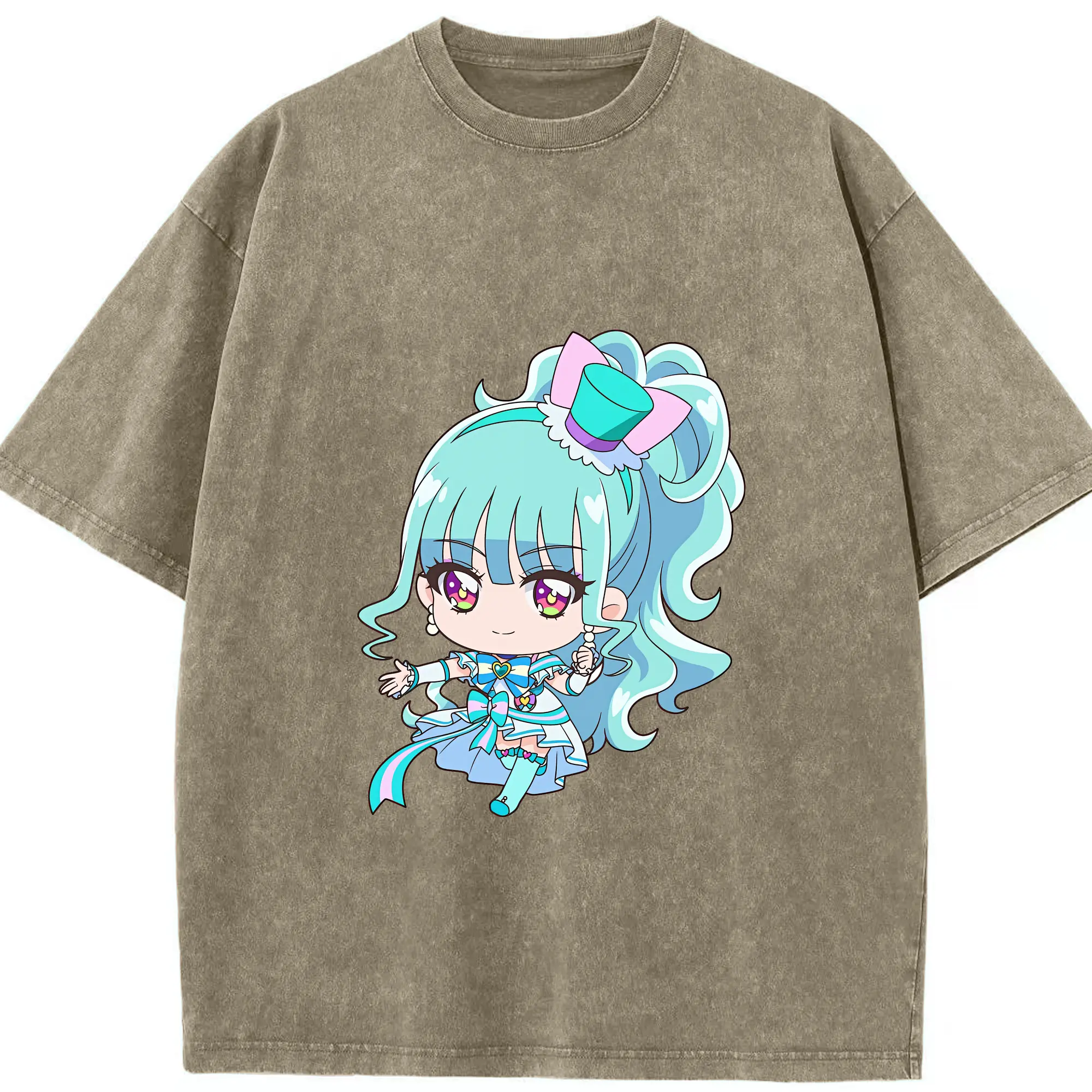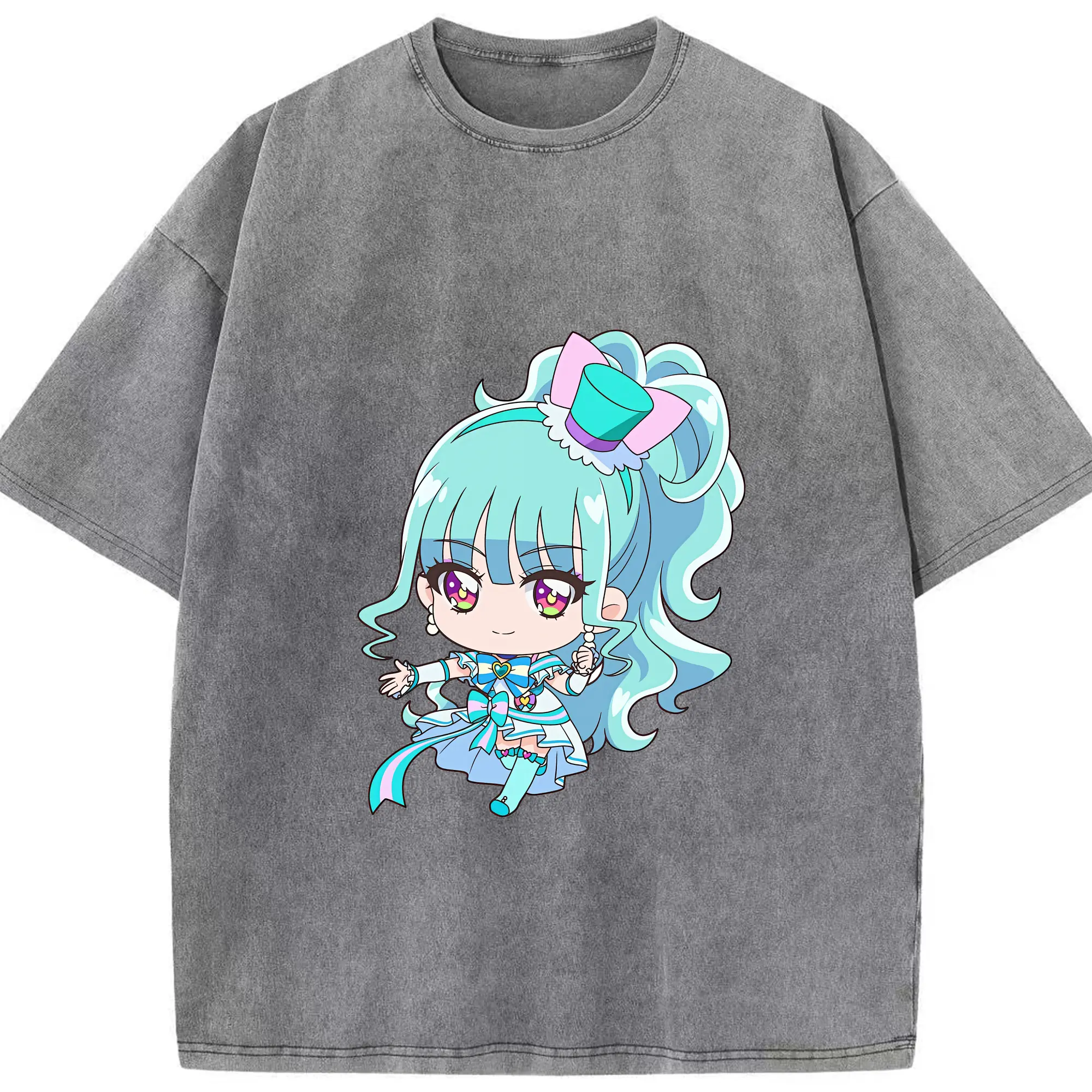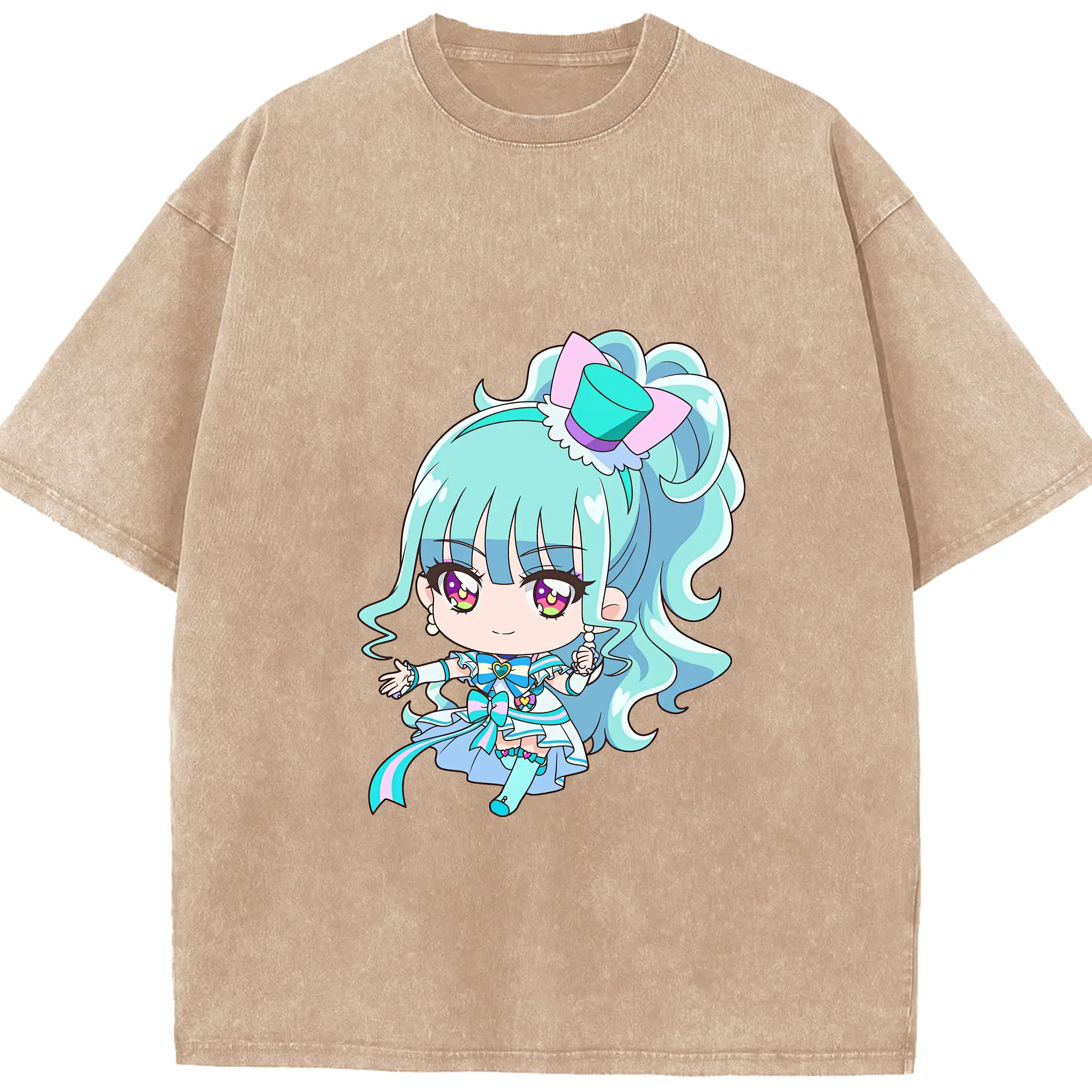 わんだふるぷりきゅあ グッズ 猫屋敷まゆ - 綿100% ヴィンテージ風 半袖Tシャツ ・ 背面プリント ・ 柔らか肌触り ・ 通気性 快適 ・ スポーツ カジュアル 外出用