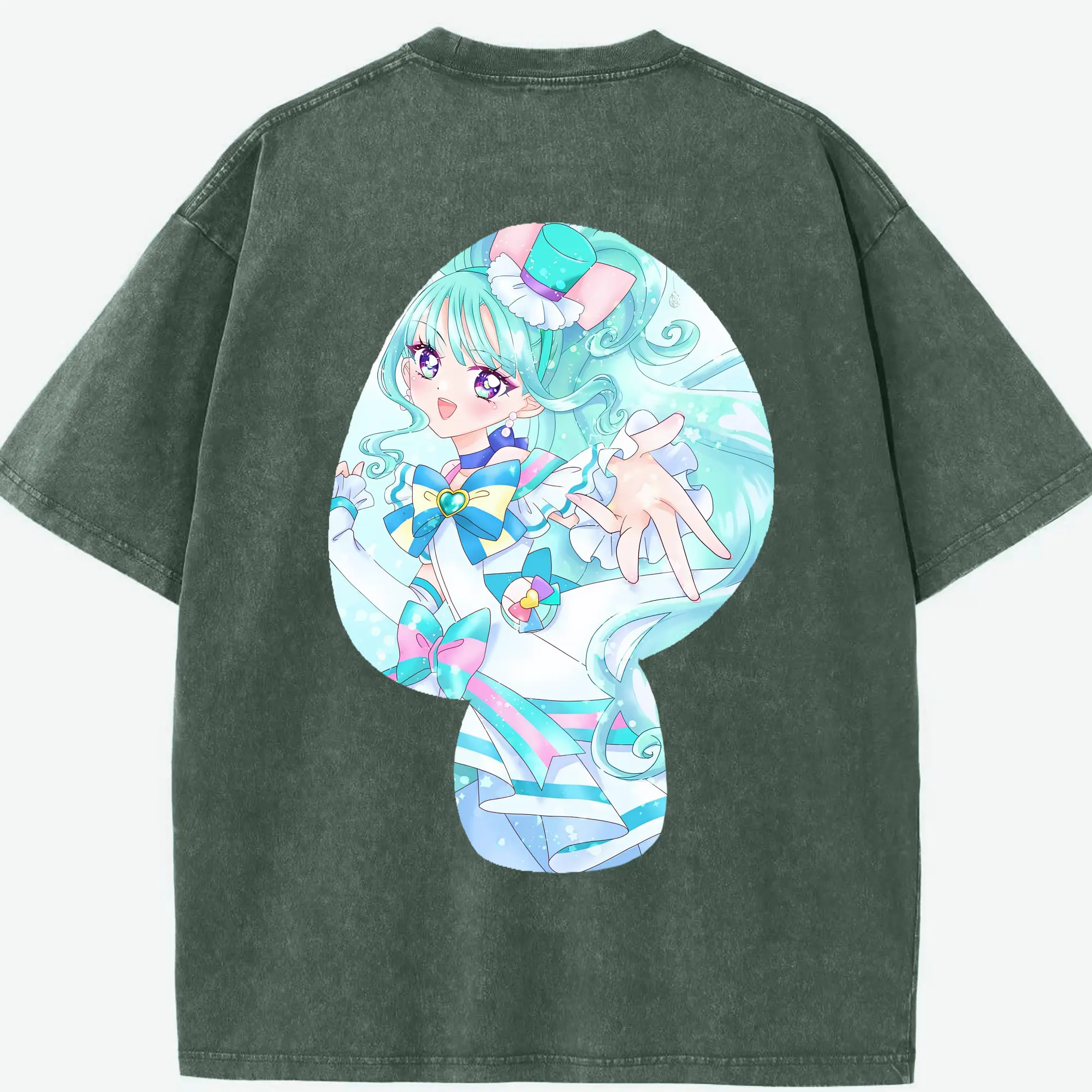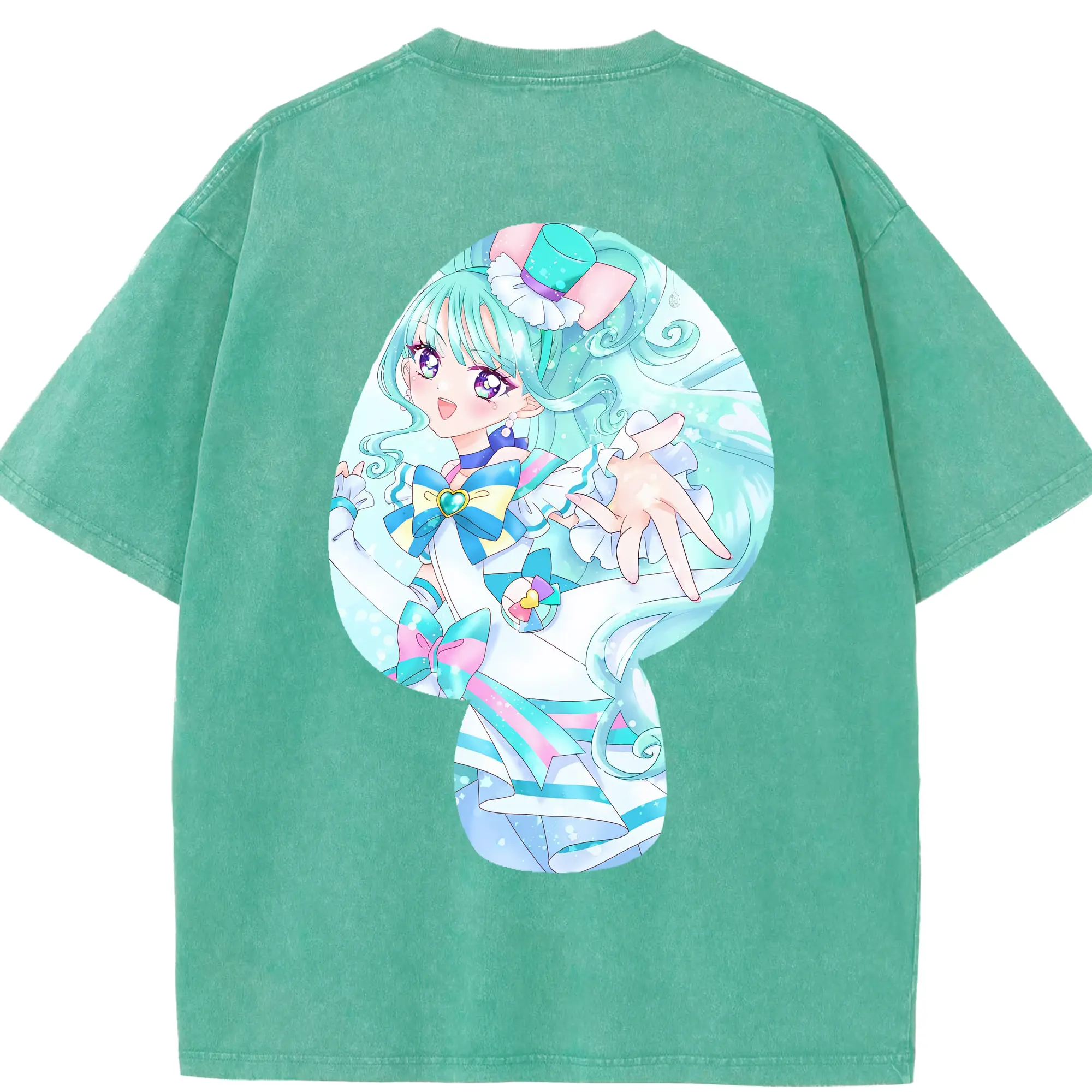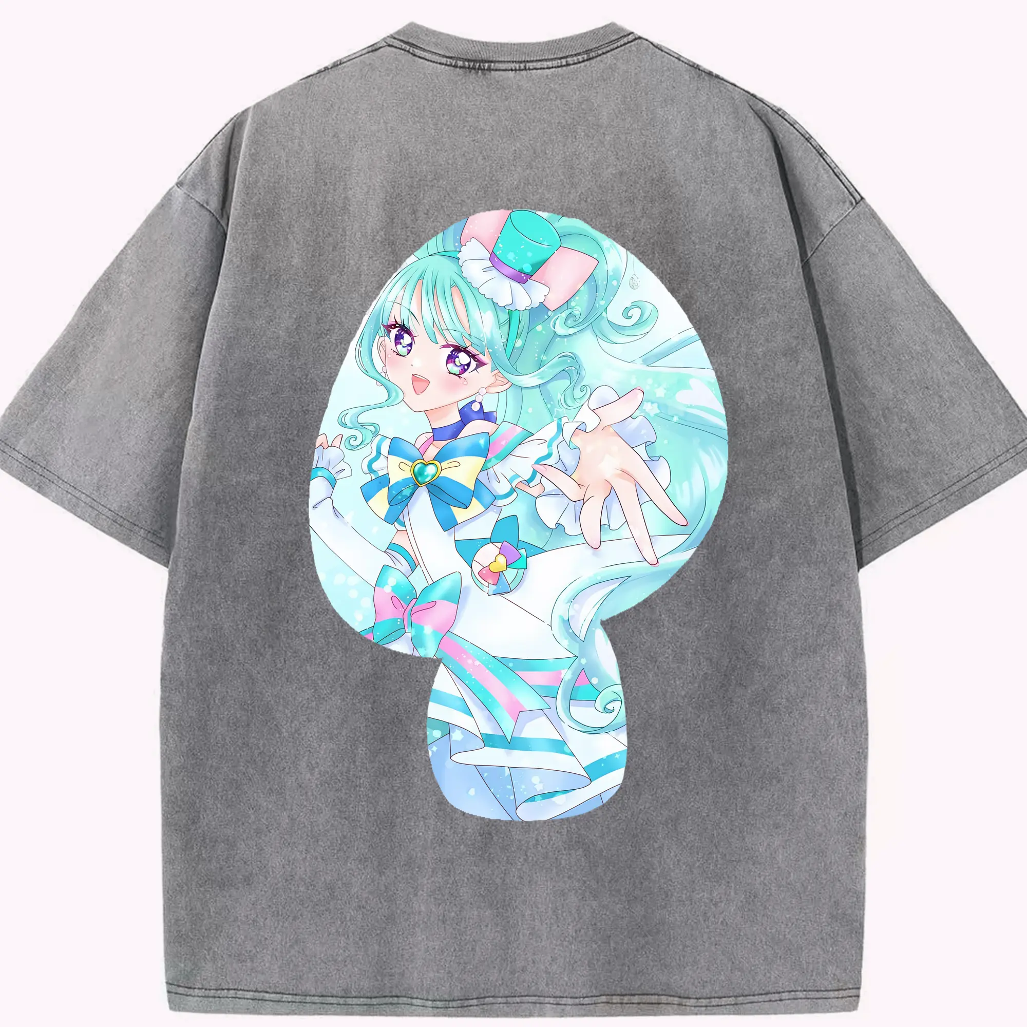 わんだふるぷりきゅあ グッズ 猫屋敷まゆ - 綿100% ヴィンテージ風 半袖Tシャツ ・ フロントプリント ・ 柔らか肌触り ・ 通気性 快適 ・ スポーツ カジュアル 外出用