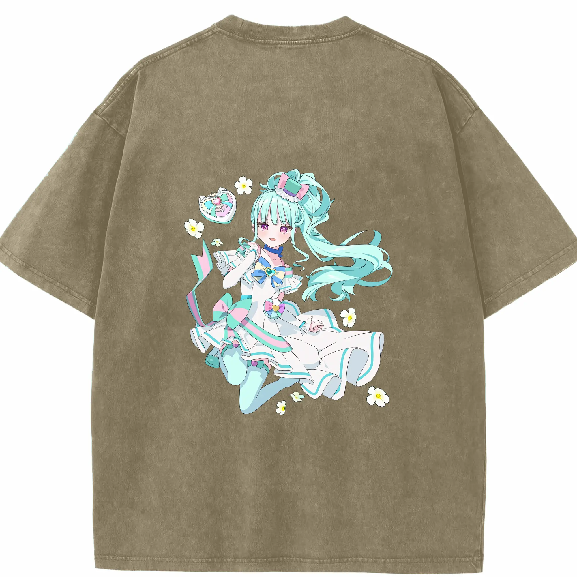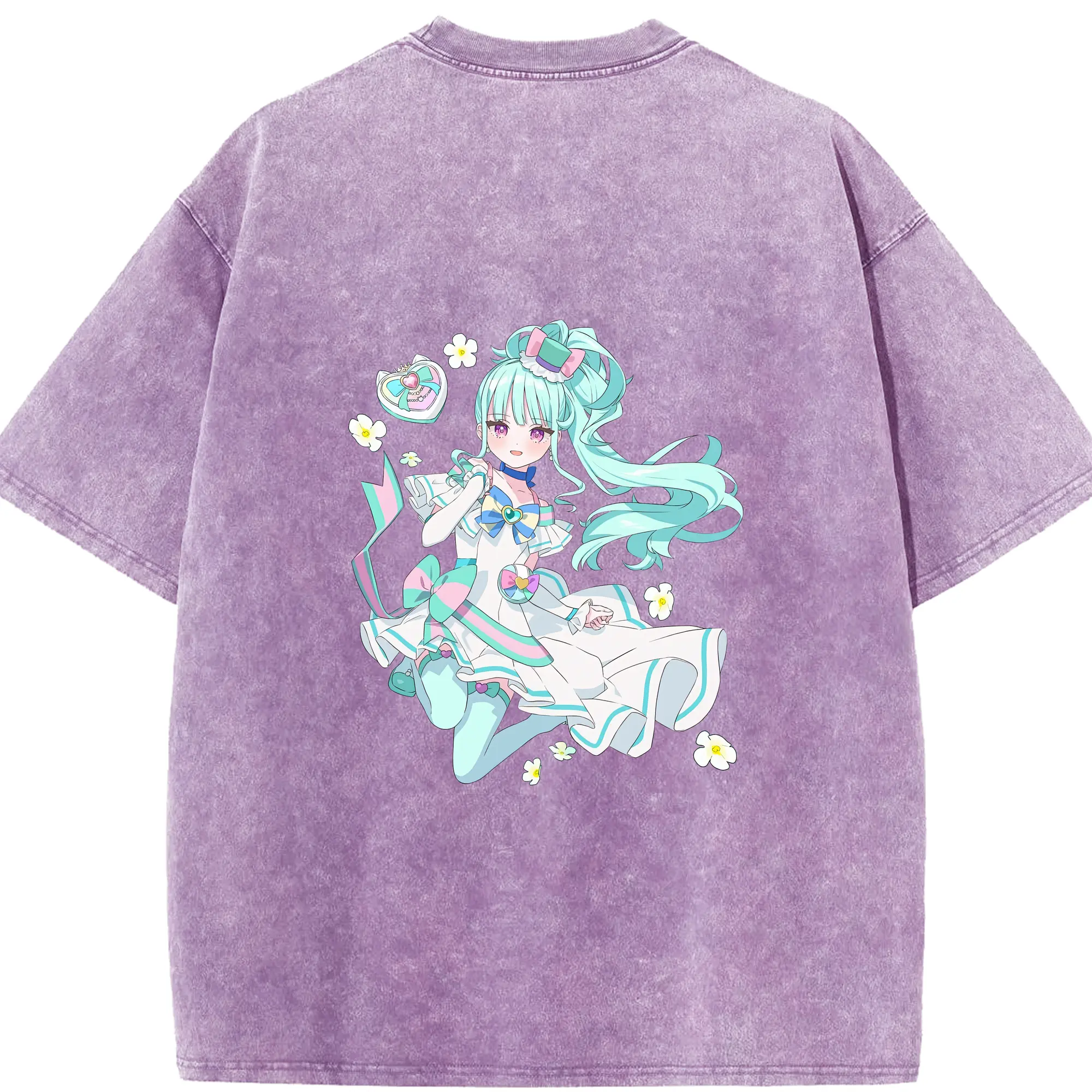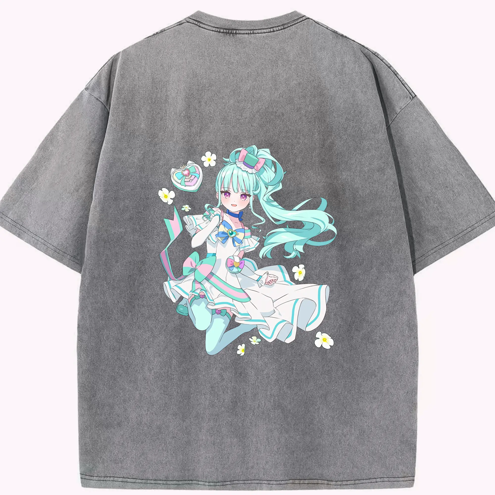 わんだふるぷりきゅあ グッズ 猫屋敷まゆ - 綿100% ヴィンテージ風 半袖Tシャツ ・ フロントプリント ・ 柔らか肌触り ・ 通気性 快適 ・ スポーツ カジュアル 外出用