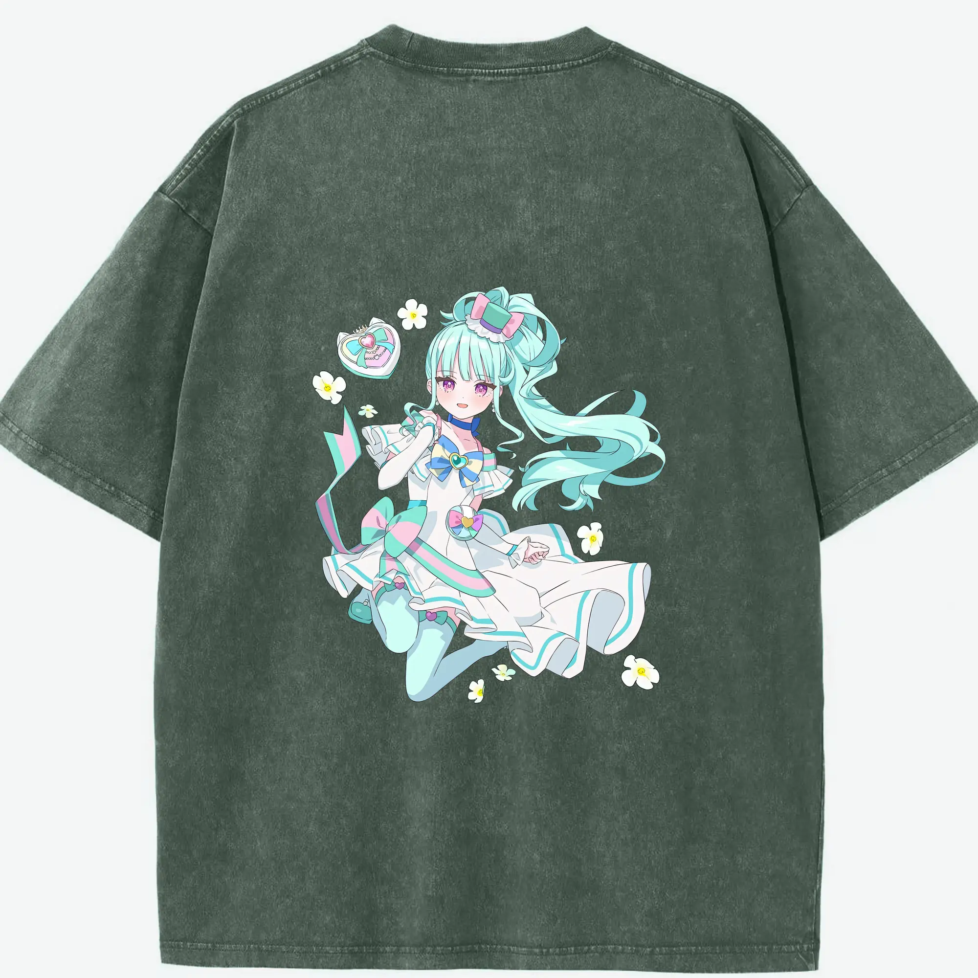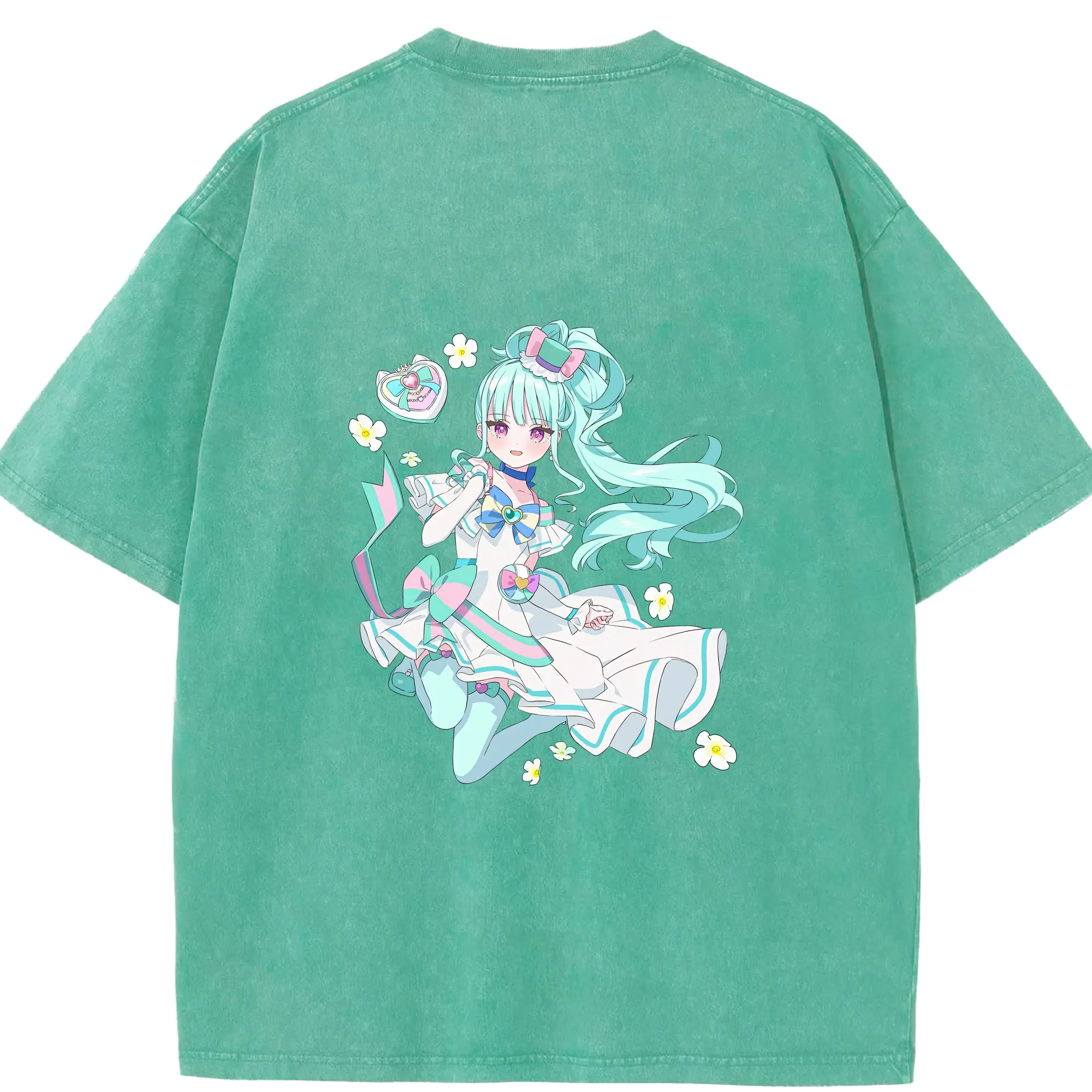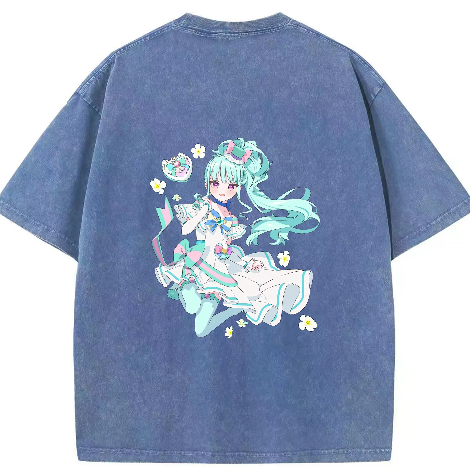 わんだふるぷりきゅあ グッズ 猫屋敷まゆ - 綿100% ヴィンテージ風 半袖Tシャツ ・ フロントプリント ・ 柔らか肌触り ・ 通気性 快適 ・ スポーツ カジュアル 外出用
