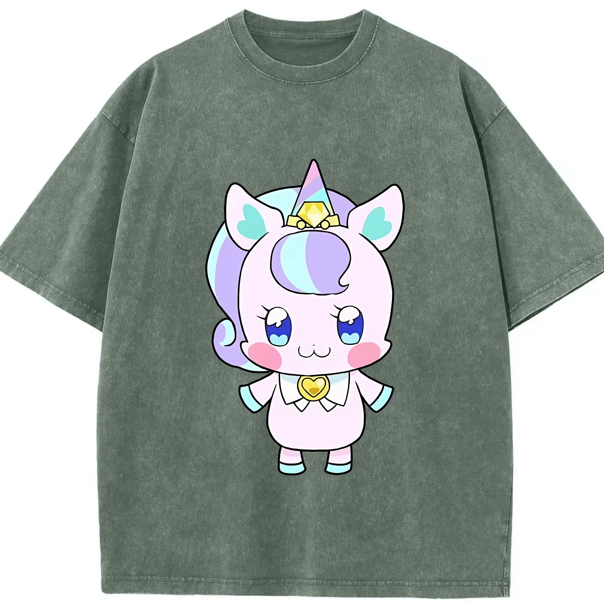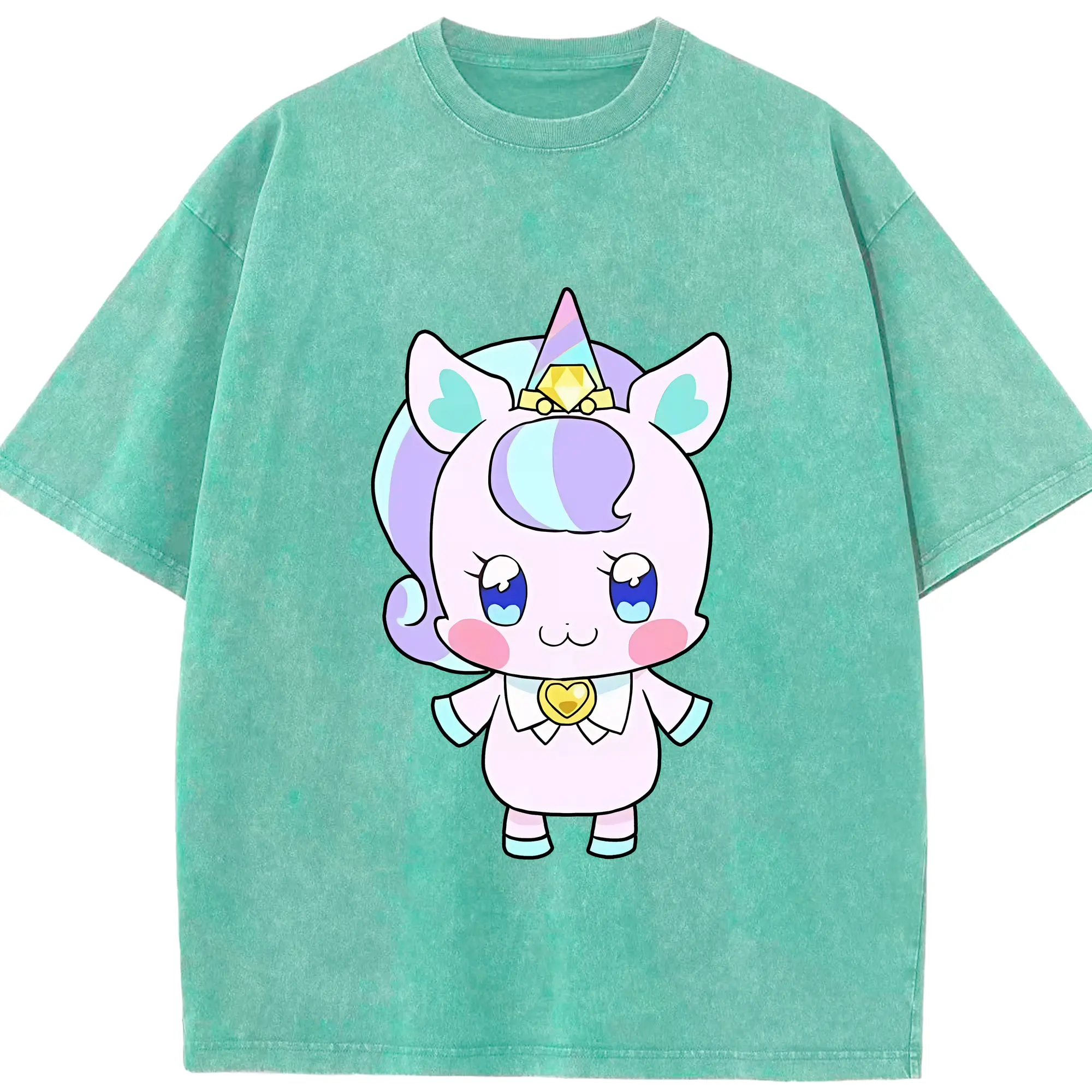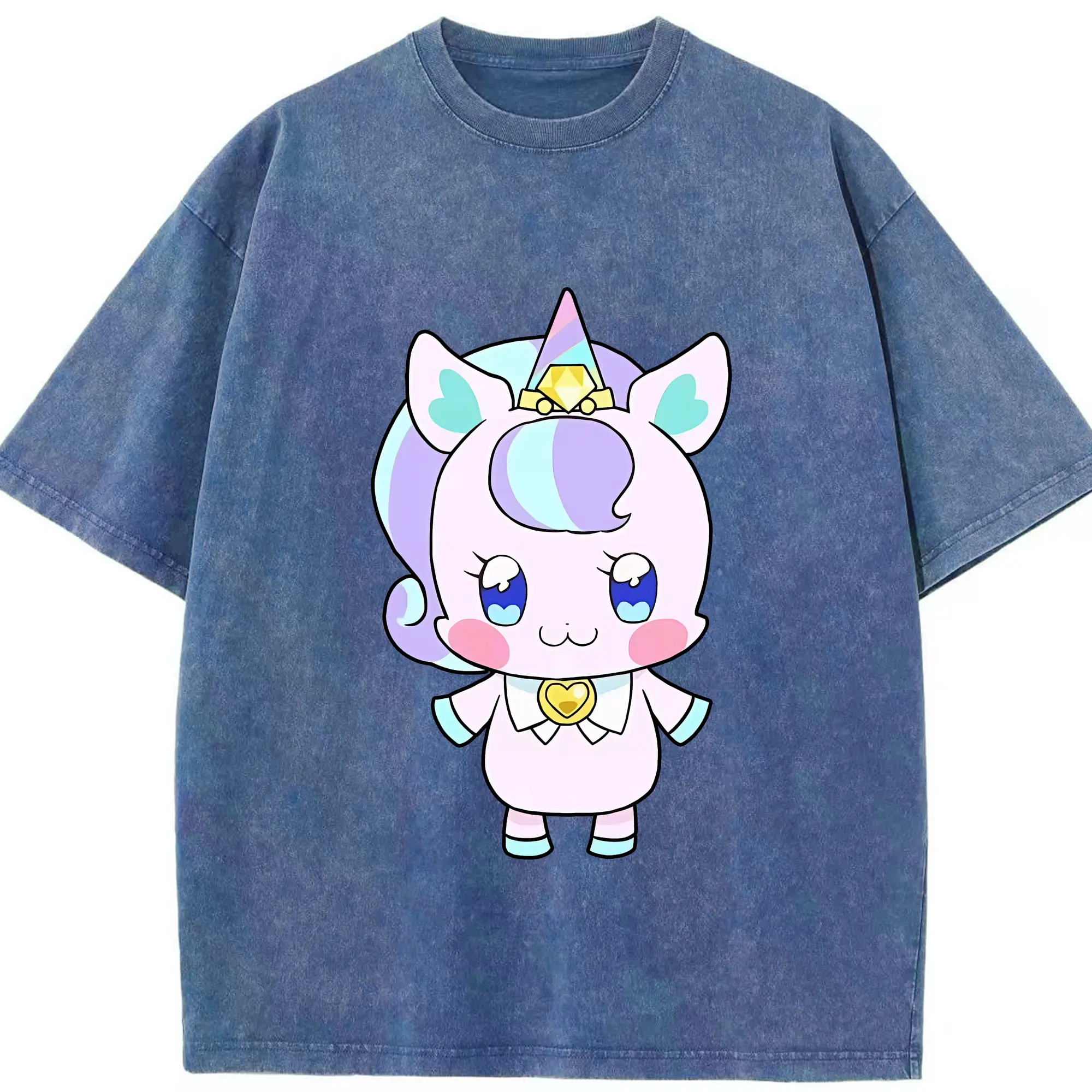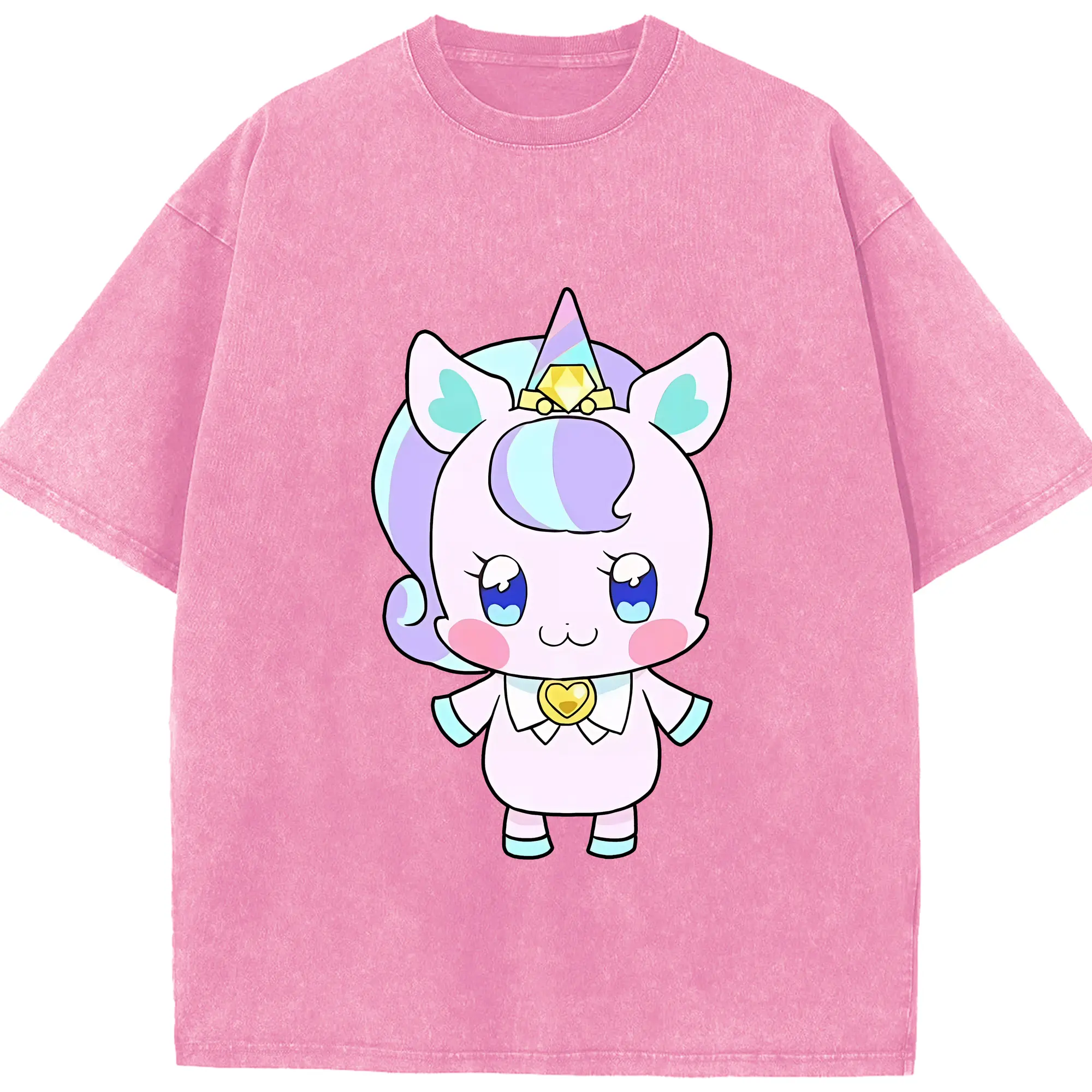 わんだふるぷりきゅあ グッズ ニコ - 綿100% ヴィンテージ風 半袖Tシャツ ・ 背面プリント ・ 柔らか肌触り ・ 通気性 快適 ・ スポーツ カジュアル 外出用