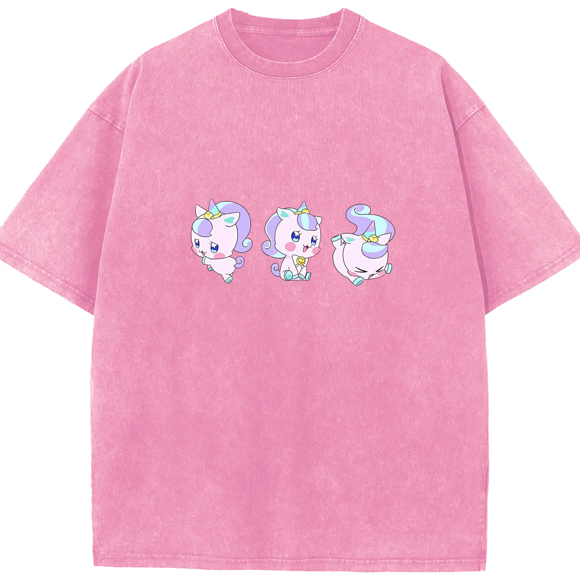 アイカツ グッズ 大空 あかり - 綿100% ヴィンテージ風 半袖Tシャツ ・ フロントプリント ・ 柔らか肌触り ・ 通気性 快適 ・ スポーツ カジュアル 外出用