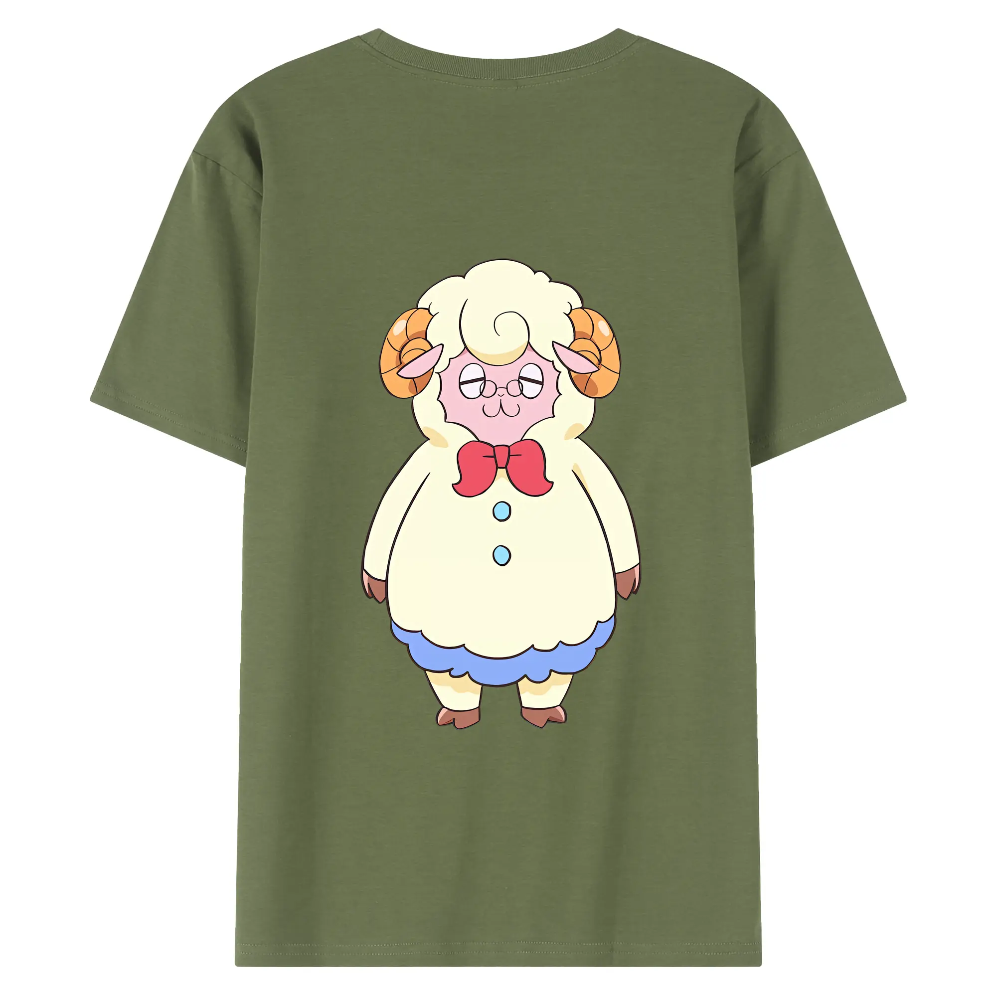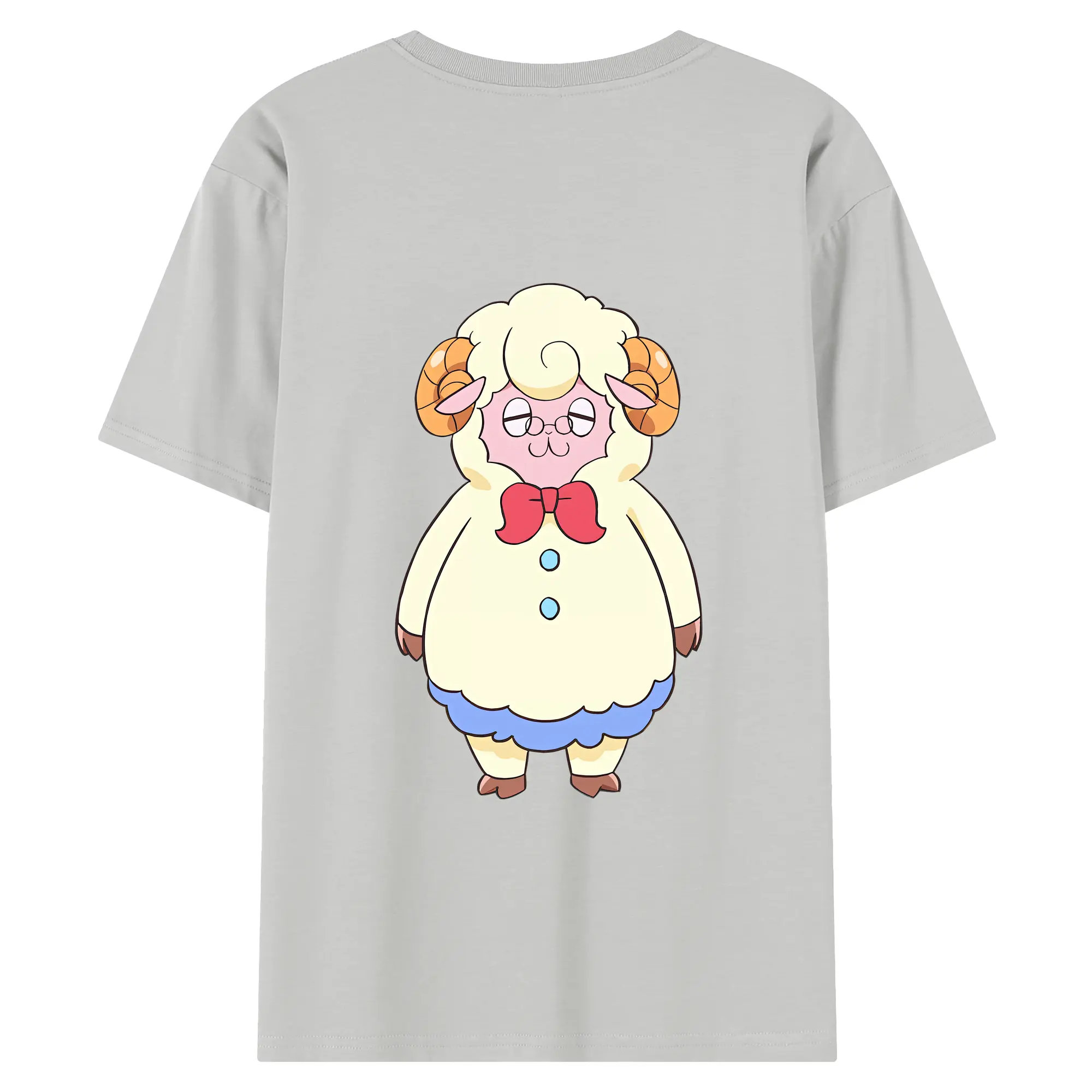 わんだふるぷりきゅあ グッズ メエメエ - 綿100% ヴィンテージ風 半袖Tシャツ ・ 背面プリント ・ 柔らか肌触り ・ 通気性 快適 ・ スポーツ カジュアル 外出用