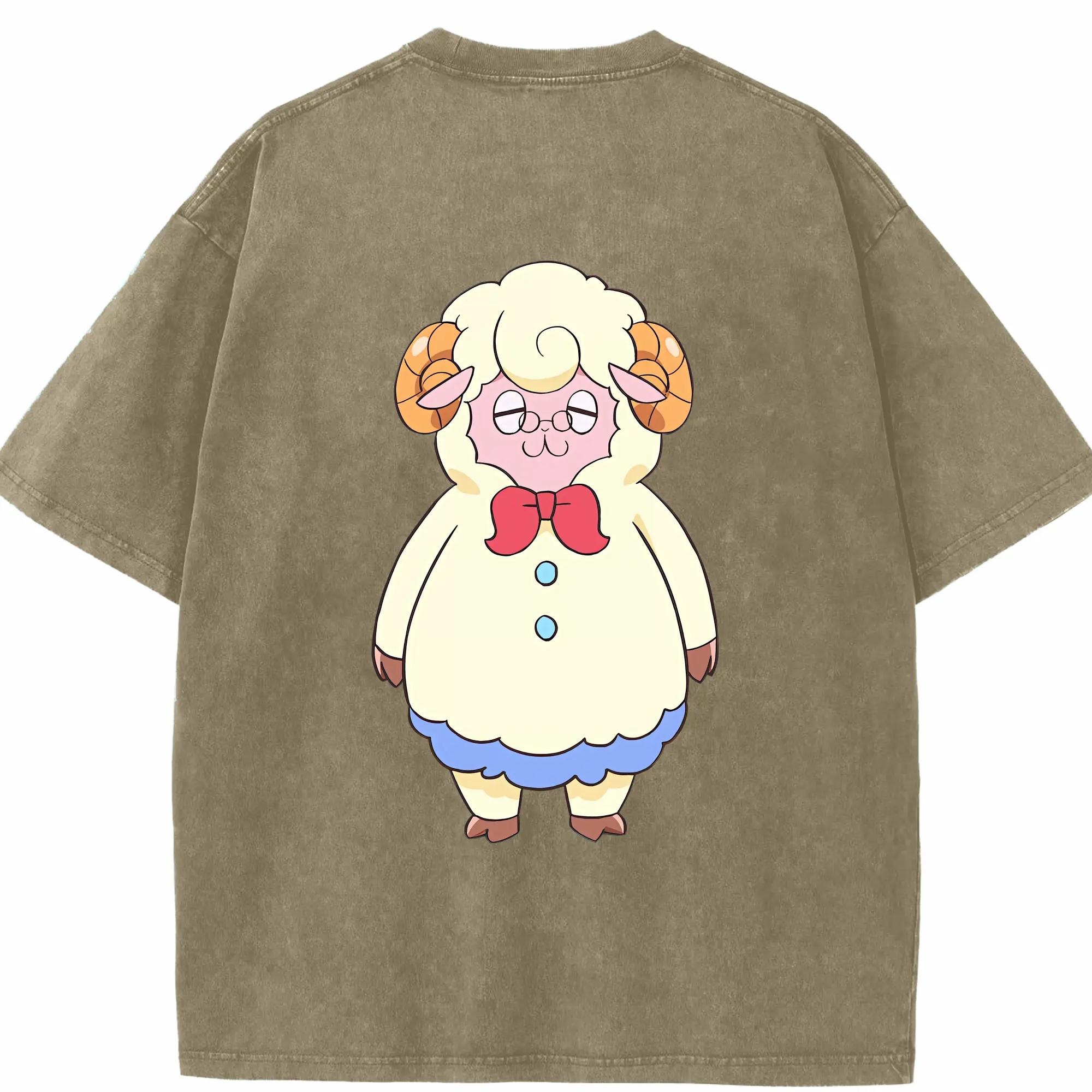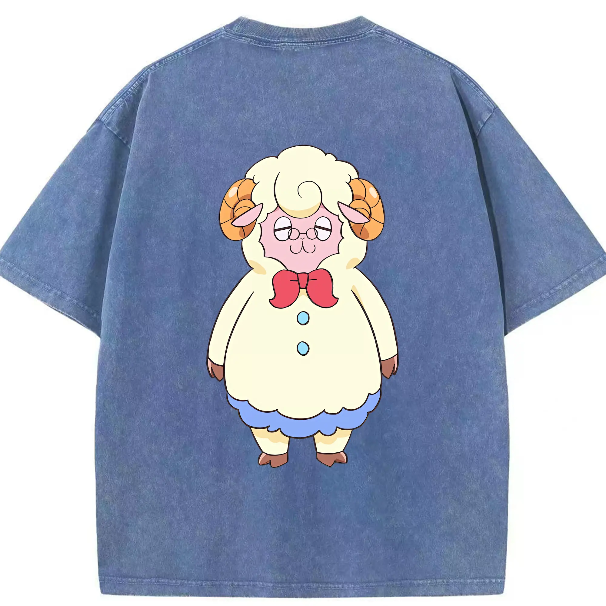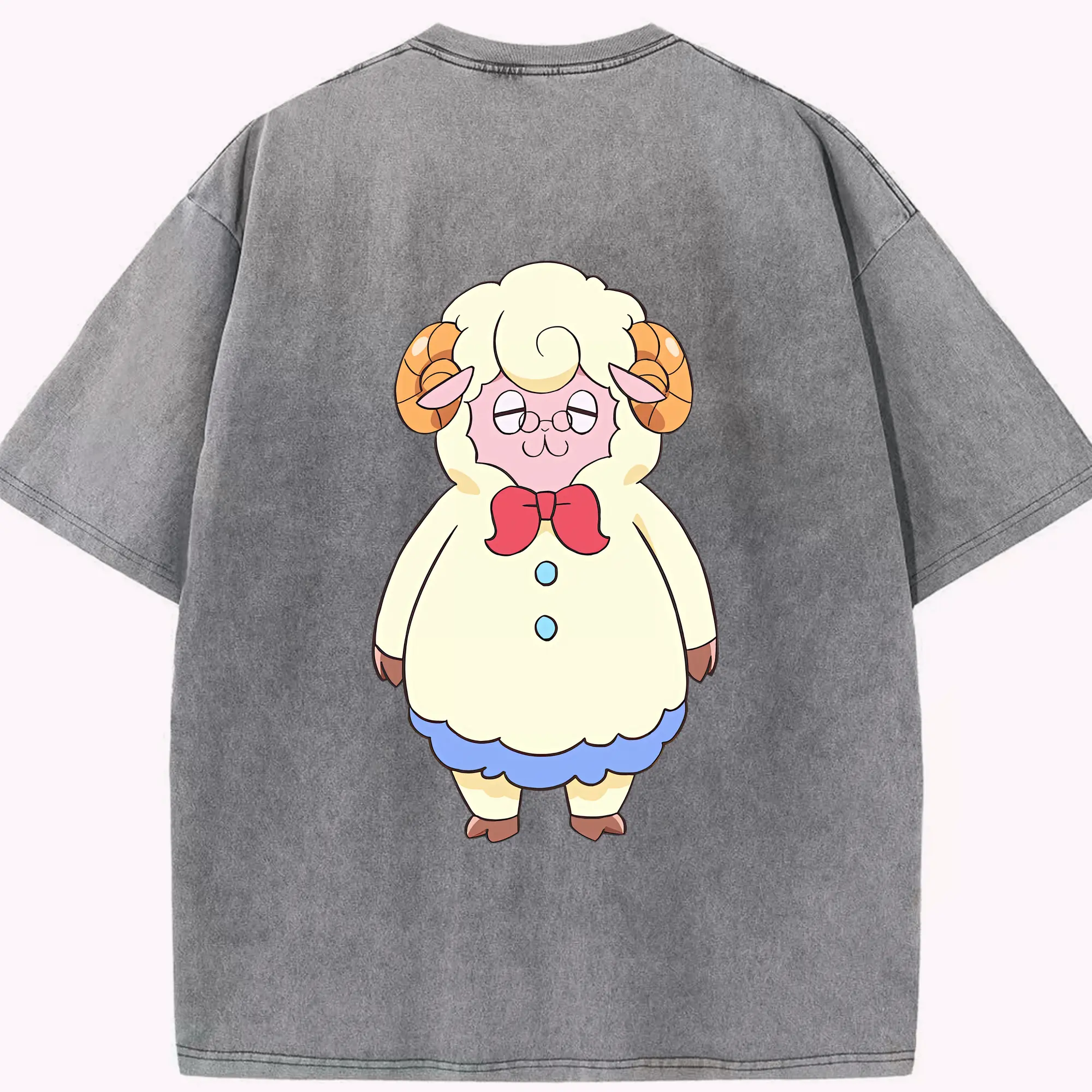 わんだふるぷりきゅあ グッズ メエメエ - 綿100% ヴィンテージ風 半袖Tシャツ ・ フロントプリント ・ 柔らか肌触り ・ 通気性 快適 ・ スポーツ カジュアル 外出用