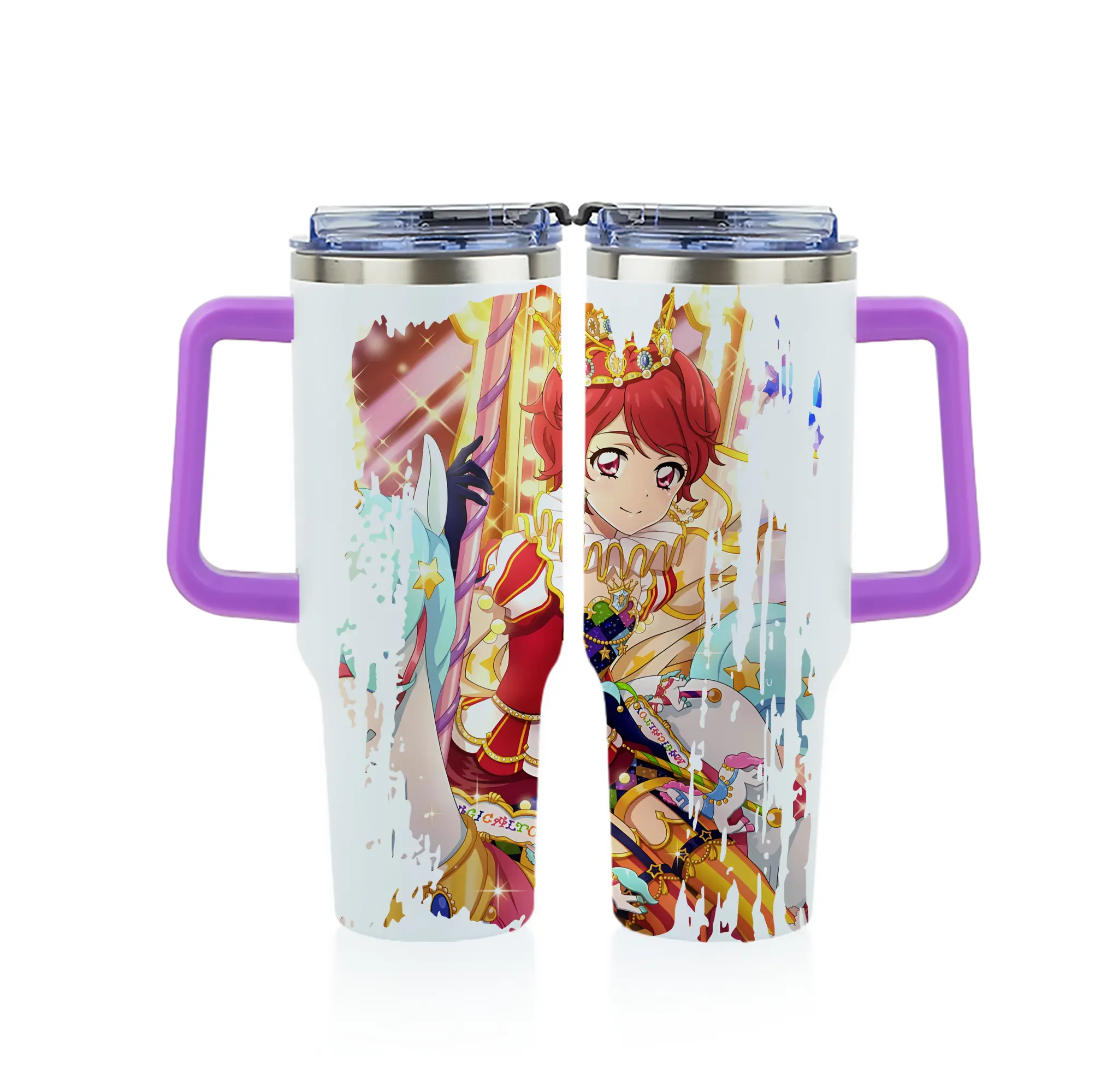 アイカツ グッズ 一ノ瀬 かえで - 1200mL フルプリント車用タンブラー ・ 304ステンレス 内側 ・ 201ステンレス 外側 ・ 保温 保冷 ・ 通勤 ドライブ アウトドア用
