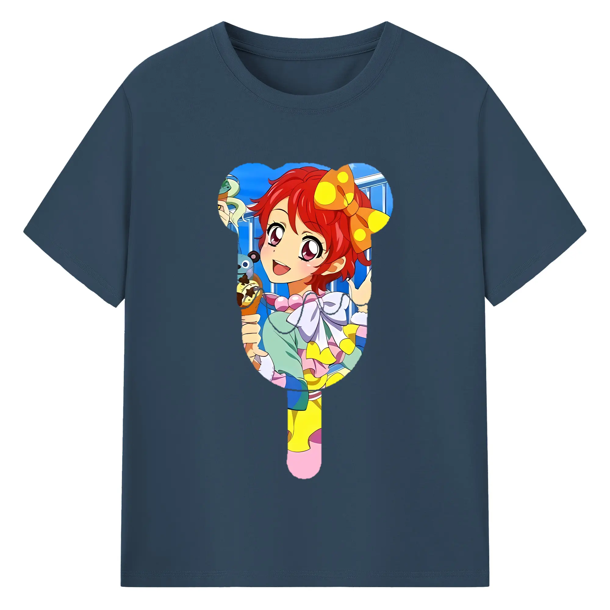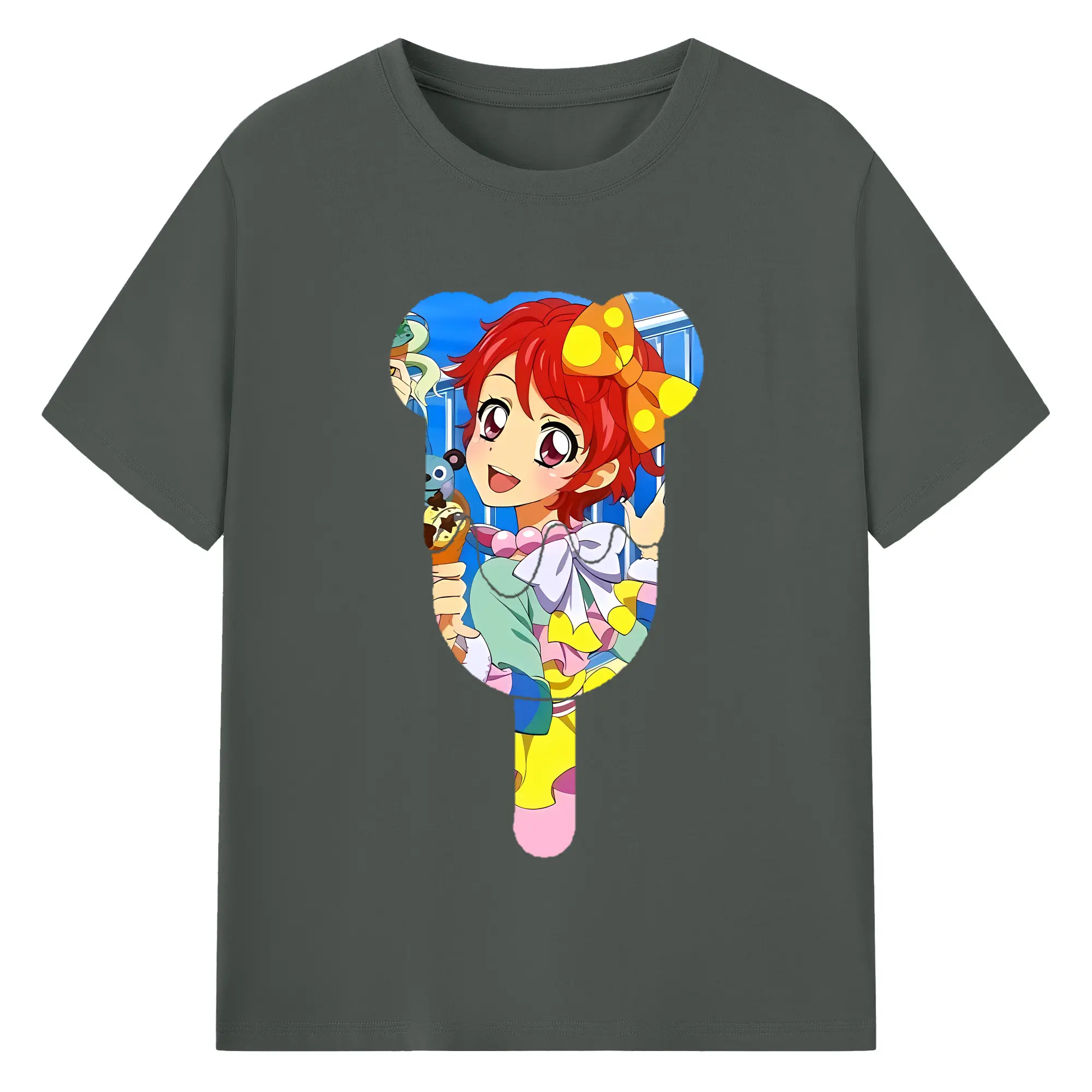アイカツ グッズ 一ノ瀬 かえで - 綿100% ヴィンテージ風 半袖Tシャツ ・ 背面プリント ・ 柔らか肌触り ・ 通気性 快適 ・ スポーツ カジュアル 外出用
