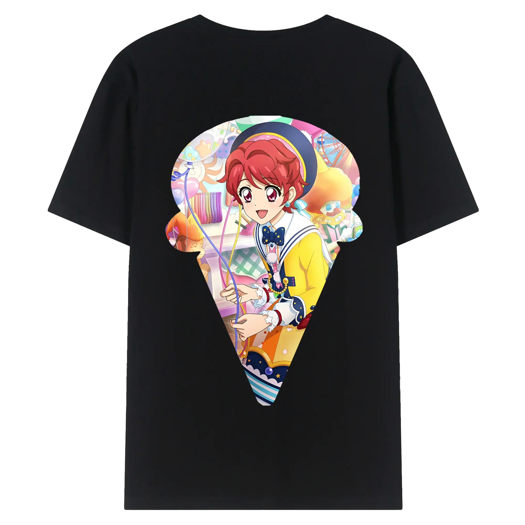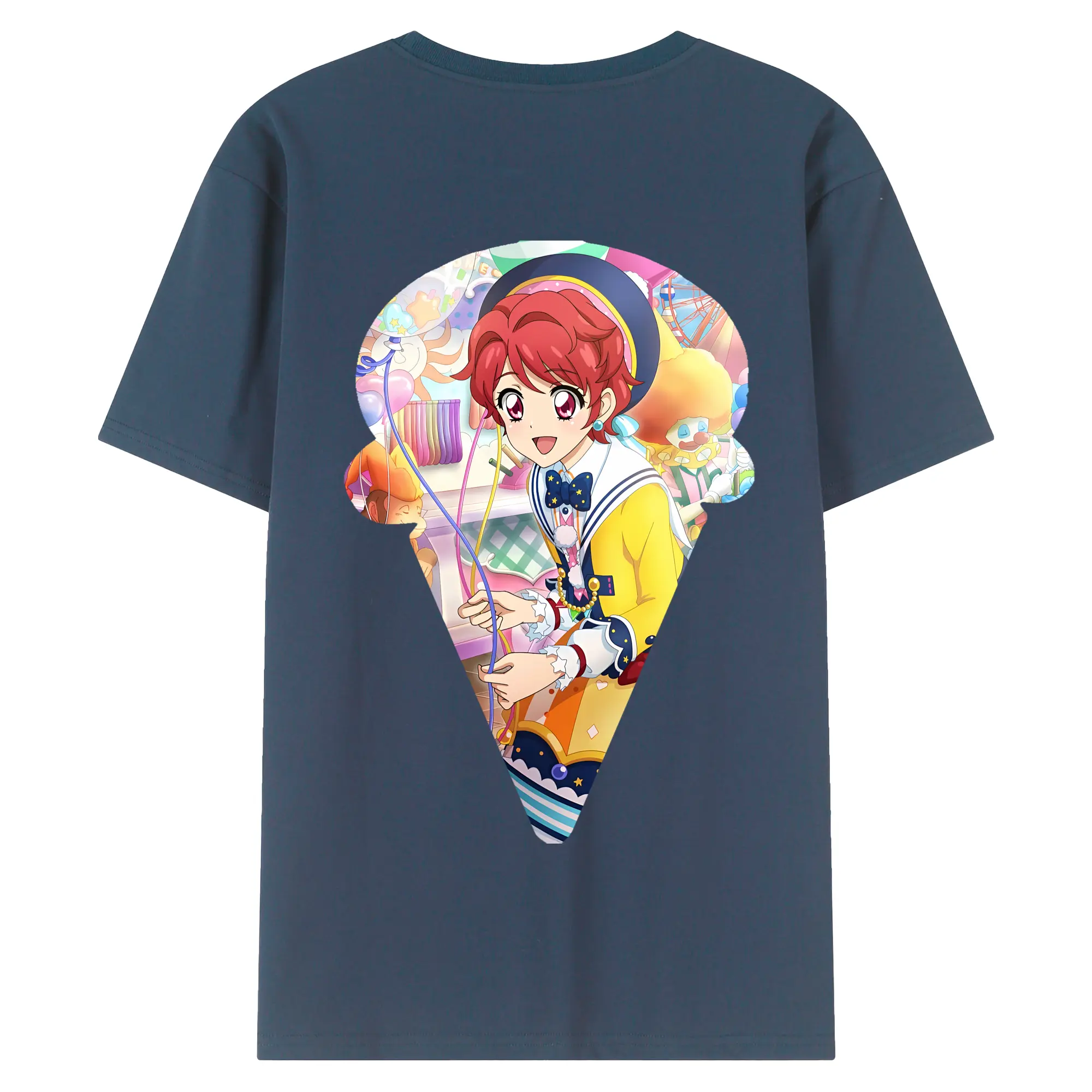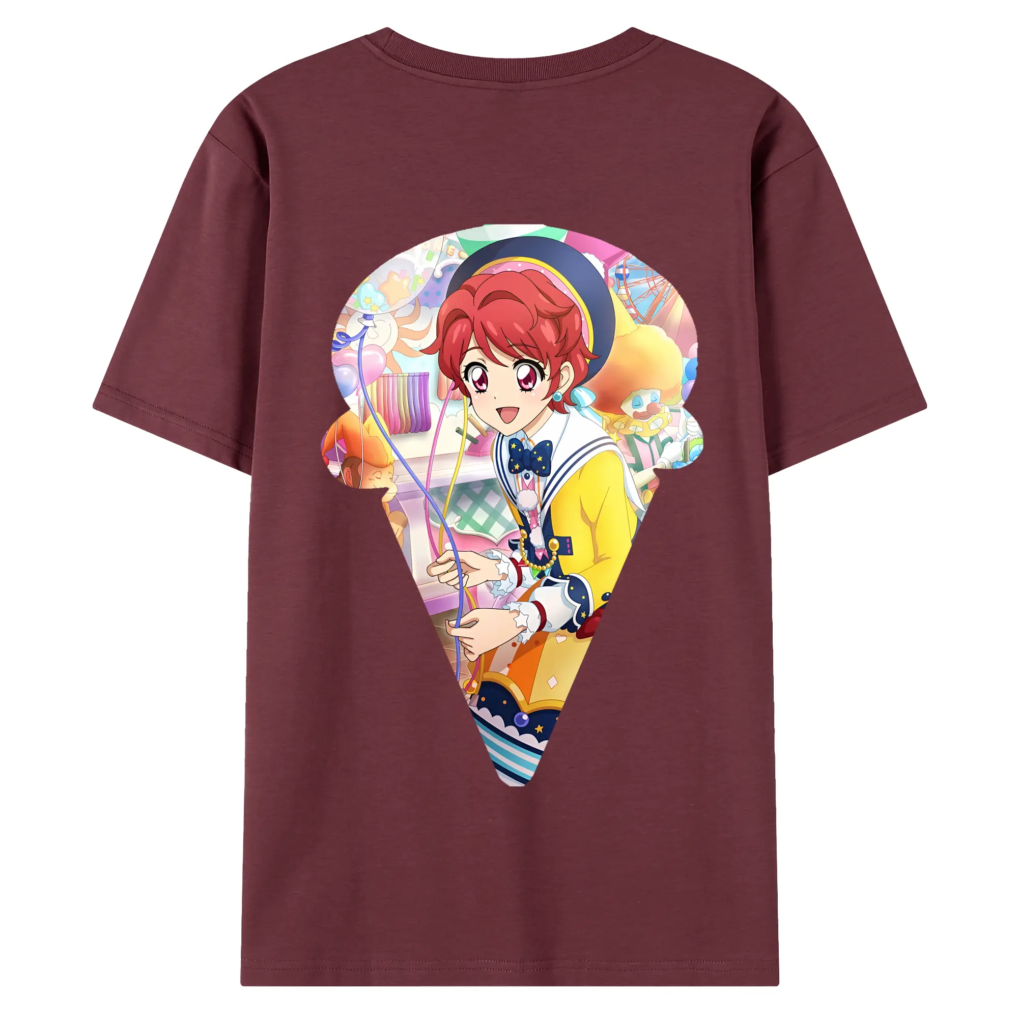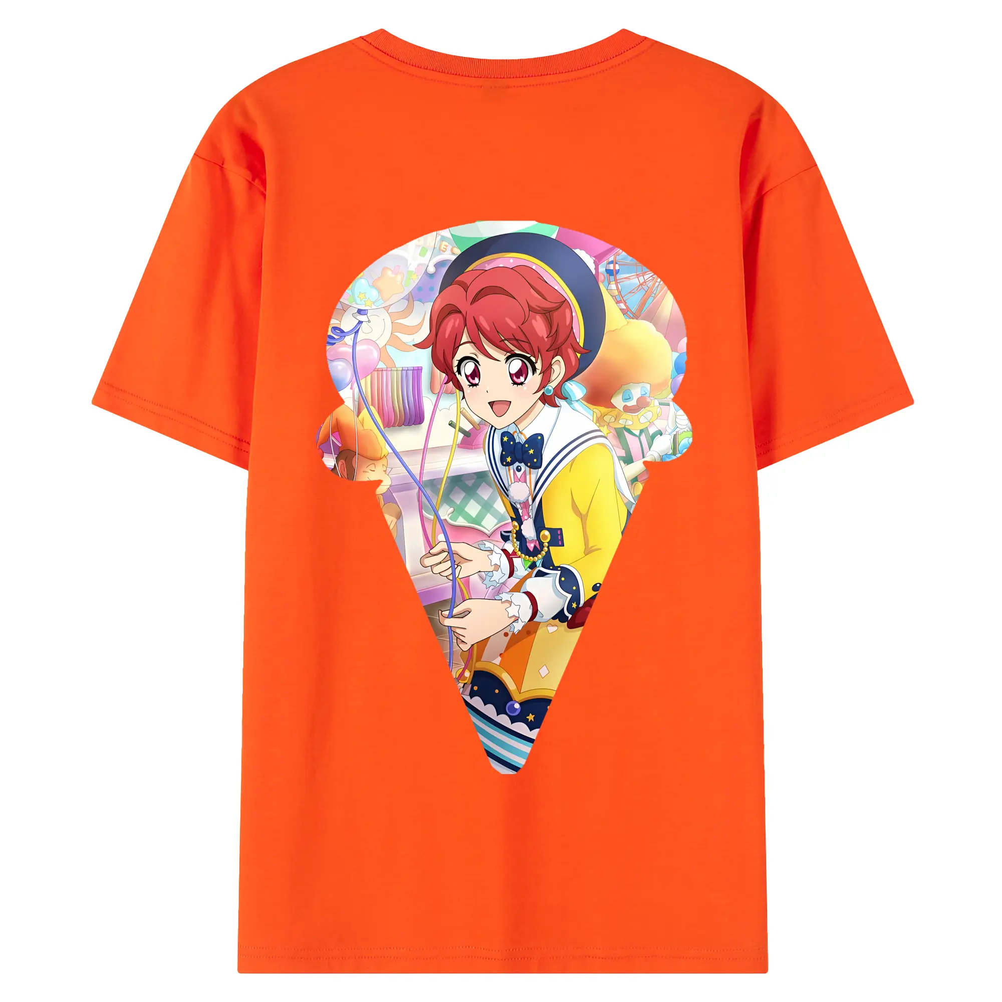 アイカツ グッズ 一ノ瀬 かえで - 綿100% ヴィンテージ風 半袖Tシャツ ・ 背面プリント ・ 柔らか肌触り ・ 通気性 快適 ・ スポーツ カジュアル 外出用