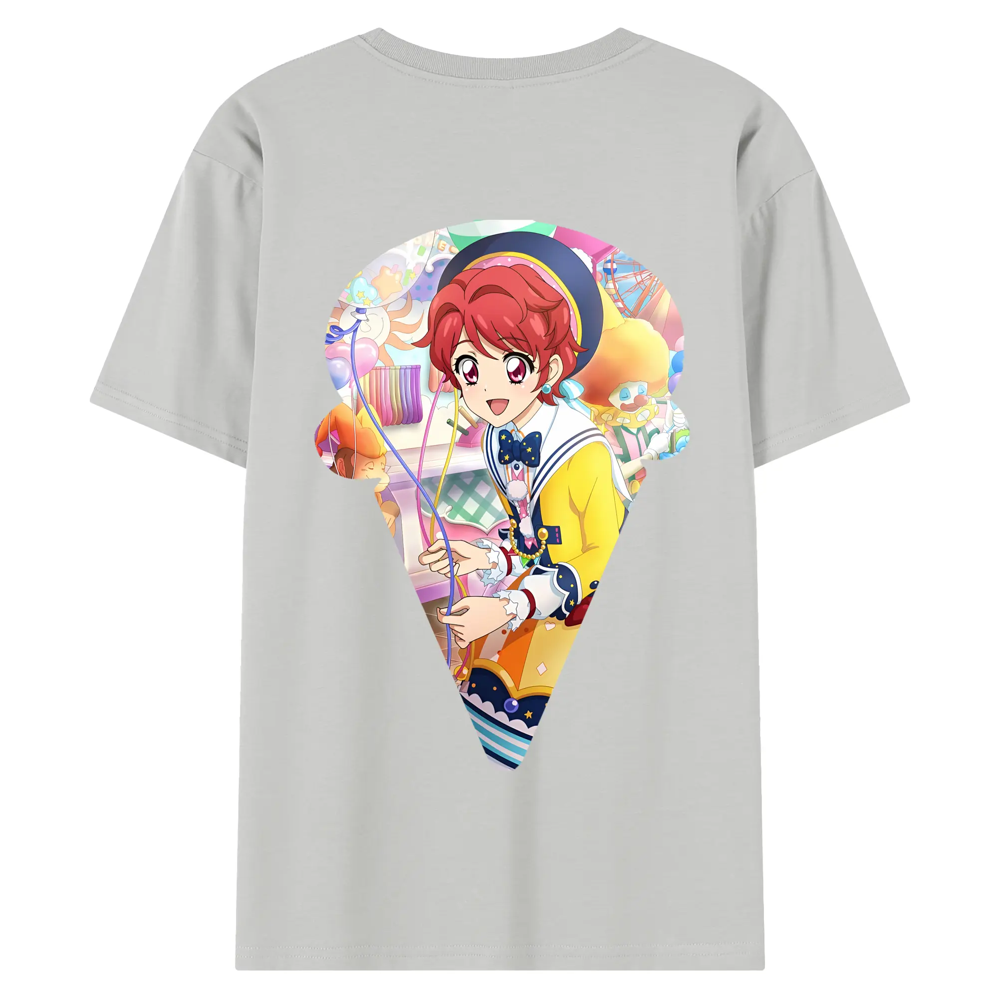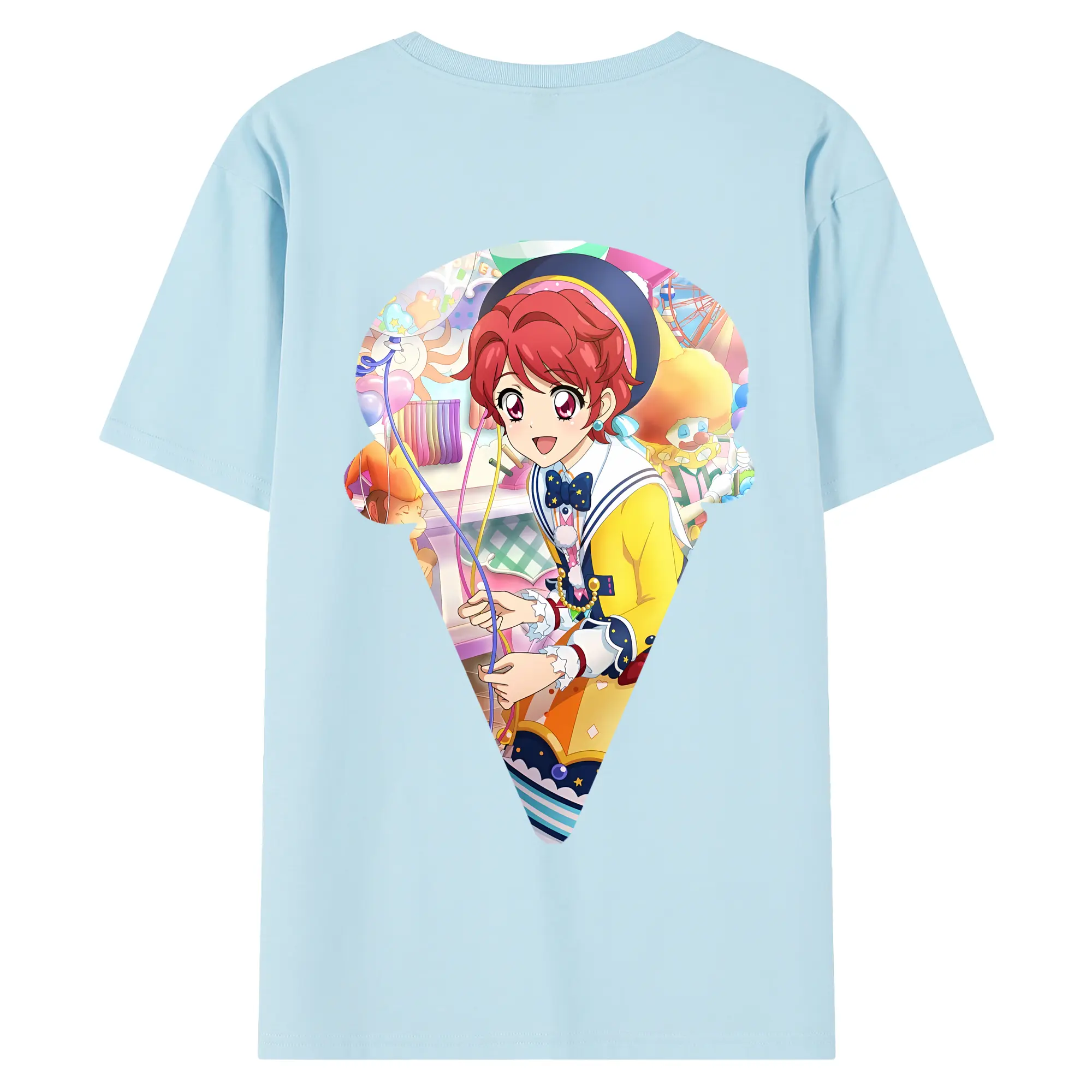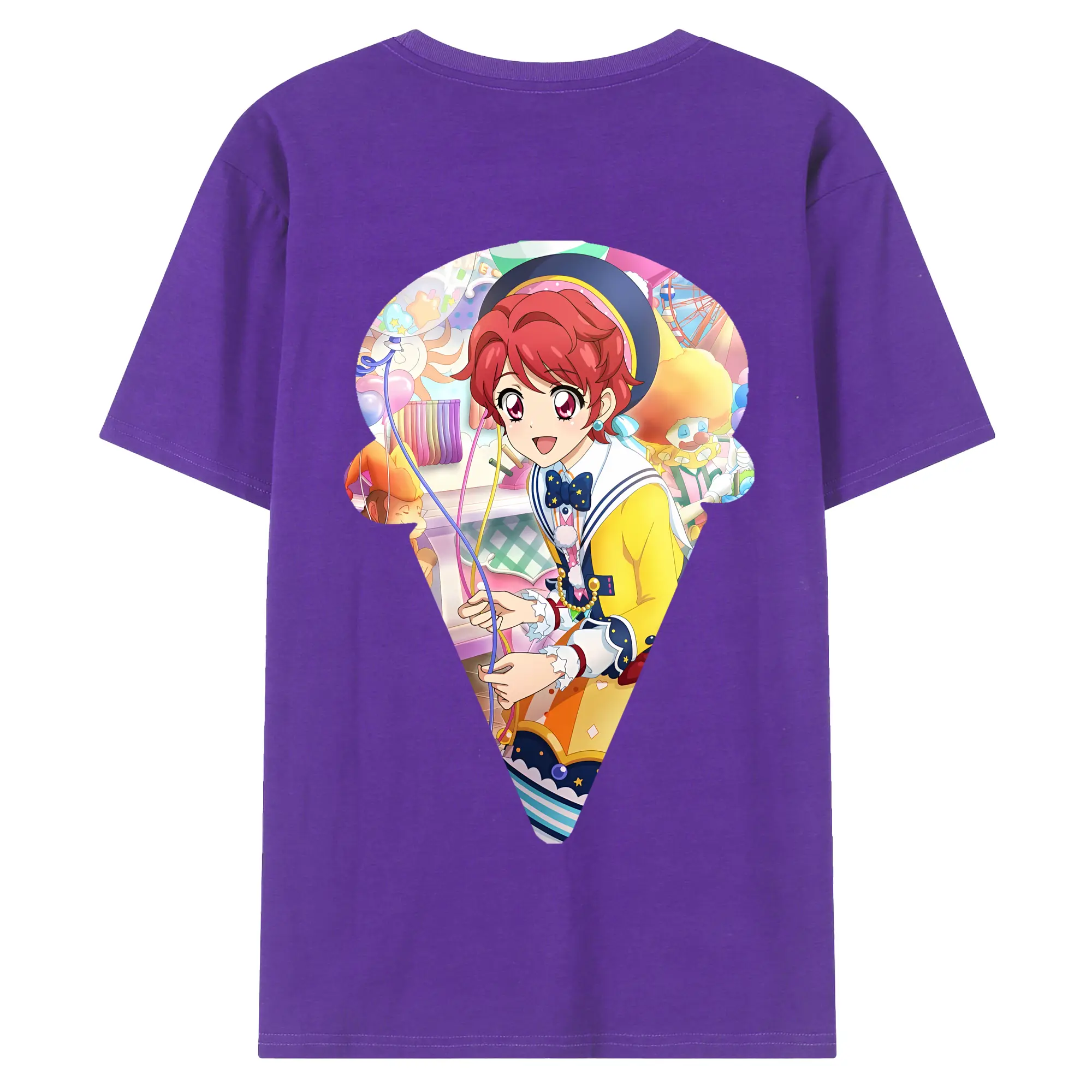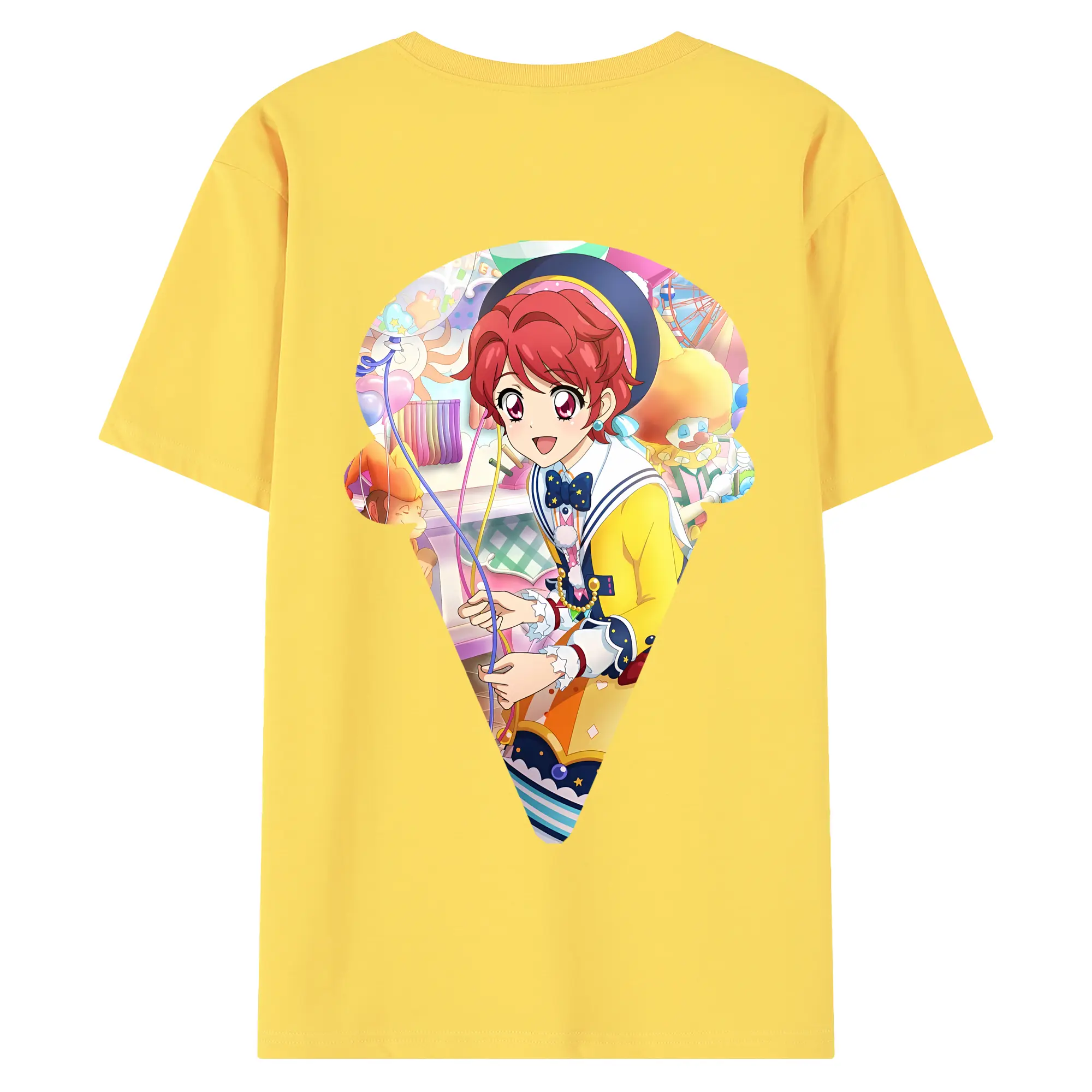 アイカツ グッズ 一ノ瀬 かえで - 綿100% ヴィンテージ風 半袖Tシャツ ・ 背面プリント ・ 柔らか肌触り ・ 通気性 快適 ・ スポーツ カジュアル 外出用
