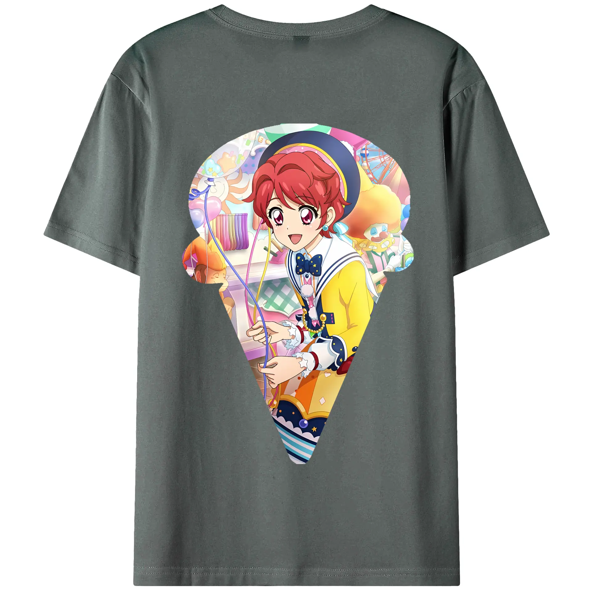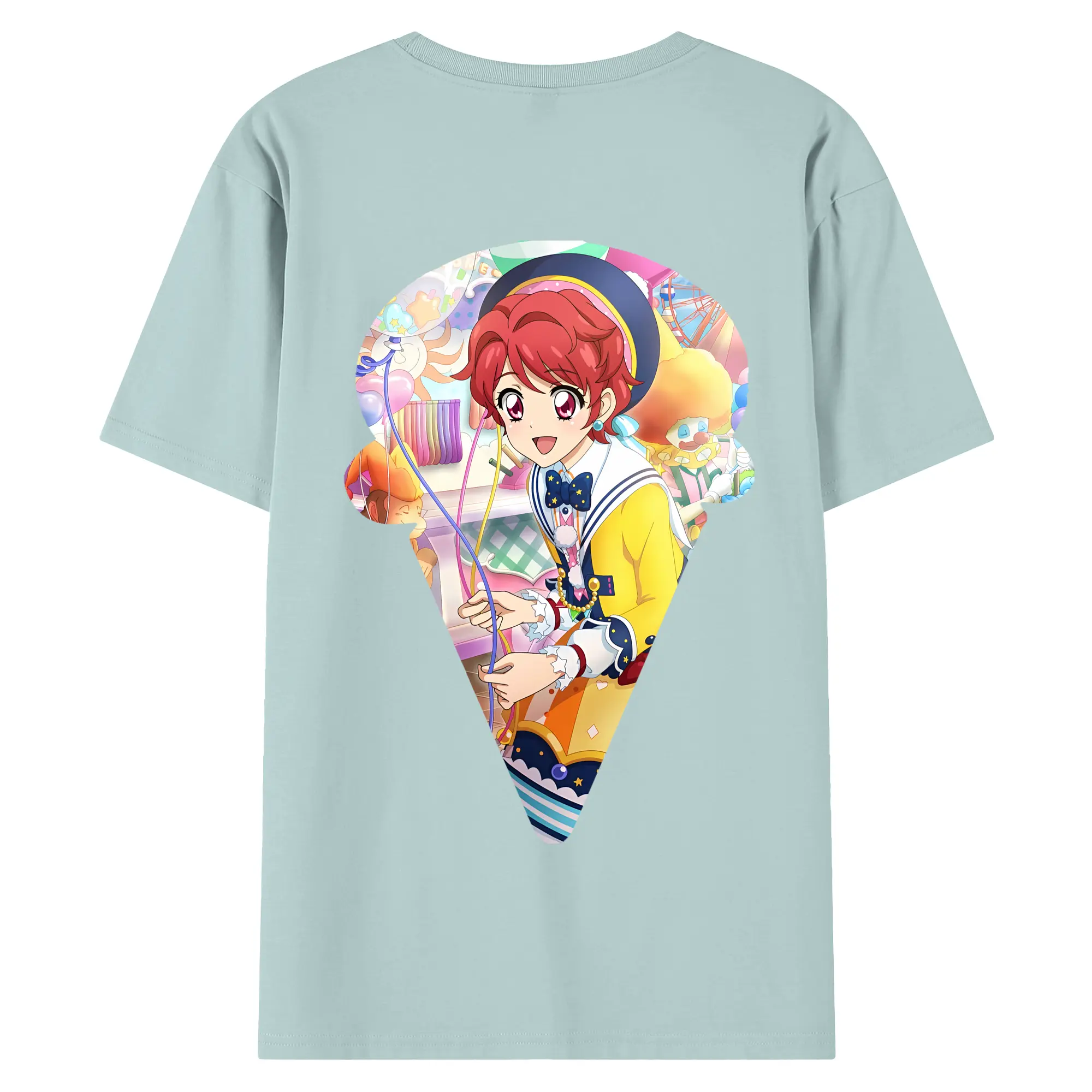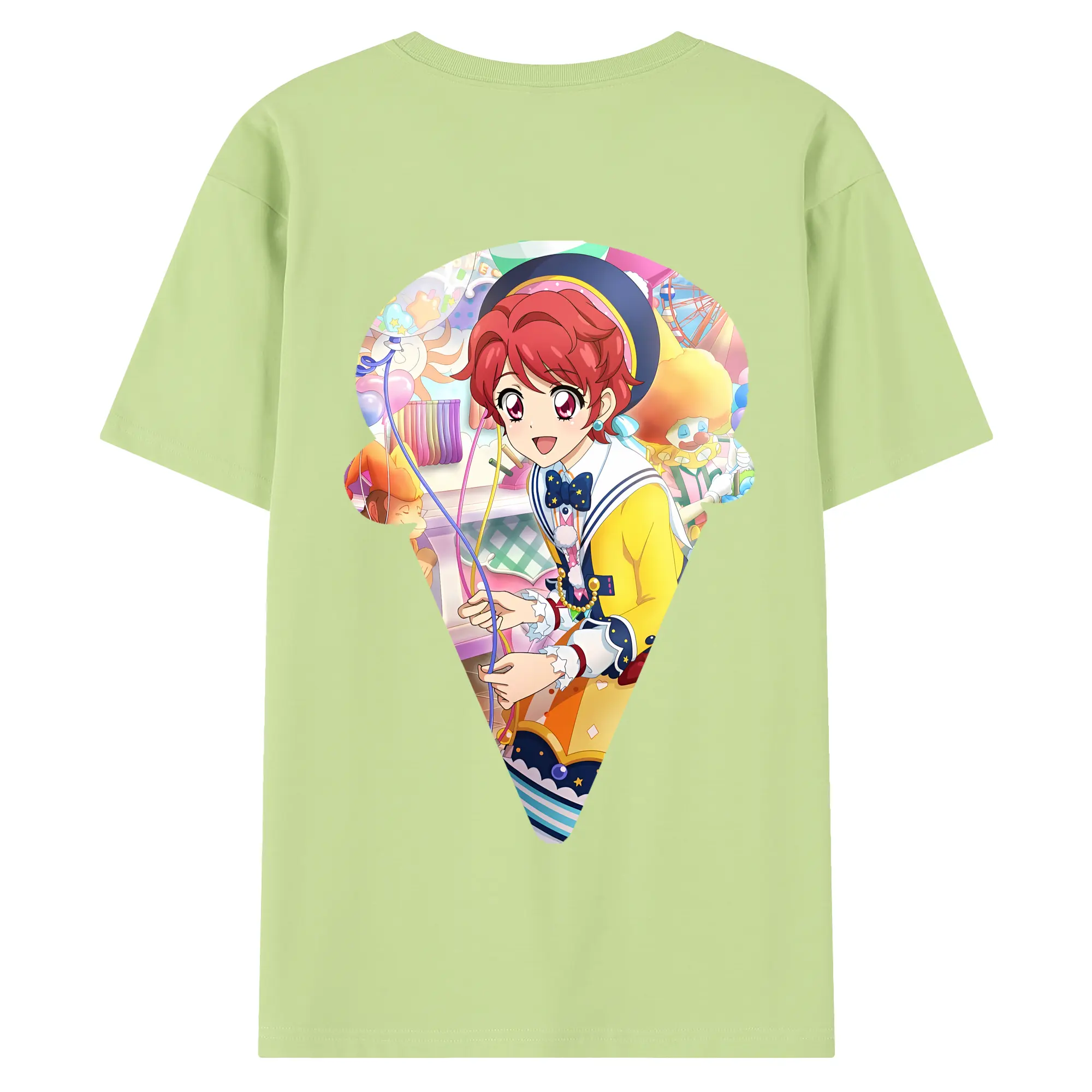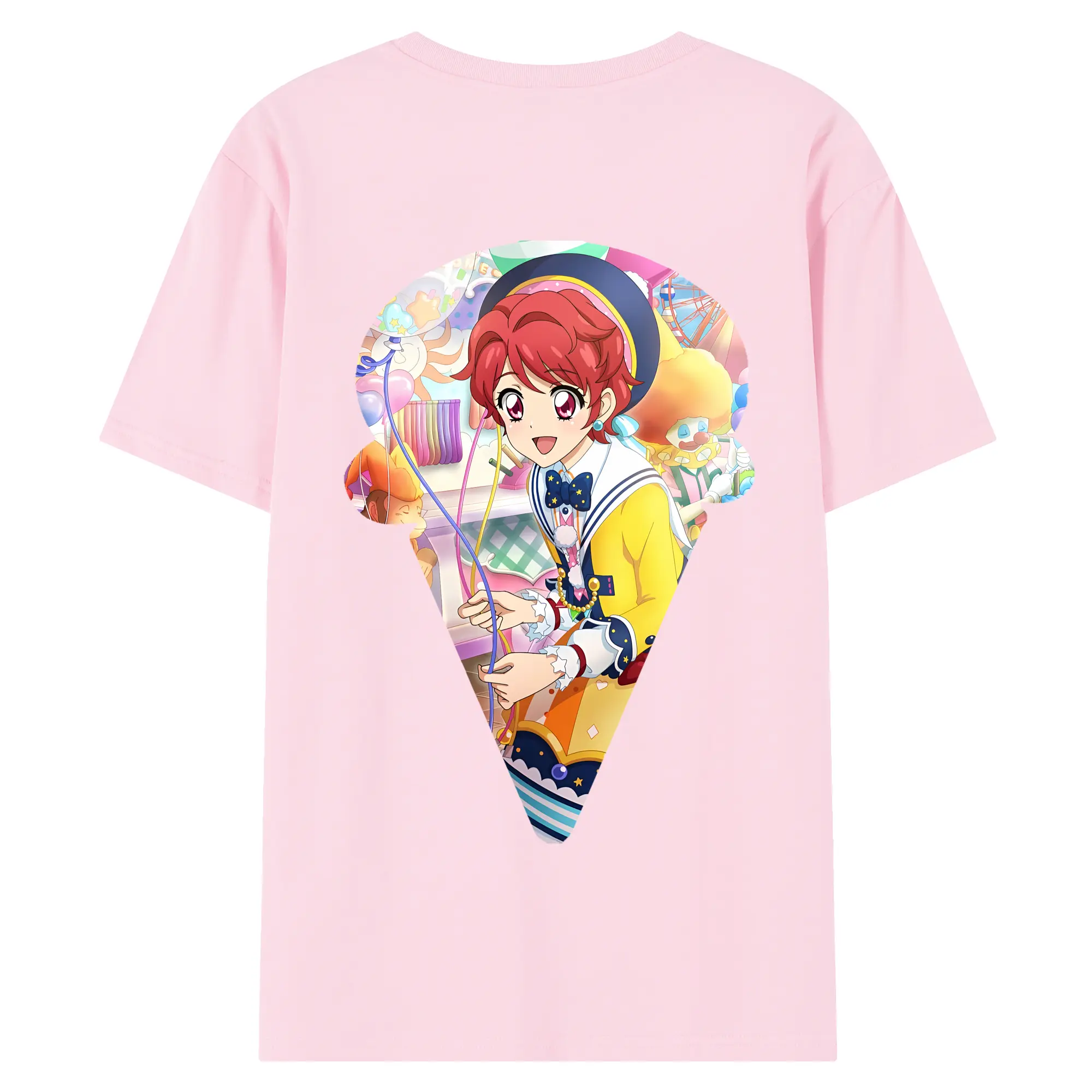 アイカツ グッズ 一ノ瀬 かえで - 綿100% ヴィンテージ風 半袖Tシャツ ・ 背面プリント ・ 柔らか肌触り ・ 通気性 快適 ・ スポーツ カジュアル 外出用