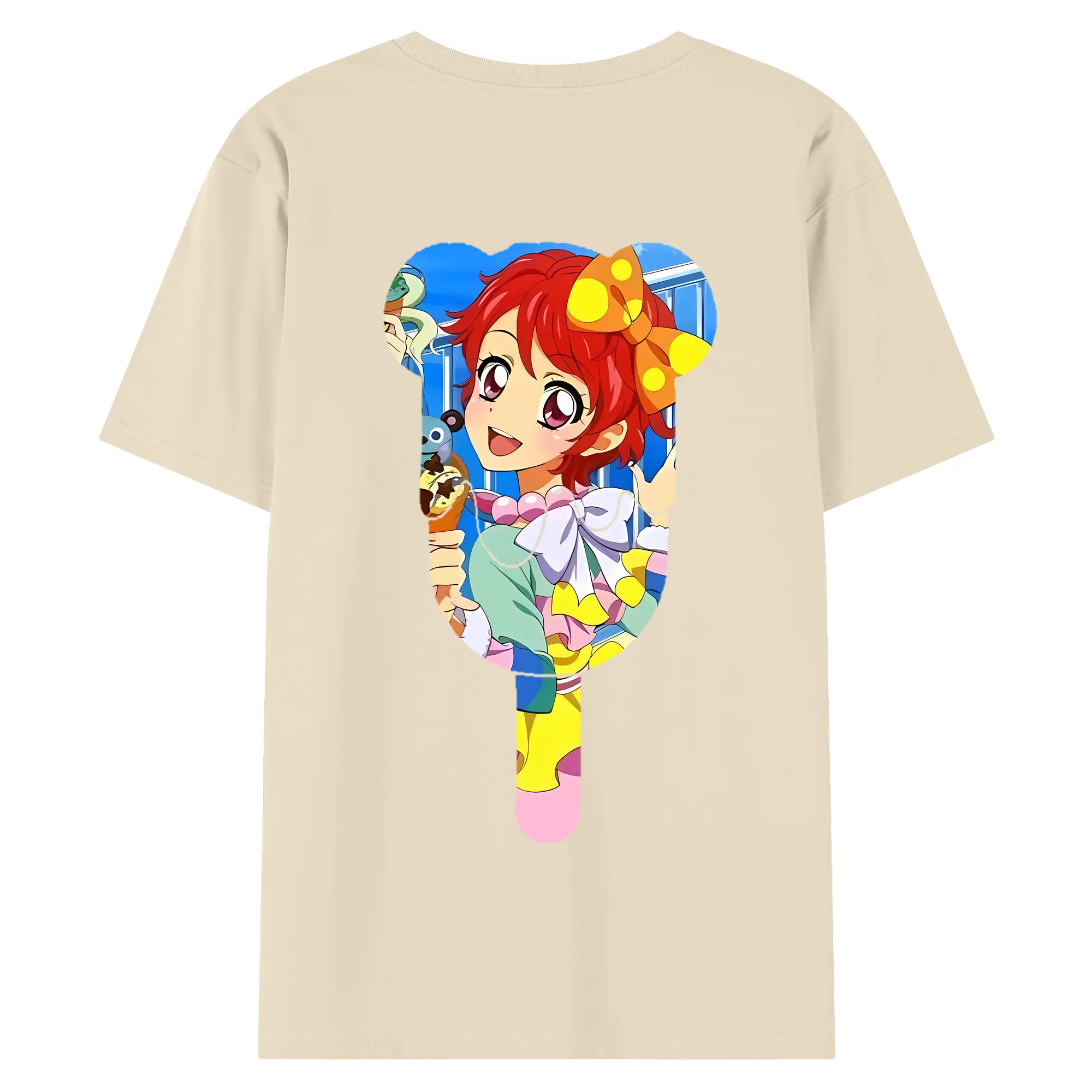 アイカツ グッズ 一ノ瀬 かえで - 綿100% ヴィンテージ風 半袖Tシャツ ・ 背面プリント ・ 柔らか肌触り ・ 通気性 快適 ・ スポーツ カジュアル 外出用