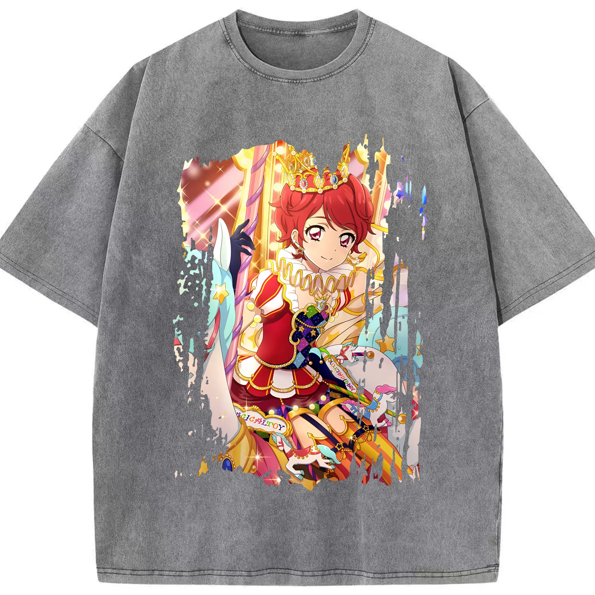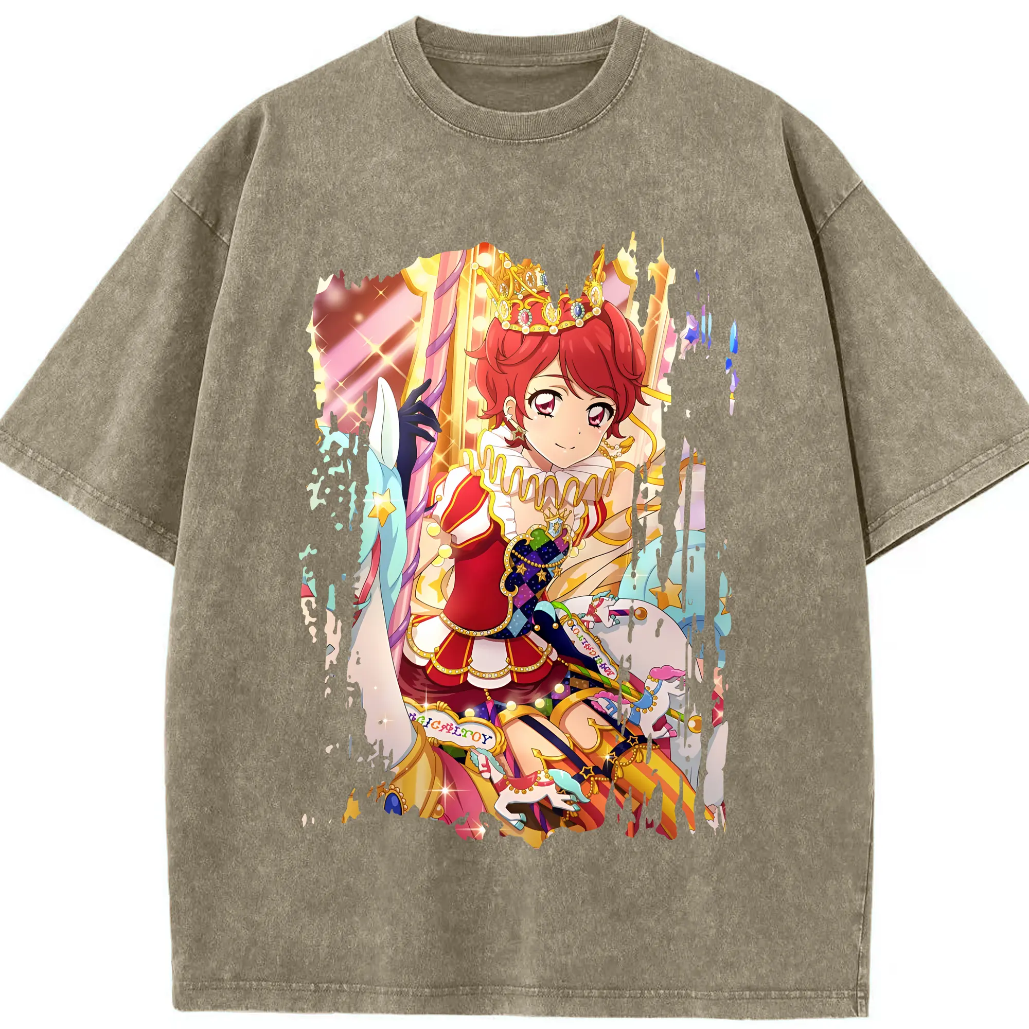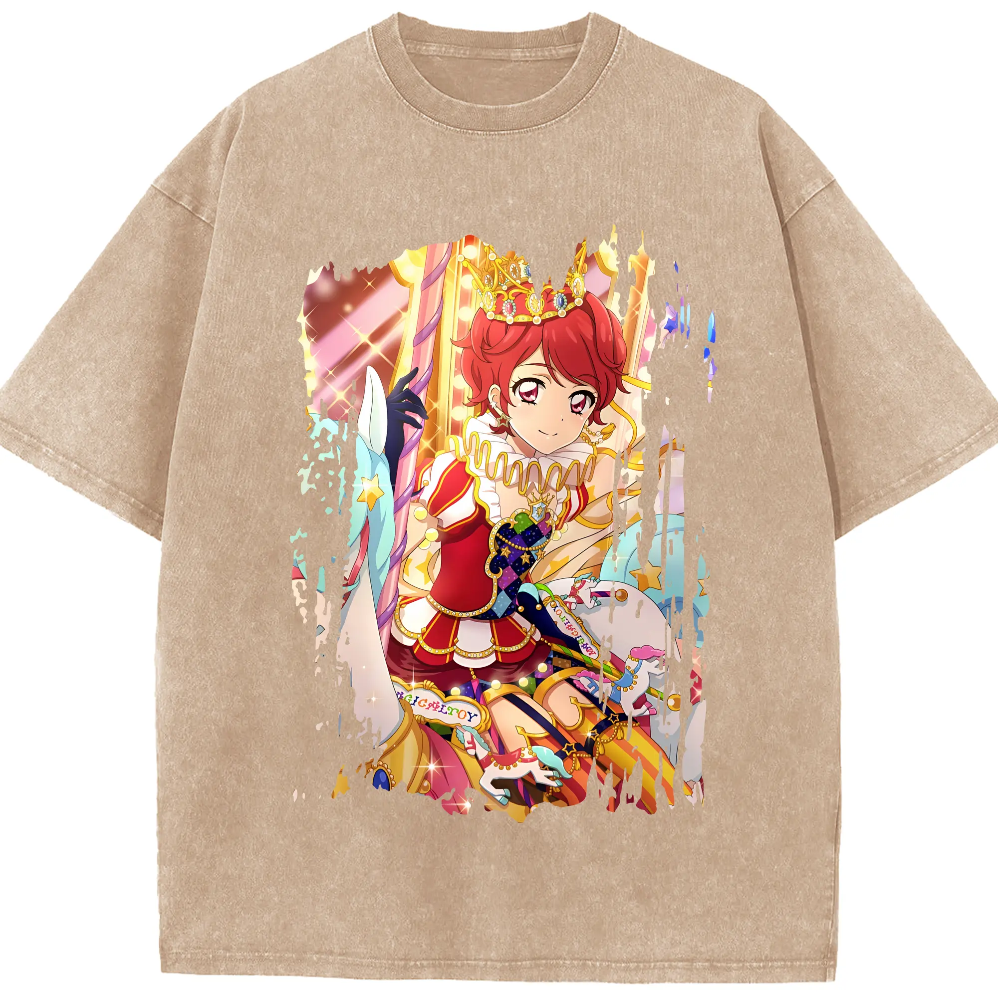 アイカツ グッズ 一ノ瀬 かえで - 綿100% ヴィンテージ風 半袖Tシャツ ・ 背面プリント ・ 柔らか肌触り ・ 通気性 快適 ・ スポーツ カジュアル 外出用