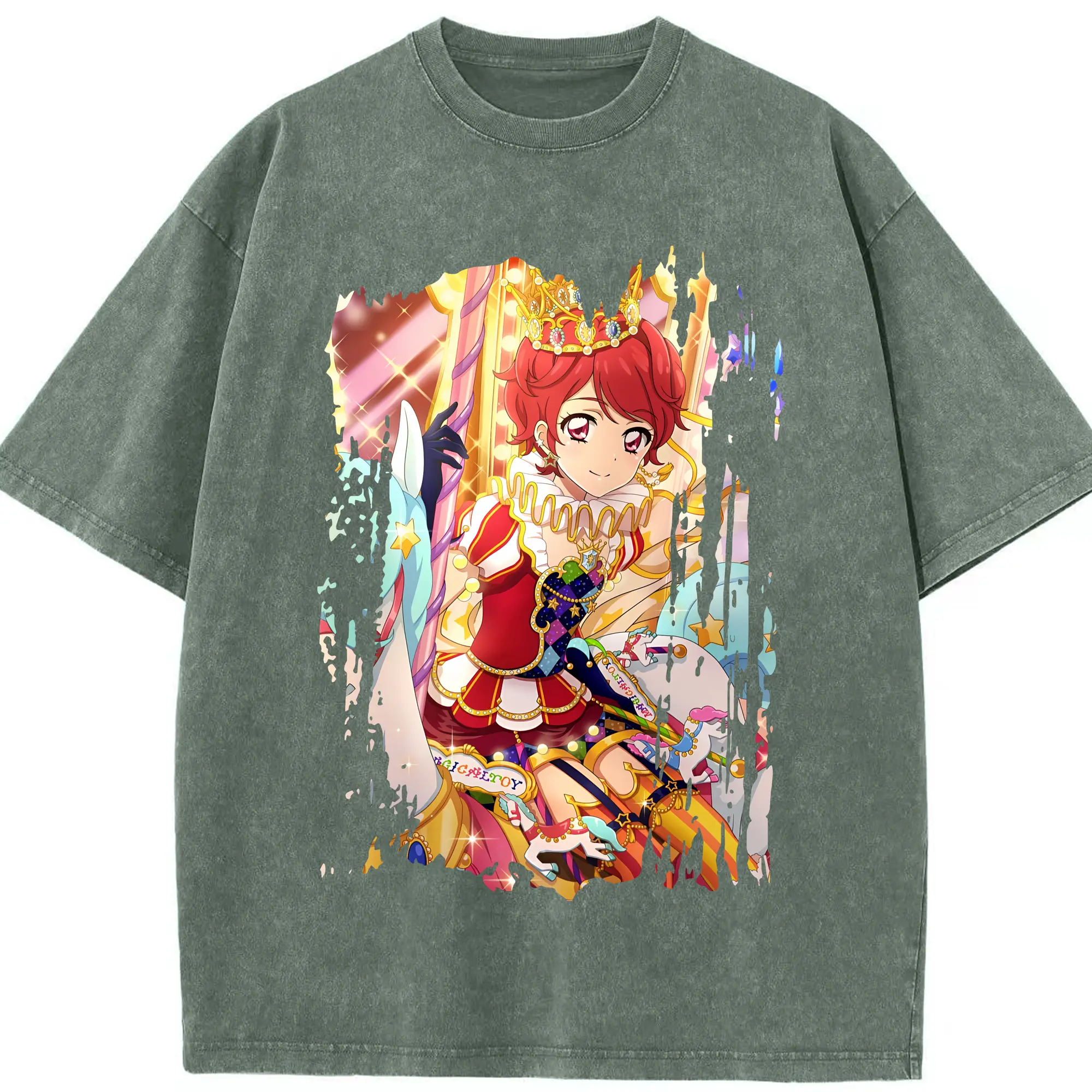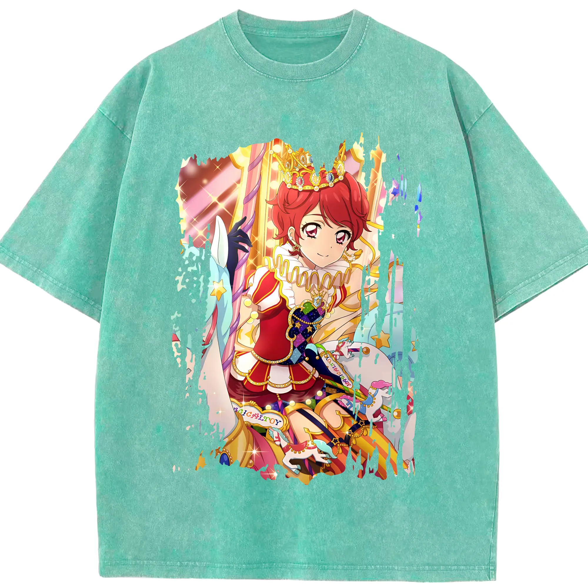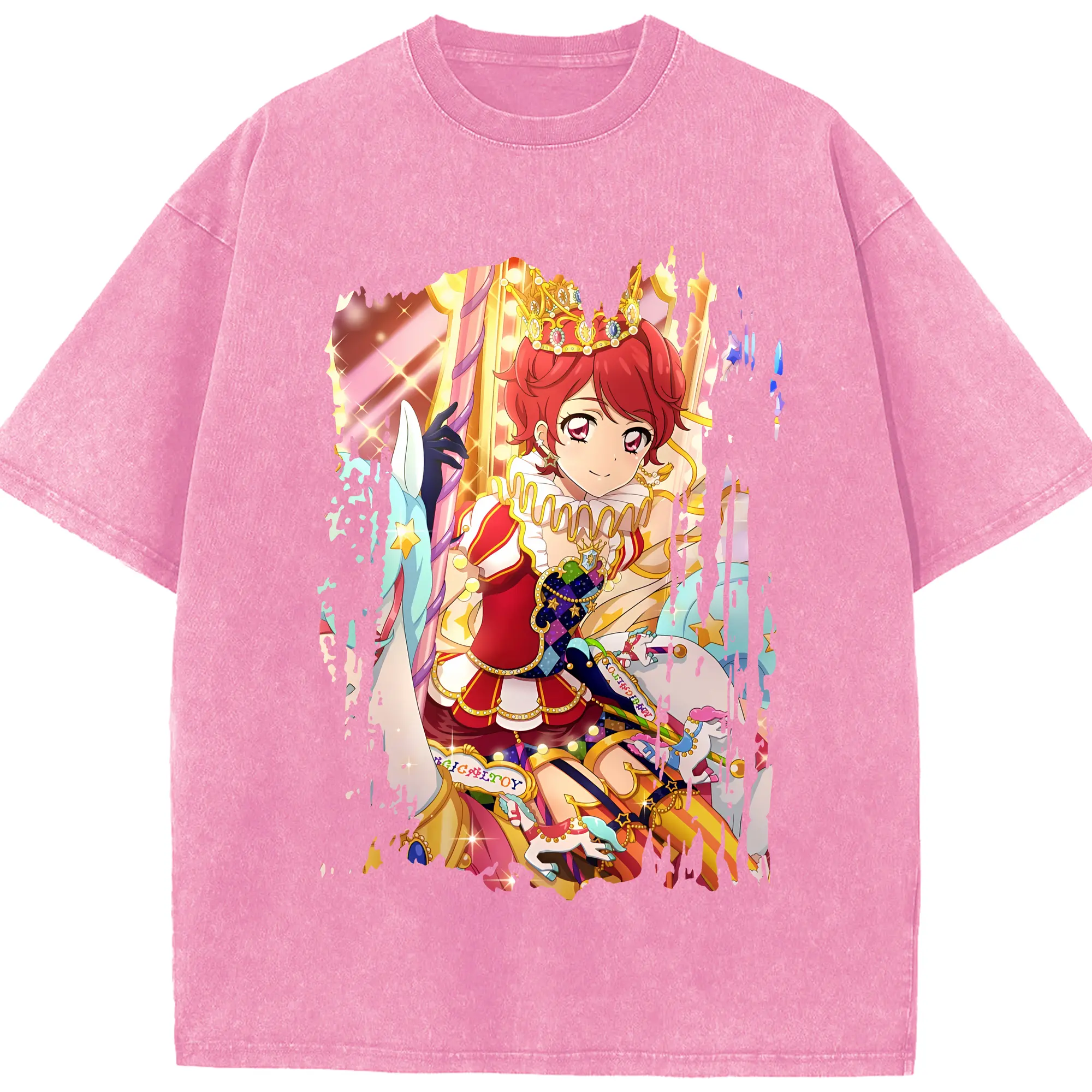 アイカツ グッズ 一ノ瀬 かえで - 綿100% ヴィンテージ風 半袖Tシャツ ・ 背面プリント ・ 柔らか肌触り ・ 通気性 快適 ・ スポーツ カジュアル 外出用