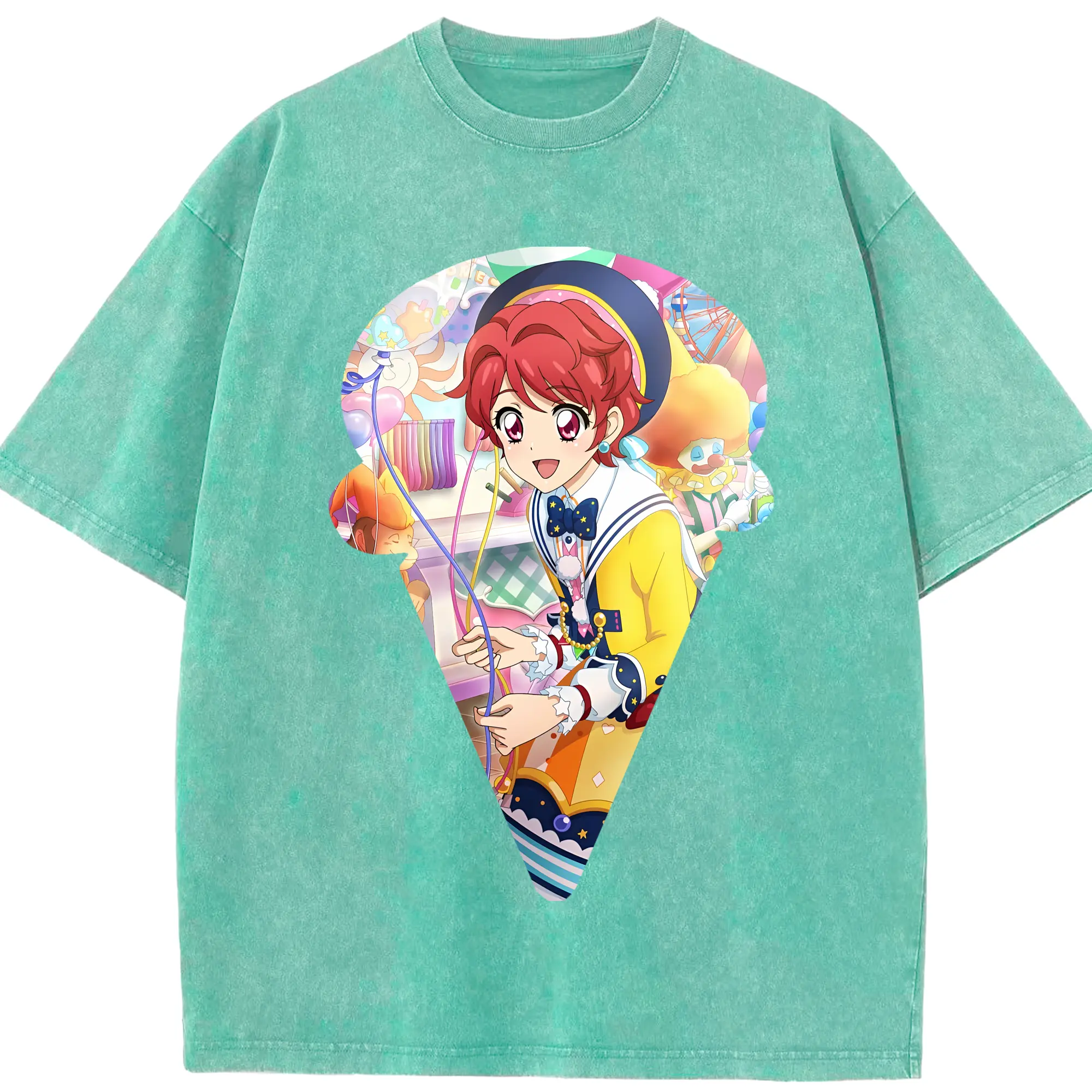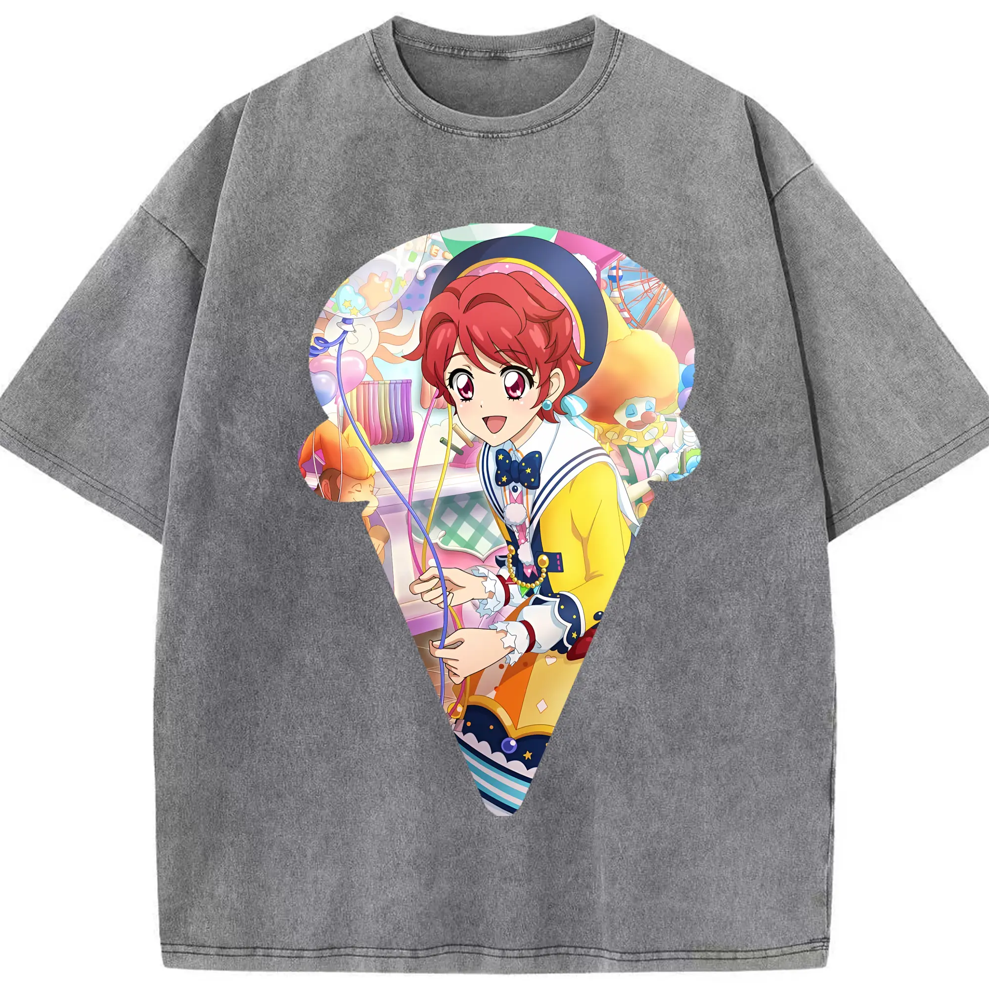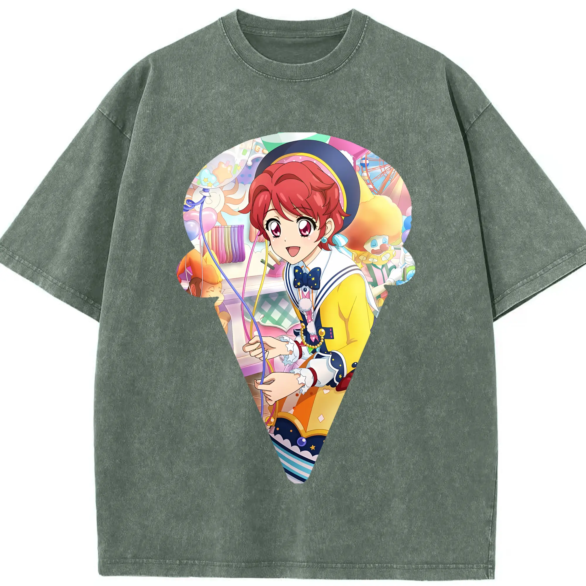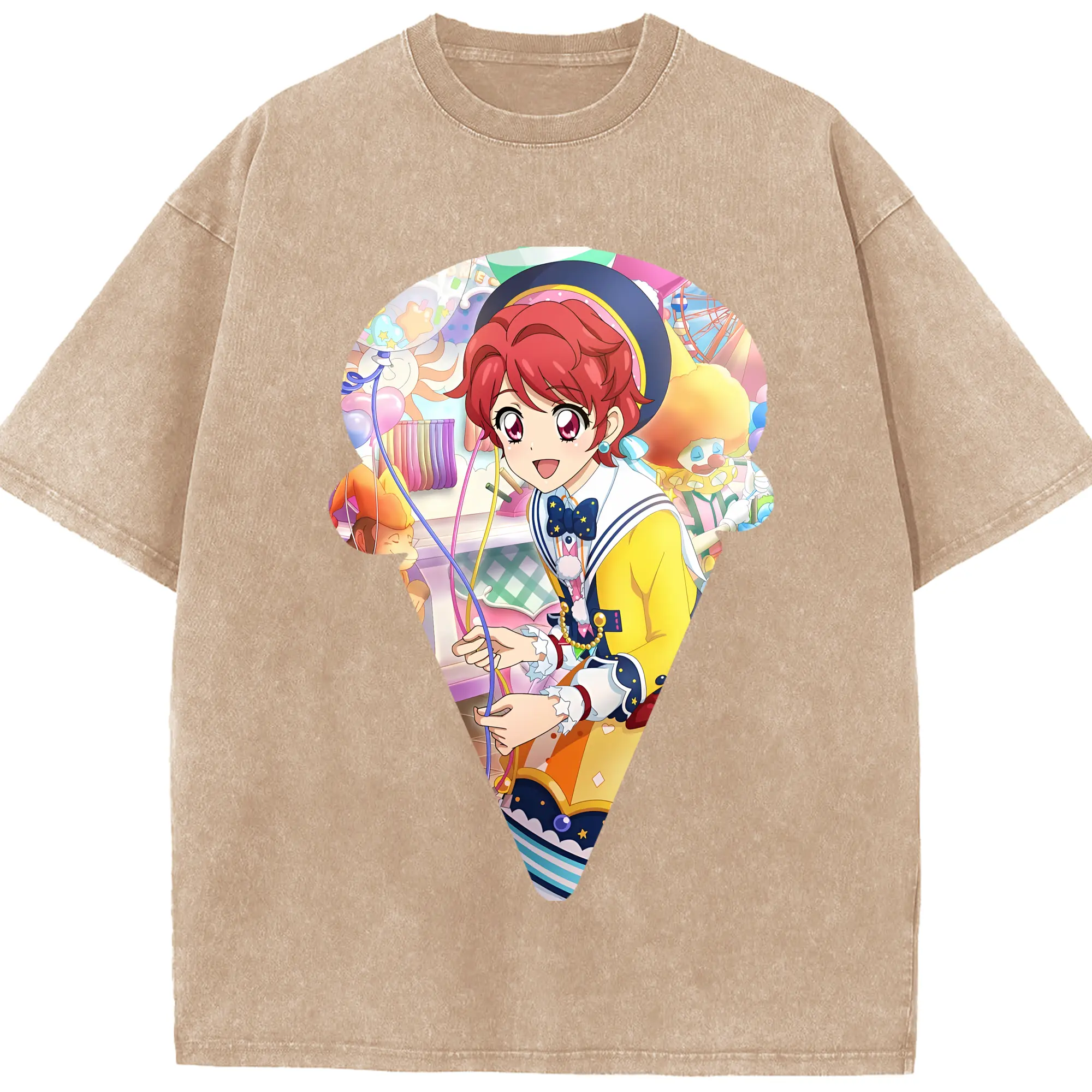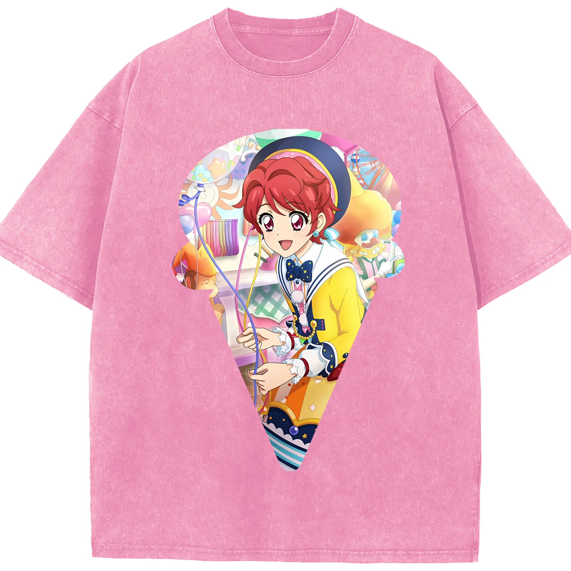 アイカツ グッズ 一ノ瀬 かえで - 綿100% ヴィンテージ風 半袖Tシャツ ・ 背面プリント ・ 柔らか肌触り ・ 通気性 快適 ・ スポーツ カジュアル 外出用