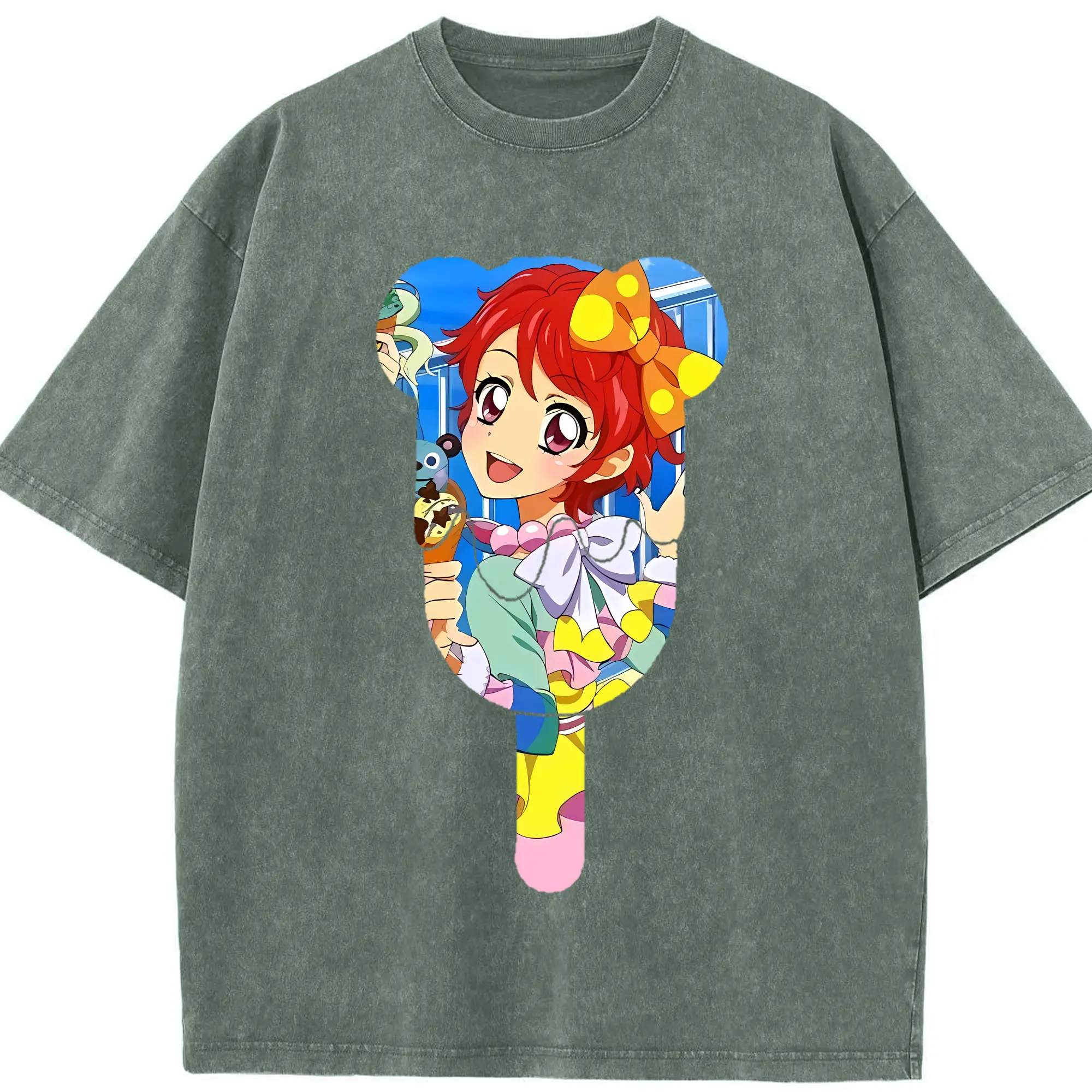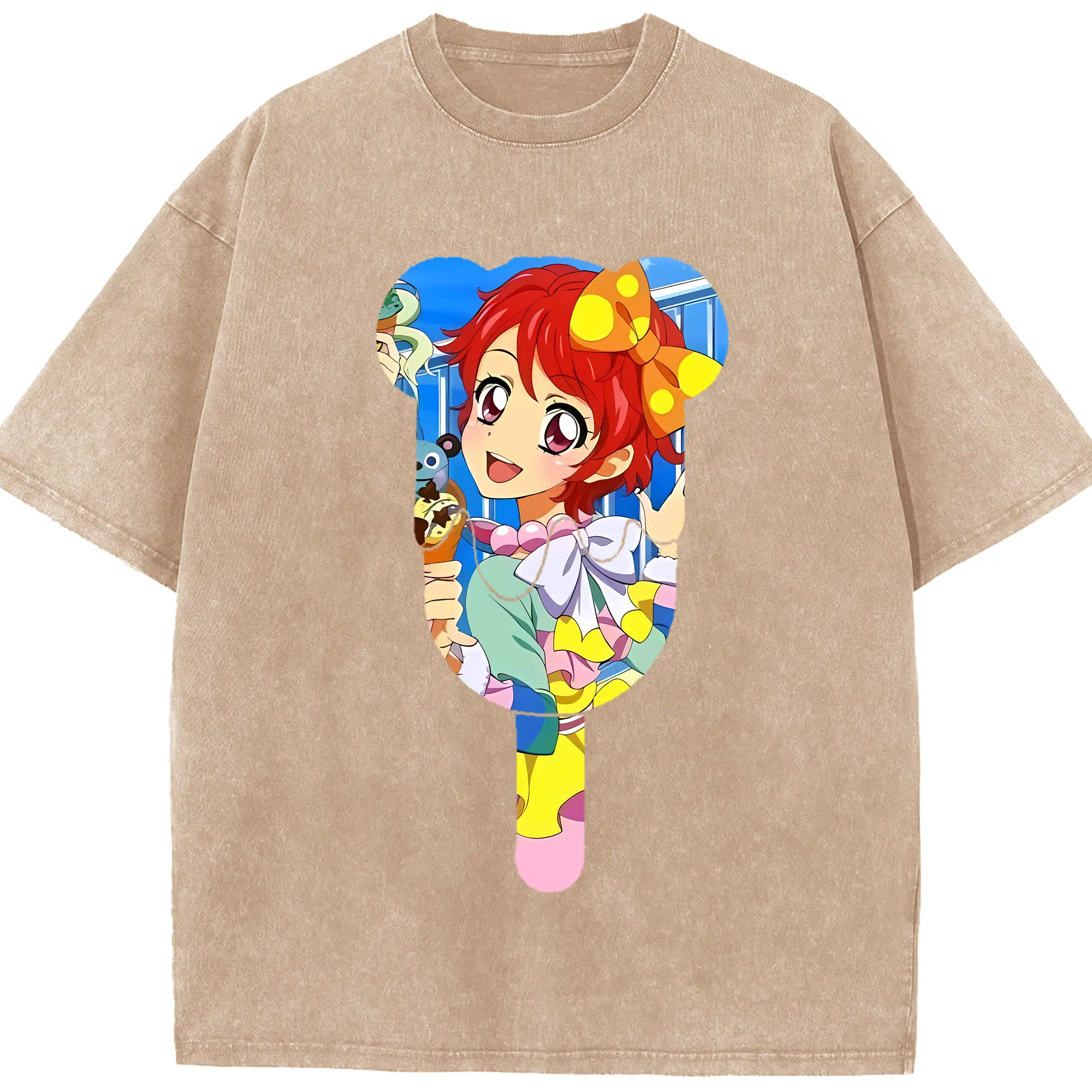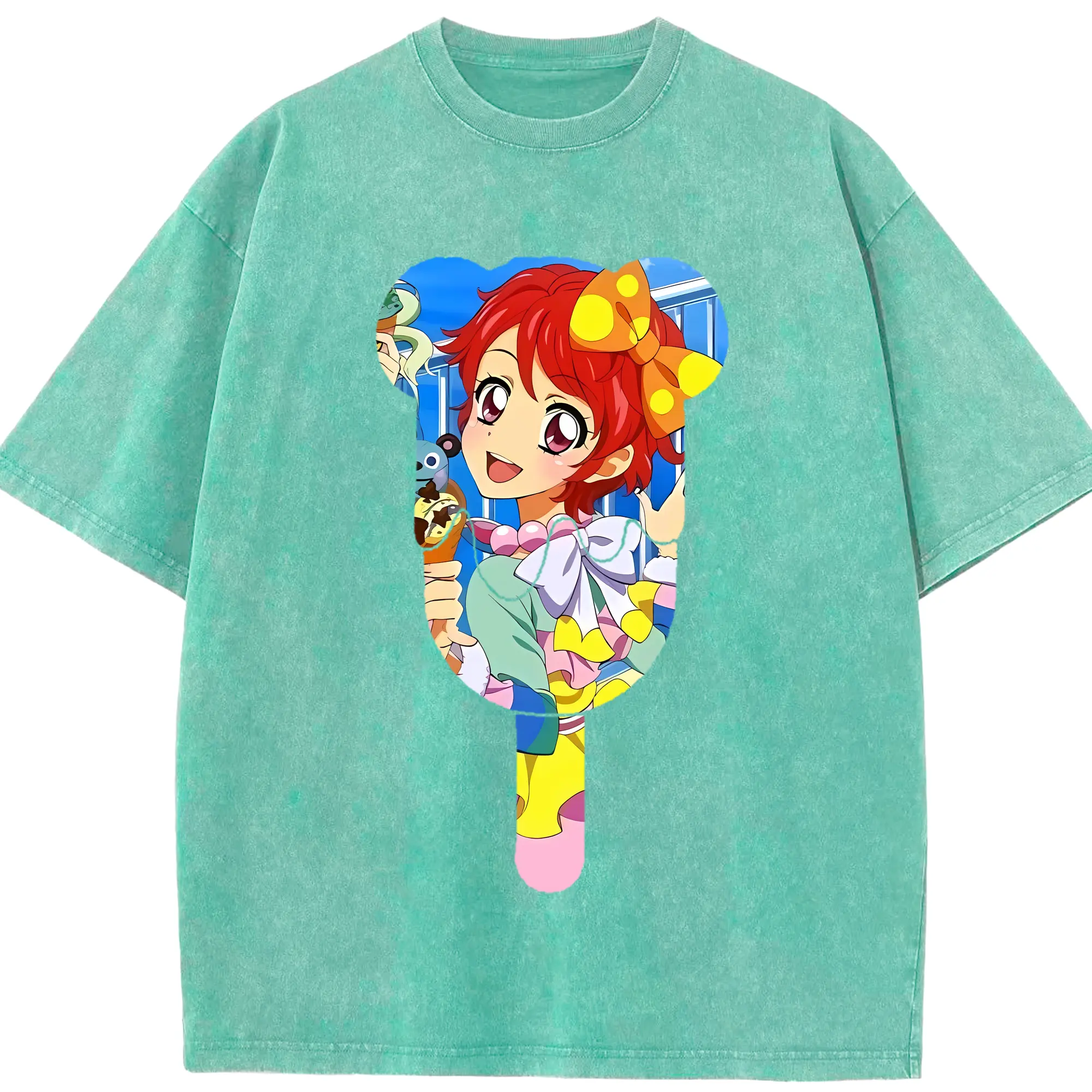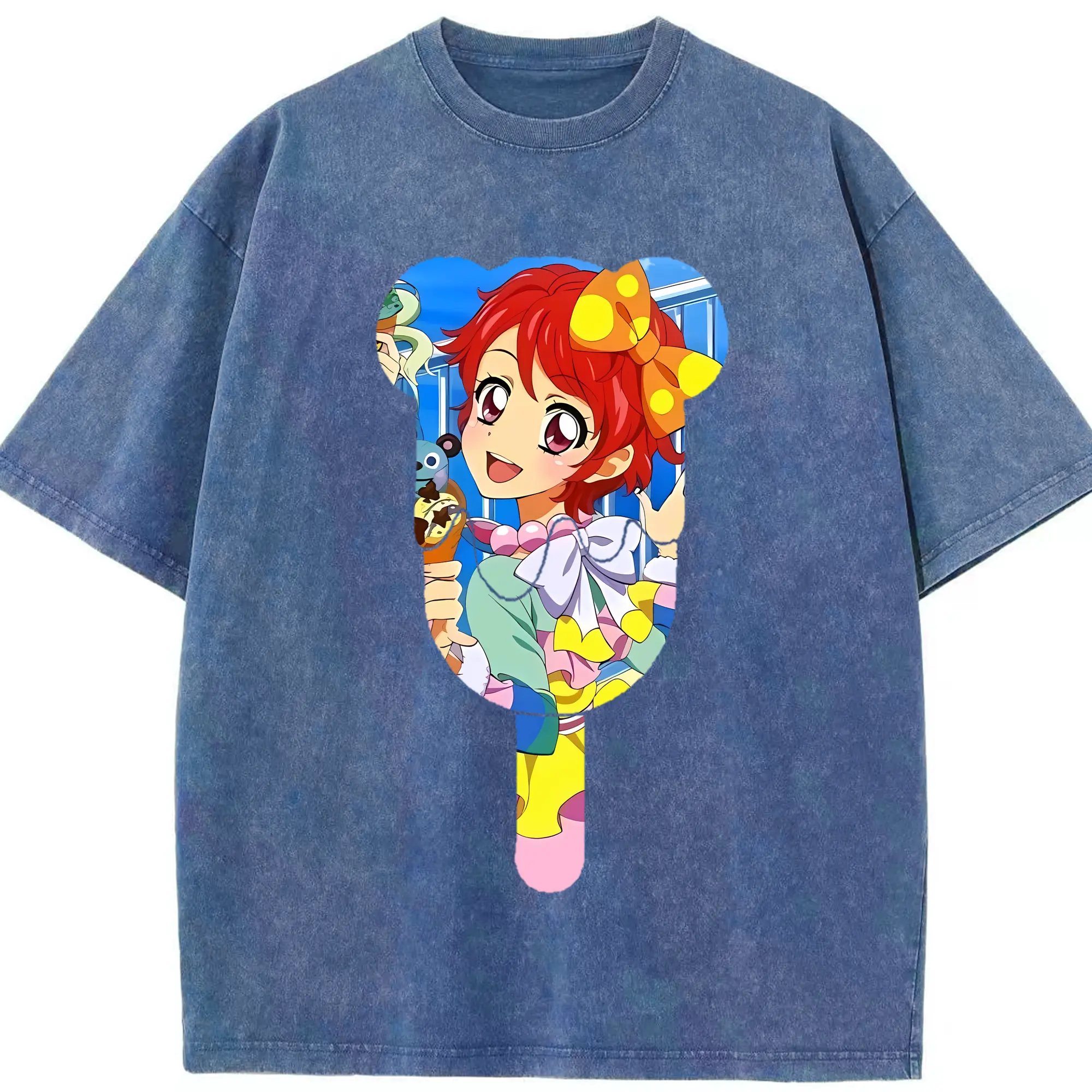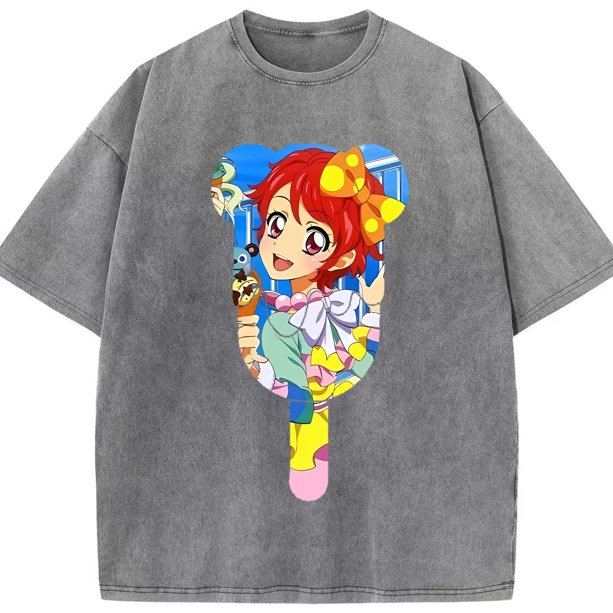 アイカツ グッズ 一ノ瀬 かえで - 綿100% ヴィンテージ風 半袖Tシャツ ・ 背面プリント ・ 柔らか肌触り ・ 通気性 快適 ・ スポーツ カジュアル 外出用