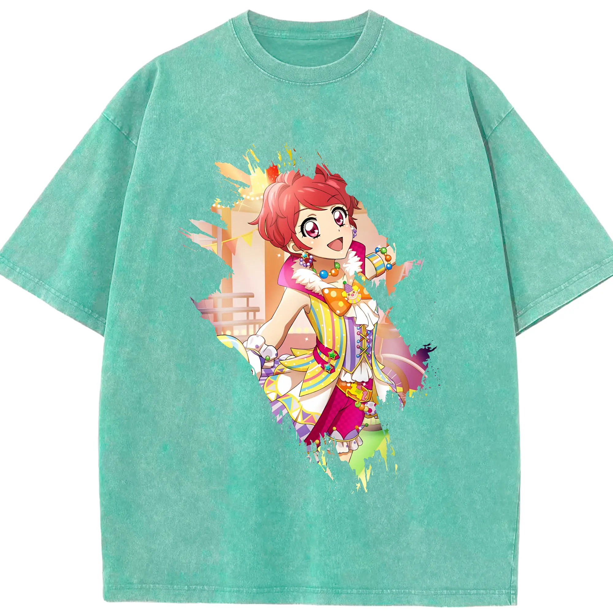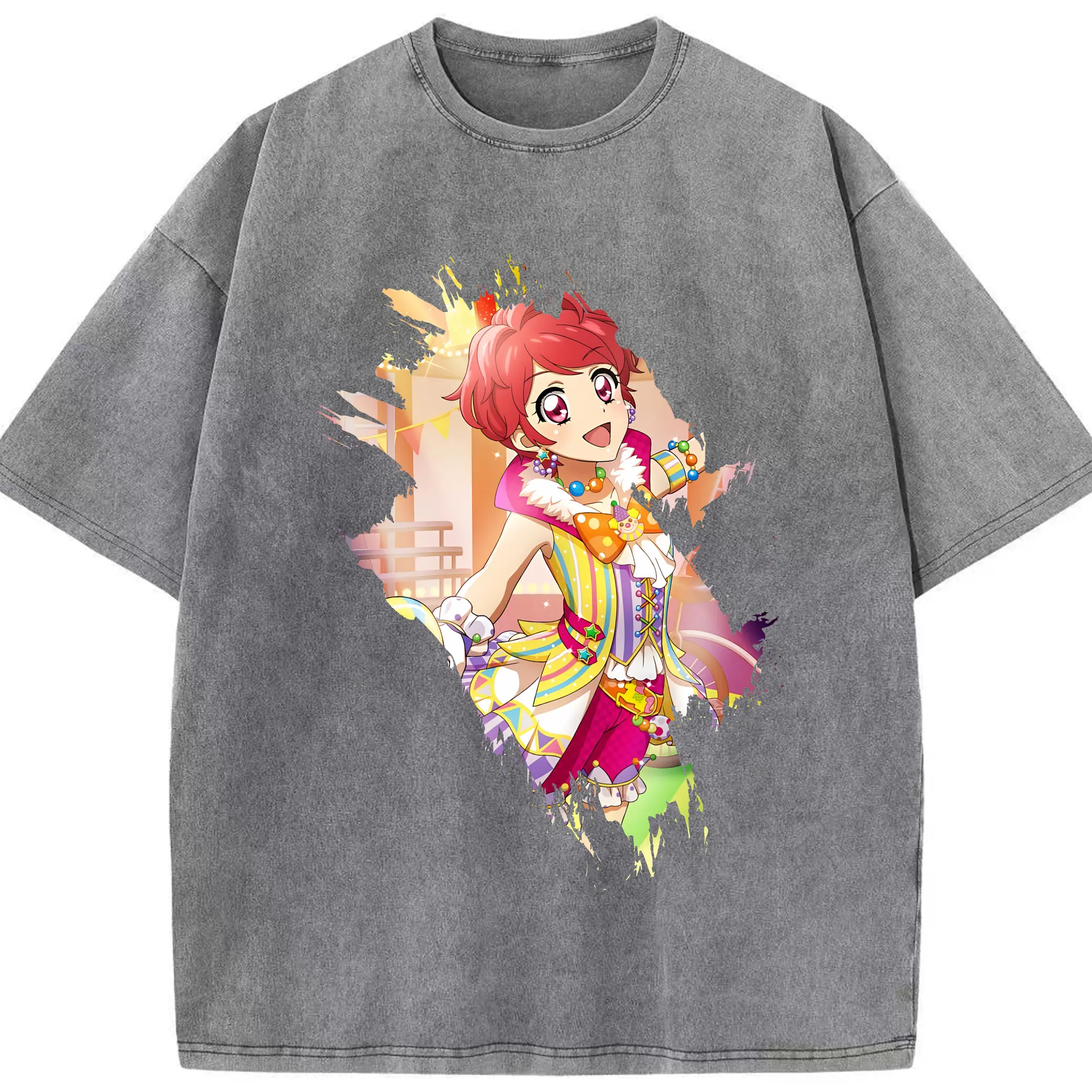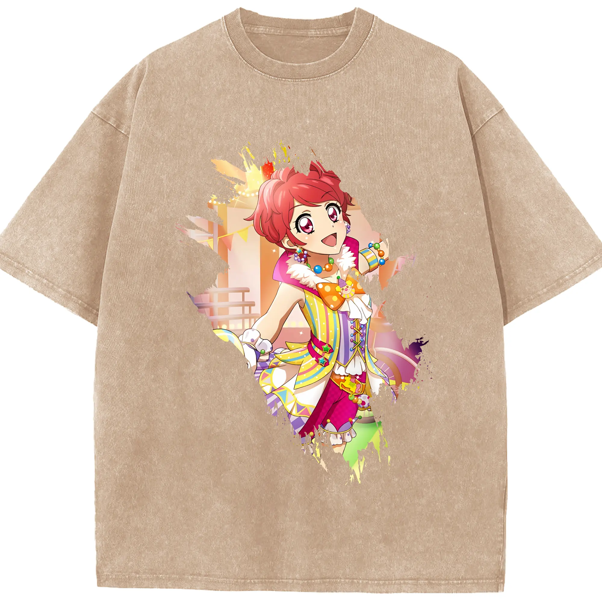 アイカツ グッズ 一ノ瀬 かえで - 綿100% ヴィンテージ風 半袖Tシャツ ・ 背面プリント ・ 柔らか肌触り ・ 通気性 快適 ・ スポーツ カジュアル 外出用