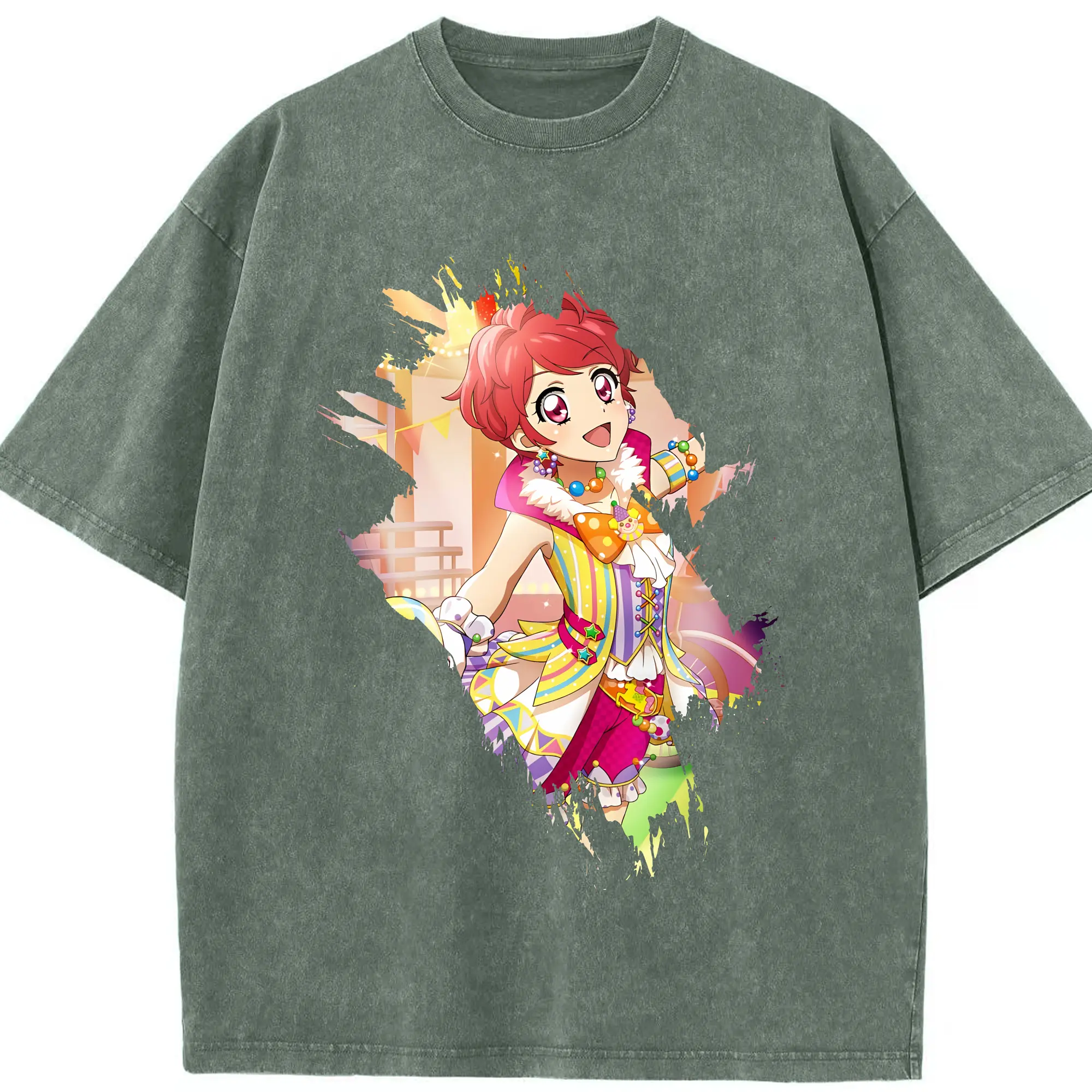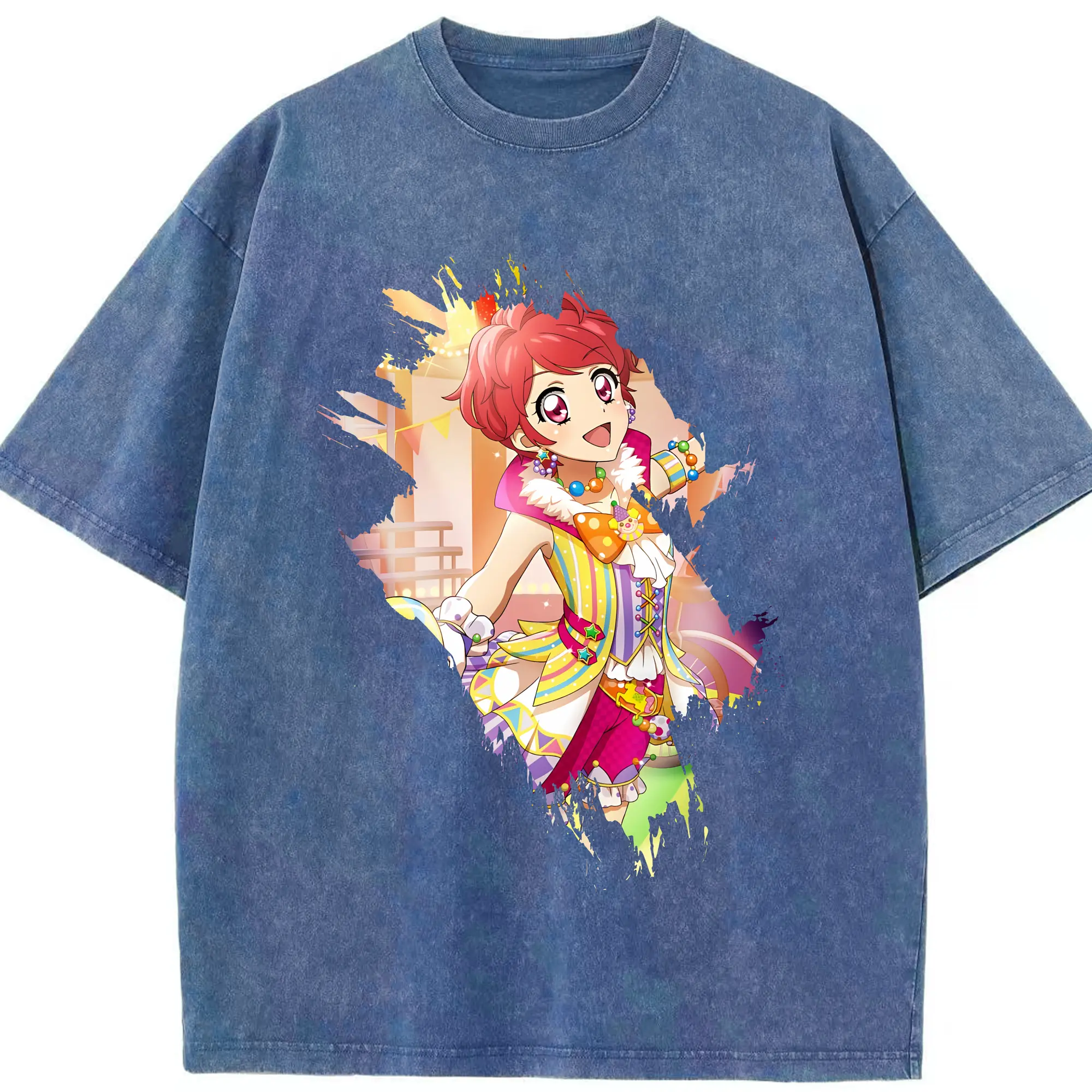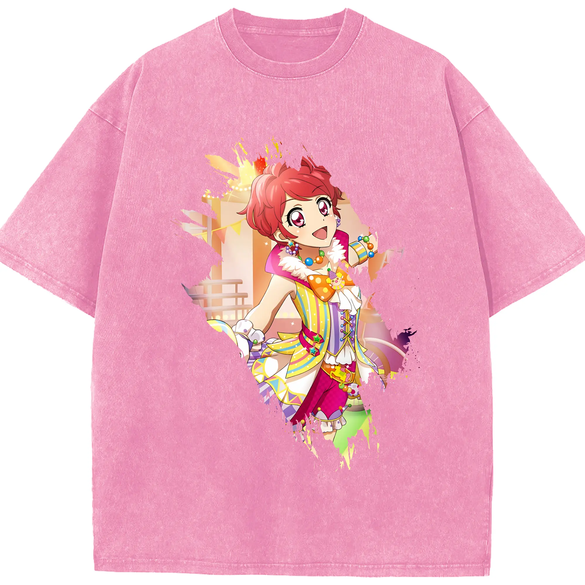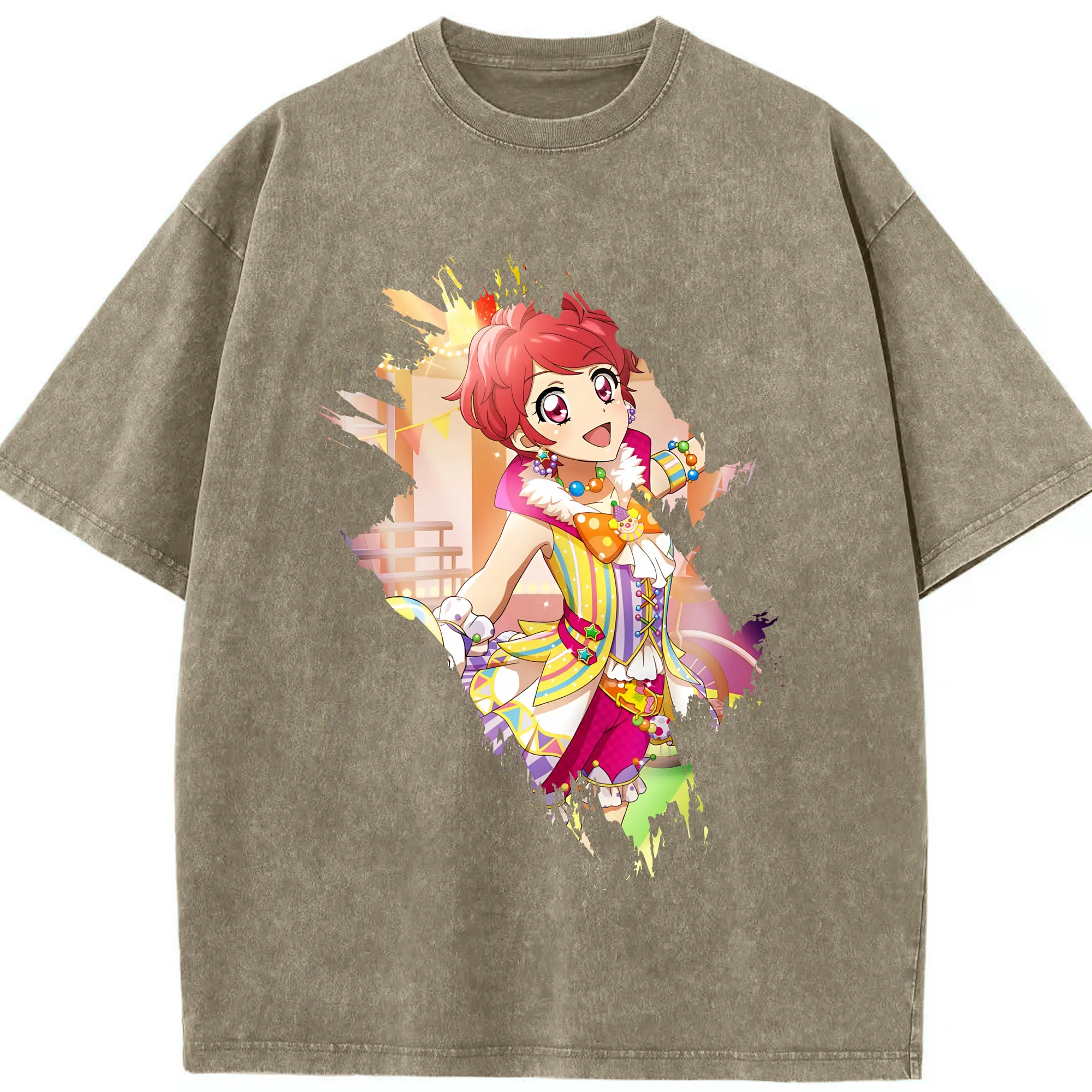 アイカツ グッズ 一ノ瀬 かえで - 綿100% ヴィンテージ風 半袖Tシャツ ・ 背面プリント ・ 柔らか肌触り ・ 通気性 快適 ・ スポーツ カジュアル 外出用