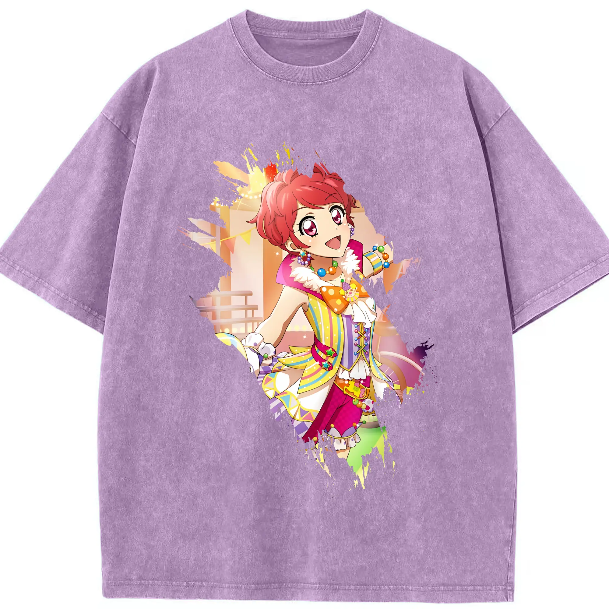 アイカツ グッズ 氷上 スミレ - 綿100% ヴィンテージ風 半袖Tシャツ ・ フロントプリント ・ 柔らか肌触り ・ 通気性 快適 ・ スポーツ カジュアル 外出用