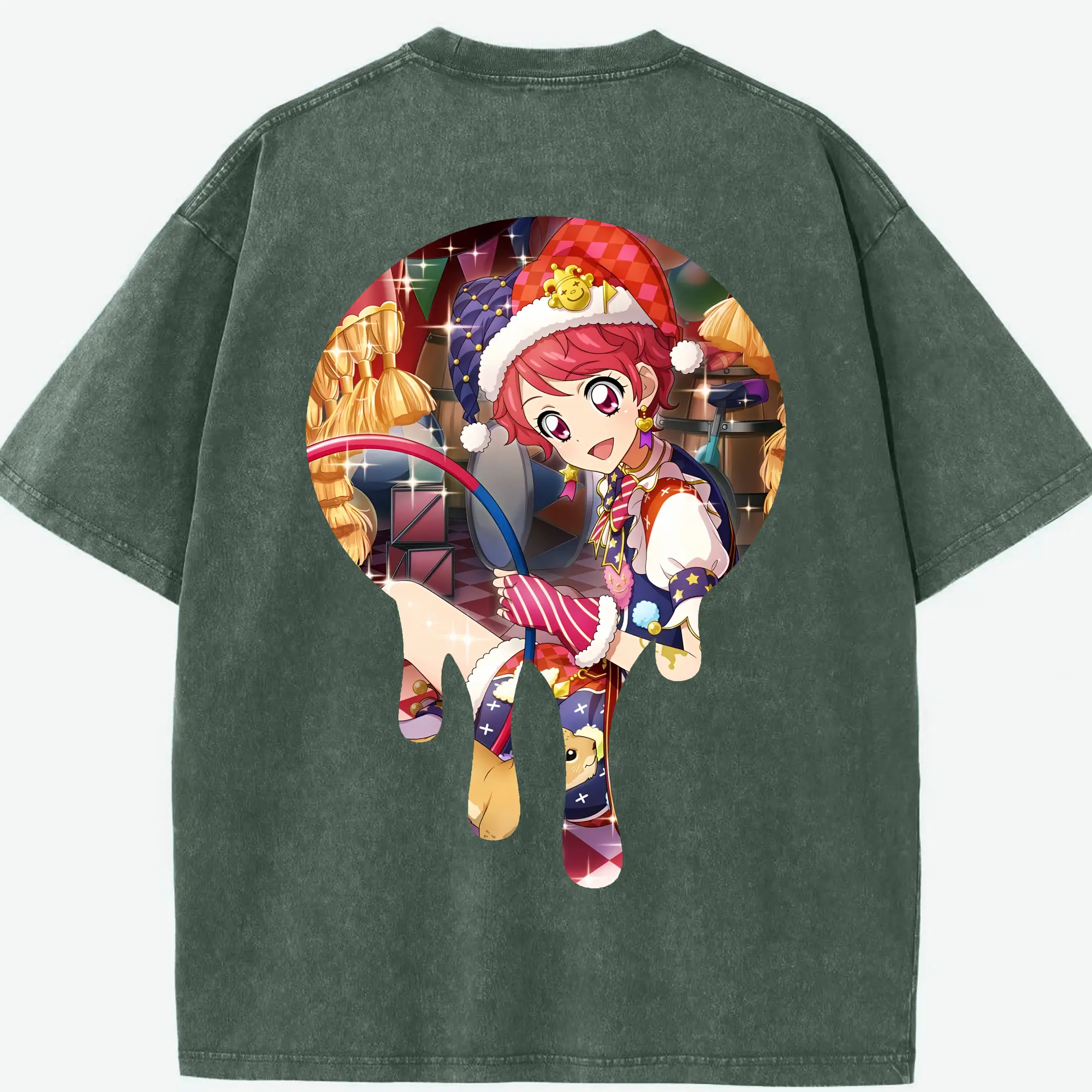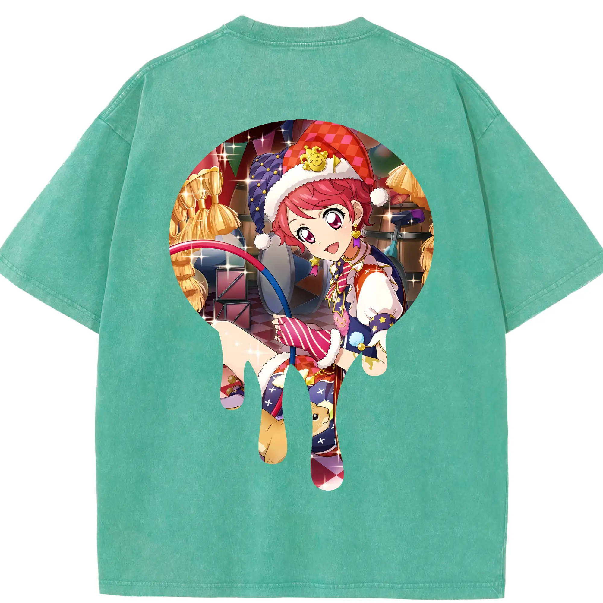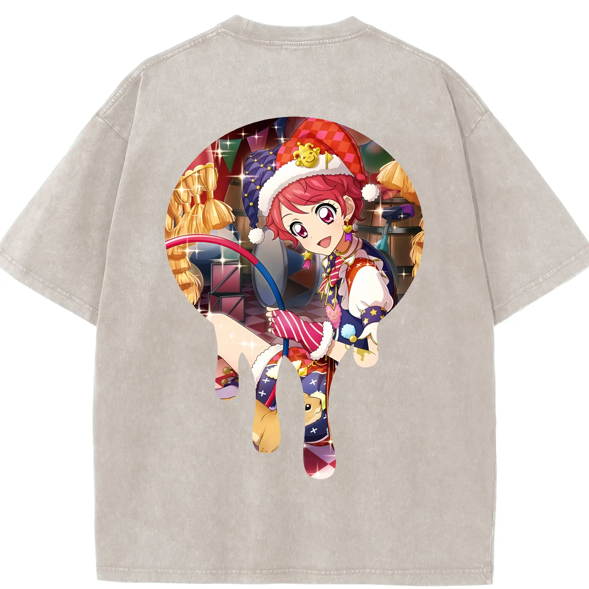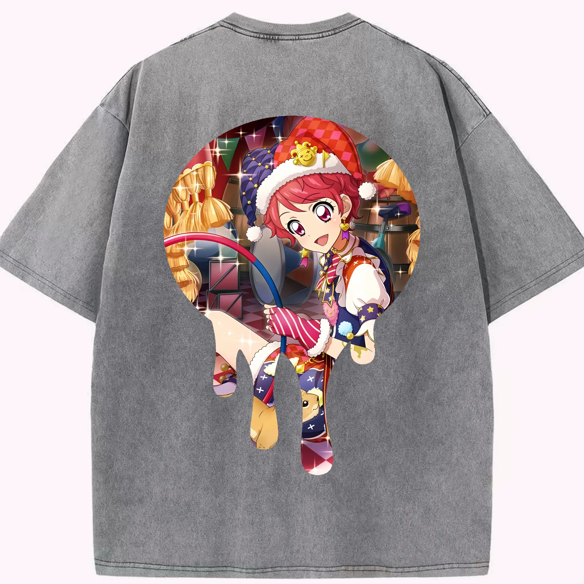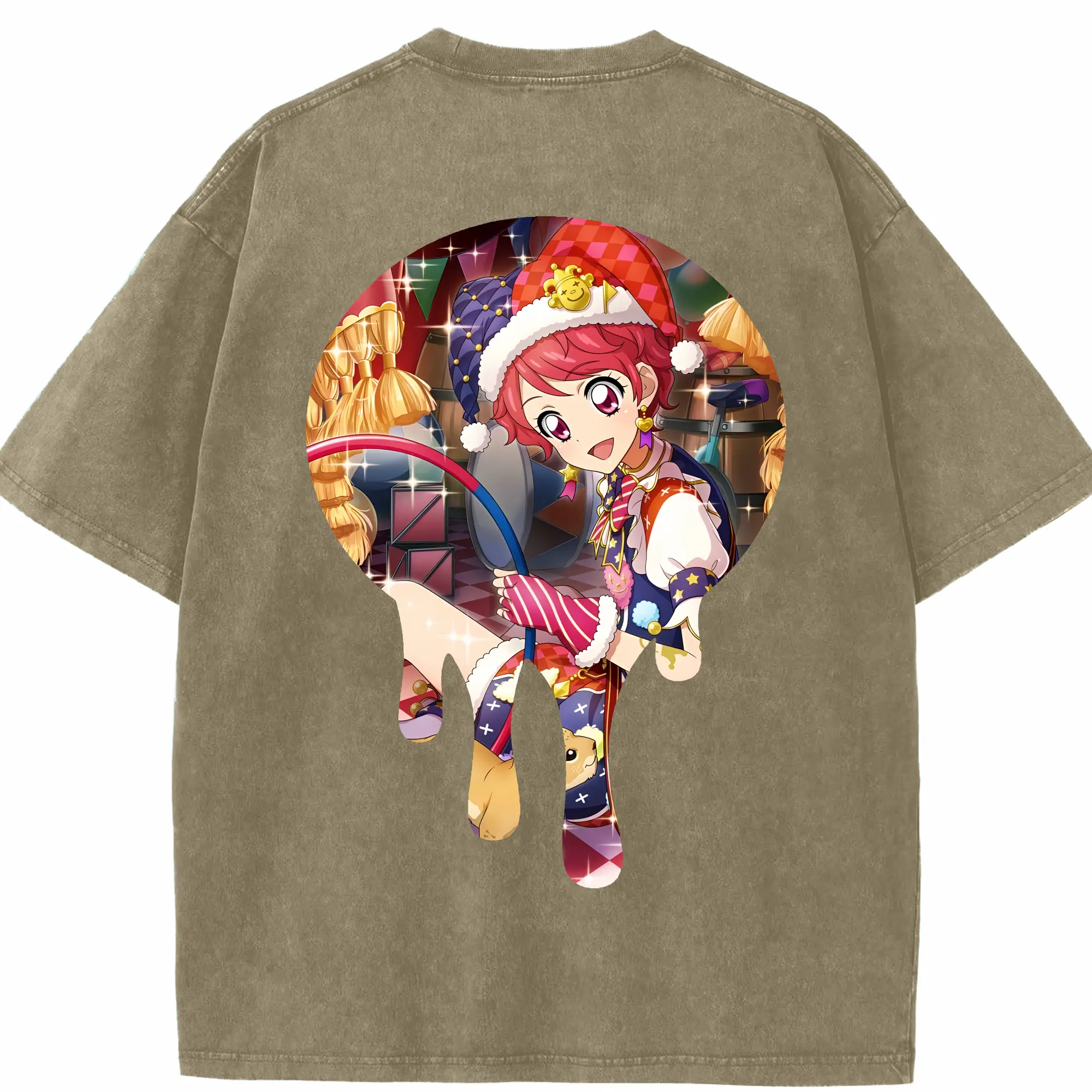 アイカツ グッズ 一ノ瀬 かえで - 綿100% ヴィンテージ風 半袖Tシャツ ・ フロントプリント ・ 柔らか肌触り ・ 通気性 快適 ・ スポーツ カジュアル 外出用