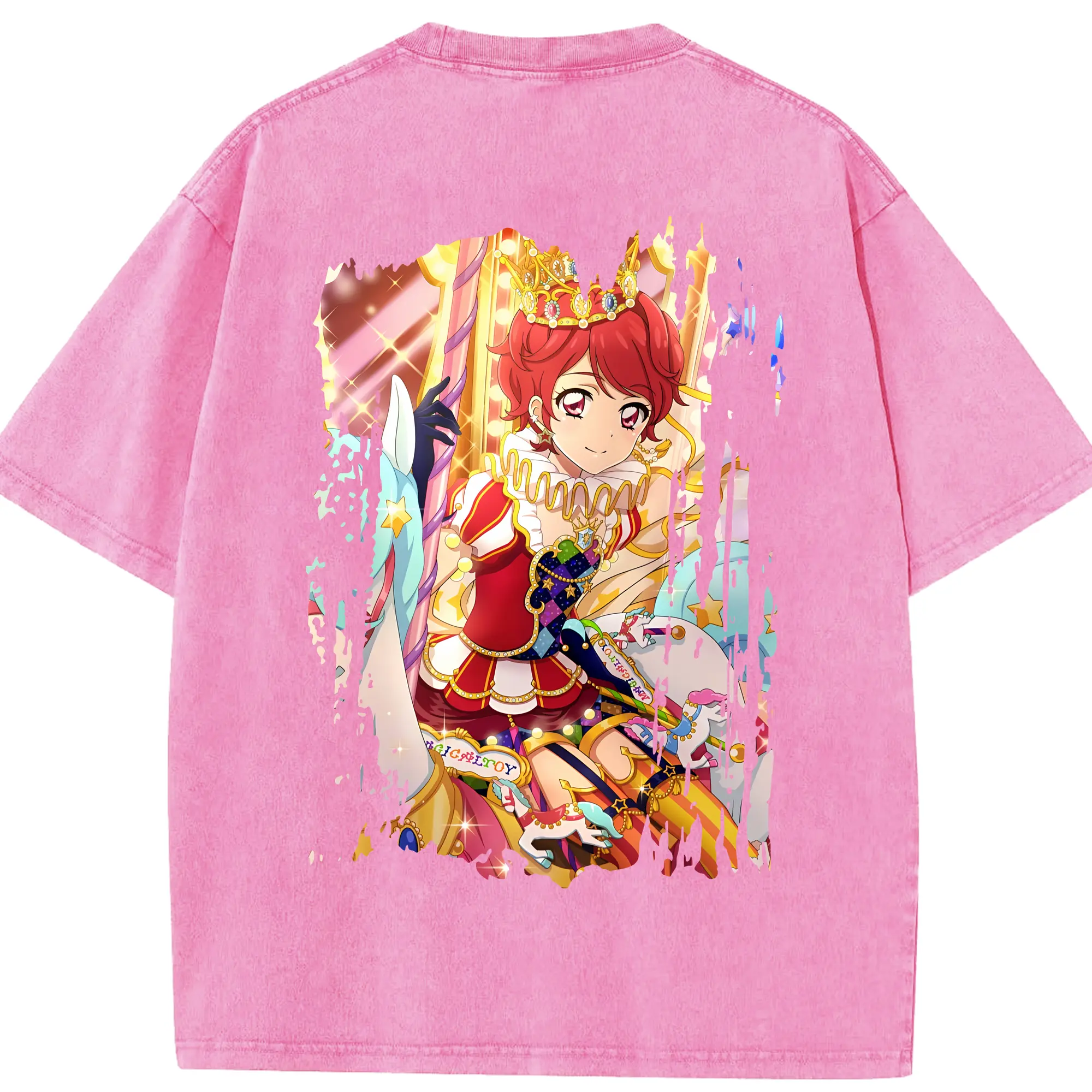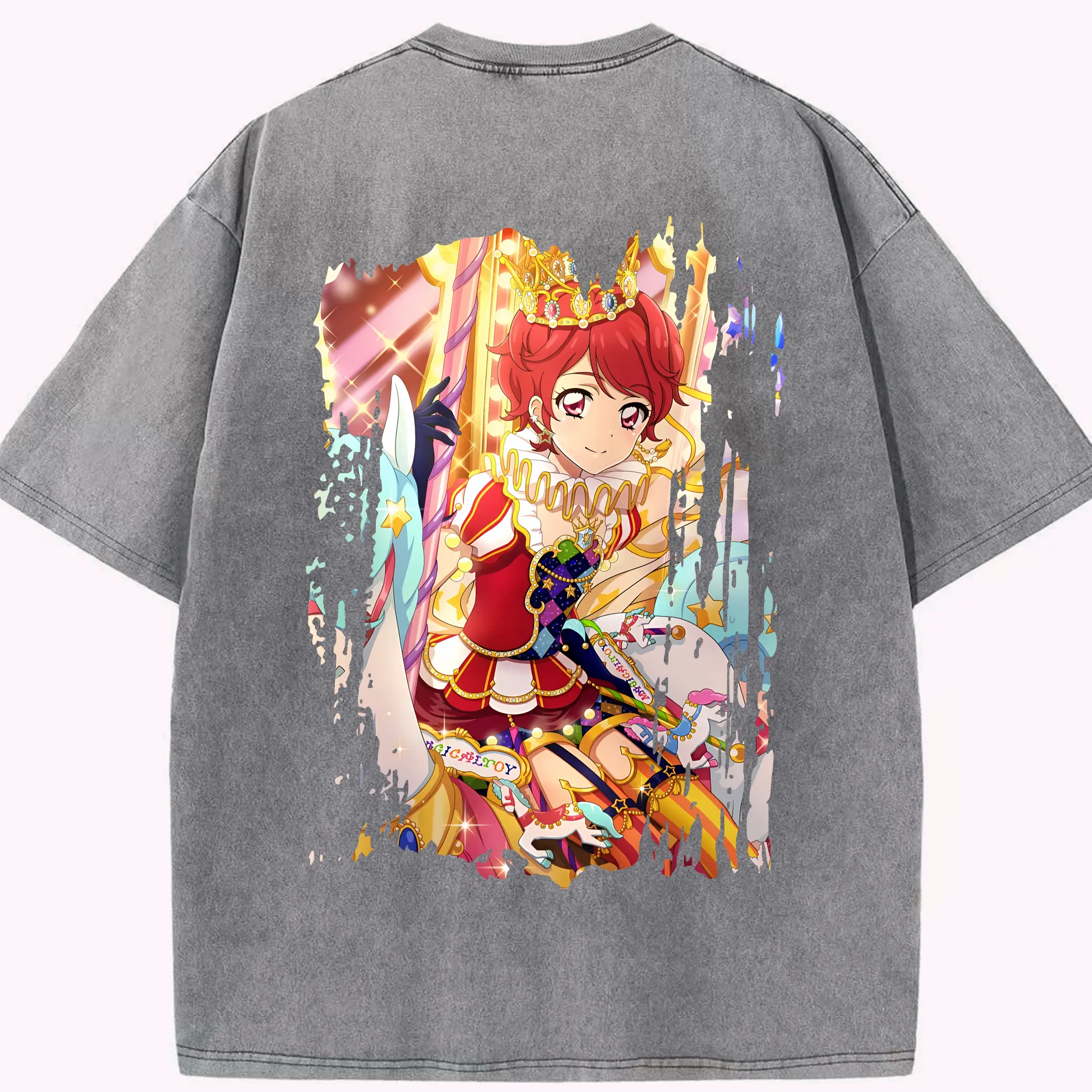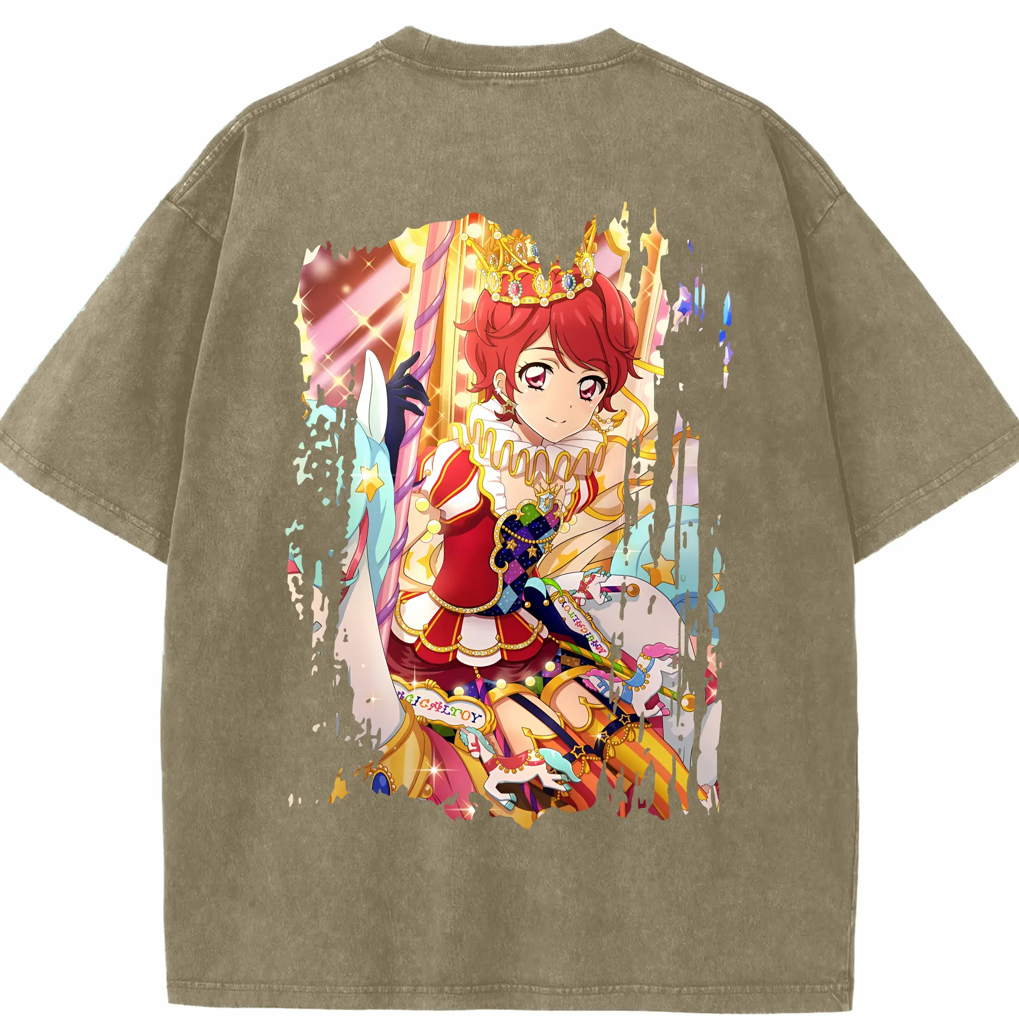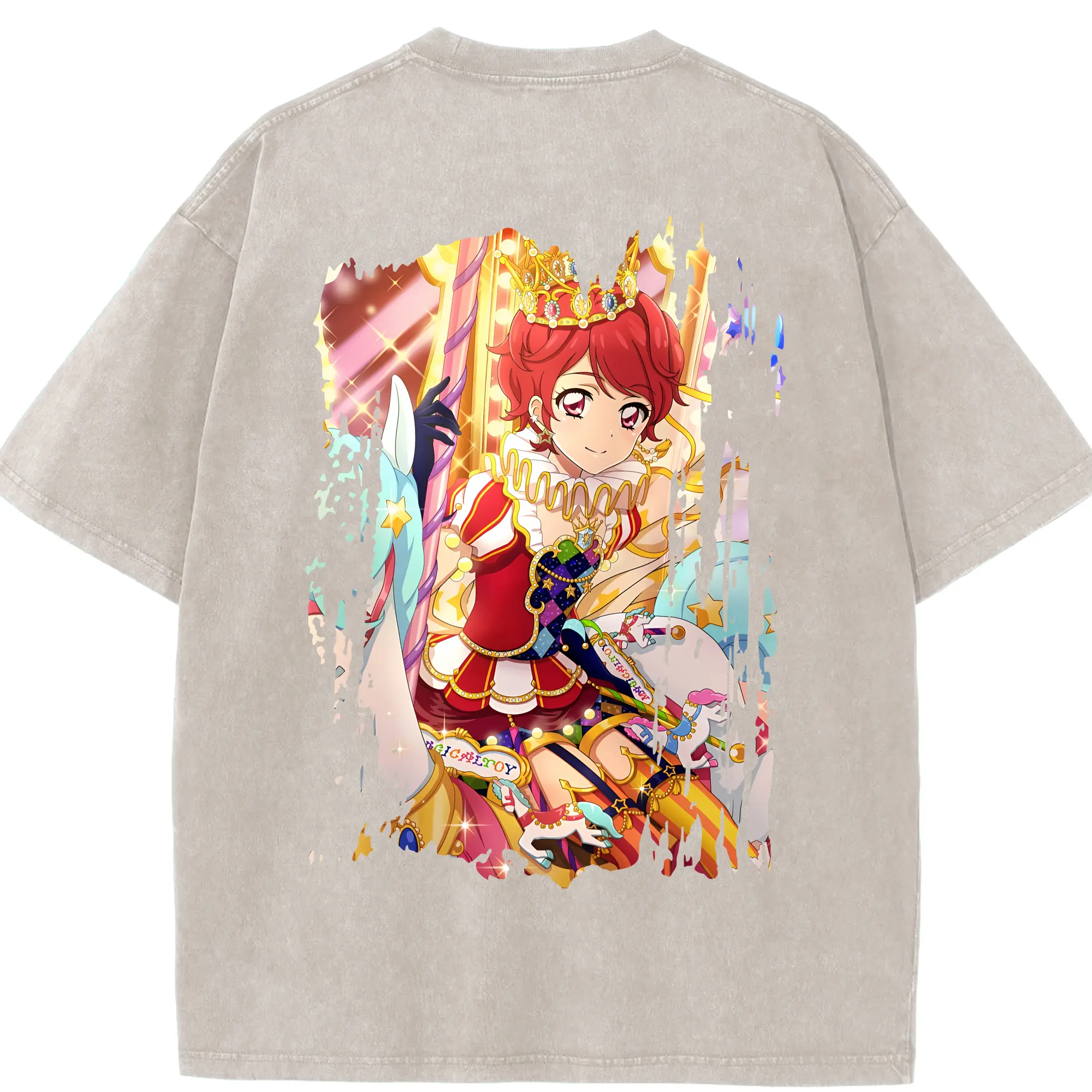 アイカツ グッズ 一ノ瀬 かえで - 綿100% ヴィンテージ風 半袖Tシャツ ・ フロントプリント ・ 柔らか肌触り ・ 通気性 快適 ・ スポーツ カジュアル 外出用