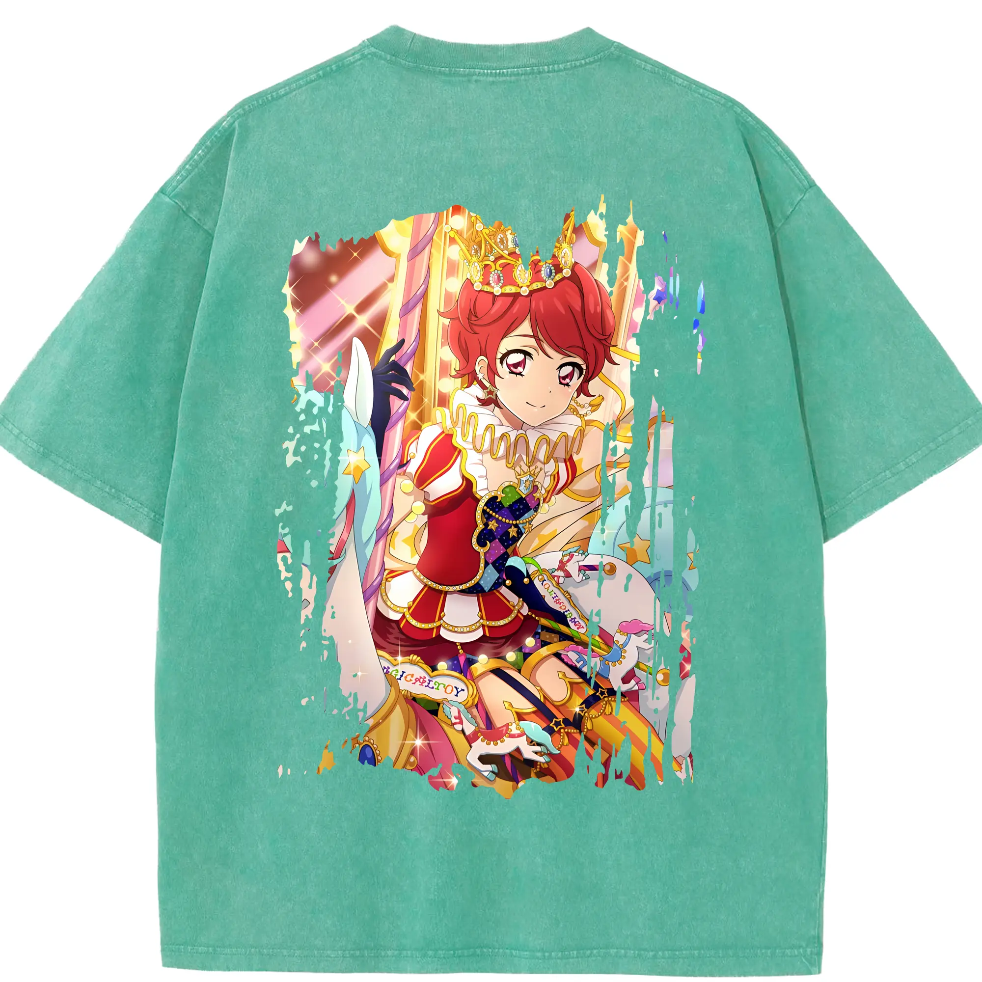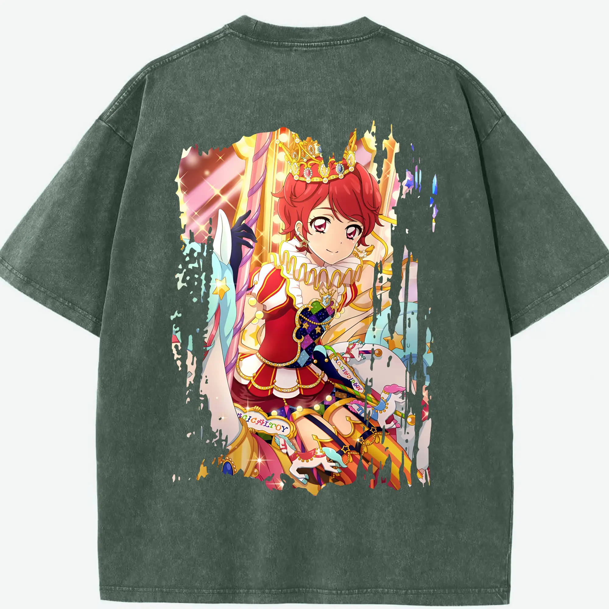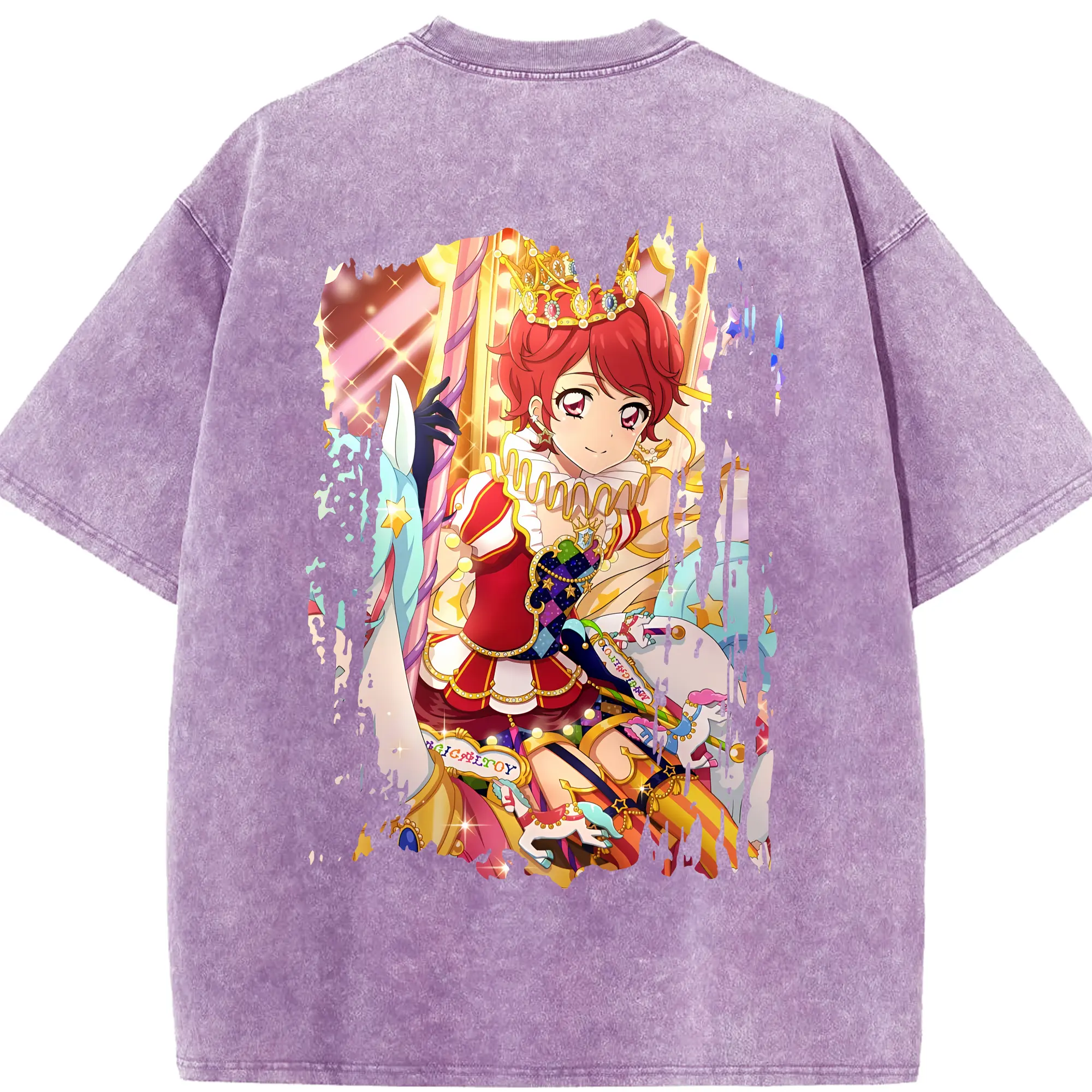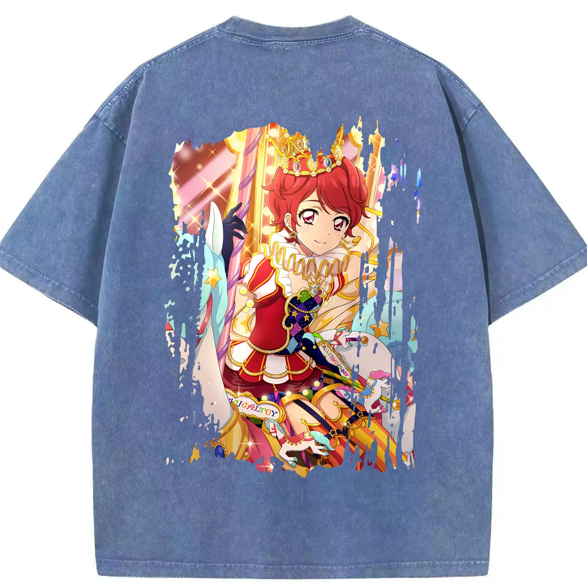 アイカツ グッズ 一ノ瀬 かえで - 綿100% ヴィンテージ風 半袖Tシャツ ・ フロントプリント ・ 柔らか肌触り ・ 通気性 快適 ・ スポーツ カジュアル 外出用