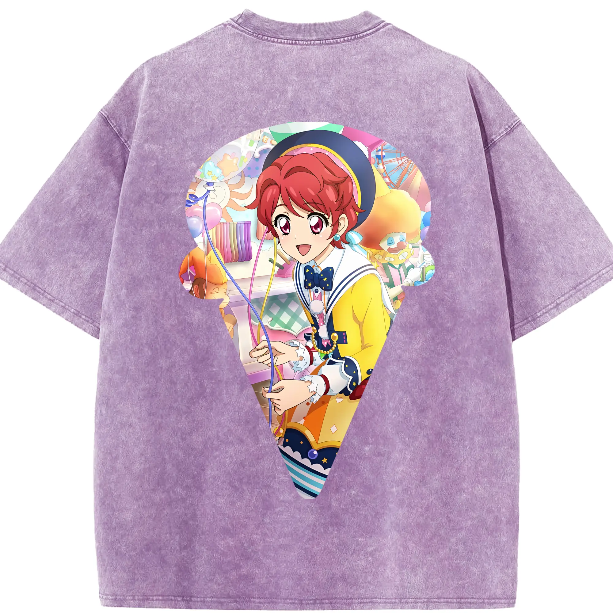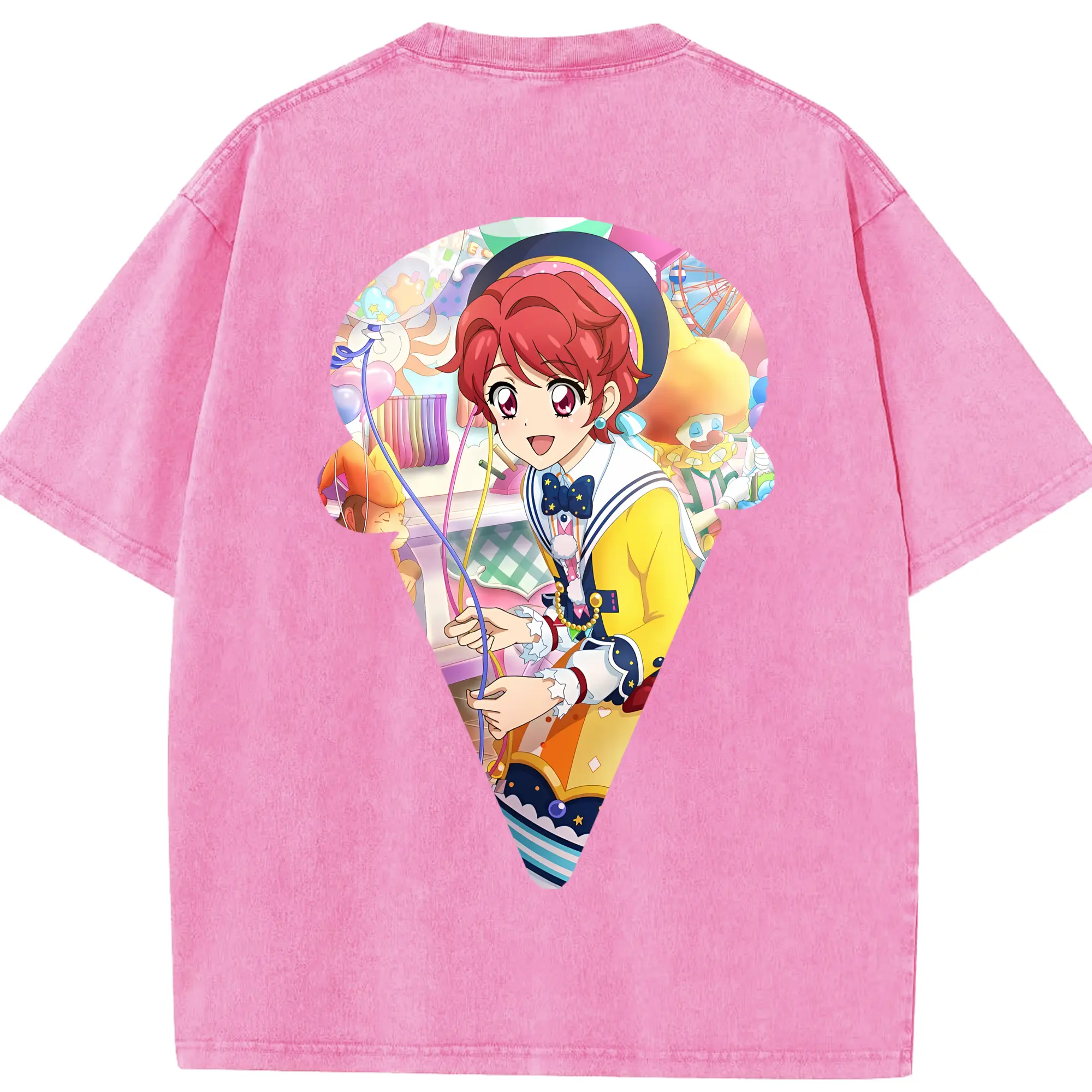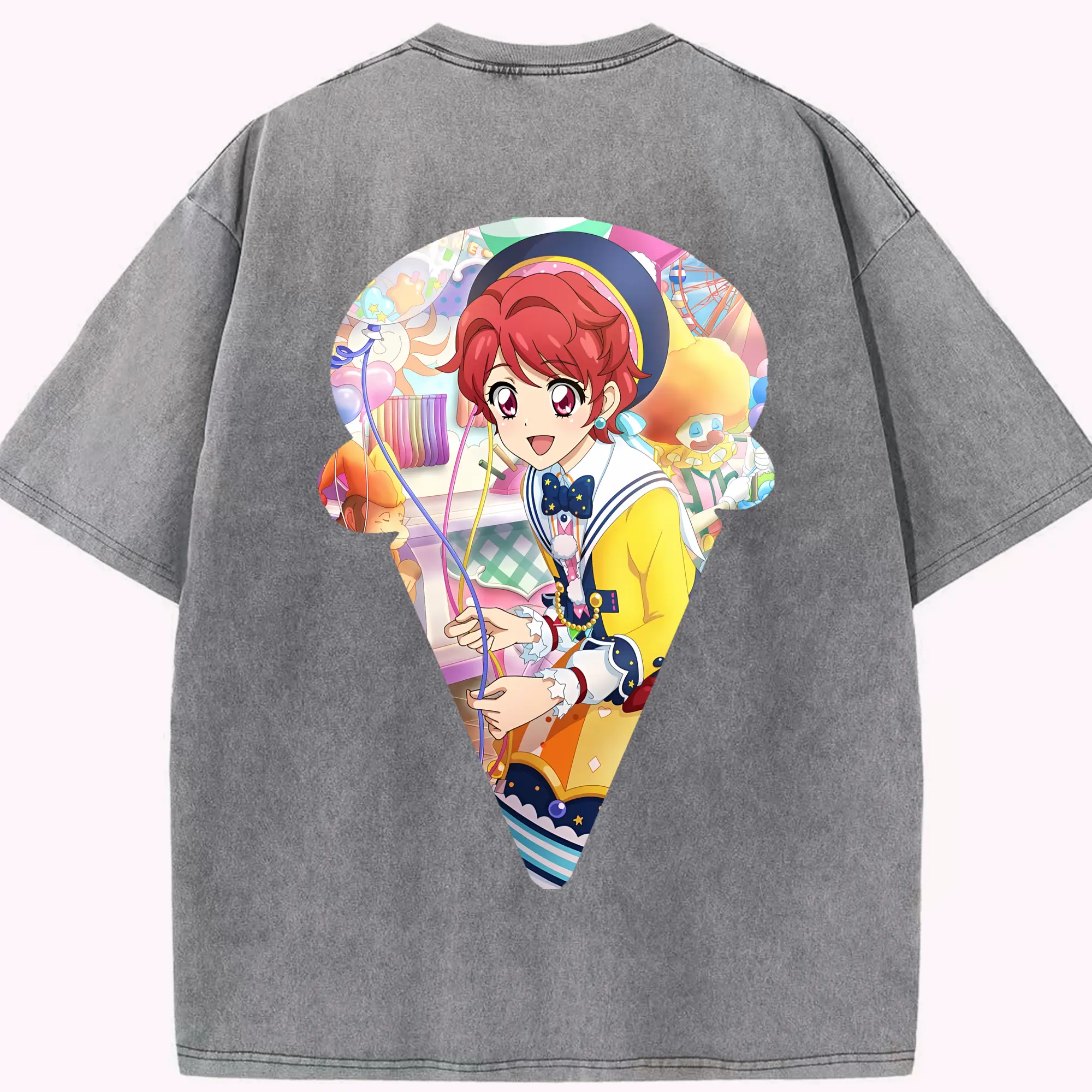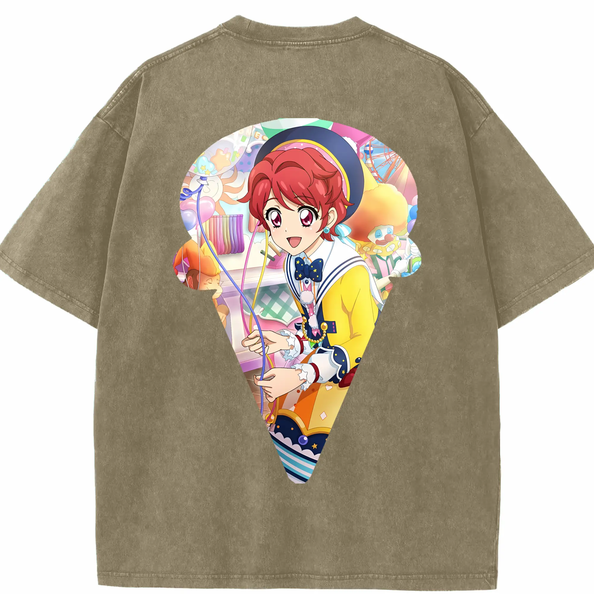 アイカツ グッズ 一ノ瀬 かえで - 綿100% ヴィンテージ風 半袖Tシャツ ・ フロントプリント ・ 柔らか肌触り ・ 通気性 快適 ・ スポーツ カジュアル 外出用