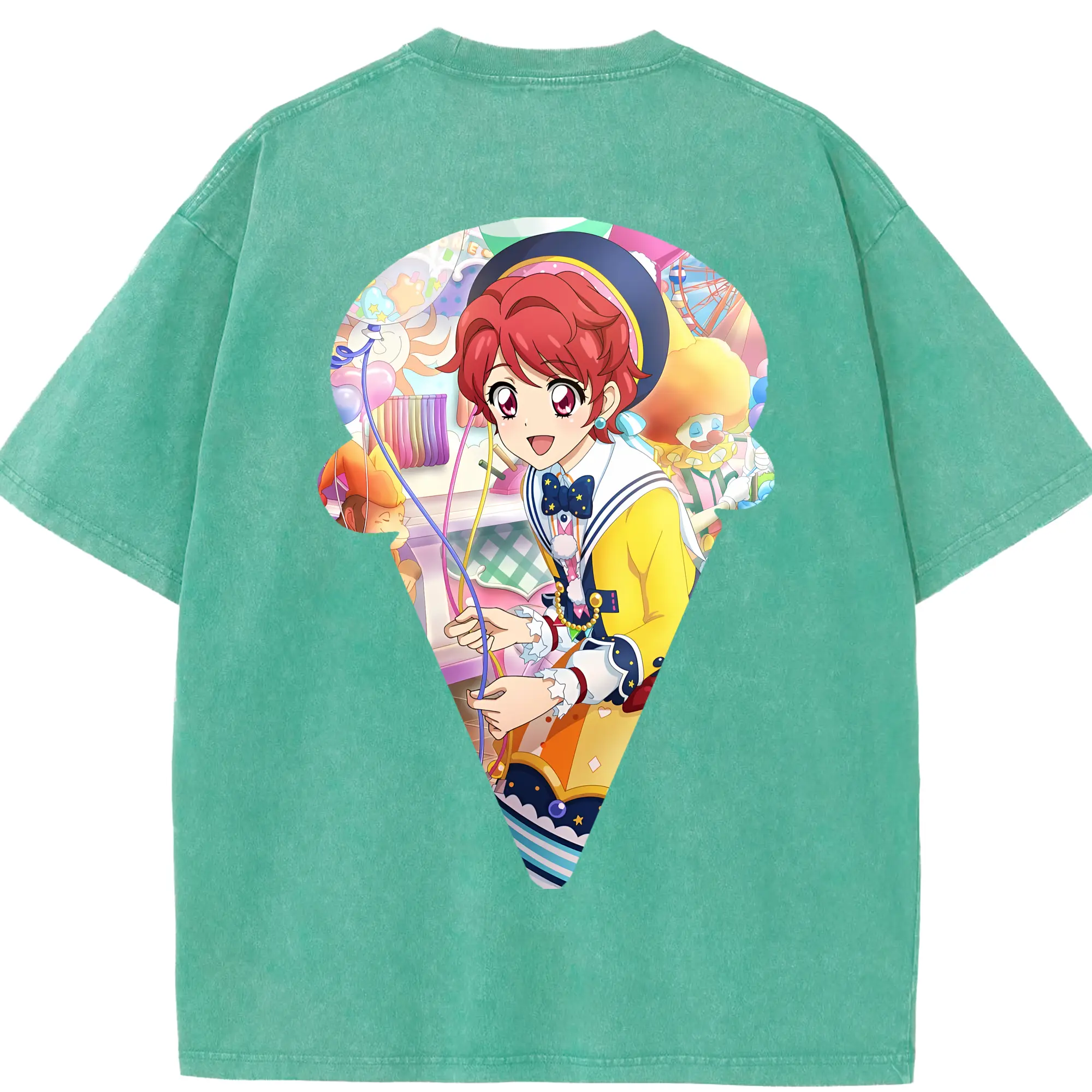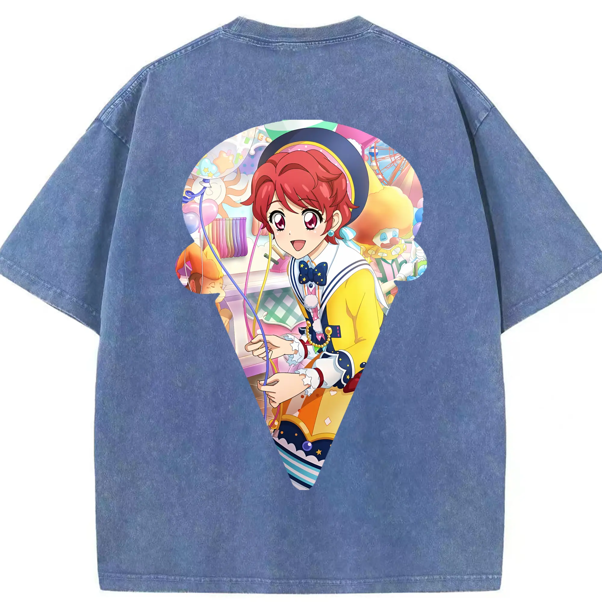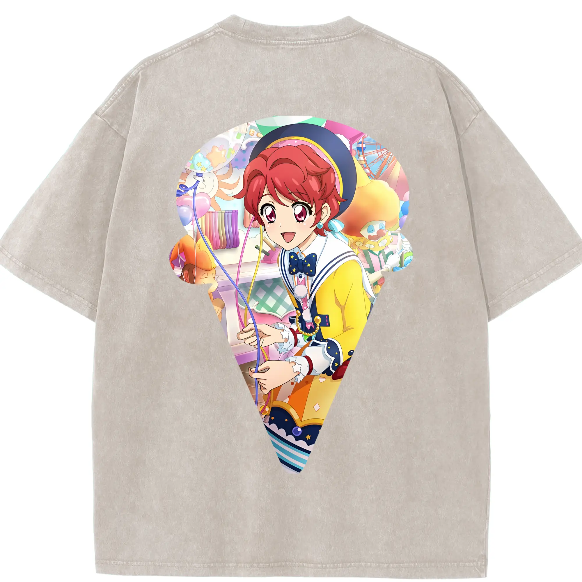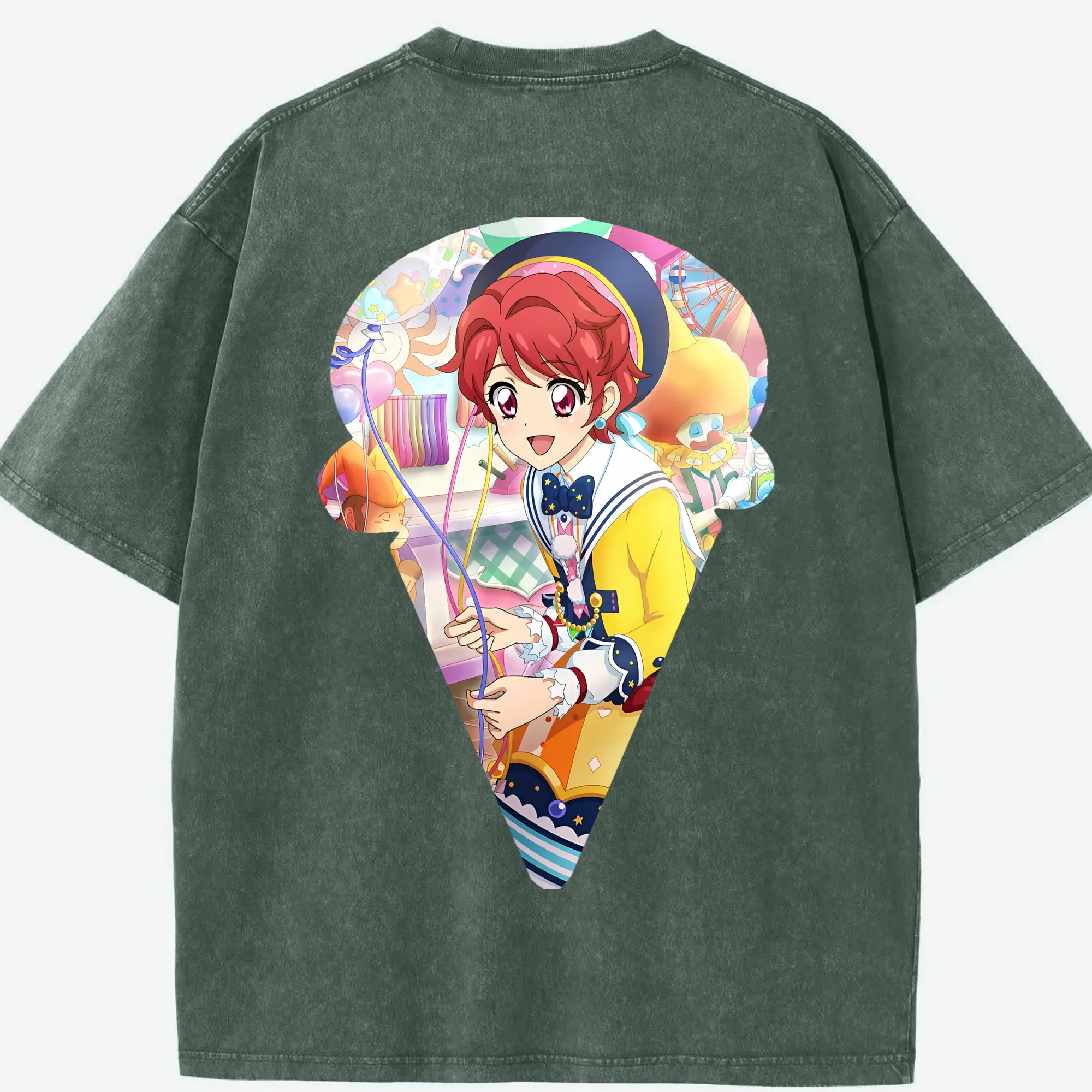 アイカツ グッズ 一ノ瀬 かえで - 綿100% ヴィンテージ風 半袖Tシャツ ・ フロントプリント ・ 柔らか肌触り ・ 通気性 快適 ・ スポーツ カジュアル 外出用