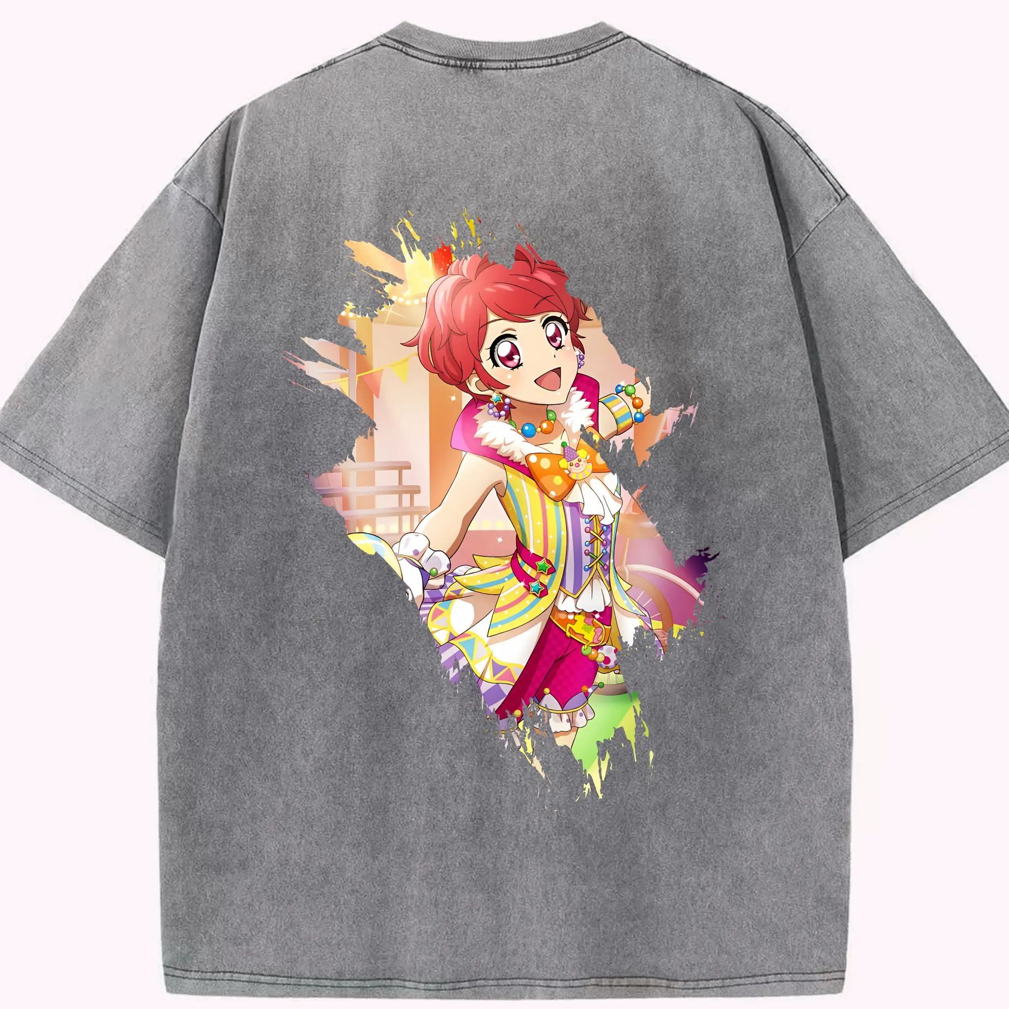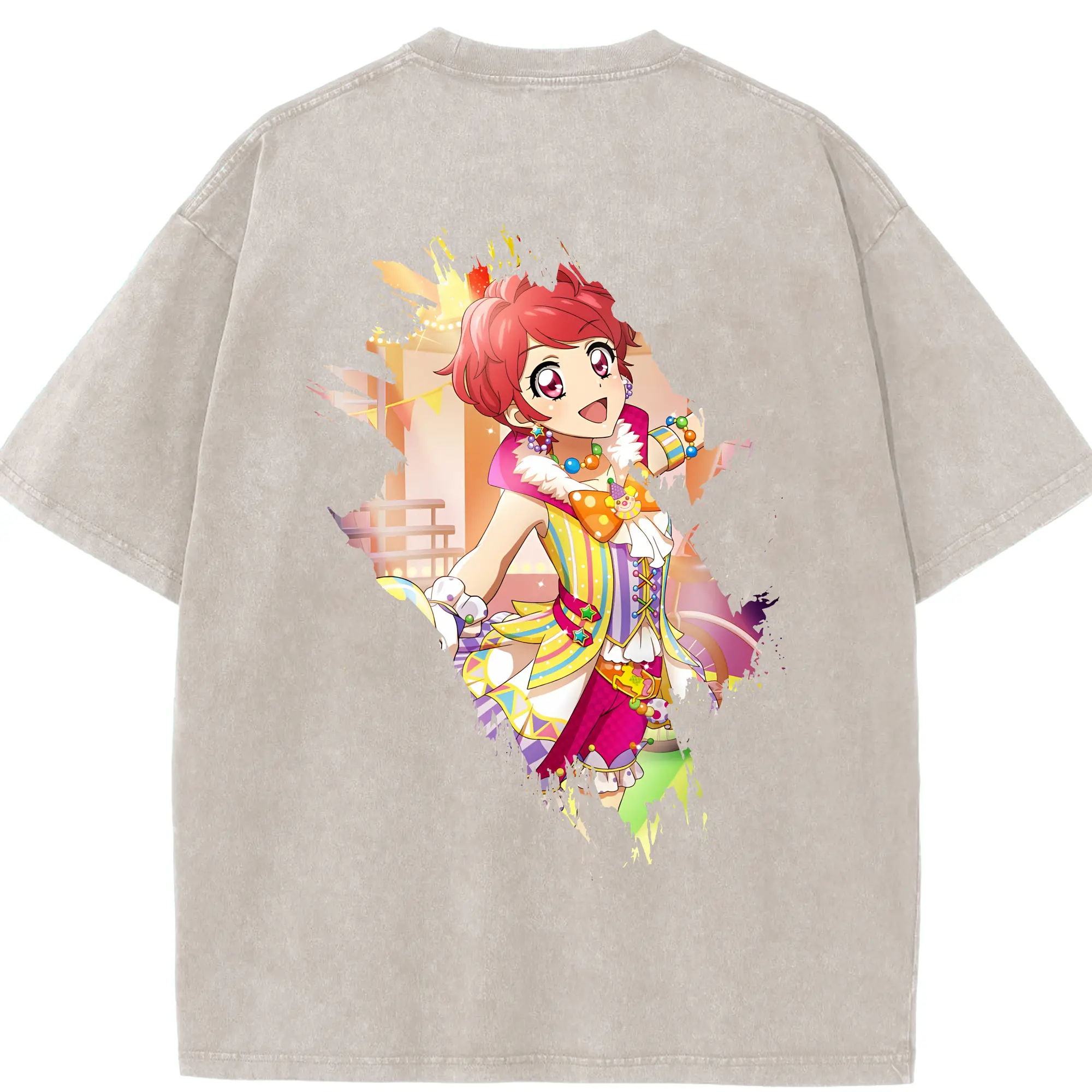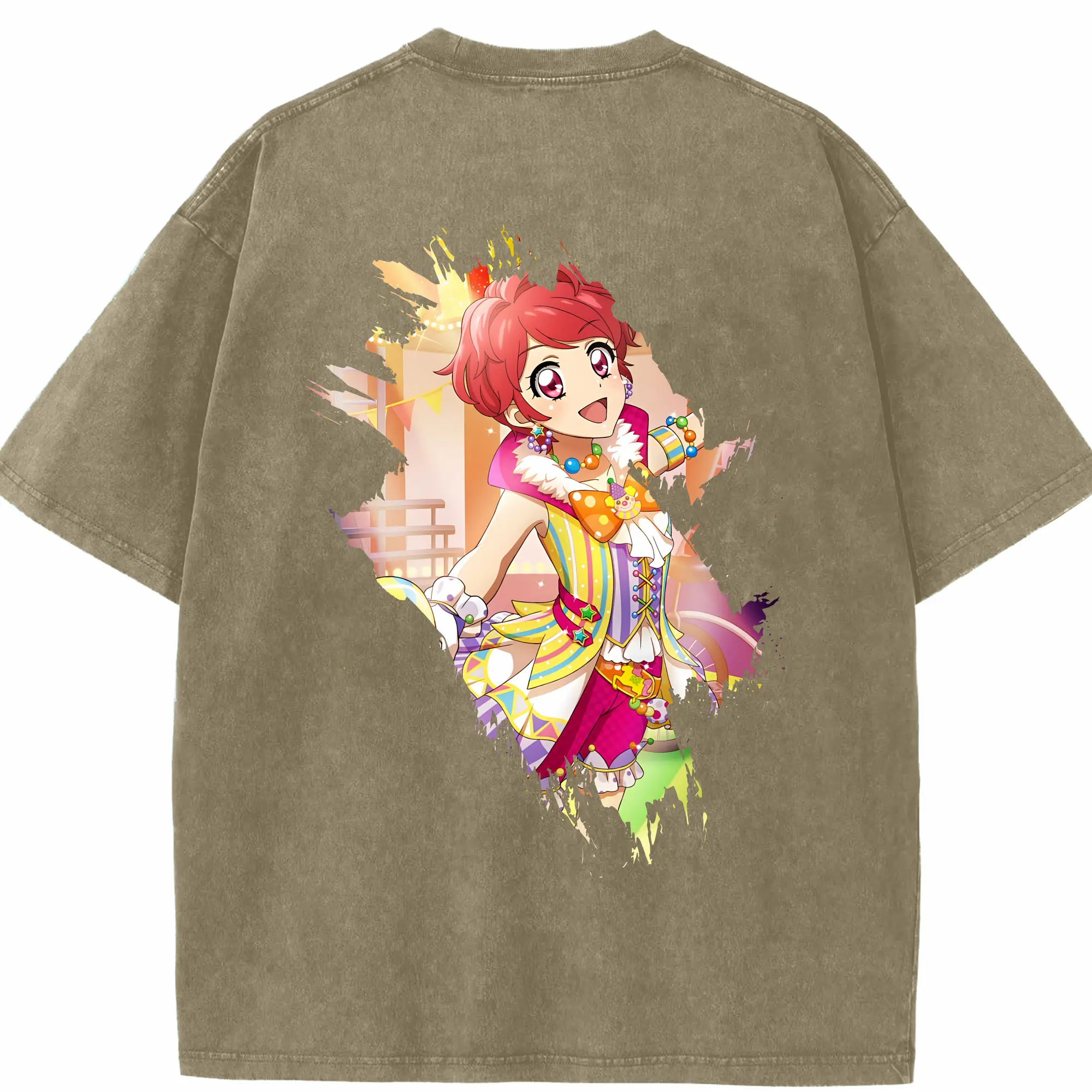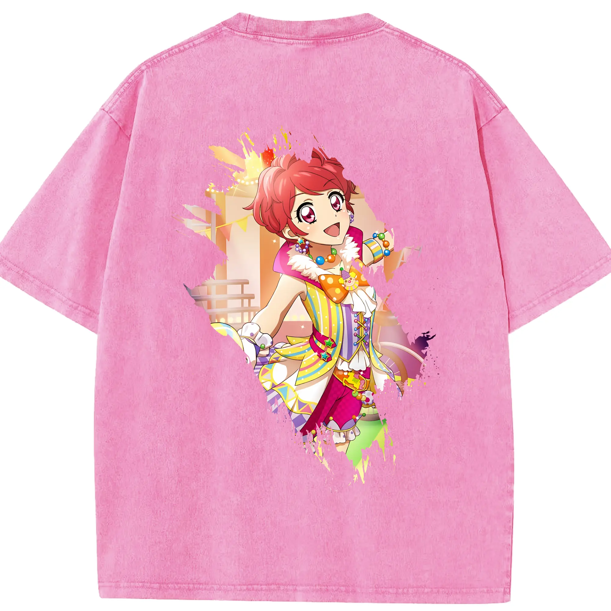 アイカツ グッズ 一ノ瀬 かえで - 綿100% ヴィンテージ風 半袖Tシャツ ・ フロントプリント ・ 柔らか肌触り ・ 通気性 快適 ・ スポーツ カジュアル 外出用