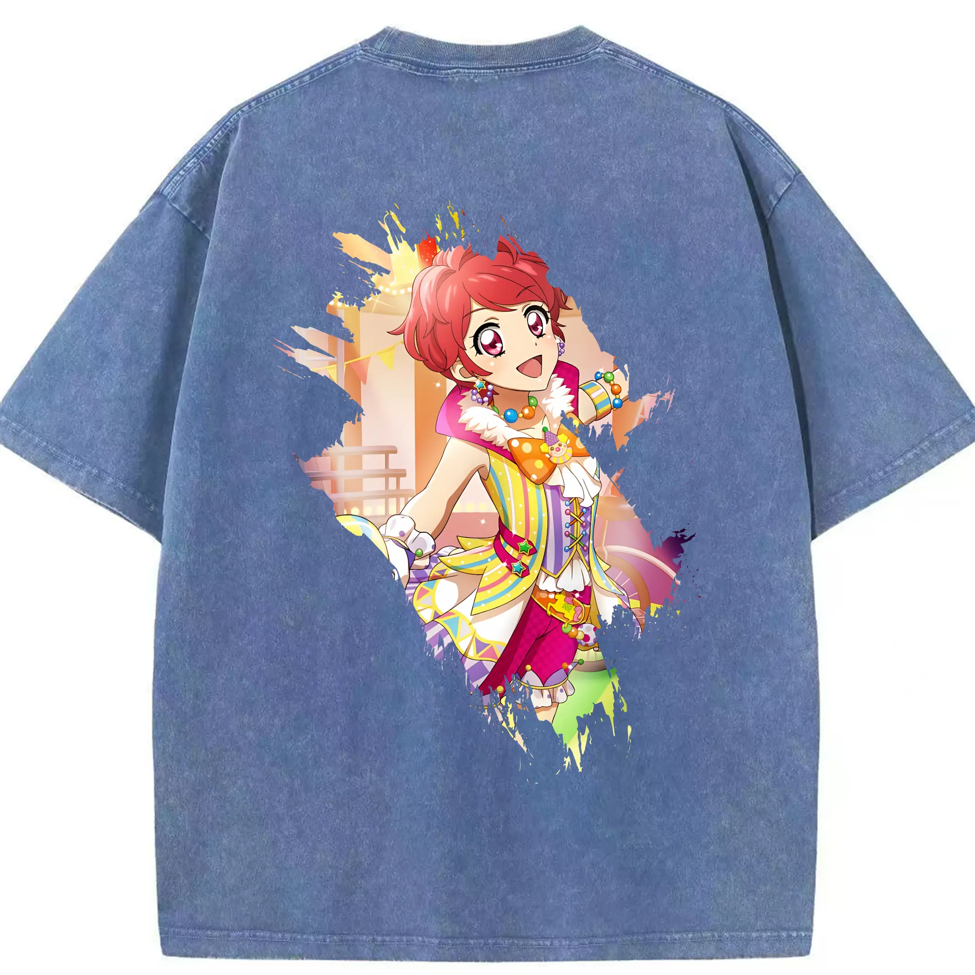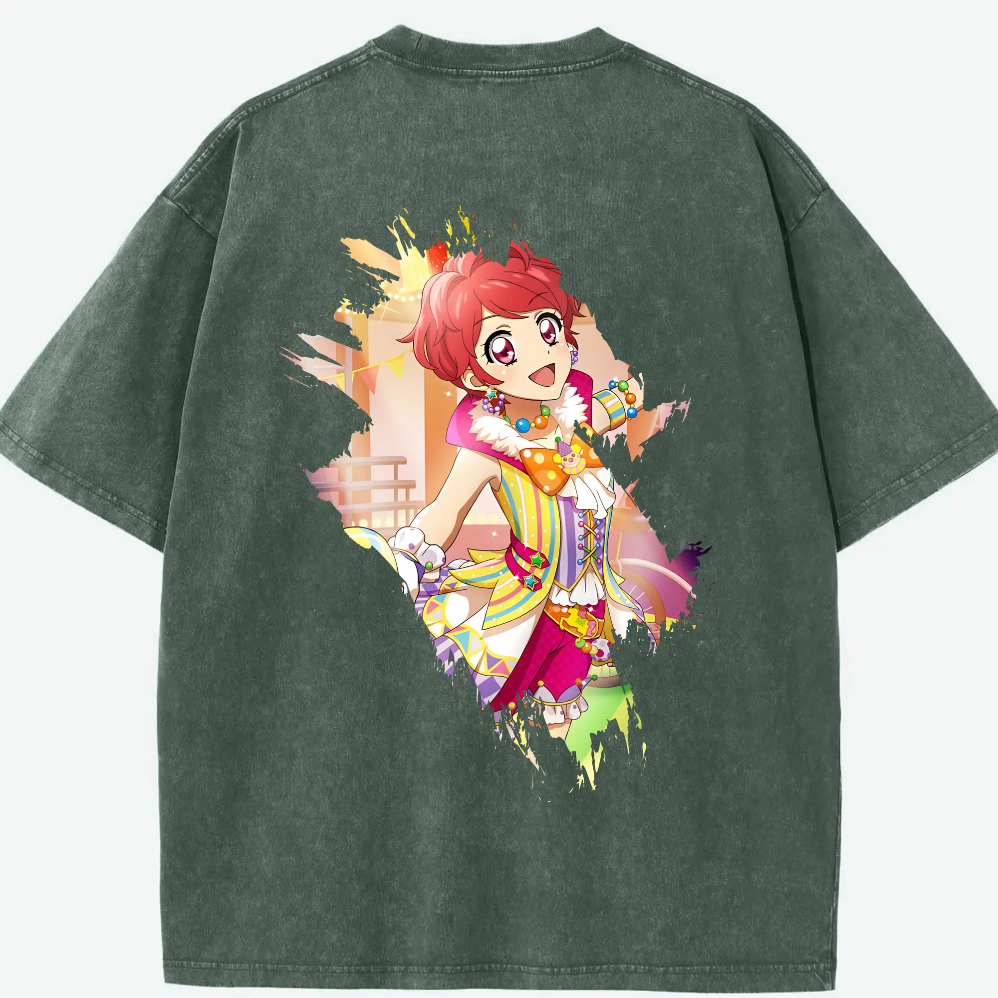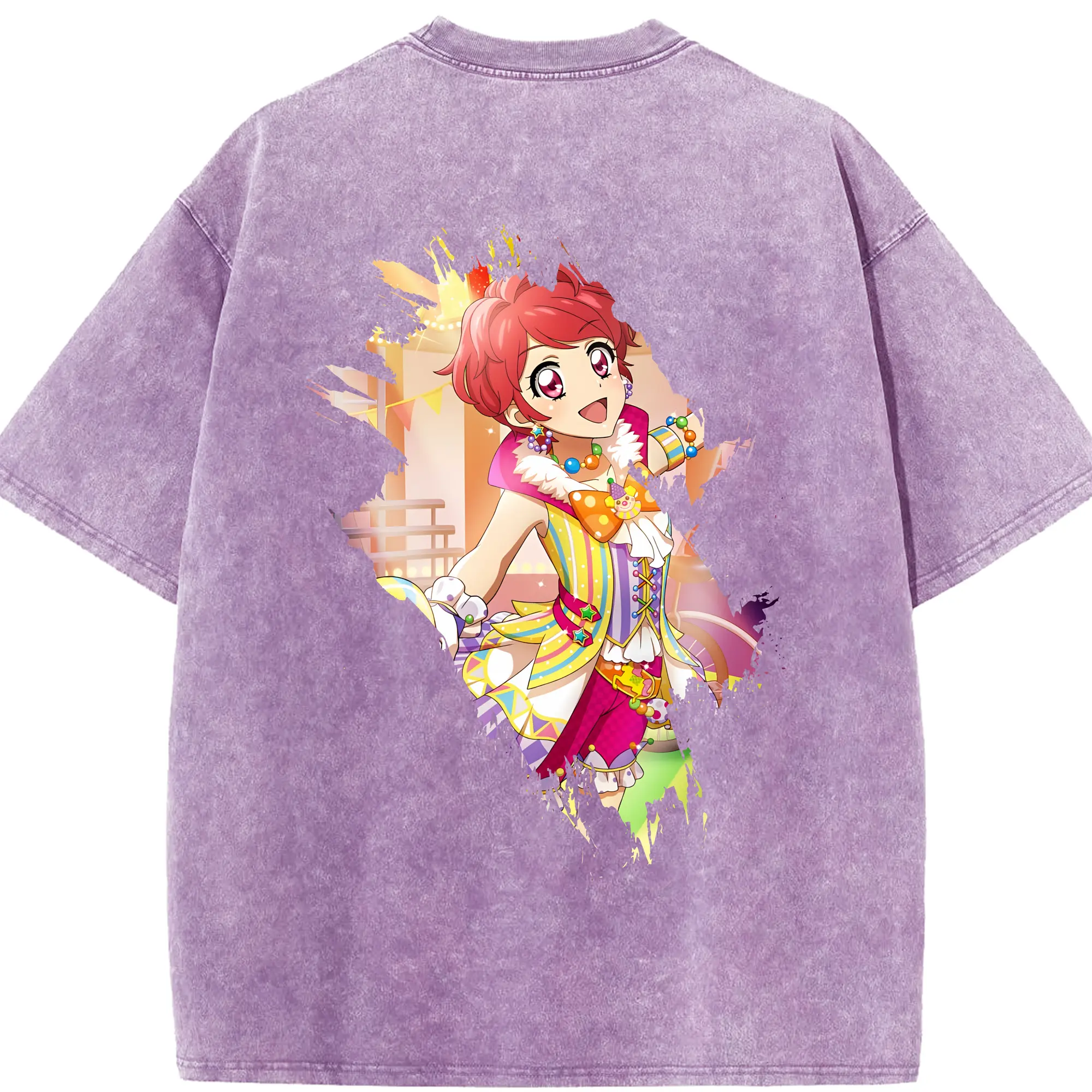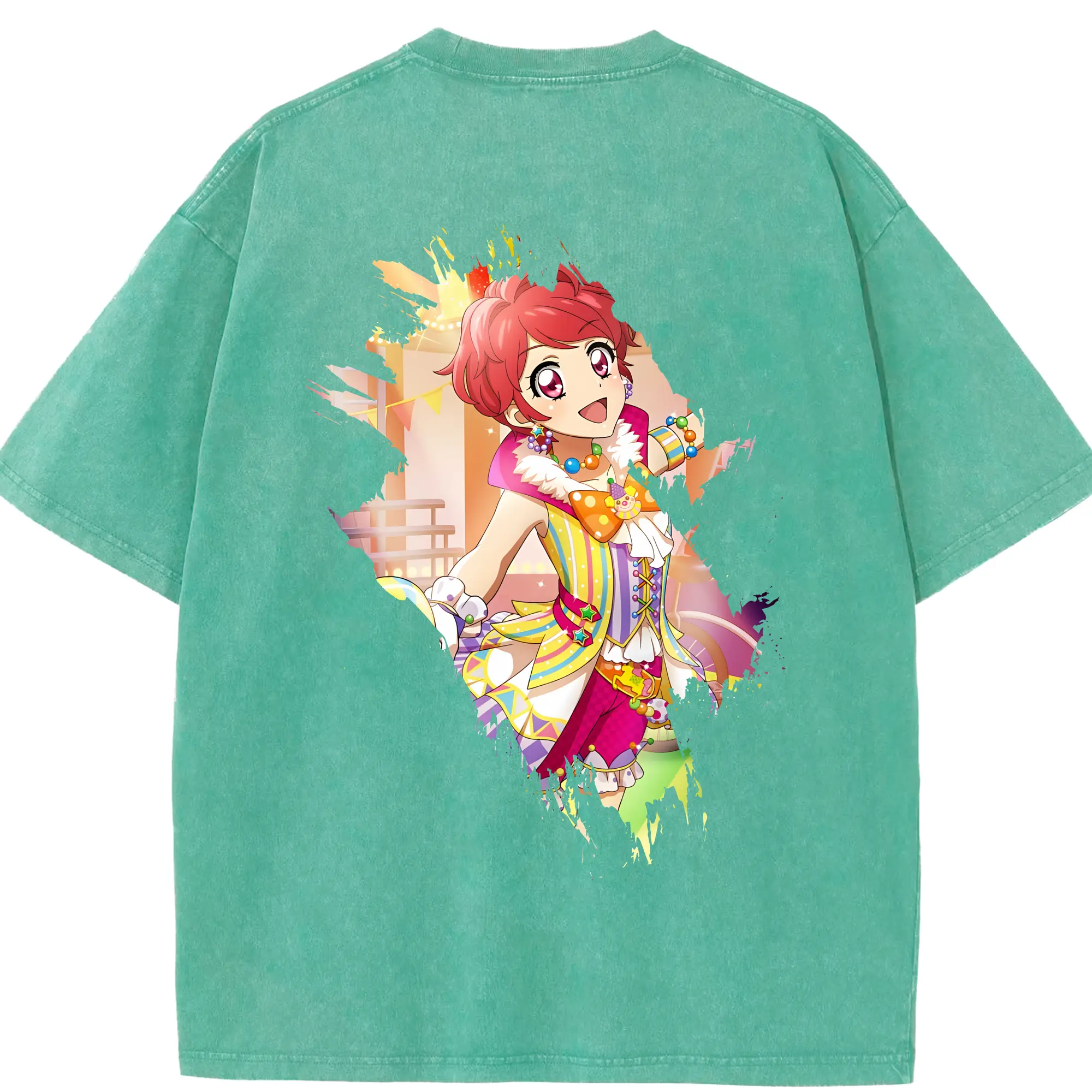 アイカツ グッズ 一ノ瀬 かえで - 綿100% ヴィンテージ風 半袖Tシャツ ・ フロントプリント ・ 柔らか肌触り ・ 通気性 快適 ・ スポーツ カジュアル 外出用