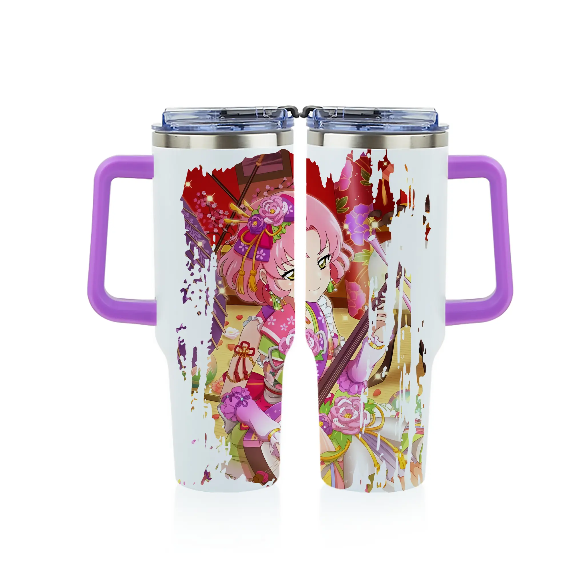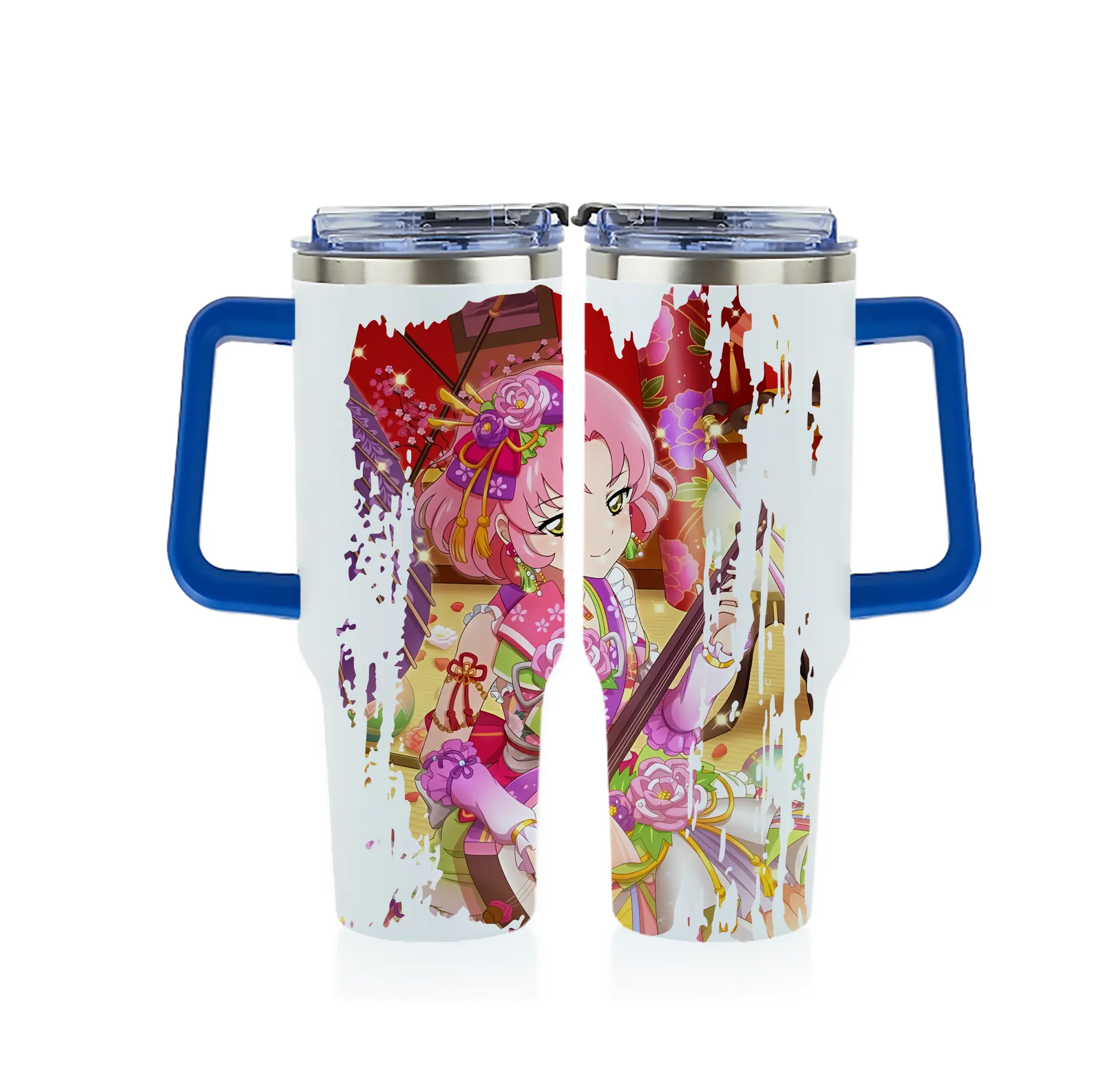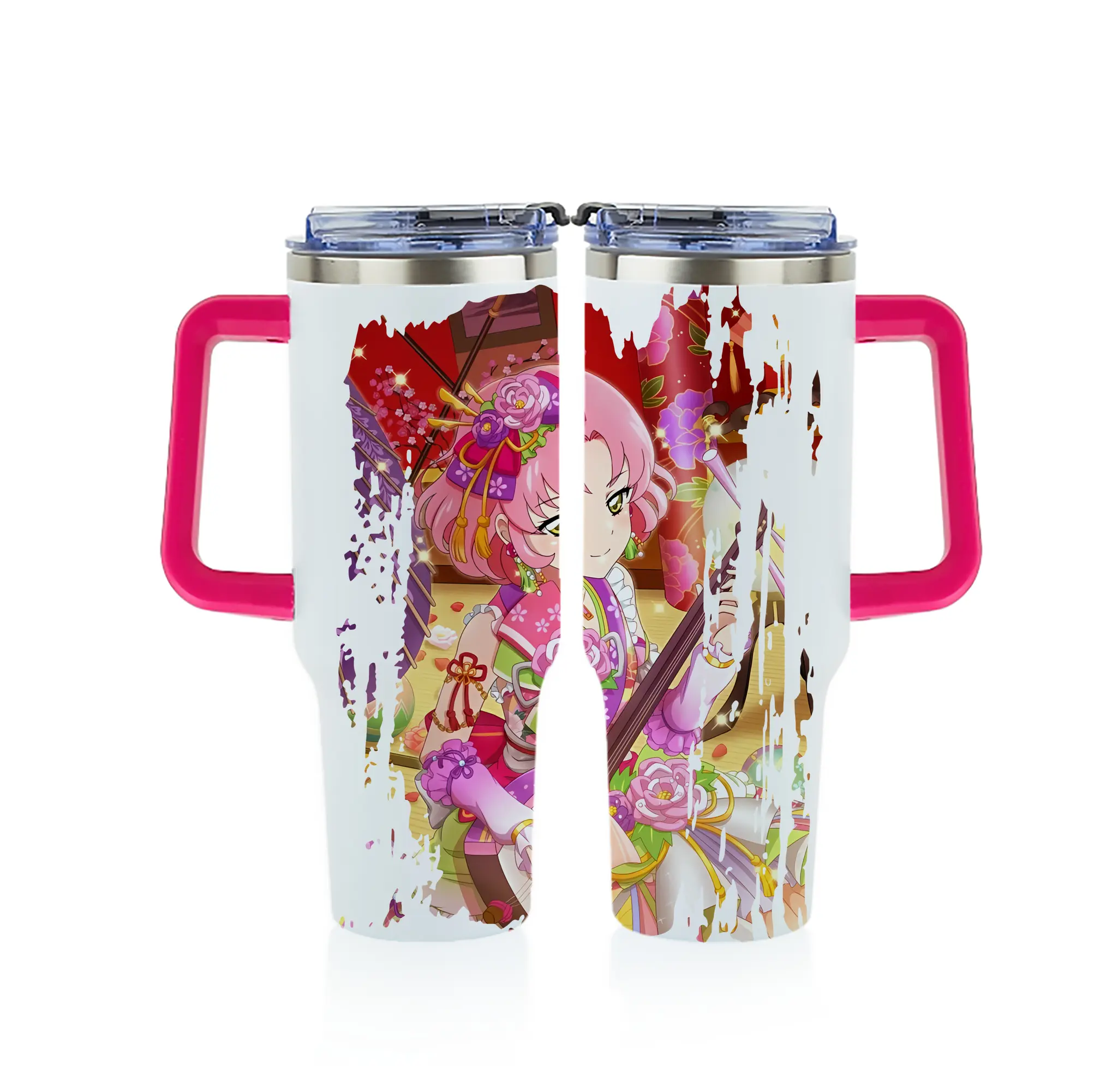 アイカツ グッズ 北大路 さくら - 1200mL フルプリント車用タンブラー ・ 304ステンレス 内側 ・ 201ステンレス 外側 ・ 保温 保冷 ・ 通勤 ドライブ アウトドア用