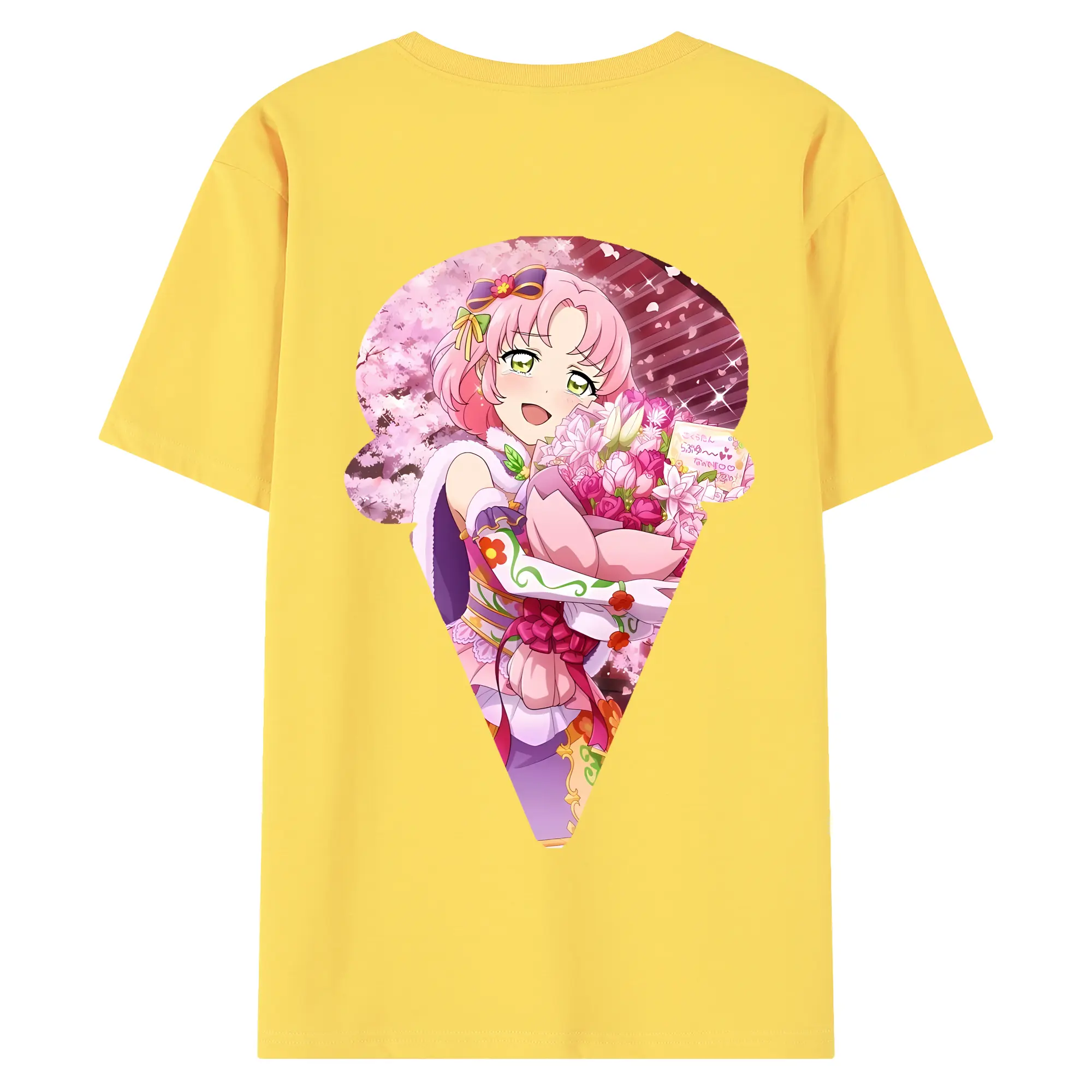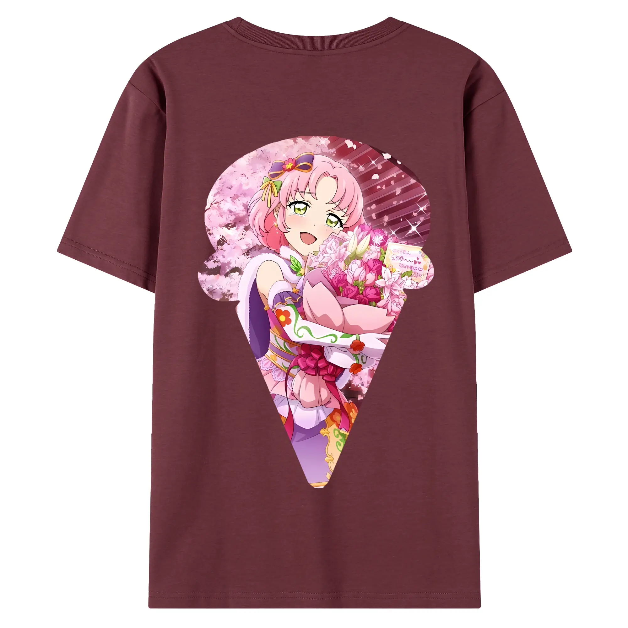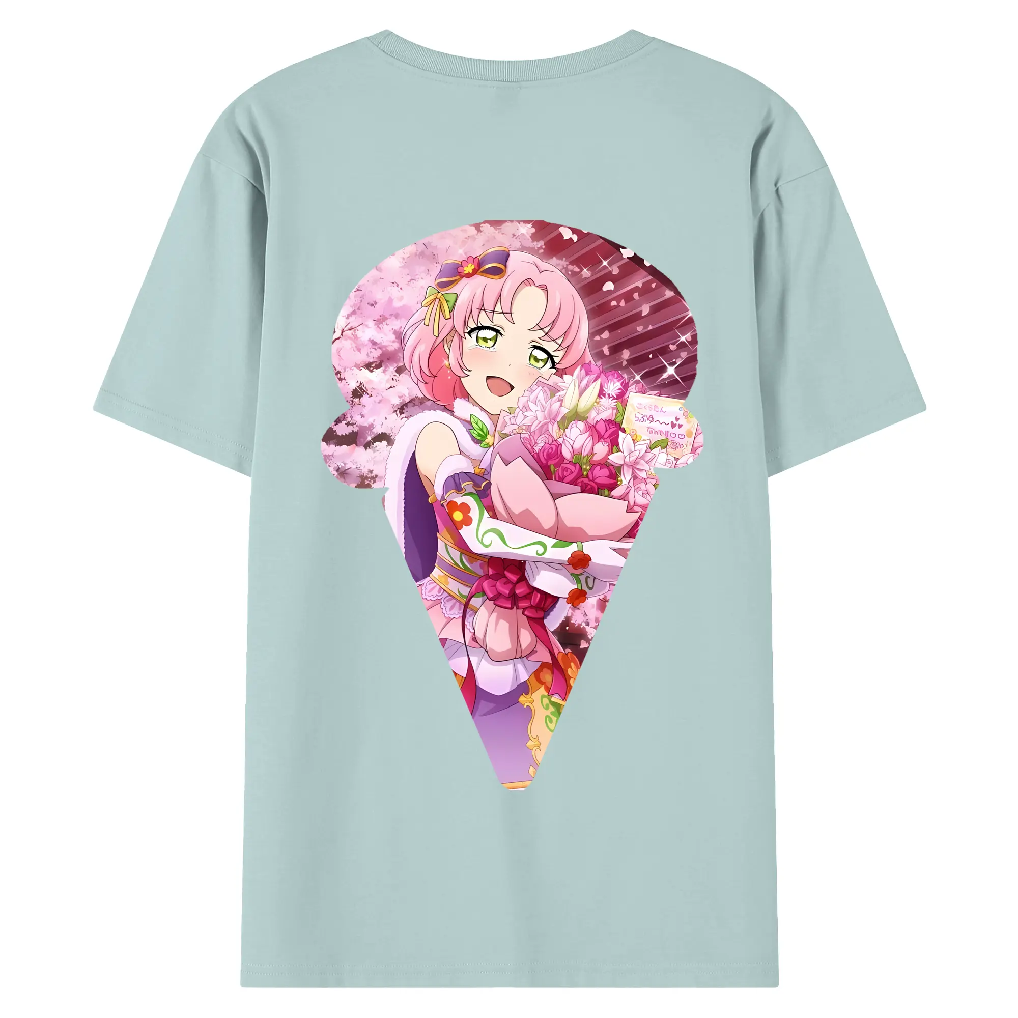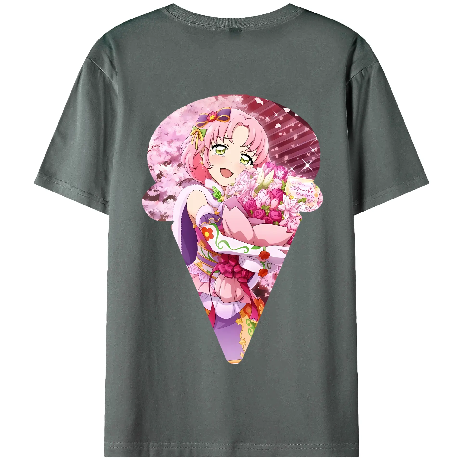 アイカツ グッズ 北大路 さくら - 綿100% ヴィンテージ風 半袖Tシャツ ・ 背面プリント ・ 柔らか肌触り ・ 通気性 快適 ・ スポーツ カジュアル 外出用