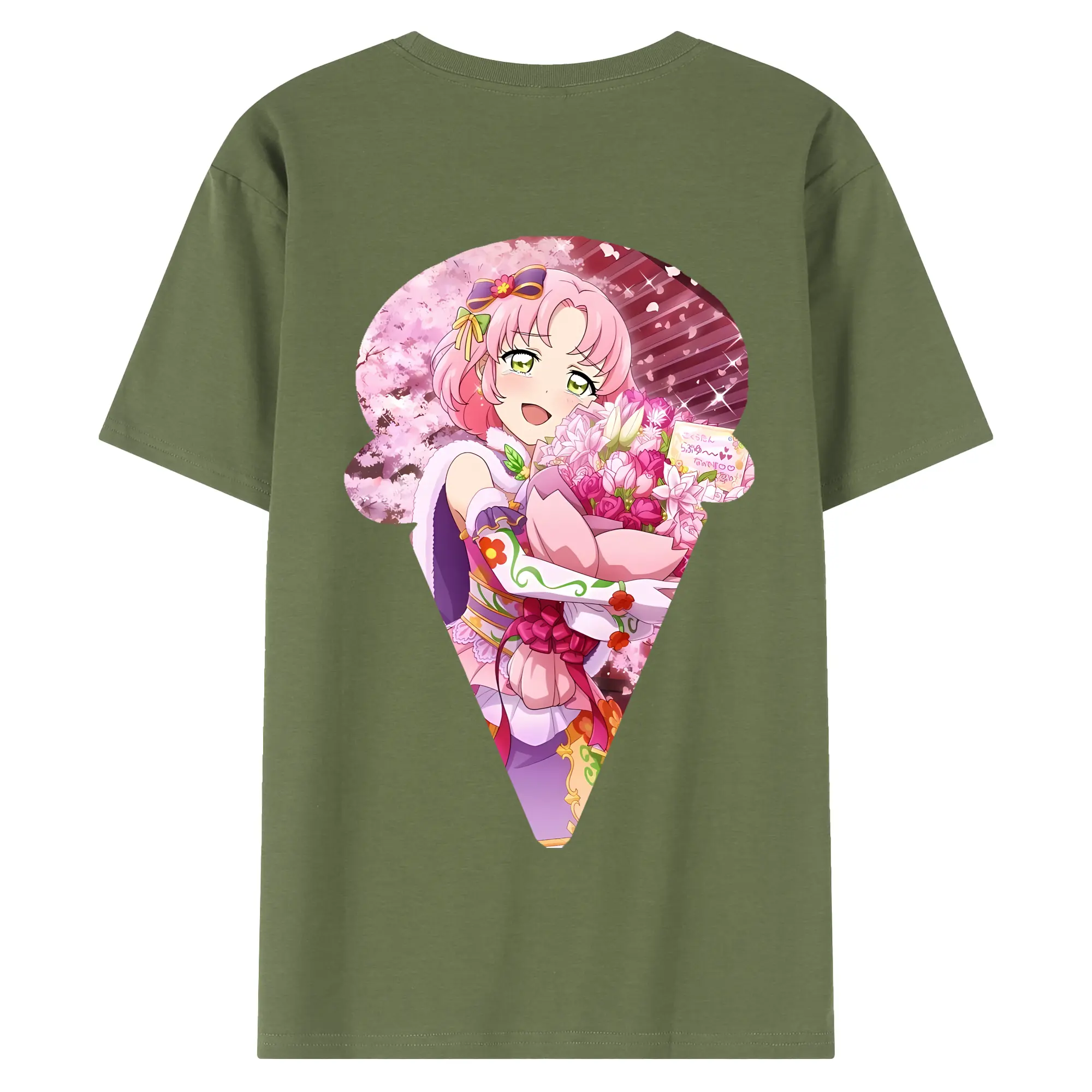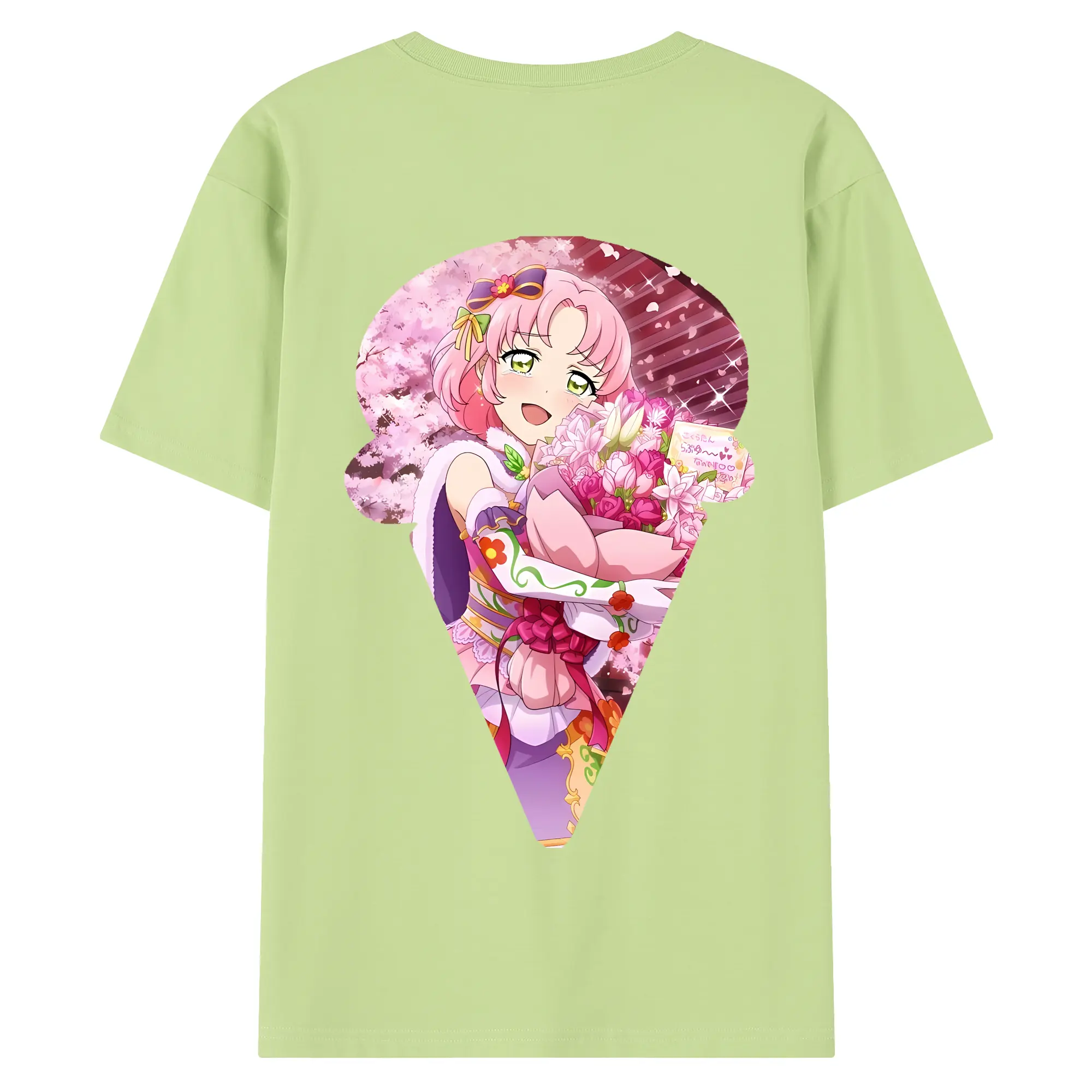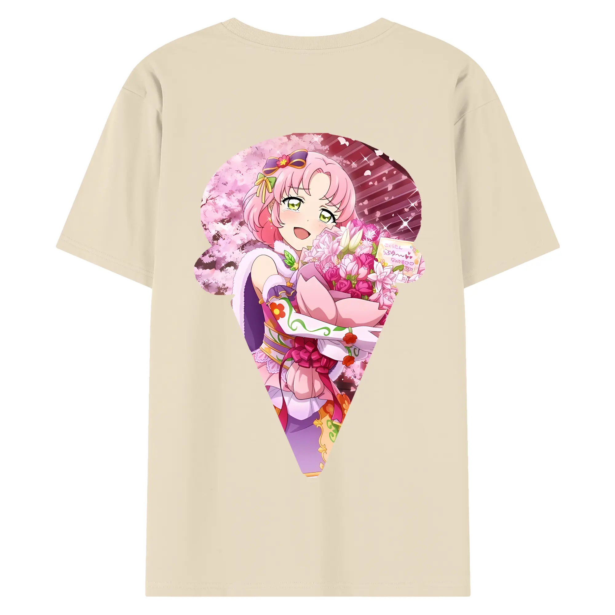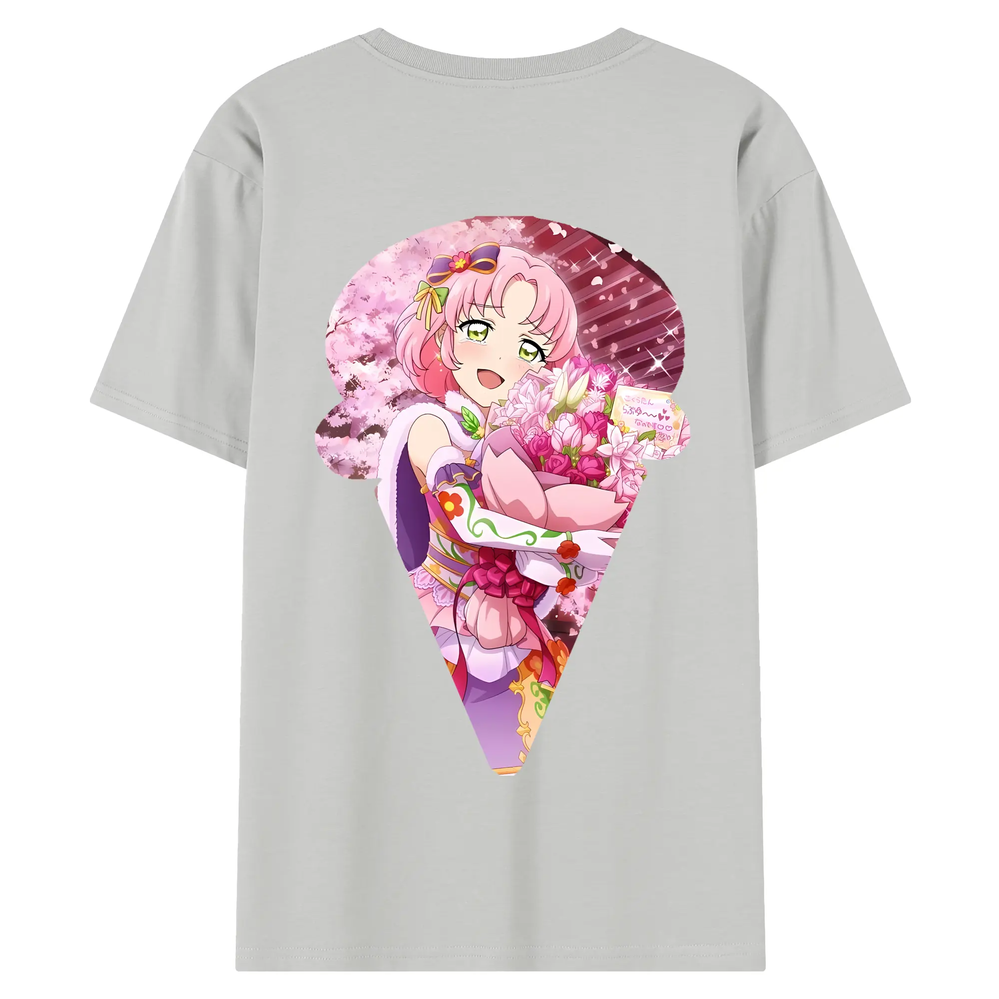 アイカツ グッズ 北大路 さくら - 綿100% ヴィンテージ風 半袖Tシャツ ・ 背面プリント ・ 柔らか肌触り ・ 通気性 快適 ・ スポーツ カジュアル 外出用